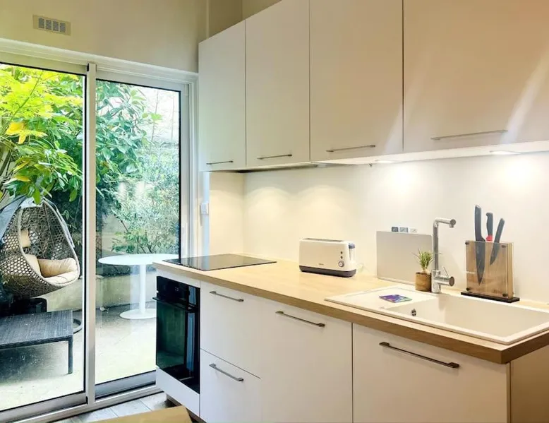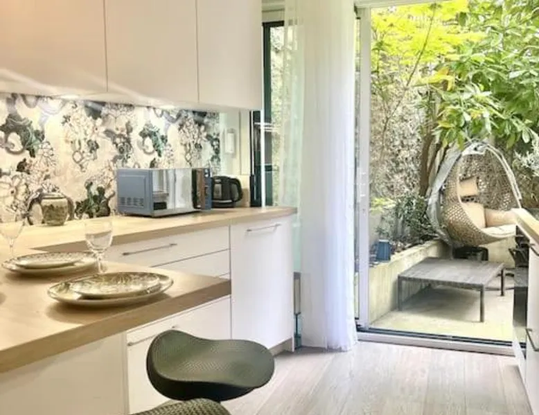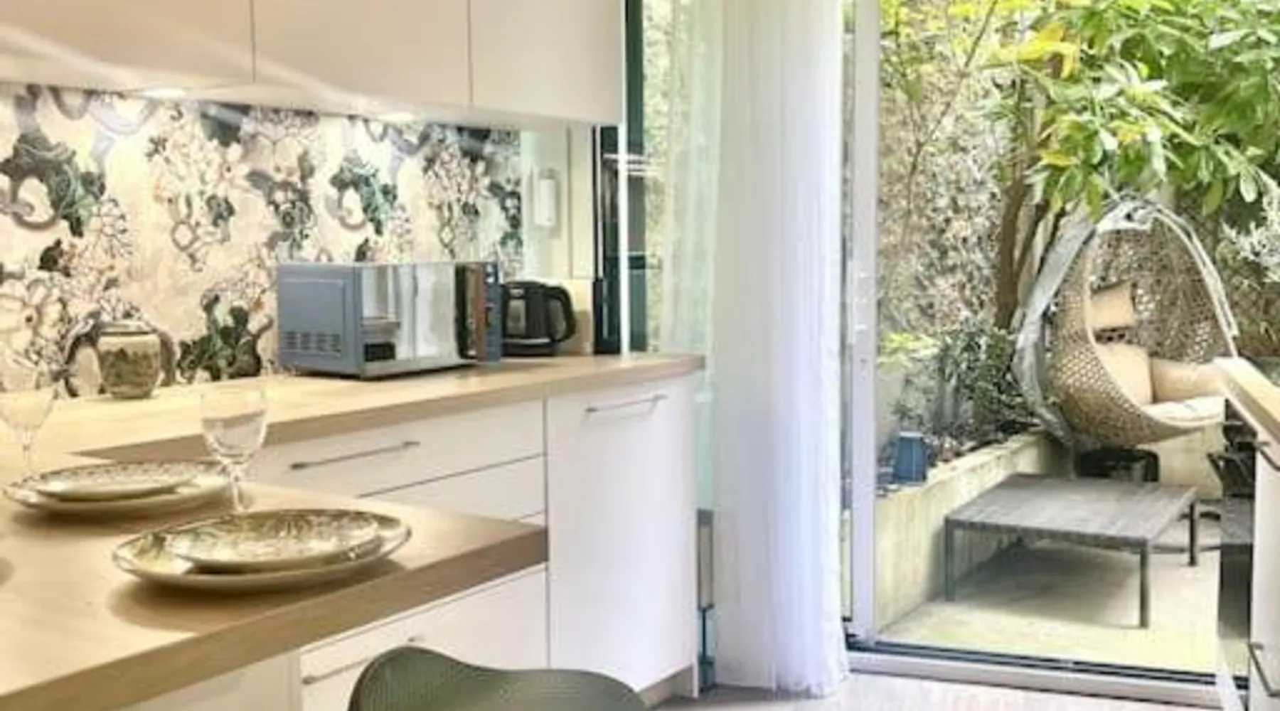 Spacious Accommodations: Un appartement de deux chambres climatisé avec un jardin privatif près de Trocadero in Paris offers a spacious apartment with two bedrooms and a living room. The property is pet-friendly and includes a terrace and balcony with garden views. Modern Amenities: Guests enjoy free WiFi, air-conditioning, a fully equipped kitchen with a dishwasher, washing machine, and a work desk. Additional amenities include a TV, oven, and hairdryer. Prime Location: Located 16 mi from Paris Charles de Gaulle Airport, the apartment is a 13-minute walk from Palais des Congrès de Paris and 0.8 mi from the Arc de Triomphe. Nearby attractions include the Eiffel Tower (1.8 mi) and Musée de l'Orangerie (2.2 mi). The kitchen is equipped with a refrigerator, a dishwasher and an oven. The spacious apartment provides air conditioning, a washing machine, a tea and coffee maker as well as a terrace with garden views. The unit offers 3 beds.