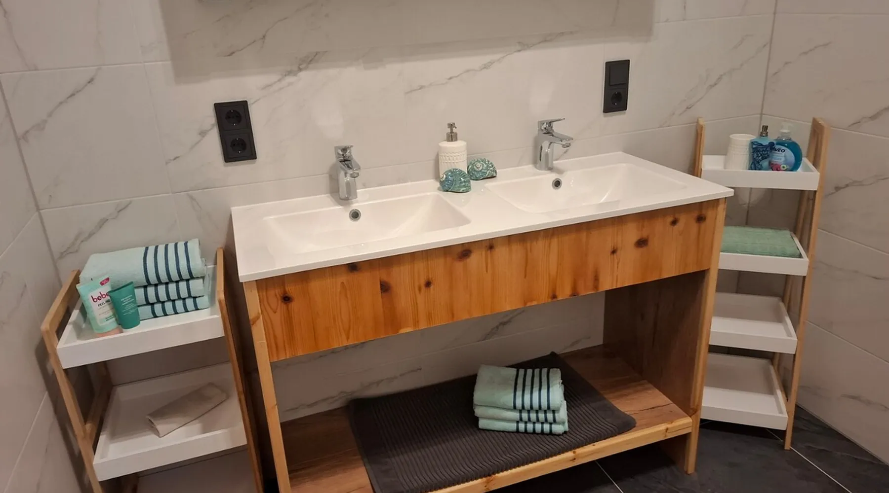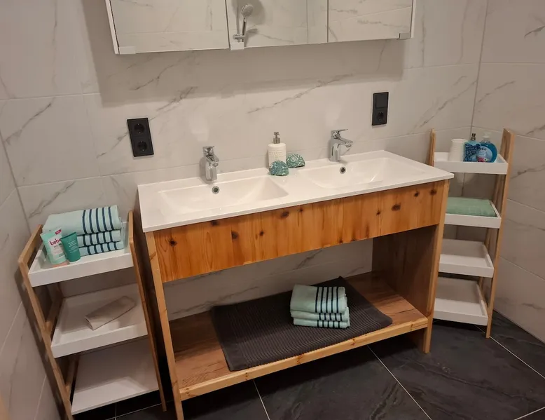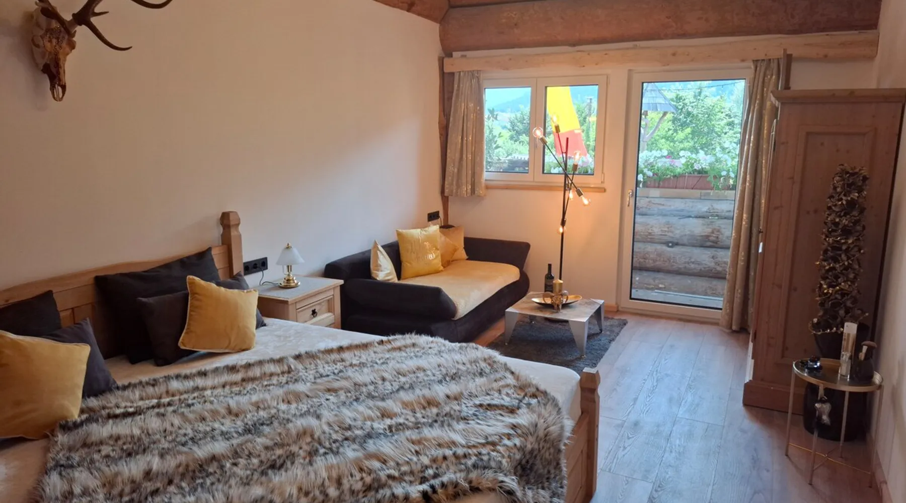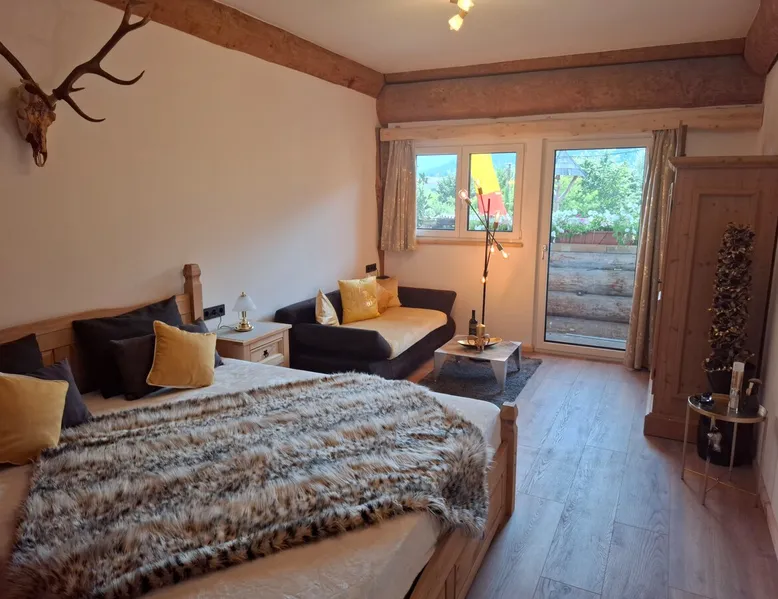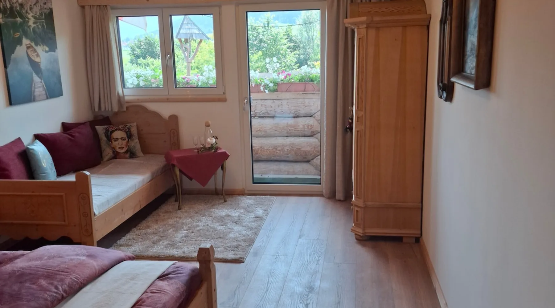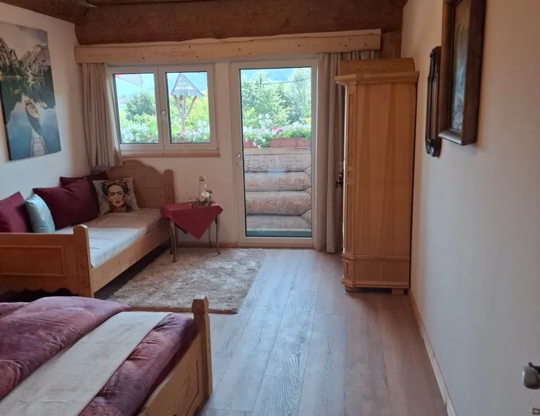 Welcome to the idyllic holiday apartment on the outskirts of Axams, located on a picturesque horse farm with fantastic views of the Axamer Lizum. On approx. 80 m², the apartment offers two cozy bedrooms with double beds, a fully equipped kitchen and a modern bathroom. Freshly renovated and romantically designed with lots of wood, it invites you to relax. Ample parking is provided. Ideal for nature and animal lovers! The space Welcome to our idyllic holiday apartment on the outskirts of Axams, nestled in the picturesque landscape of a horse farm with fantastic views of the Axamer Lizum. Our charming apartment offers a relaxing oasis with two cozy bedrooms on approx. 80 m², each equipped with comfortable double beds. The rustic kitchen and modern bathroom complement the homely ambiance, which captivates with the romantic decor with real pine wood. There is plenty of parking available on site, so you can enjoy your vacation stress-free. The infrastructure in the area leaves nothing to be desired: a supermarket is only 800 meters away, as is a bakery. Restaurants are 1000 meters away and a bar is also nearby. For water sports enthusiasts and swimmers, there is an outdoor swimming pool as well as an indoor swimming pool 1.7 km away and the popular swimming lake "Natterer See" is only 7 km away. For nature lovers and winter sports enthusiasts, our apartment is the perfect starting point: hiking trails start right at your doorstep, and the ski sports facilities and ski slopes are only 3.5 km away. The ski bus stop, which takes you comfortably to the surrounding ski resorts, is just 500 meters away. The well-known Axamer Lizum is 8.5 km away and the Mutterer Alm/Götzner Bahn is also easily accessible in 3.5 km. Innsbruck airport is only 12.1 km away, and Munich airport is also easily accessible at 220 km. Experience relaxing days in our lovingly designed holiday apartment and enjoy the variety of leisure opportunities offered by the Axams region. Looking forward to seeing you soon! Guest access The apartment is located on the courtyard on the upper floor and has its own access, past the haystack.