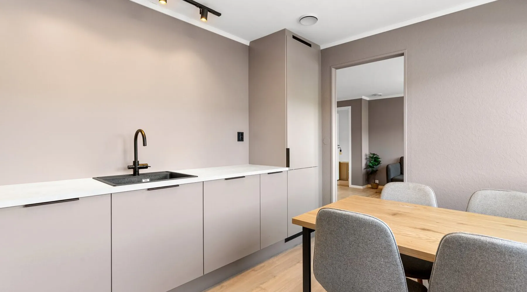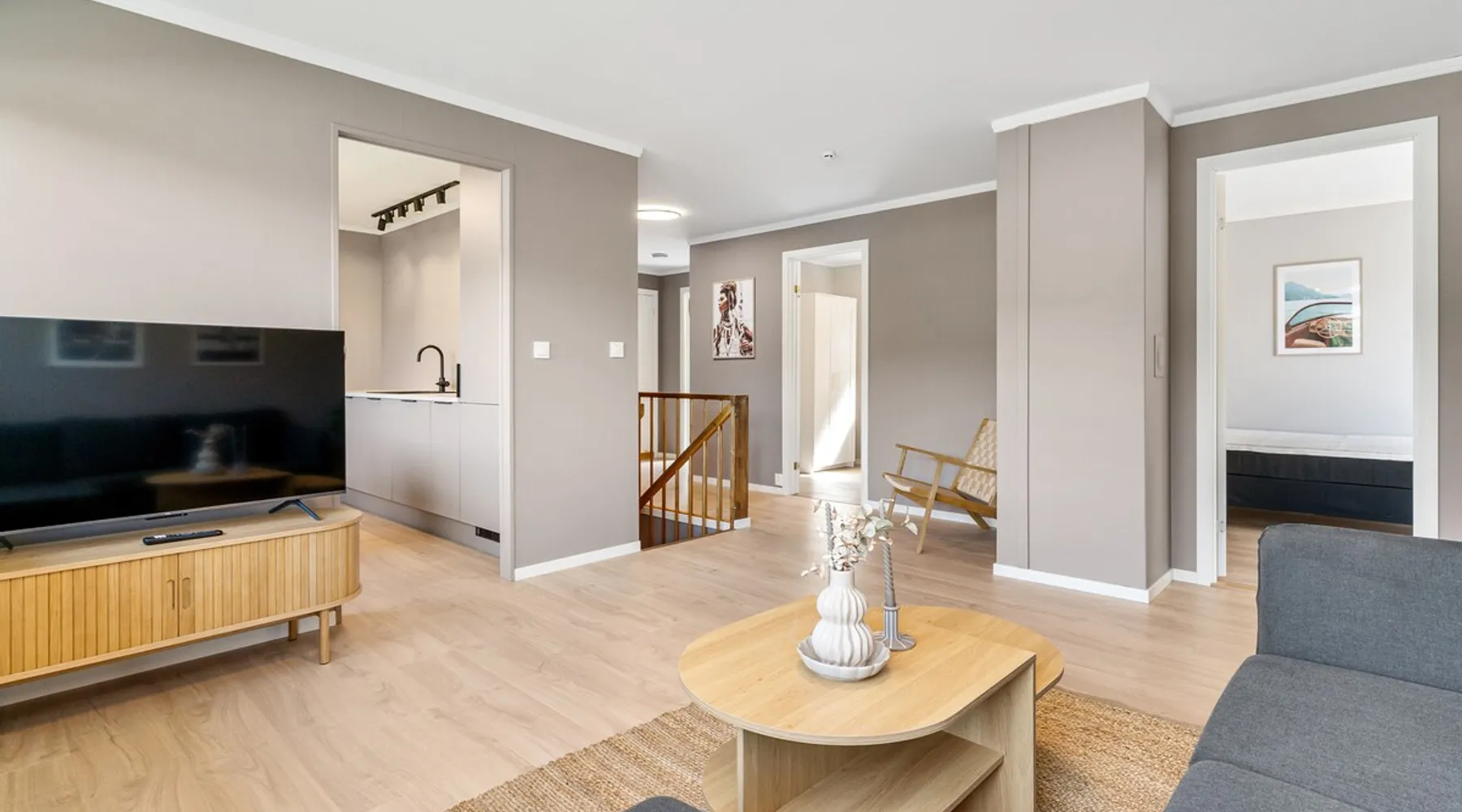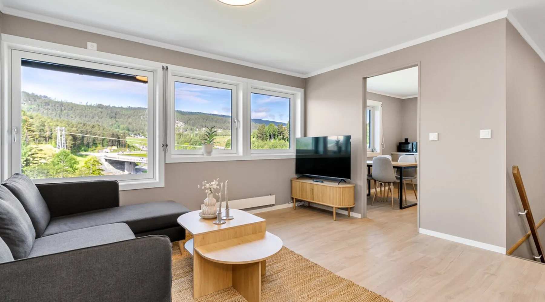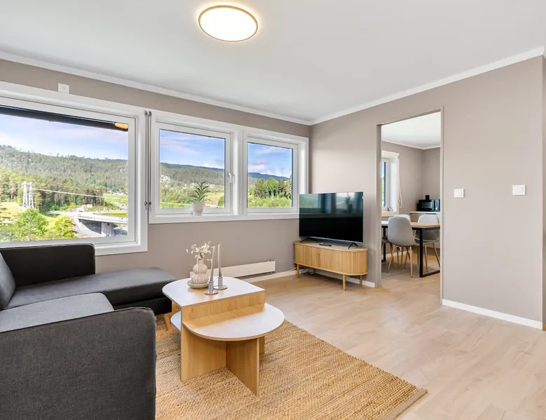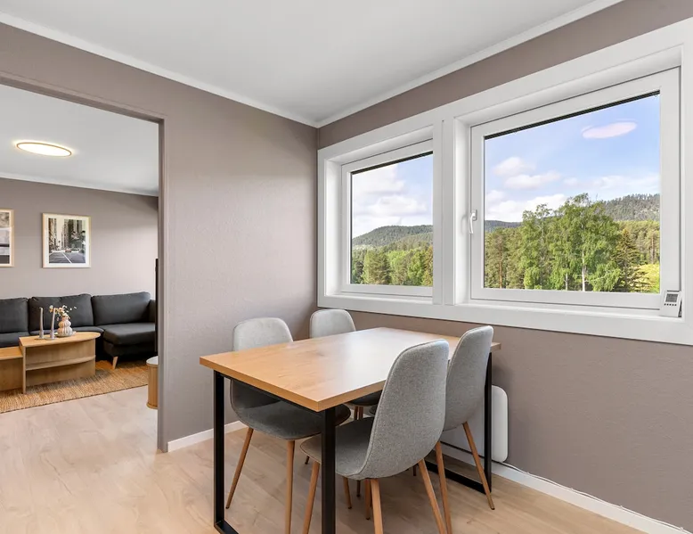Discover our stylish apartment, perfect for both work and relaxation! Short way to the city centre and the technology park gives you everything within easy reach. Enjoy free parking, modern amenities, and comfortable rooms that make longer stays enjoyable. Explore local attractions such as Kongsberg Silverworks, the Ski Center and the Jazz Festival in July. ☆ Lightning fast fiber wifi & SMART TV ☆ SUPER comfortable mattresses ☆ Social zones to retract and make memories together See more ↓ The space DISTANCES → 800m to Teknologiparken → 1 km to Downtown → 200 m to bus stop → 3 km to Skimore Skisenter ENJOY.... Lounge ♡ area with smart TV and lightning fast fiber wifi ♡ Social dining area with 5 seats ♡ Cozy terrace for warm summer evenings ♡ Airy bedrooms with comfortable mattresses and light-tight curtains SLEEPING ARRANGEMENTS ♕ Bedroom 1 1x140cm bed (Small double bed) ♕ Bedroom 2 1x140cm bed (Small double bed) ♔ Bedroom 3 1x120cm bed ♔ Bedroom 4 1x120cm bed ✌! Traveling with kids? We will prepare baby crib and high chair upon request. FLOOR PLAN 1. floor Entryway!Bedroom 1 | Bedroom 2 IN bedroom 3 IN bathroom IN living room IN kitchen TRANSFER AND PARKING ☉ Parking: Option 1: Free parking in the courtyard Option 2: Free parking in the carport closest to the road Guest access You will have access to the whole house. apartment in the basement that can be booked separately if you are a larger group. Please let me know if applicable. CHECK IN AND CHECK OUT ✦ We are more than happy to accommodate your needs for earlier check-in or later checkout. This is booked separately after the stay is booked for an additional fee. We also provide luggage storage to make your stay most pleasant ✦ When you book with us, we offer: ☞ Quick response if anything comes up ☞ Recommendations for the best restaurants and activities ☞ Housekeeping during your stay on request Good quality ☞ linens and towels. Traveling with kids? Ask us about a high chair, travel cot or something else! ♥! TELL US WHAT WE CAN DO TO MAKE YOUR EXPERIENCE EVEN MORE MEMORABLE♥! ! Thanks for reading all the way here! Not decided yet? You can safely press ! ♥in the upper right corner to add us to the wishlist in the meantime! Guest access Guest access You will have access to the whole house. In the basement there is an apartment that can be booked separately if you are a larger group. Please let me know if applicable. CHECK IN AND CHECK OUT ✦ We are more than happy to accommodate your needs for earlier check-in or later checkout. This is booked separately after the stay is booked for an additional fee. We also provide luggage storage to make your stay most pleasant ✦ When you book with us, we offer: ☞ Quick response if anything comes up ☞ Recommendations for the best restaurants and activities ☞ Housekeeping during your stay on request Good quality ☞ linens and towels. Traveling with kids? Ask us about a high chair, travel cot or something else! ♥! TELL US WHAT WE CAN DO TO MAKE YOUR EXPERIENCE EVEN MORE MEMORABLE♥! ! Thank you for reading all the way here! Not decided yet? You can safely press ! ♥in the upper right corner to add us to the wishlist in the meantime!