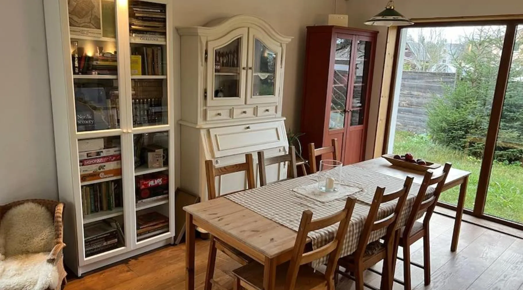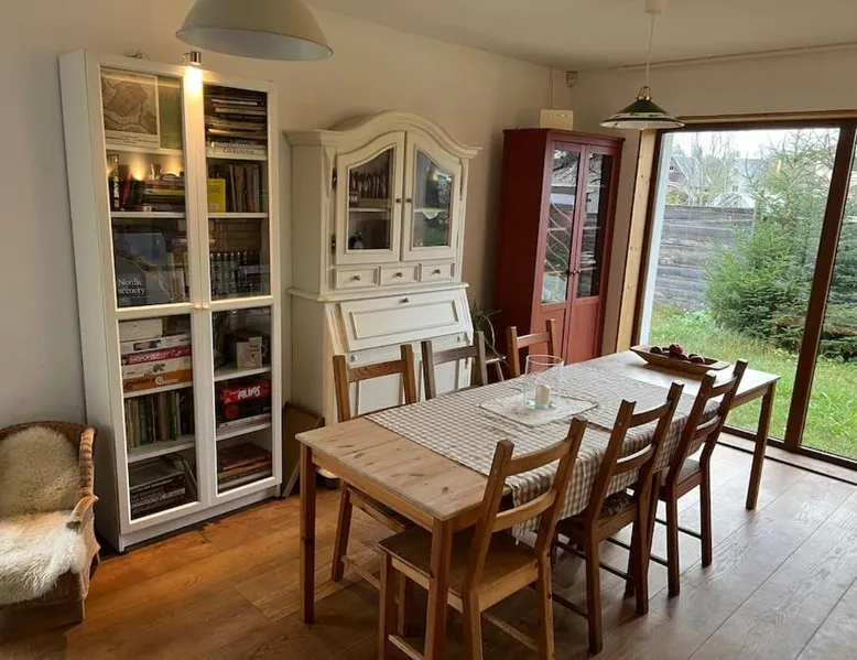 Offering a garden, Quiet and cozy place near forest features accommodations in Dukeliai. This property offers access to a terrace, free private parking, and free Wifi. The apartment has an outdoor fireplace and a sauna. This apartment includes 2 bedrooms, a living room and a flat-screen TV, an equipped kitchen with a dining area, and 1 bathroom with a bath and a washing machine. Towels and bed linen are featured in the apartment. There's also a seating area and a fireplace. For guests with children, the apartment offers an indoor play area and outdoor play equipment. Bastion of the Vilnius Defensive Wall is 11 miles from Quiet and cozy place near forest, while Museum of Occupations and Freedom Fights is 12 miles from the property. Vilnius International Airport is 10 miles away, and the property offers a paid airport shuttle service. Guests will have a special experience as this villa provides a sauna and a fireplace. Boasting a private entrance, this villa includes 1 living room, 2 separate bedrooms and 1 bathroom with a bath and a shower. Meals can be prepared in the kitchen, which is fitted with a stovetop, a refrigerator, a dishwasher and an oven. Featuring a terrace with an inner courtyard view, this villa also offers a washing machine and a flat-screen TV. The unit has 3 beds.