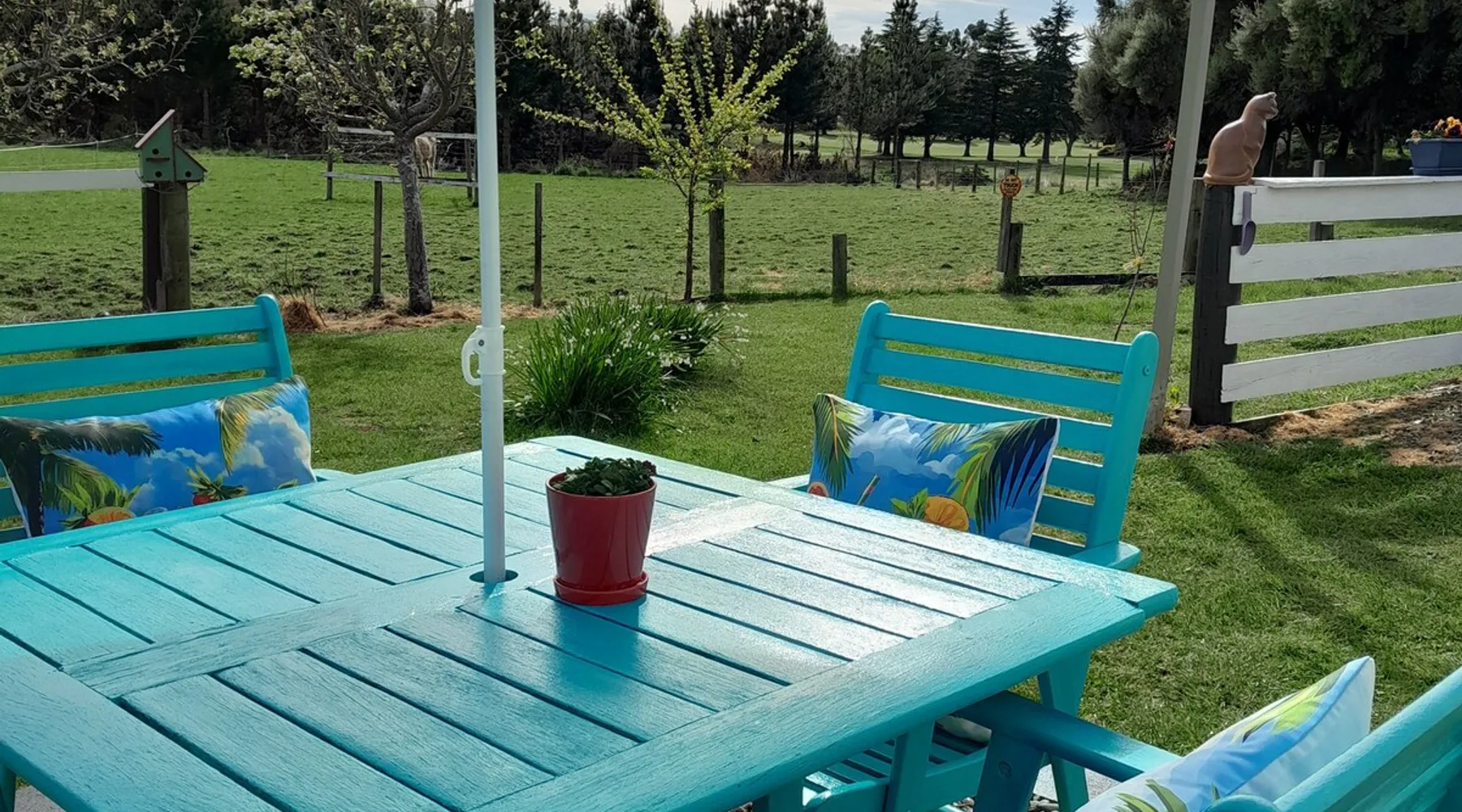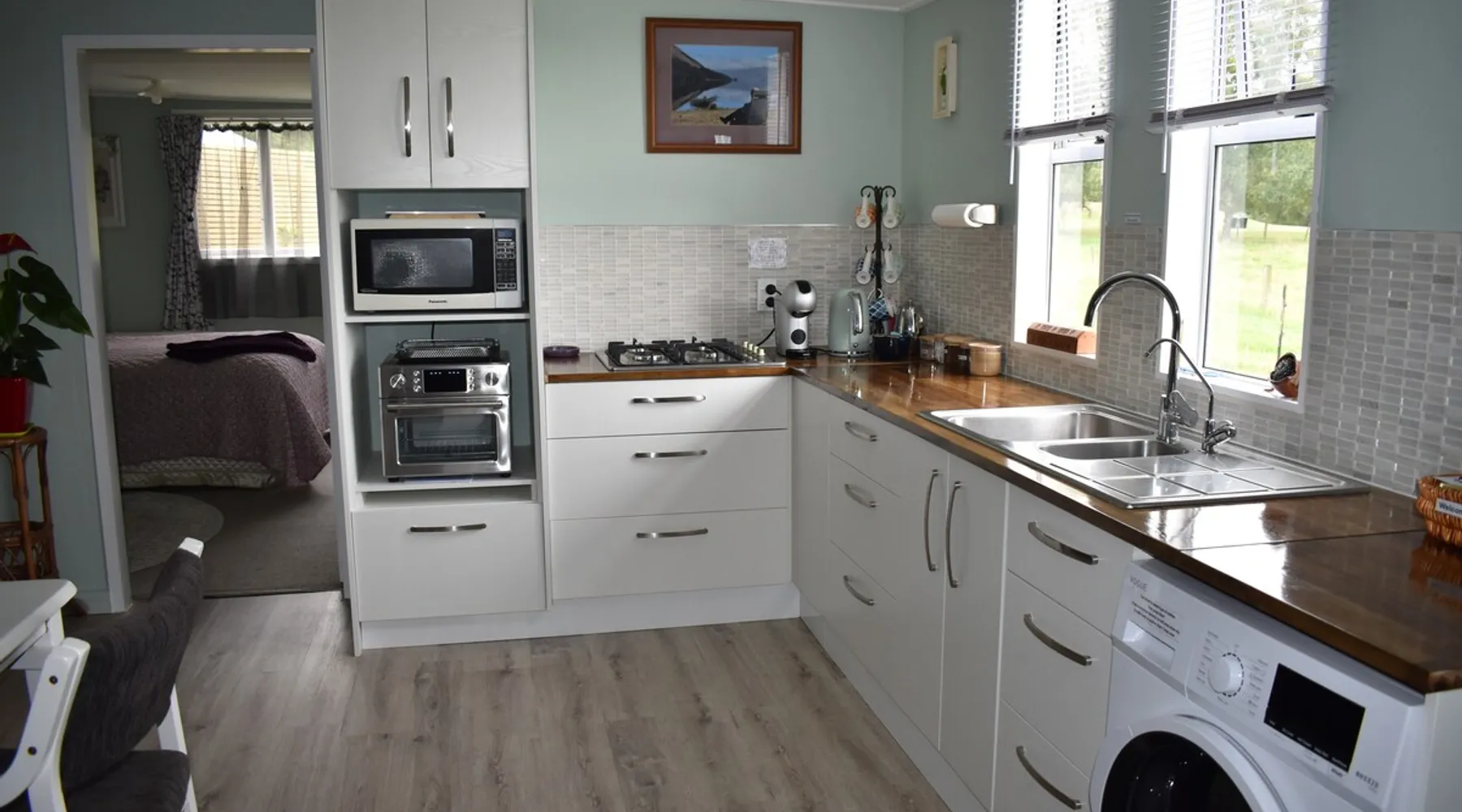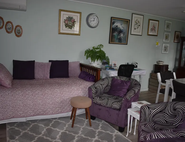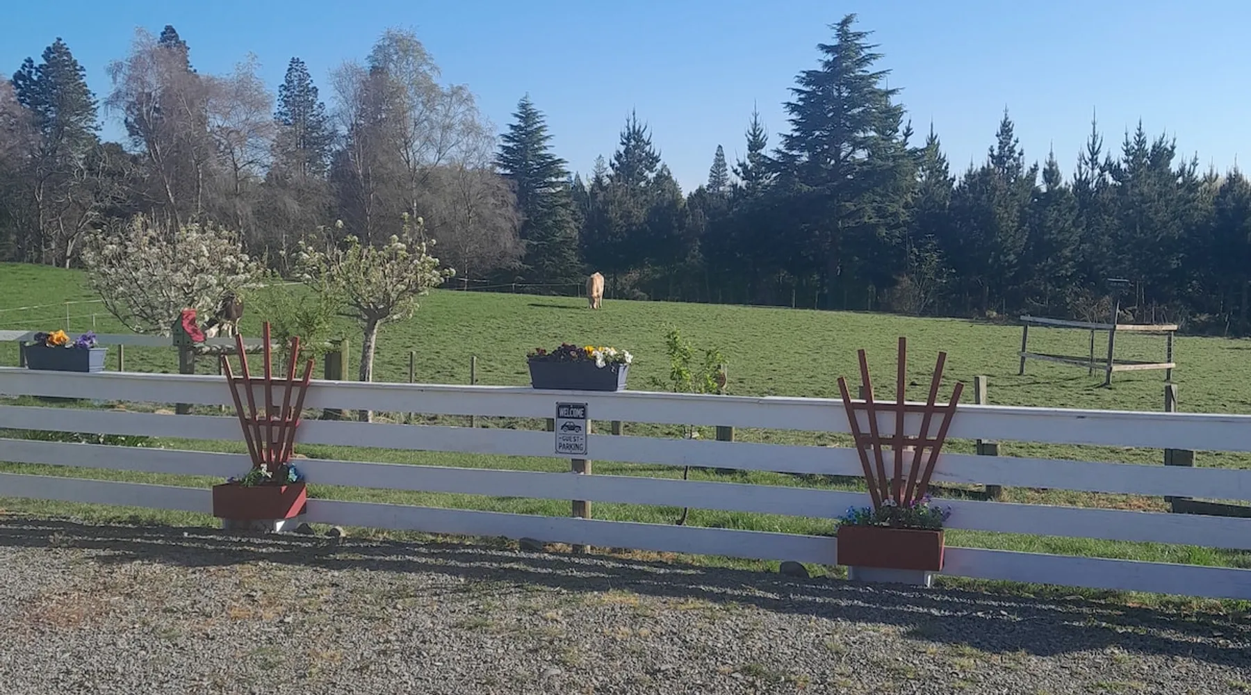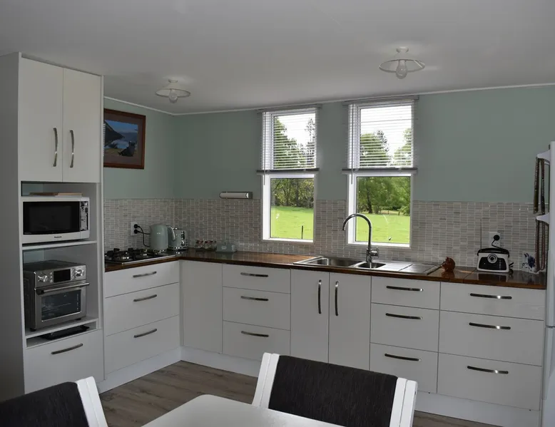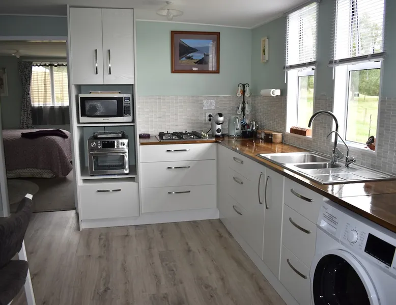 BnB on Bakers proudly offer you our fully self contained Unit, tastefully decorated. With Guests commenting that they feel "at home" the moment they walk in the door. Offering a spacious Living Kitchen Dining Area, a very large Master Bedroom and ensuite. Continental Breakfast included along with tea coffee and also a few treats. Everything you need to enjoy your stay is provided. A place where you can relax. Wonderful friendly Waimate where everywhere you go you will be greeted with a Smile. The space We have 4 acres adjoining The Waimate Golf Course, therefore we have no direct neighbours, creating a peaceful rural setting. Yet only a 3 minute drive to the centre of our wonderful little town. Wake up to Birdsong and amazing sun rises. We also live on the property but the large parking area creates space and privacy between the BnB and our home. Amble parking and turning space Guest access Clearly defined areas. We have 2 small dogs on the property who are in a fenced off area. We also have 2 cows and many electric fences. Other things to note We can provide undercover parking for Motorbikes if required. We also have a paddock available that can be used for horses. Other pets please message us first.