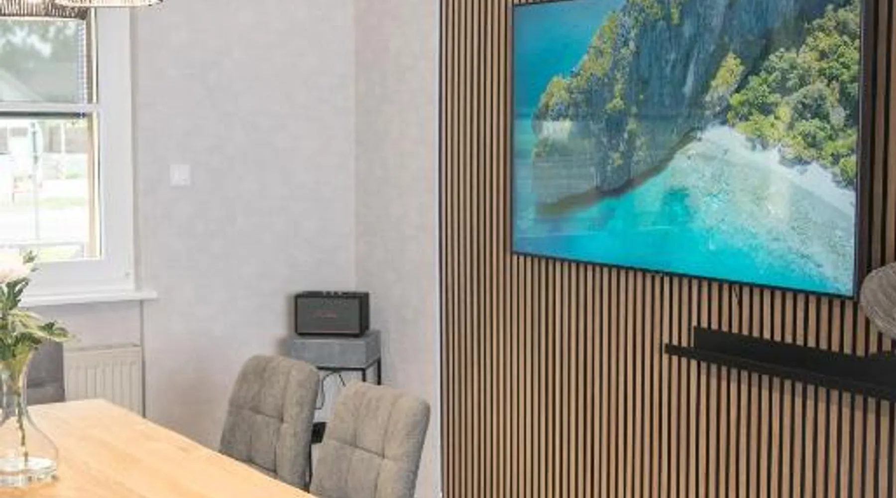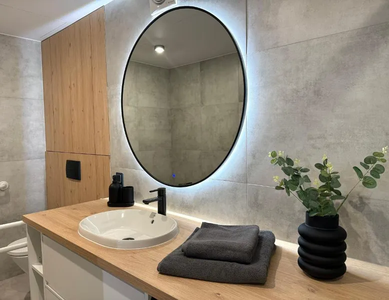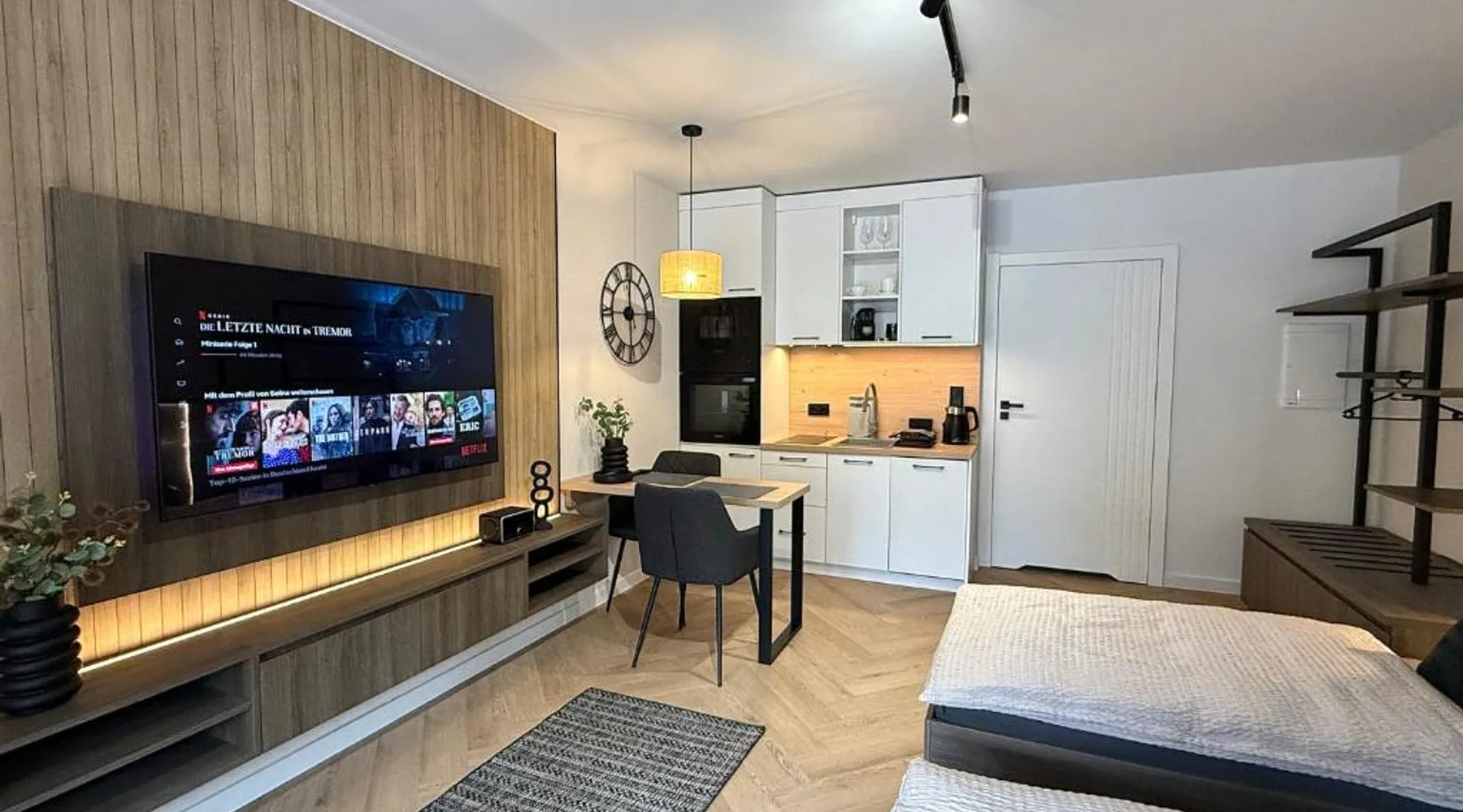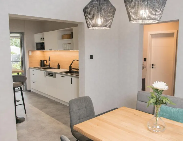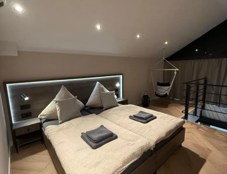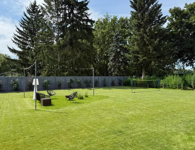 Comfortable Accommodations: Triumph Ferienhäuser & Apartments in Rangsdorf offers a holiday home with a sun terrace and a garden. Guests enjoy free WiFi, air-conditioning, and a fully equipped kitchenette. Convenient Facilities: The property features private check-in and check-out services, an outdoor seating area, picnic spots, bicycle parking, and free on-site private parking. Additional amenities include a washing machine, dishwasher, and streaming services. Prime Location: Located 4.3 mi from Berlin Brandenburg Airport, the holiday home is near attractions such as Topography of Terror (16 mi), Checkpoint Charlie (16 mi), and Potsdamer Platz (16 mi). Guests appreciate the garden views and ground-floor unit. Featuring a private entrance, this air-conditioned holiday home consists of 1 living room, 1 separate bedroom and 2 bathrooms with a walk-in shower and a hairdryer. The well-fitted kitchen has a stovetop, a refrigerator, a dishwasher and kitchenware. This holiday home features a washing machine, soundproof walls, a flat-screen TV with streaming services and a terrace. The unit offers 4 beds.