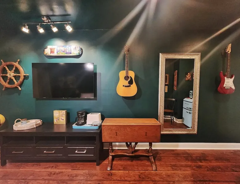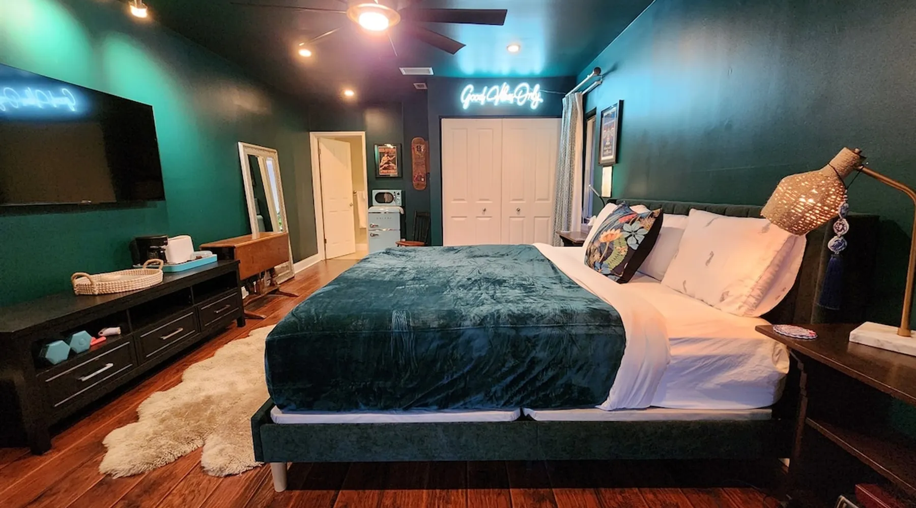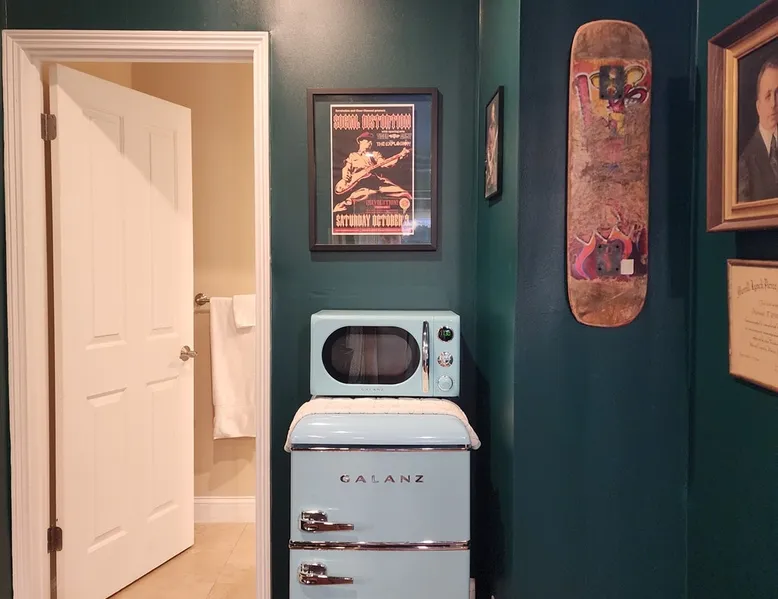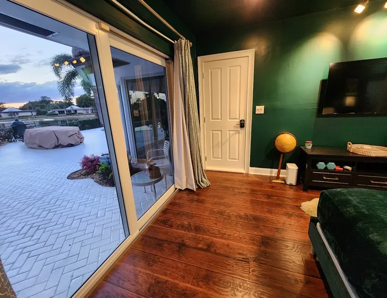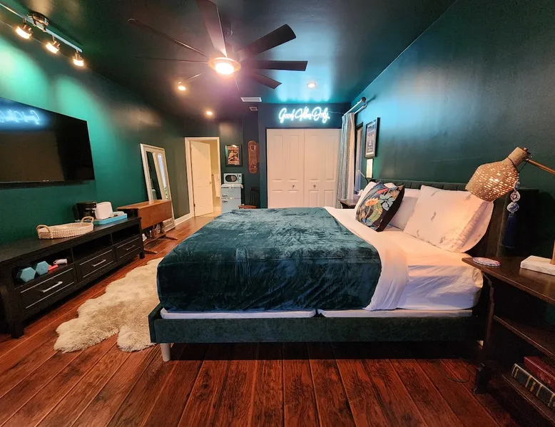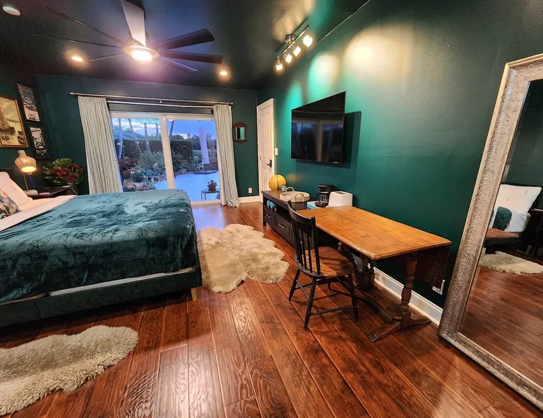 Experience comfort and tranquility in our spacious private suite located in the beautiful Woodlands community. Lake view from the room! The suite features a large king bed and is equipped with a coffee maker, a mini fridge, a freezer, a toaster, microwave, linens, towels, and toiletries. One of the highlights is our stunning glass indoor/outdoor shower, where you can unwind and refresh surrounded by nature. Guest access We are Superhosts!! The backyard is private as we have dogs that play in the back. But if you like dogs, feel free to go out and say hi! That being said, you may hear them from time to time. And our bird Marty McFly. But please note, that the backyard space is private and not for guest use. This is a private room off of the main house. You have private access and your own space. There is no access to the main house and there are no shared spaces. You may hear minimal sound from the main house, but nothing to disturb your rest. We welcome you to our home! :)
