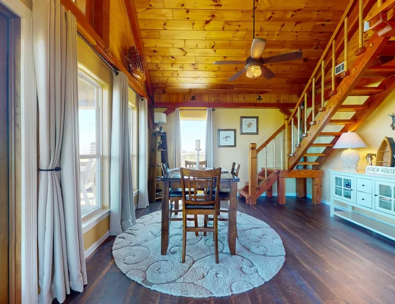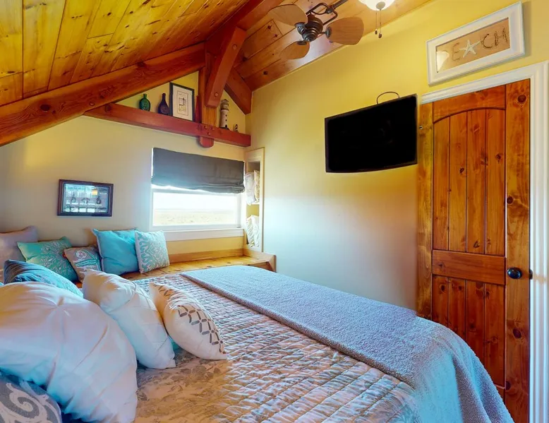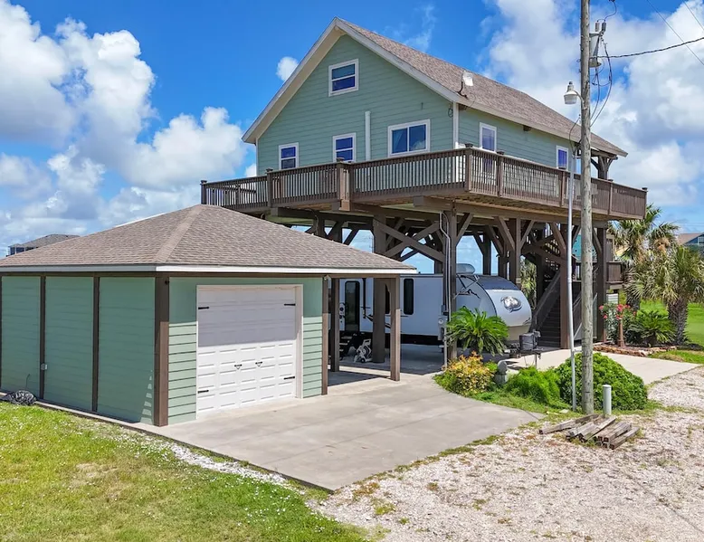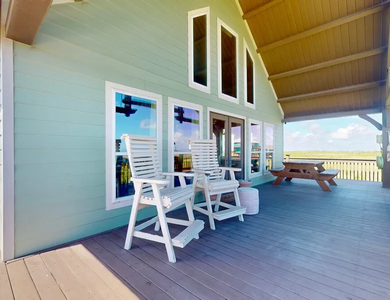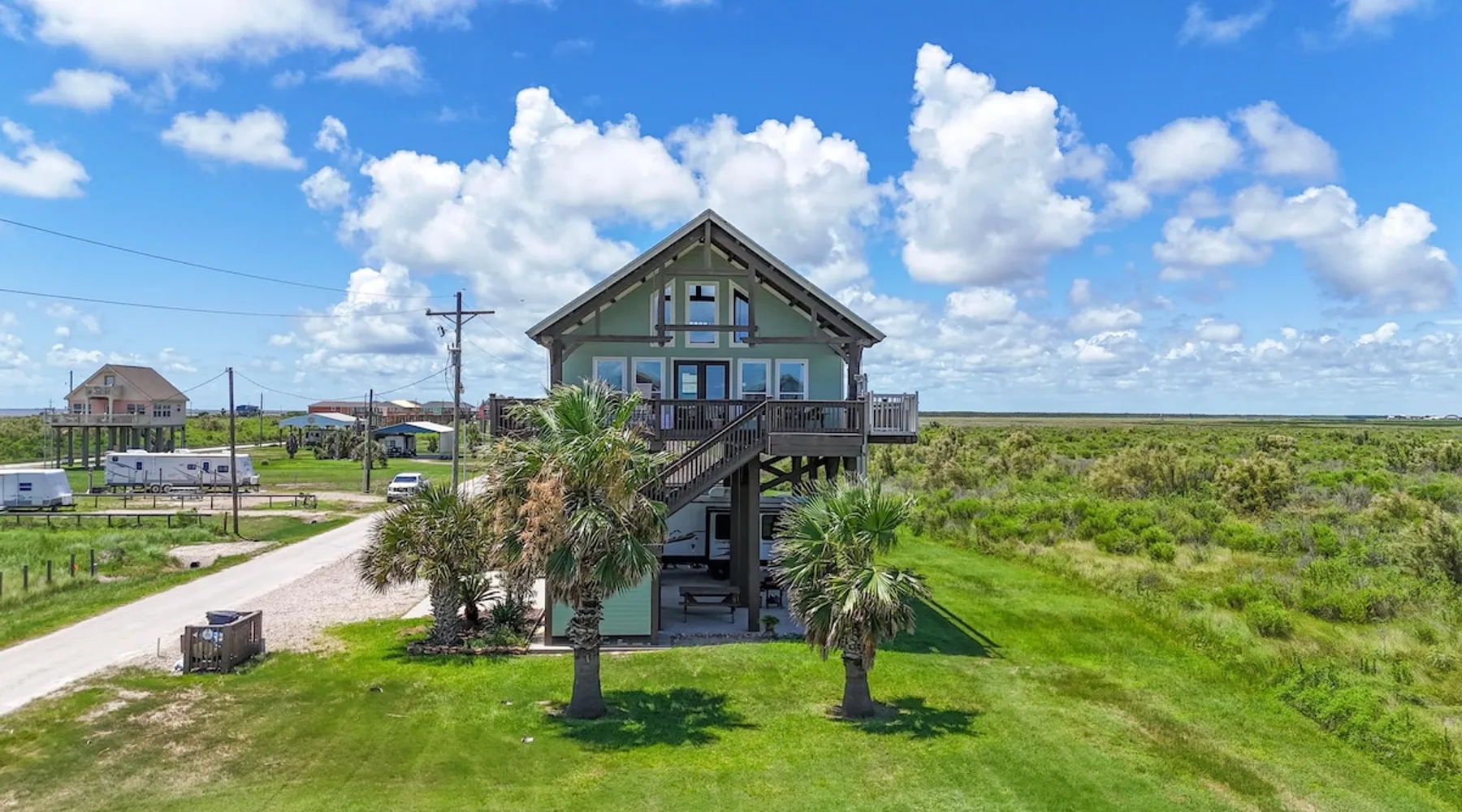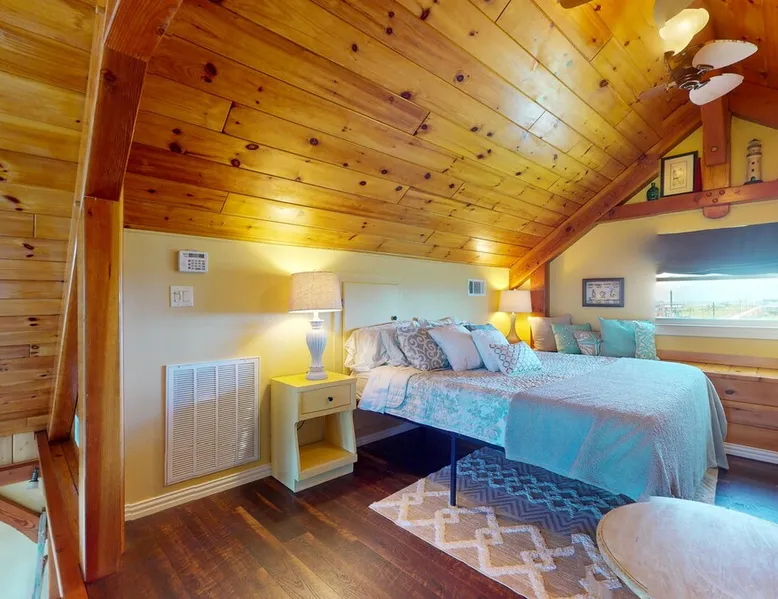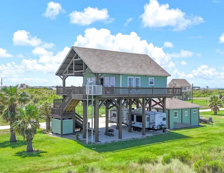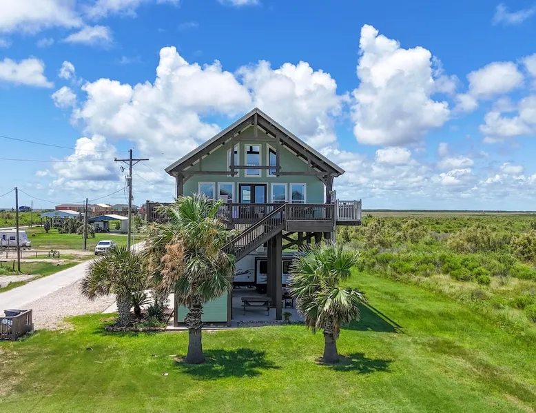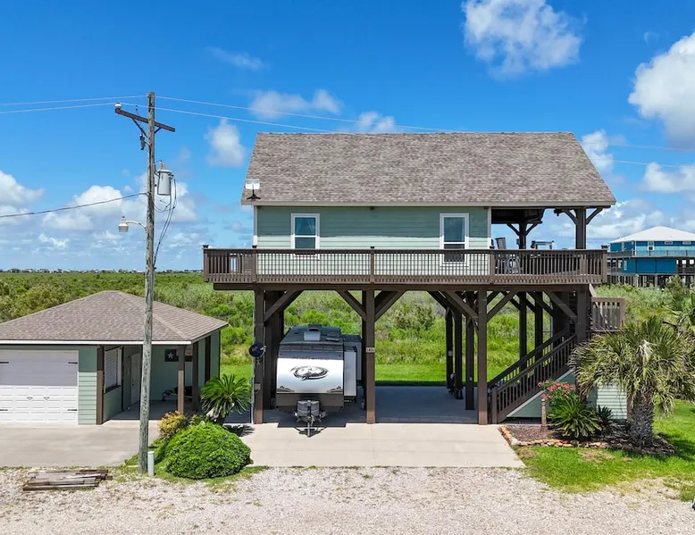 Charming home with unlimited water views! The space Bay Side Birdhouse is a beautiful home with unobstructed views of the Gulf of Mexico. Located in the quiet Gilchrist area, this home sleeps 4 comfortably. The furnished deck is a great place to relax and enjoy the beauty of the Bolivar Peninsula. You will be wowed by the custom woodwork in the open living/dining/kitchen area. The windows provide a light bright atmosphere with beach views (even from the loft)! The well-stocked kitchen is perfect for preparing and serving meals, or if you prefer you can utilize the charcoal grill downstairs and cook out for your friends. There is a dining table inside and a picnic table out on the deck - plenty of room for meals or card games. The upstairs loft has a king bed with a full bathroom, and downstairs has another king bed with a full bathroom. This home is perfect for two couples or a small family, sleeping 4 with private spaces for everyone. Other amenities include a washer and dryer, and high speed internet for your convenience. You will also love the downstairs hot and cold outdoor shower for rinsing off a day in the sand and surf. Cargo lift is available for guest use for an additional fee. No pets are allowed. All Swedes Real Estate vacation rentals are non-smoking properties. Swedes does not rent to guests under 25 years of age. The homeowner does not provide linens and towels, but, if you choose, they are available upon request from our linen service (additional fee applies).