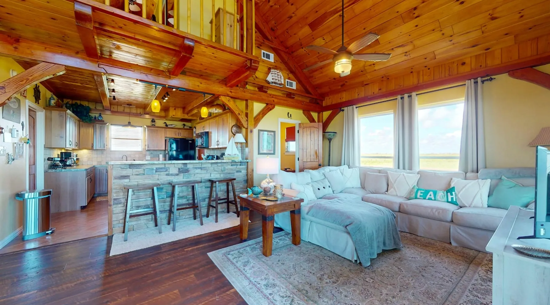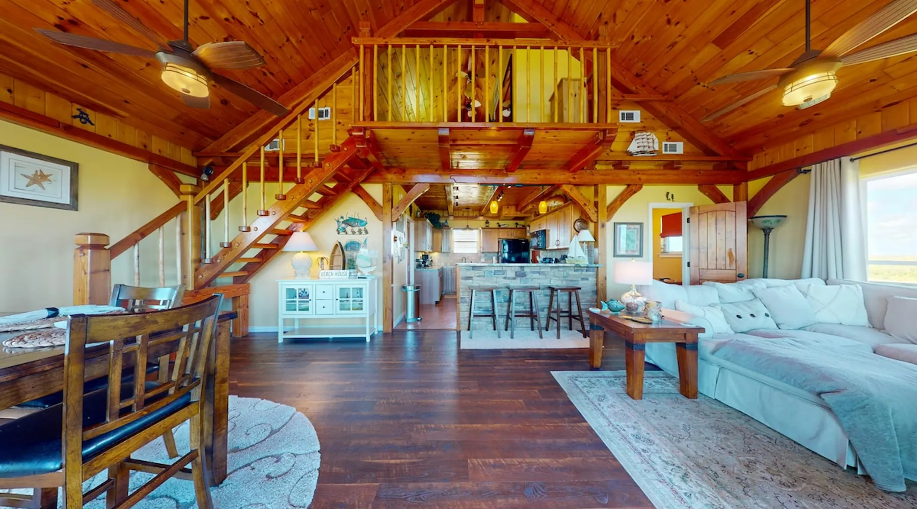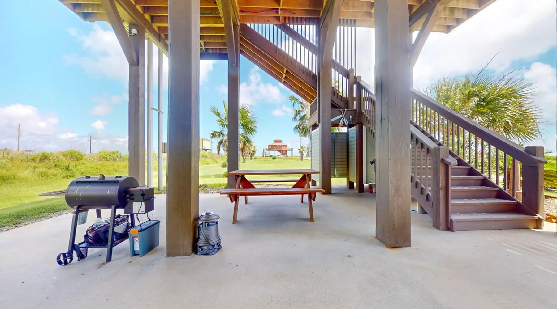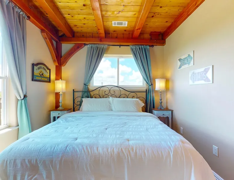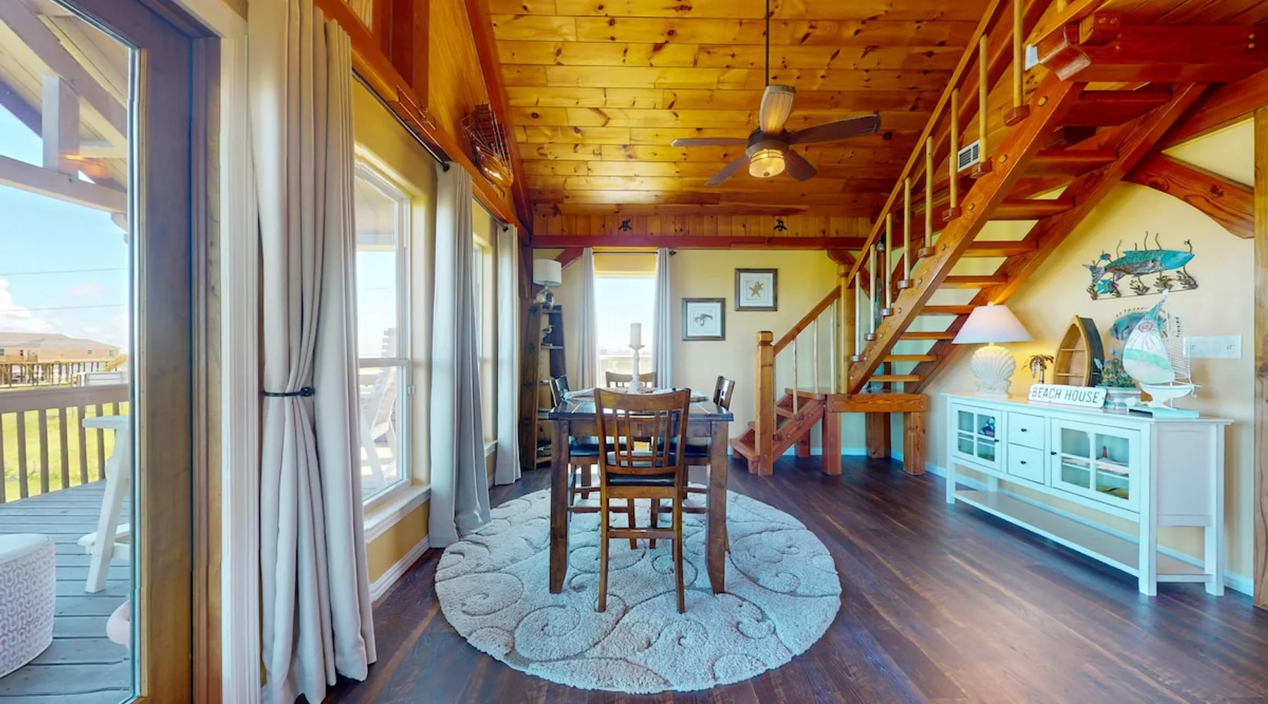 Charming home with unlimited water views! The space Bay Side Birdhouse is a beautiful home with unobstructed views of the Gulf of Mexico. Located in the quiet Gilchrist area, this home sleeps 4 comfortably. The furnished deck is a great place to relax and enjoy the beauty of the Bolivar Peninsula. You will be wowed by the custom woodwork in the open living/dining/kitchen area. The windows provide a light bright atmosphere with beach views (even from the loft)! The well-stocked kitchen is perfect for preparing and serving meals, or if you prefer you can utilize the charcoal grill downstairs and cook out for your friends. There is a dining table inside and a picnic table out on the deck - plenty of room for meals or card games. The upstairs loft has a king bed with a full bathroom, and downstairs has another king bed with a full bathroom. This home is perfect for two couples or a small family, sleeping 4 with private spaces for everyone. Other amenities include a washer and dryer, and high speed internet for your convenience. You will also love the downstairs hot and cold outdoor shower for rinsing off a day in the sand and surf. Cargo lift is available for guest use for an additional fee. No pets are allowed. All Swedes Real Estate vacation rentals are non-smoking properties. Swedes does not rent to guests under 25 years of age. The homeowner does not provide linens and towels, but, if you choose, they are available upon request from our linen service (additional fee applies).