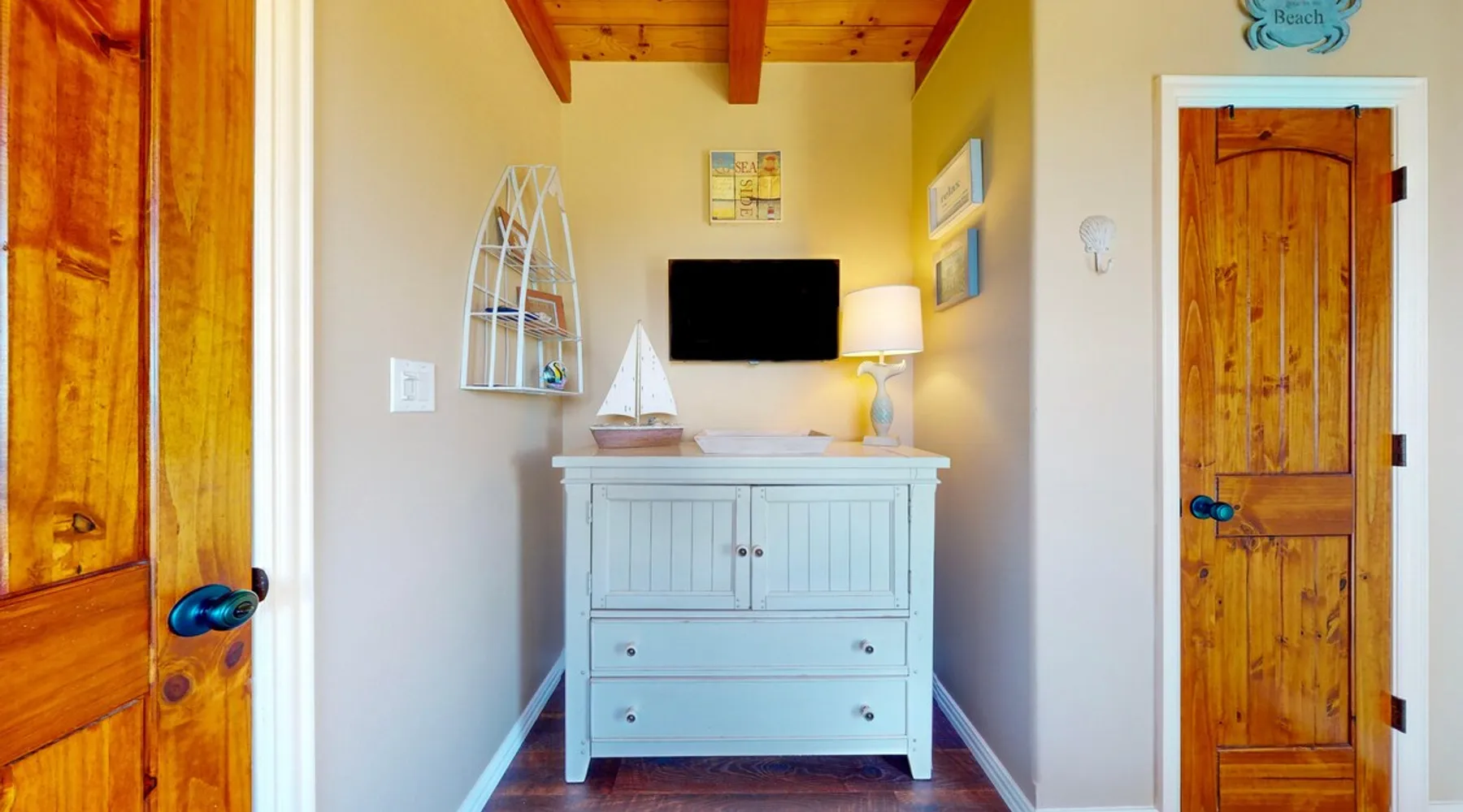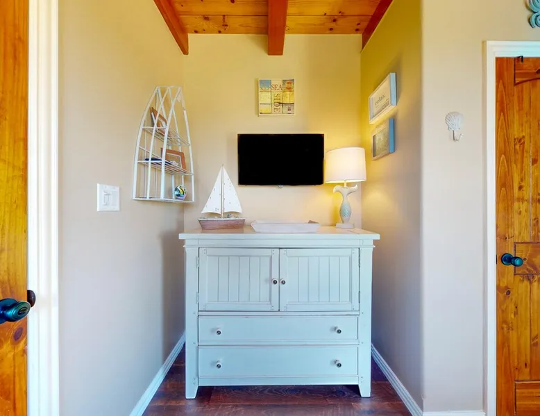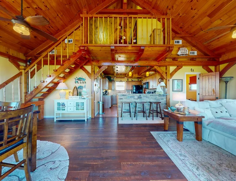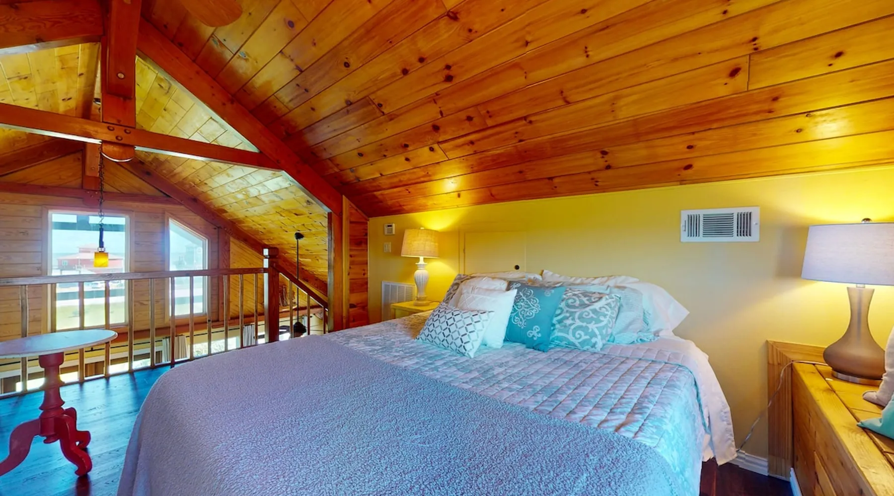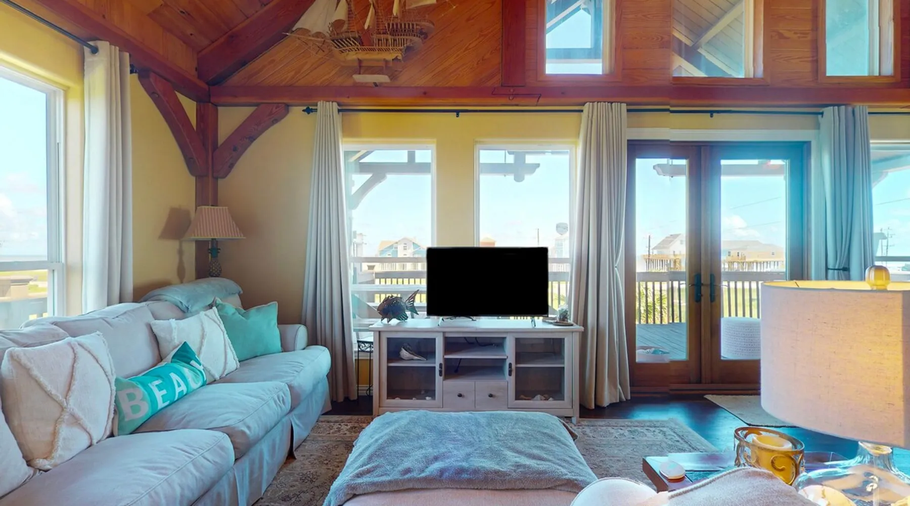 Charming home with unlimited water views! The space Bay Side Birdhouse is a beautiful home with unobstructed views of the Gulf of Mexico. Located in the quiet Gilchrist area, this home sleeps 4 comfortably. The furnished deck is a great place to relax and enjoy the beauty of the Bolivar Peninsula. You will be wowed by the custom woodwork in the open living/dining/kitchen area. The windows provide a light bright atmosphere with beach views (even from the loft)! The well-stocked kitchen is perfect for preparing and serving meals, or if you prefer you can utilize the charcoal grill downstairs and cook out for your friends. There is a dining table inside and a picnic table out on the deck - plenty of room for meals or card games. The upstairs loft has a king bed with a full bathroom, and downstairs has another king bed with a full bathroom. This home is perfect for two couples or a small family, sleeping 4 with private spaces for everyone. Other amenities include a washer and dryer, and high speed internet for your convenience. You will also love the downstairs hot and cold outdoor shower for rinsing off a day in the sand and surf. Cargo lift is available for guest use for an additional fee. No pets are allowed. All Swedes Real Estate vacation rentals are non-smoking properties. Swedes does not rent to guests under 25 years of age. The homeowner does not provide linens and towels, but, if you choose, they are available upon request from our linen service (additional fee applies).