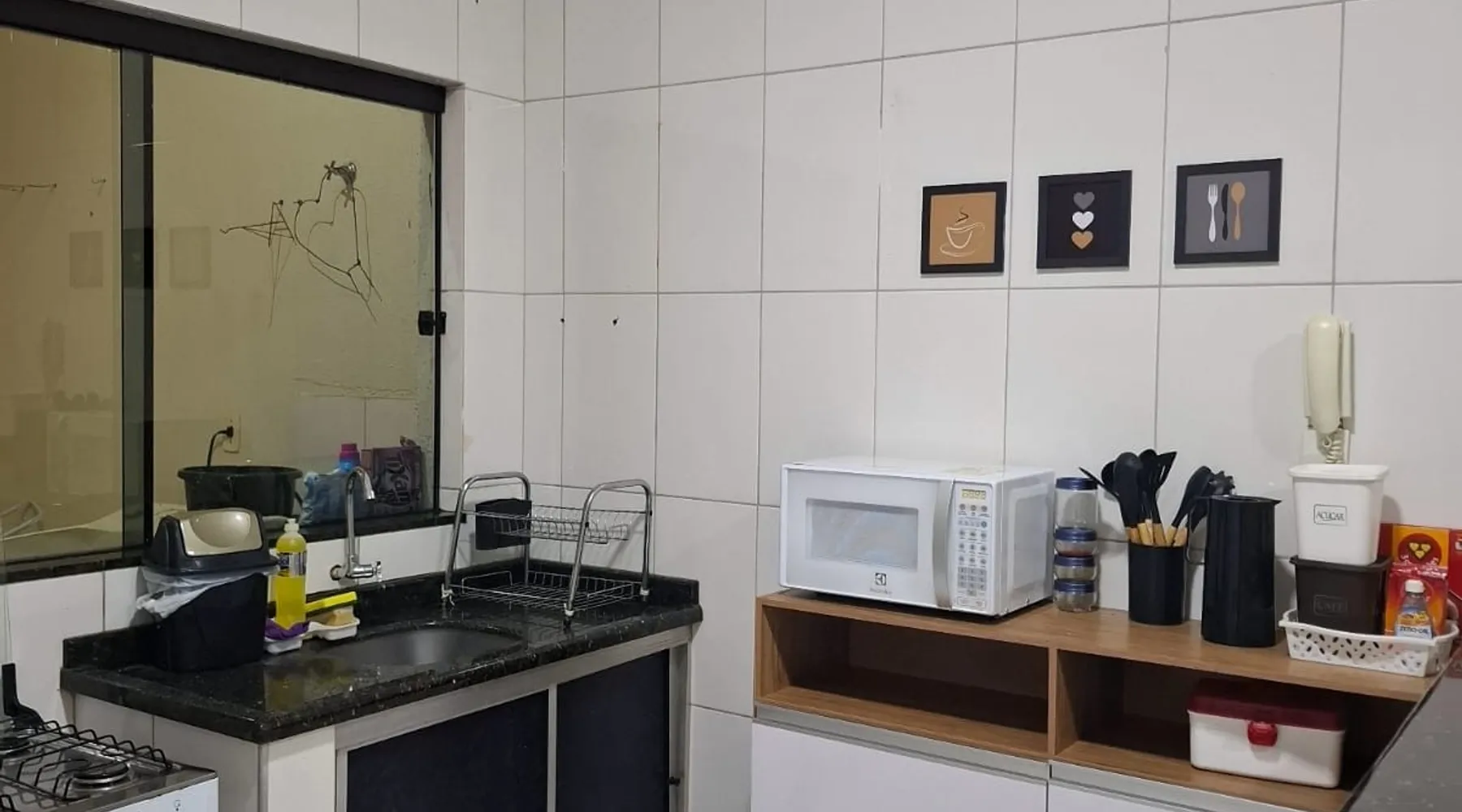 Simple and elegant accommodation, ideal for work groups of up to 5 people. With 2 air-conditioned bedrooms, 5 single beds and 1 sofa bed, 1 suite, the house has a living room with TV, full kitchen, 2 bathrooms, laundry room and covered garage for 1 vehicle. Enjoy free Wi-Fi and proximity to markets, shops and restaurants. Check out the discounts for periods! The space Elegant apartment with great layout of the rooms, large bedrooms and bathrooms, with an integrated living room and kitchen, 1 suite, 1 bedroom, 1 guest bathroom, laundry and covered parking for 1 vehicle, located on the 1st floor. Guest access The guest will have access to all the accommodation described in the space and photos presented. Other things to note It does not have elevators in the Building the access will be through the staircase, but broad stairs. Our accommodation, located in a convenient and accessible area. Nearby, you'll find dining options at great restaurants. For your convenience during your stay, we recommend grocery shopping before check-in. Comper Supermarket, Assaí Wholesaler and Atacadão, located nearby, are great options for stocking up. The space is accessible by paved road, close to important points such as the Center, Electoral Registry, Assaí, Comper and Atacadão. In the midst of a privileged location, our space is always delivered clean and ready for use, with bed linens, pillows, blankets, towels and a fully equipped kitchen, including dishes, glasses, cutlery, pots and essential appliances. It is essential that the tenant carefully read the house rules before staying. This attention helps avoid surprises that could make the rental uncomfortable. Our main goal is to provide a quality experience, ensuring that you and the other occupants enjoy a great stay. We appreciate your cooperation and wish you a pleasant season!