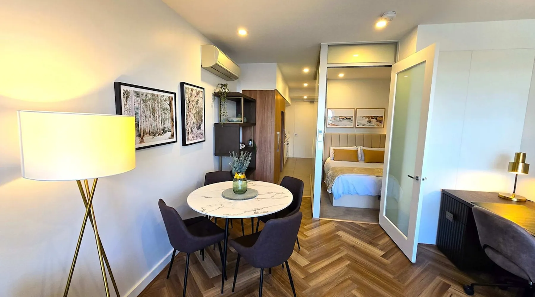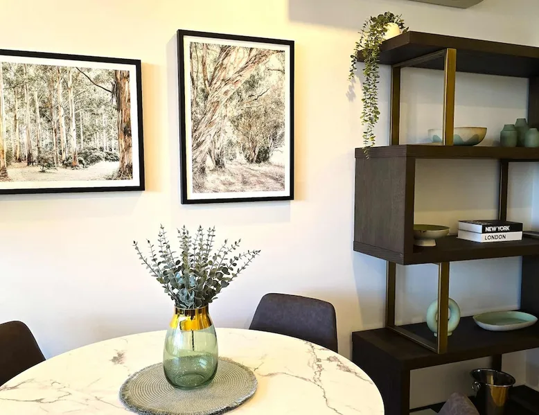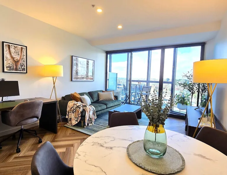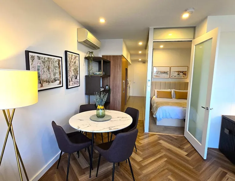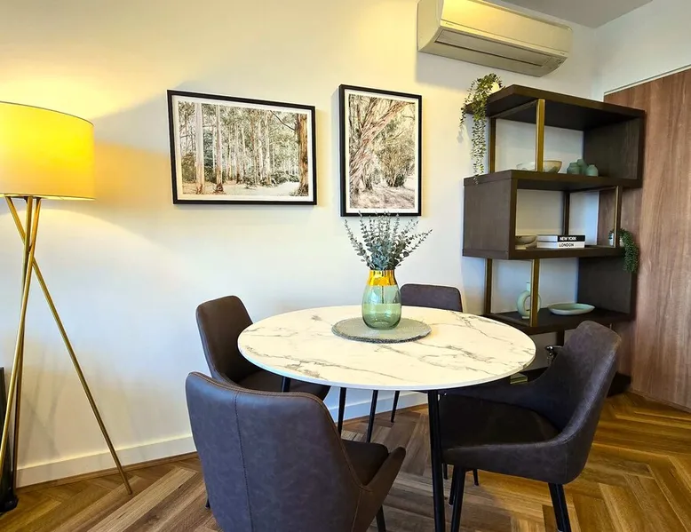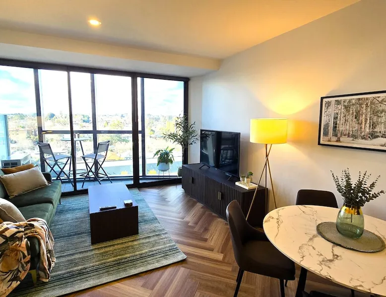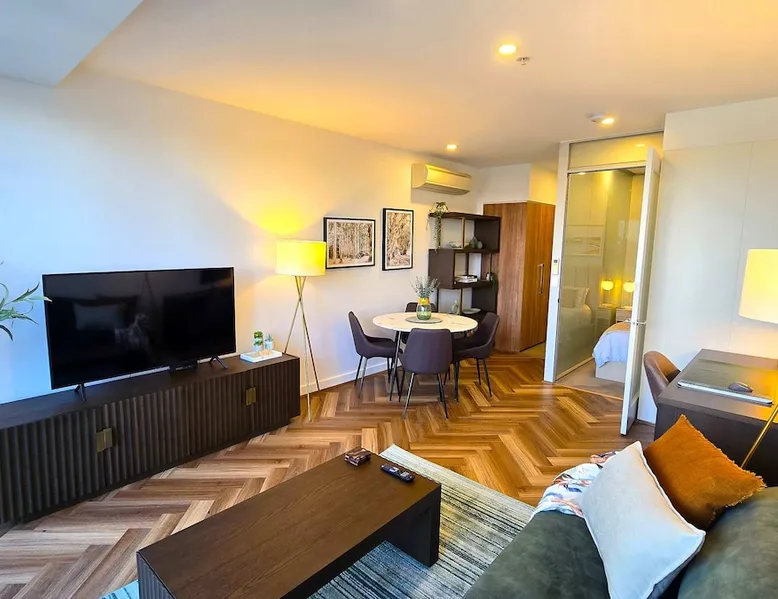 ***NEW LISTING*** Perfect for business travellers, those looking for a high standard of accommodation or those needing a dedicated work-from-home space, this stylish newly-furnished 1 bedroom central South Yarra apartment has a access to the building's gym, pool, sauna, hot tub, gardens and tennis court. Beautiful views over the gardens await guests from the balcony. Managed by Holiday Rentals Australia you can rest assured your stay is in safe hands. The space This stunningly-furnished one-bedroom apartment features colour themes taken from the beautiful photo artworks throughout the property of the Australian countryside. Included is a hard-to-find, dedicated work area with desk for the travelling executive or seasoned work-from-homer wanting a break from their usual base. A 21" monitor is included, along with a wireless USB/Bluetooth keyboard and mouse, multiple HDMI cable adapters, and a variety of USB docks. Fast, unlimited internet is included for guests use. The living room has a wifi-connected smart TV with access to streaming services subject to logging in with your own account. A large and comfortable velvet sofa and views through the compact balcony out over the gardens, tennis courts and beyond. There is built-in air conditioning and heating in the living room which is enough to cool or heat the whole apartment plus a portable fan in the bedroom if needed. The compact bedroom has a queen bed with an award-winning Ecosa Sleep memory foam mattress with two pillows for each side of the bed to ensure a wonderful night's sleep. All our beds come with a fitted bottom sheet and an all-seasons weight doona/duvet/bed cover plus an optional top sheet for those who like to use them. There is also a blanket if needed on colder nights. Despite the bedroom being of narrow dimensions, we have chosen to fit a queen bed to enhance sleeping comfort whilst forsaking some floor space. There is a small pathway on each side of the bed for access but space there is not plentiful. Next to each side of the bed is a wireless phone charging pad and one side additionally features a combined iWatch and headphones wireless charger. The well-equipped kitchen has a drawer-style dishwasher, electric oven and mixed gas stove top, large fridge/freezer, Nespresso-compatible coffee machine, blender, microwave and all plates/glasses/cutlery etc needed for cooking during your stay. The apartment also has a separate combined washing machine/dryer in the laundry area. The bathroom features a twin head rainfall shower to help you unwind and two bath towel are provided for each guest. One allocated parking space is available for guest use in the secure underground car park. Please note there is a strict height limit of 2m for car park access. If you are coming with a car to park please let us know in advance. All bedding and towels are included for four people along with beginner basics such as tea, coffee, sugar, milk, shampoo, bodywash and toilet paper to get you through the first few days but please note this is not a serviced apartment and no cleaning is done as standard during your stay. If you would like your apartment professionally cleaned and bedding/towels refreshed, please let us know and this can be done for a fee. Please note if your stay is to include the nights of Christmas or New Year's Eve a 3 night minimum stay is required. We're a kind, honest, hard-working team that genuinely wants to deliver 5 star guest stays. During your stay please reach out if we can help you in any way; we can only help if we know and we're dedicated to making your visit a happy one. This property is managed by Holiday Rentals Australia, a professional and licenced dedicated holiday rental agency. By choosing to book with professionals, you can be assured your stay is in the best possible hands. All guests are urged to read the House Rules prior to completing their booking, these can be found on the final booking page along with Airbnb's Terms and Conditions. Guest access You have access to the whole apartment for your stay and no internal space is shared. Other things to note All the apartments we manage come with a detailed welcome letter highlighting everything you need to know about inside the apartment and building. Instruction manuals are also available so you know how everything works to ensure you can get the most out of your stay.There is also a local map with some highlights such as the local supermarket, restaurants and bars and transport options. Please note if your stay is to include the nights of Christmas or New Year's Eve a 3 night minimum stay is required. Prior to arrival we ask all guests to quickly fill in some contact information and tell them a little bit more about how we hope they'll look after the apartment. Please note as we continue to improve the property over time the furniture and furnishings may change from those shown in the photos.