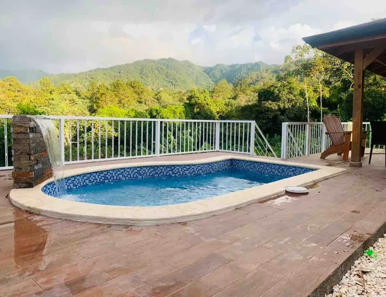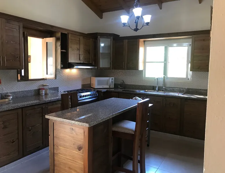 Beautiful Residential House private in Jarabacoa with comfortable rooms at the foot of God's Hammock Mountain. Quiet, fresh vibe. Spectacular panoramic views. Hot water, wifi, 5min from the village center and only minutes from Salto de Baiguate. The house has a Jacuzzi, two levels, 2 kitchens with stove, fridge ,kitchenware and separate entrances. It has an ideal gazebo to enjoy as a family for long weeks, weekends, or weekends. The space Gazebo, patio