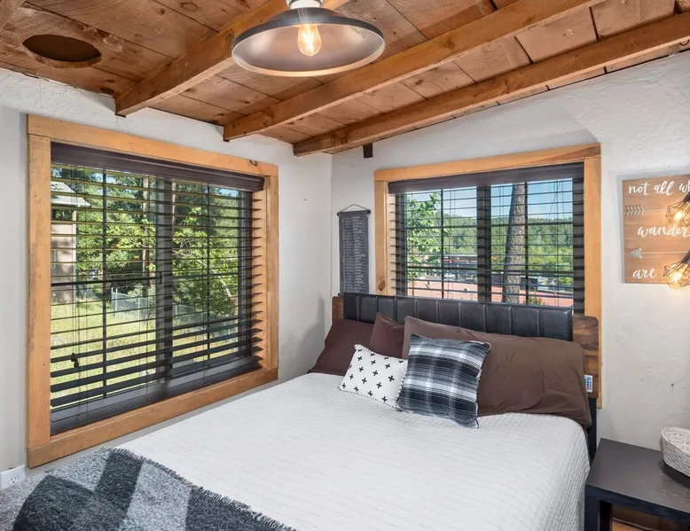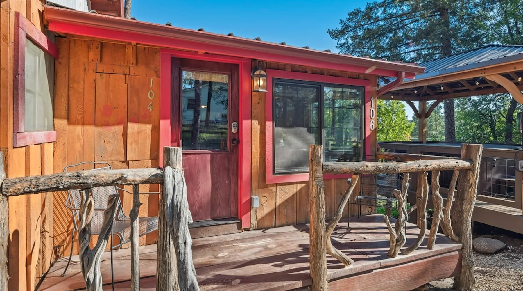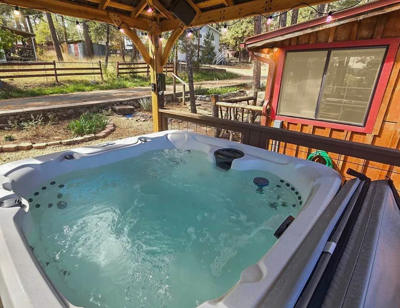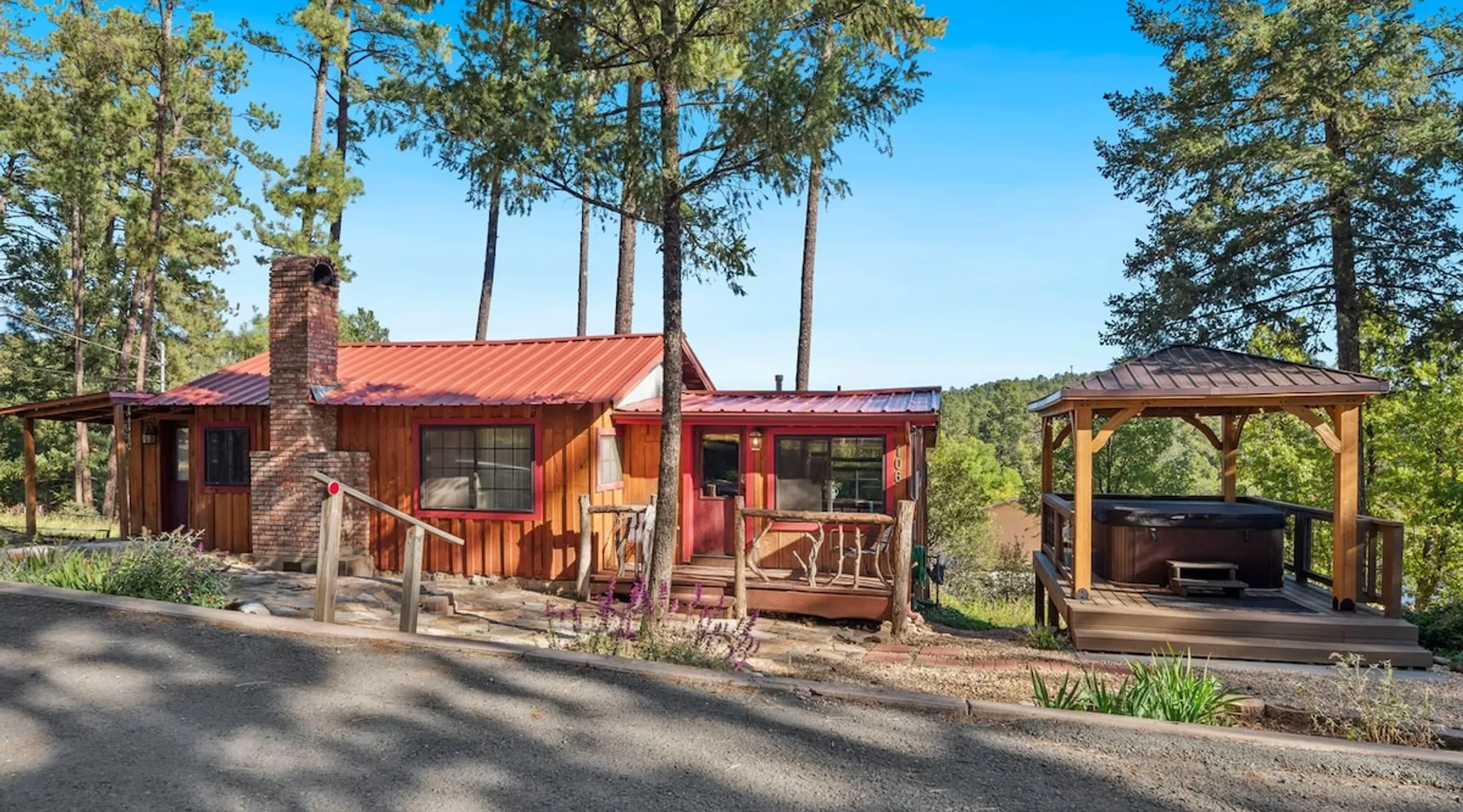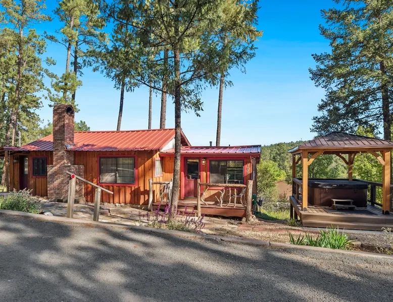 2 Bed | 1 Bath | Sleeps 4 Escape to Bella Luna, a beautiful 2-bedroom, 1-bathroom cabin nestled in the heart of Ruidoso. Amenities: Master Bedroom w/ King Bed, Guests Bedroom w/ Queen Bed, Private Hot Tub, Full Bathroom w/ Walk-in Shower, Stocked Kitchen w/ Dishwasher, 2 Living spaces, Wood Burning Fireplace (Firelogs Only Please), Wood Burning Stove (Firelogs Only Please), Centrally Located, Central Heat, Split Unit A/C, WIFI, Streaming Capabilities, Pet Friendly w/ additional fee. The space 2 Bed | 1 Bath | Sleeps 4 Escape to Bella Luna, a beautifully renovated 2-bedroom, 1-bathroom cabin nestled in the heart of Ruidoso, NM. Perfect for couples or small families, this charming getaway comfortably sleeps four guests. 🛏️ Comfortable Accommodations Master Bedroom: King-sized bed for restful nights. Guest Bedroom: Queen-sized bed with cozy linens. 🍽️ Fully Equipped Kitchen Prepare your favorite meals in a kitchen featuring modern appliances, including a dishwasher, beverage station, and a new refrigerator. 🔥 Inviting Living Spaces Relax in two separate living areas: Lower Level: Snuggle up by the wood-burning stove or fireplace (firelogs only). Upper Level: Enjoy board games or a glass of wine in a cozy setting. 🌄 Outdoor Amenities Private Hot Tub: Unwind under the stars after a day of adventure. Quaint Balcony: Sip your morning coffee while taking in the serene surroundings. Propane Grill: Perfect for barbecuing steaks or veggies. 🐾 Pet-Friendly Bring along your furry friend! Bella Luna welcomes pets with an additional fee. 📶 Modern Conveniences Wi-Fi: Stay connected during your stay. Smart TV: Stream your favorite shows and movies. Climate Control: Split unit A/C and heat ensure year-round comfort. 📍 Prime Location Located near Midtown Ruidoso, Bella Luna is just a short walk to restaurants, attractions, and shops. Keep an eye out for local wildlife, including deer, elk, wild horses, and even the occasional fox or black bear during warmer months. Amenities: Master Bedroom w/ King Bed, Guests Bedroom w/ Queen Bed, Private Hot Tub, Full Bathroom w/ Walk-in Shower, Stocked Kitchen w/ Dishwasher, 2 Living spaces, Wood Burning Fireplace, Wood Burning Stove, Centrally Located, Central Heat, Split Unit A/C, WIFI, Streaming Capabilities, Pet Friendly w/ additional fee. Guest access You will go directly to the cabin to check in. If you have not received a text message from us by 4pm, please call the office. Please make sure you have signed your rental agreement that you were sent directly to your email before you call.