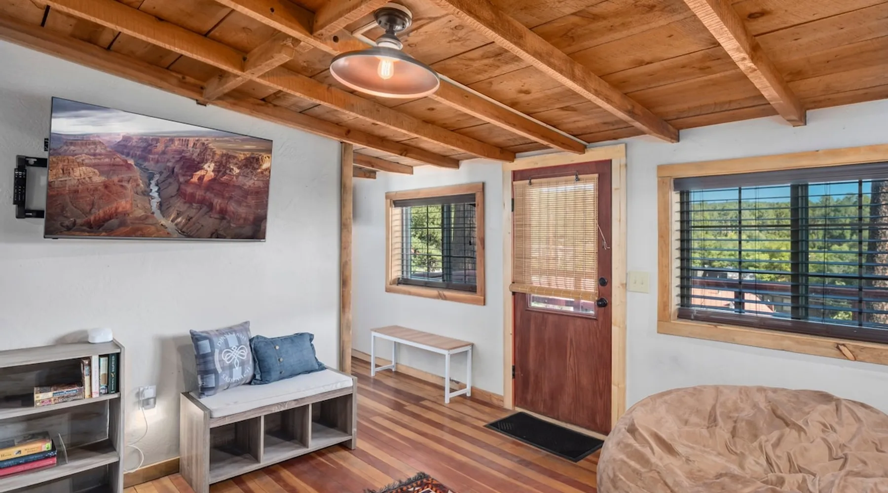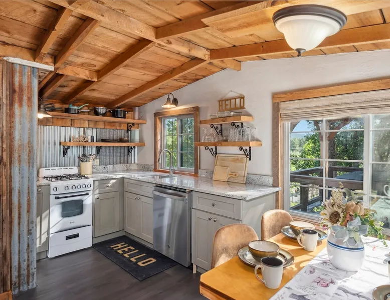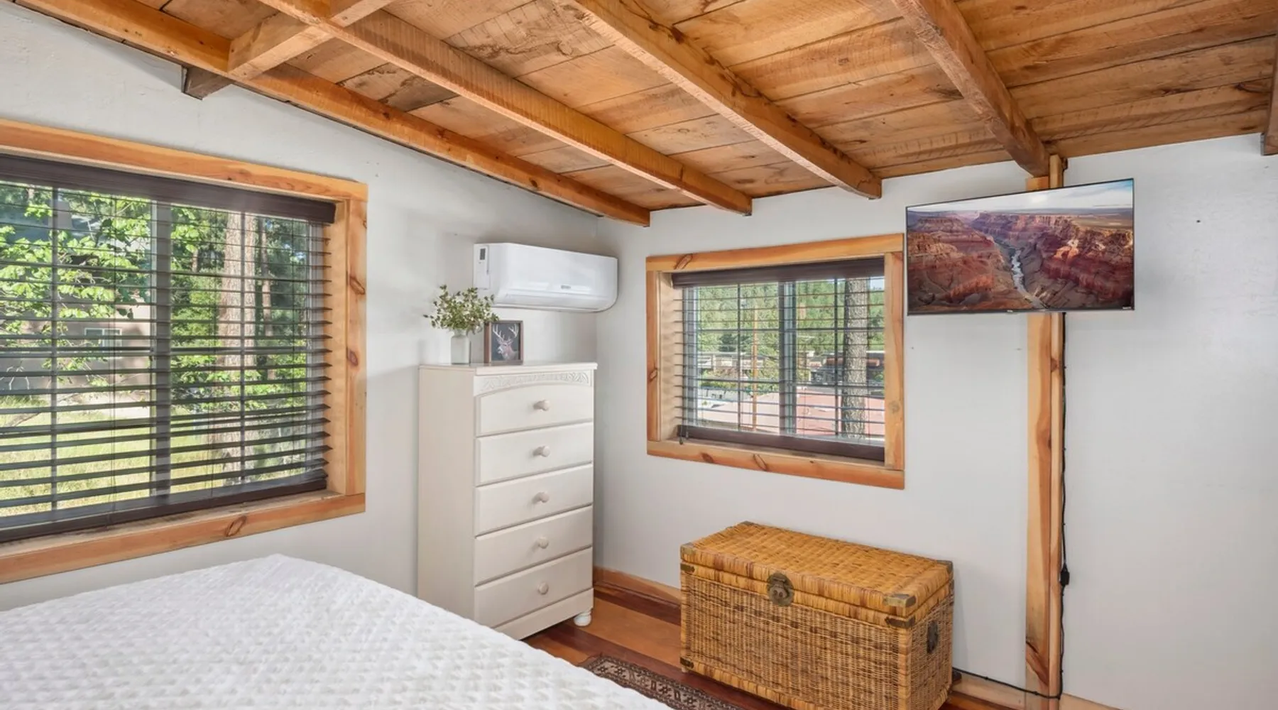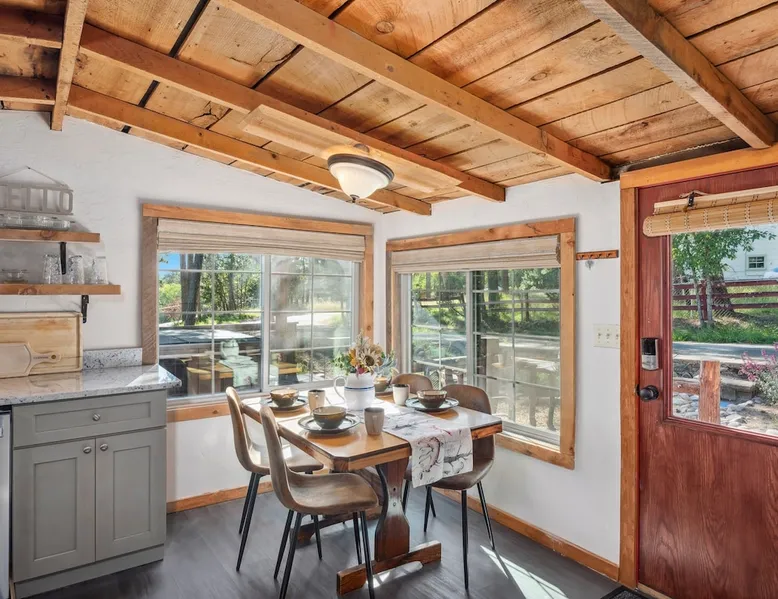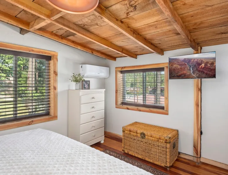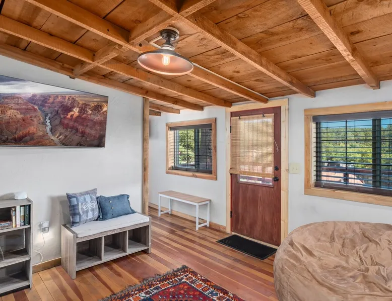 2 Bed | 1 Bath | Sleeps 4 Escape to Bella Luna, a beautiful 2-bedroom, 1-bathroom cabin nestled in the heart of Ruidoso. Amenities: Master Bedroom w/ King Bed, Guests Bedroom w/ Queen Bed, Private Hot Tub, Full Bathroom w/ Walk-in Shower, Stocked Kitchen w/ Dishwasher, 2 Living spaces, Wood Burning Fireplace (Firelogs Only Please), Wood Burning Stove (Firelogs Only Please), Centrally Located, Central Heat, Split Unit A/C, WIFI, Streaming Capabilities, Pet Friendly w/ additional fee. The space 2 Bed | 1 Bath | Sleeps 4 Escape to Bella Luna, a beautifully renovated 2-bedroom, 1-bathroom cabin nestled in the heart of Ruidoso, NM. Perfect for couples or small families, this charming getaway comfortably sleeps four guests. 🛏️ Comfortable Accommodations Master Bedroom: King-sized bed for restful nights. Guest Bedroom: Queen-sized bed with cozy linens. 🍽️ Fully Equipped Kitchen Prepare your favorite meals in a kitchen featuring modern appliances, including a dishwasher, beverage station, and a new refrigerator. 🔥 Inviting Living Spaces Relax in two separate living areas: Lower Level: Snuggle up by the wood-burning stove or fireplace (firelogs only). Upper Level: Enjoy board games or a glass of wine in a cozy setting. 🌄 Outdoor Amenities Private Hot Tub: Unwind under the stars after a day of adventure. Quaint Balcony: Sip your morning coffee while taking in the serene surroundings. Propane Grill: Perfect for barbecuing steaks or veggies. 🐾 Pet-Friendly Bring along your furry friend! Bella Luna welcomes pets with an additional fee. 📶 Modern Conveniences Wi-Fi: Stay connected during your stay. Smart TV: Stream your favorite shows and movies. Climate Control: Split unit A/C and heat ensure year-round comfort. 📍 Prime Location Located near Midtown Ruidoso, Bella Luna is just a short walk to restaurants, attractions, and shops. Keep an eye out for local wildlife, including deer, elk, wild horses, and even the occasional fox or black bear during warmer months. Amenities: Master Bedroom w/ King Bed, Guests Bedroom w/ Queen Bed, Private Hot Tub, Full Bathroom w/ Walk-in Shower, Stocked Kitchen w/ Dishwasher, 2 Living spaces, Wood Burning Fireplace, Wood Burning Stove, Centrally Located, Central Heat, Split Unit A/C, WIFI, Streaming Capabilities, Pet Friendly w/ additional fee. Guest access You will go directly to the cabin to check in. If you have not received a text message from us by 4pm, please call the office. Please make sure you have signed your rental agreement that you were sent directly to your email before you call.