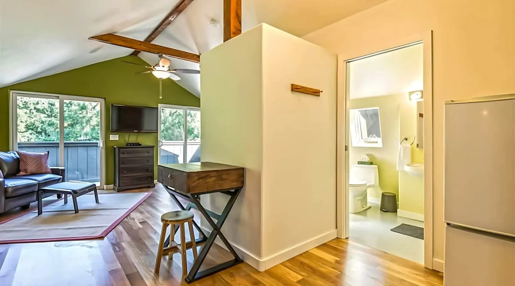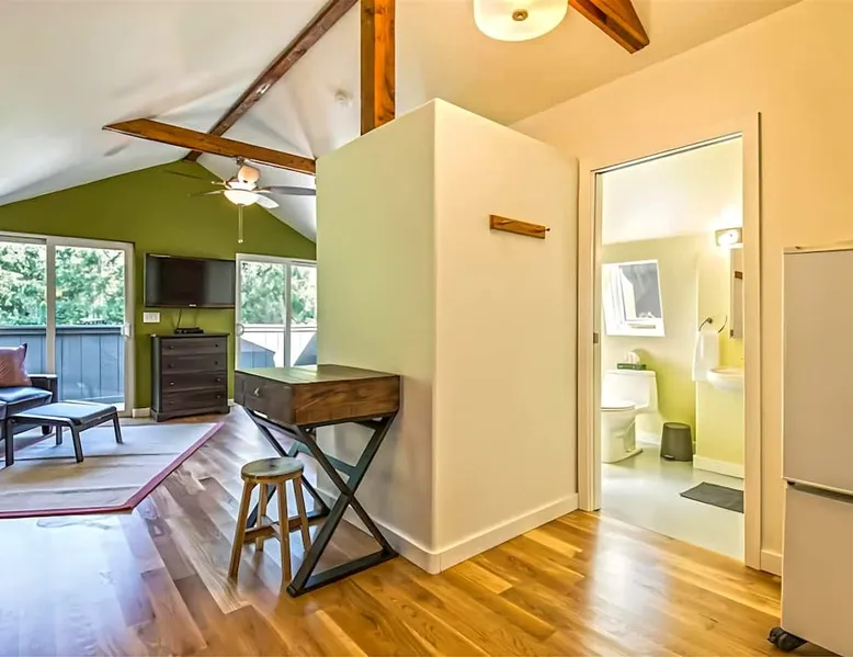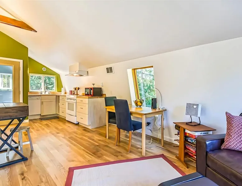 Arcadian Grove: Fully equipped studio The space This is a fully furnished studio perfect for 1 or 2 people, nestled in a wooded setting with close access to downtown Sequim. Welcome to the Arcadian Grove, loft style living on the edge of the Olympic National Forest! This above-garage studio for two is nestled in the trees, providing a peaceful & relaxing stay. Newly remodeled, this space is inviting both inside & out & provides everything you need for a getaway to the beautiful Olympic Peninsula. Vaulted ceilings adorned with wood beams give a feeling of spaciousness. Comfy queen size bed, full bath with walk in shower, dining area, and work space. The fully stocked high-end galley kitchen has all essential cookware & offers full size electric range/oven, dishwasher, microwave, & mini fridge. Viewing balcony off the living space overlooks the pristine grounds and protective circle of timber. Curl up on the leather loveseat to watch your favorite movies. Amenities include DISH TV and WI-FI, private washer/dryer located downstairs. With quick access to downtown Sequim, this property is also near the Olympic Discovery Trail, Sequim Bay State Park, John Wayne Marina, the Olympic Game Park, and many great trailheads to venture out into the Olympic National Park. Enjoy sitting fireside on the lush lawns surrounded by towering trees & foliage after a day of hiking or exploring. There is so much to do, with the ferry to Victoria, BC only a half hour away (bring your passport), the awe-inspiring Crescent Lake and the Olympic Lodge less than an hour away by car. Planning on traveling with friends or family? This is a shared property with a larger rental home next door, which is also available for renting should you be in need of space for a larger group. See `Mystic Grove` for details. Whether you are considering a short term stay, or monthly in the off season, this property is a great option for both. Private Vacation Rental / Access To Entire Property Private Vacation Rental / Owner Not Present Quick access to downtown Sequim, this property is also near the Olympic Discovery Trail, Sequim Bay State Park, John Wayne Marina, the Olympic Game Park, & many great trail heads to venture out into the Olympic National Park Located 10 minutes from downtown Sequim Important note before you book: Guests are required to complete the Check-In Form provided by Brigadoon Vacation Rentals as a mandatory step to finalize their reservation. To ensure a smooth check-in process, a valid government-issued photo ID must be attached to the form. Out of respect for guests with allergies, our home is strictly pet free. Sorry, no pets allowed, no exceptions. A discount of 10% off for 6-9 nights and 15% off for 10 nights or more will automatically apply at booking. If you booked via Airbnb, the discount will already be included in the price and will not show as a separate deduction. If you booked via VRBO, please ask us to apply the discount to your stay. For longer stays between 21-28 nights, we'll set up a mid-stay cleaning free of charge, and an additional $260 non-refundable fee will be applied to cover up to $3,000 in damage insurance, ensuring peace of mind during your extended stay. Check in is at 4:00PM and check out is 11:00AM. Guest access Arrival and entry information will be emailed to you 1-2 days before your arrival.