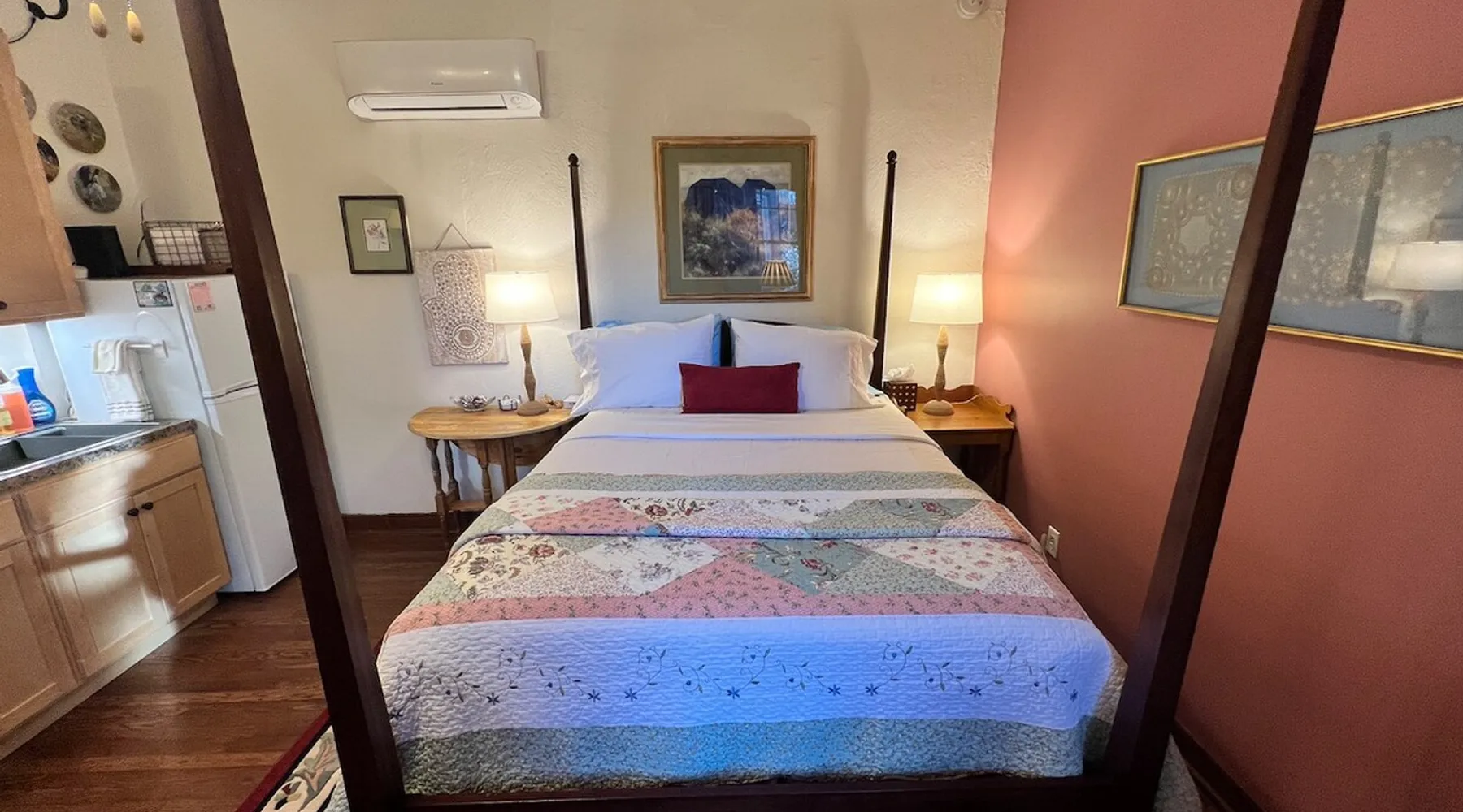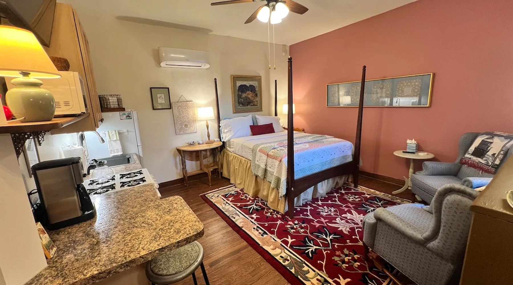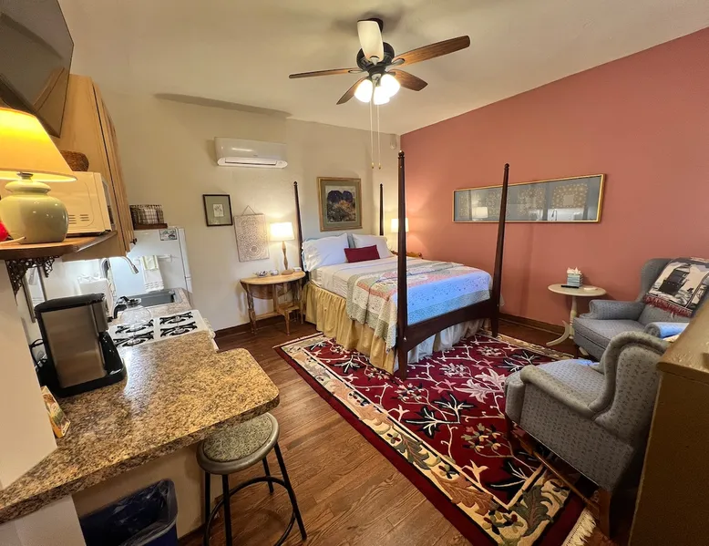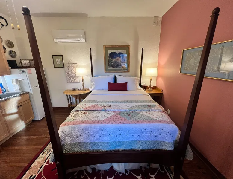 The Winnie welcomes you home to the heart of St. Louis' historic Central West End! She offers deep discounts for longer stays, with weekly housekeeping included. The space Discover Winnie's delightfully furnished accommodations for up to two people. A small kitchen is on one wall of the main room, and ready for basic meal preparation. Winnie has high-speed internet (the router and modem are on top of the refrigerator). The smart TV has an antenna for local stations. Take a shower or soak in the oversized bathtub. Enjoy an excellent sleep under soft linens on Winnie's four poster Queen-sized bed. Before your arrival, the Winnie will be stocked with light breakfast foods, welcome teas and treats and freshly roasted coffee to start your stay. You will find a range of cleaning supplies and toiletries (soap, shampoo, conditioner, Q-Tips, etc.). To keep rates low, we don't replenish these items during your stay. Yes, the Winnie has luggage racks, a hair dryer, iron and ironing board. The Winnie is on the second floor and accessible only by stairs. A laundromat is available in the building's upper lobby for guests. Smoking is prohibited in the apartment or anywhere on the premises. We accept same-day reservations, if you contact us by 2 PM Central Time USA. Upon making a reservation, you will be notified of SF Shannon House Rules. Creation of a reservation indicates acceptance of SF Shannon policies. Weekly and monthly discounts are auto-applied at time of booking. You will always find best pricing by booking direct at SF Shannon. If you plan to be in residence longer than a month, we accept monthly payments. There is no lease, but you must submit a rental application and pay a security deposit. Long-term guests must provide proof of their own renters insurance, or pay a nominal monthly fee for Tenant Liability Insurance. This insurance is underwritten by Great American Insurance Group and covers accidental or unintentional damage to the premises, but not to your personal possessions. State lodging taxes apply to stays less than 30 nights. City lodging taxes apply to stays less than 32 nights. Sorry, while we all love them, we do not allow pets at the Winnie. LOCATION, LOCATION, LOCATION The Winnie is on McPherson at Euclid, footsteps from fine restaurants and delightful shopping. The Gateway Arch is five miles directly east. The Farwig is within walking distance of Forest Park, home to the St. Louis Zoo, St. Louis Art Museum, Steinberg Rink and other beloved institutions. The World Chess Club is three short blocks from the Winnie. Washington University Medical Center & Barnes Hospital are within walking distance. One-of-a-kind historic architecture, restaurants, coffee houses, and all kinds of shopping are footsteps away. Walk to Whole Foods, Aldi, Straub's, and Metrolink, the city's regional rail system. PARKING Parking is free and on-street in front of the building. Please note: The Central West End is home to a number of bars and restaurants. These establishments make our neighborhood great, but can also lead to some challenges. With so many establishments within walking distance, the neighborhood attracts many visitors, especially in the evenings and on weekends. This can make parking tricky. Guests almost always find a parking spot on the block, but it may not be right in front of the building. IS IT SAFE? Since all SF Shannon vacation rental apartments are in the historic core of St. Louis, we occasionally receive the question: “Is it safe?” This question is impossible to answer, because we typically know nothing about the person asking it. The co-owners live within walking distance of each SF Shannon vacation rental. Rachel, Karen and their spouses have raised their families in their respective neighborhoods, and have always felt perfectly safe. WHY THAT NAME? In 1923 Winnie Housam bought the Cambridge, the building that is home to the Winnie. During the Depression, she converted the Cambridge from 12 large luxury apartments into its current configuration of unique studio apartments. We are honored to name Apartment 212 after Winnie, who created the quirky and unique Cambridge Apartments. Guest access The apartment is all yours! There is a shared laundry room in the upper lobby and shared hallways with other guests and residents. Other things to note The Winnie has central air conditioning. You will control the thermostat. In the winter months, heat is controlled by a central boiler that runs steam through the radiators. The boiler is scheduled to run 1 to 6 times a day, depending on the weather forecast.