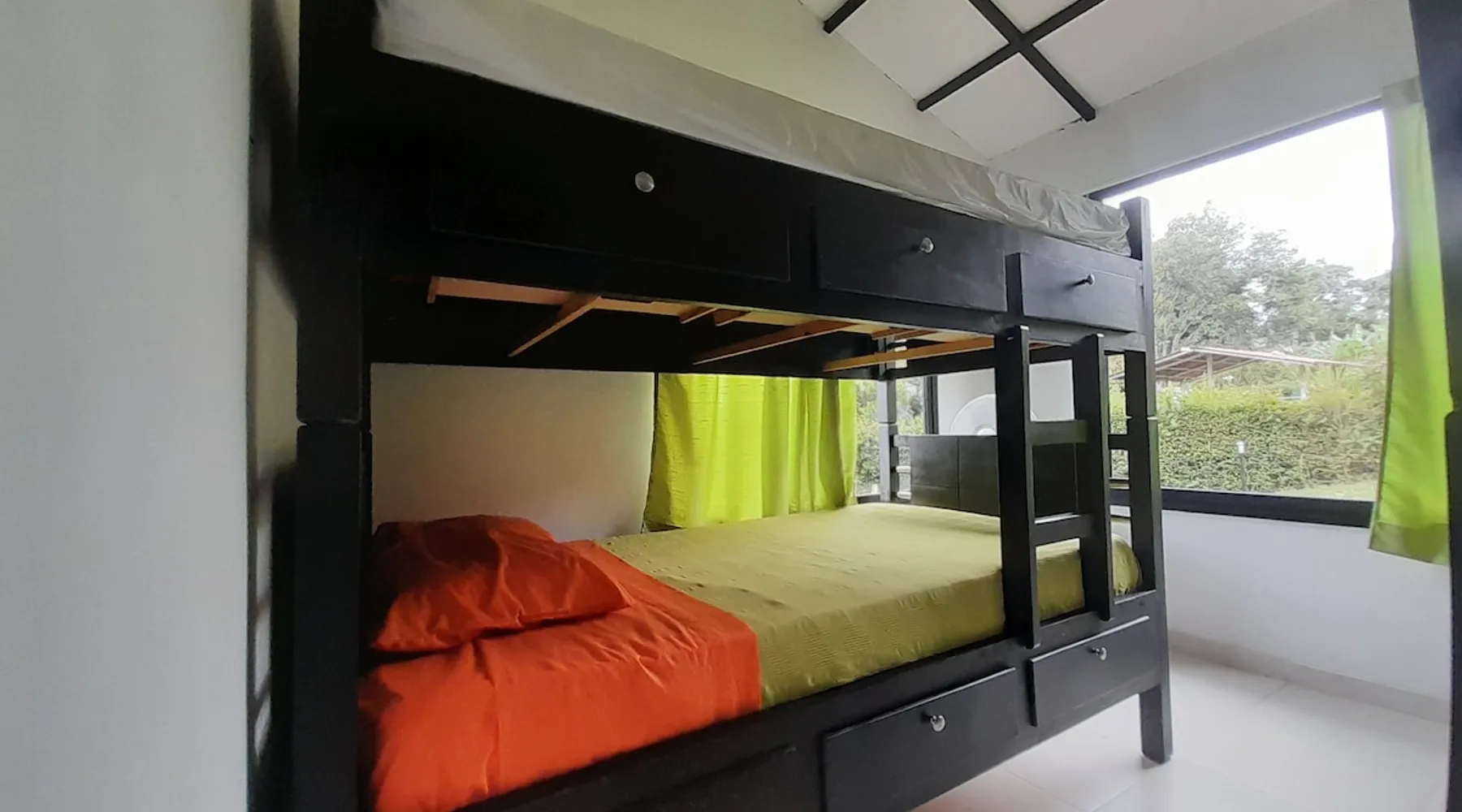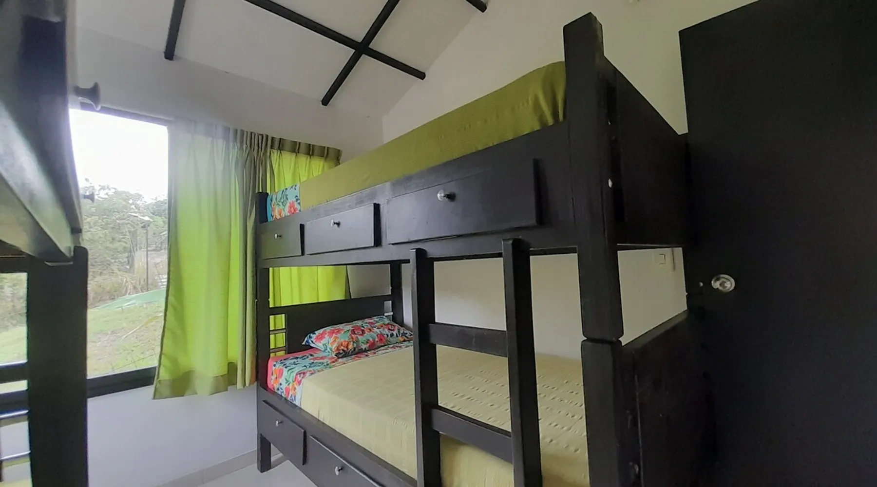 Enjoy a country atmosphere 3 minutes from the Villeta Center. Nature and comfort. Cabins designed for family groups (6 people) or rooms for 3 comfortable people At least one person is required to make the reservation by canceling an additional value for occupying the entire space. In total there are four cabins with the same characteristics, three for 6 people and two for 3 people. The space The ideal place to share and rest as a family very close to the urban area of Villeta. Country atmosphere. Other things to note - The cabins are rented as much as possible for the family group that has the entire space (6 or 3 people). - No towels are being provided at the property. - Check-in to this accommodation starts at 14:00 (2 pm) and check-out is at 13:00 (1 pm). Exceeding the check-out time will result in a pass-through fee for each guest. Registration Details 80016