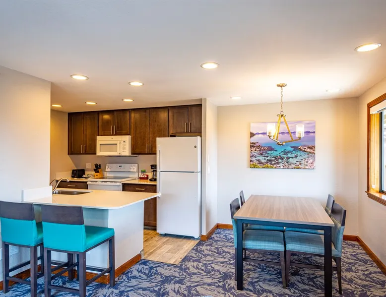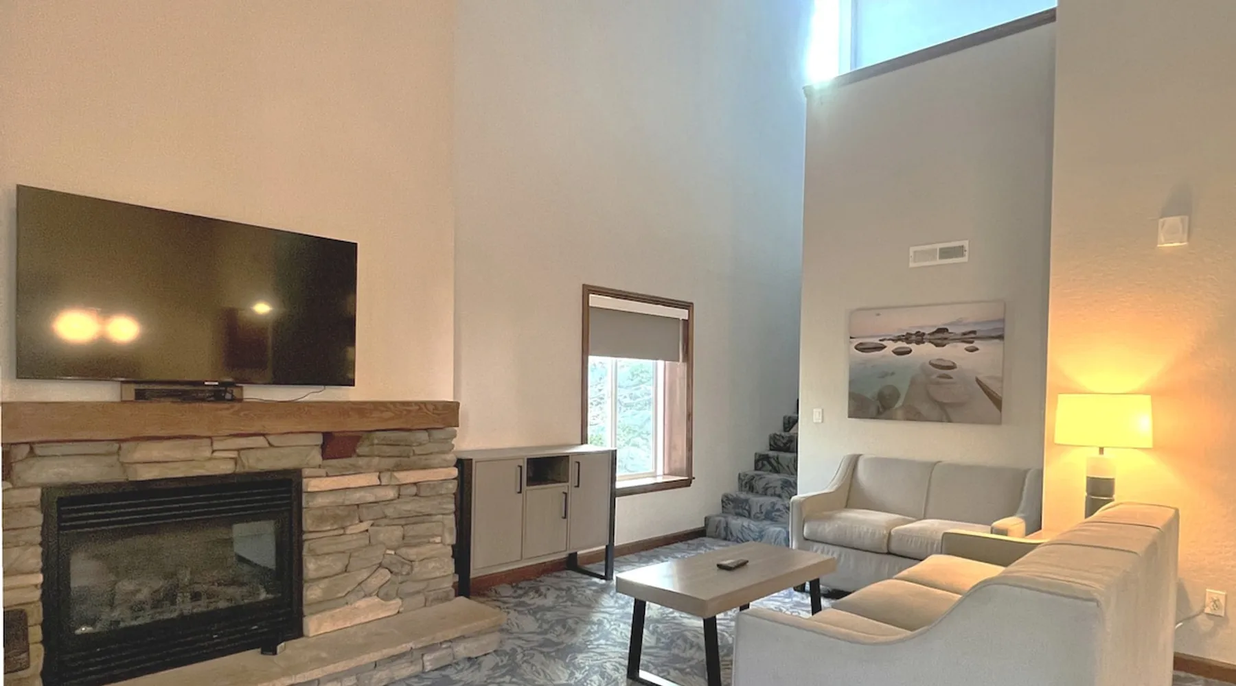 Escape to a serene mountain retreat, less than half a mile from the Stagecoach lift. With resort amenities just a mile away, your getaway is effortless. This condo is nestled away from the touristy bustle of South Lake Tahoe, creating the perfect haven for a peaceful winter getaway. This spacious 3-bedroom suite offers the comfort of home with resort perks, including: • 24-hour front desk service • Year-round hot tub access • Private, fully equipped unit Book your stay today! The space Immerse yourself in the quietude of snow-covered mountains, a world away from the hustle and bustle, providing an ideal backdrop for a peaceful winter retreat. Enjoy our cozy three-bedroom unit featuring: First bedroom: King bed Second bedroom: Queen bed Third bedroom: Queen bed Living area: Queen sleeper sofa ✔ A full kitchen, private sleeping areas, a washer/dryer, and a living area provide all the comforts you’ll need. ✔ Looking for a peaceful escape? Our condo is tucked away from the usual tourist chaos of South Lake Tahoe, offering a quiet retreat in the heart of the mountains. ✔ Enjoy the convenience of 24-hour staff to handle check-ins and resolve any issues, while you enjoy the best of a homey retreat and resort amenities. ⚠️Please note: No elevators here, just a few stairs to access that rustic charm. -No Air Conditioning – but plenty of fresh mountain air! -The exact unit is assigned at check-in, so views and layouts may vary. Guest access While the condo is all yours, you’ll have easy access to resort amenities just one mile away, including: 🛁 Hot Tub: hours are 9 a.m.-10 p.m. Hot tubs are open year-round. Resort amenities are shared and 1 mile away. 🎮 Game Room: Whether you're challenging friends in ping pong or pool, the game room offers endless fun. 🍿 Movie Room: Cozy up and catch your favorite flicks after a day out. 🌄 Shared Deck with Lake Tahoe Views: Step onto the deck and be greeted by breathtaking Lake Tahoe views, especially enchanting during the winter months. It's the ideal spot to sip on hot cocoa, watch the snow fall, and marvel at the winter beauty. - Enjoy convenient winter access with nearby shuttle options: The free Heavenly Blue Route shuttles run every half-hour between Stagecoach and Boulder Lodges. Seasonal and reliable, this shuttle service stops along the Tramway loop for easy access to winter activities. ⚠️Resort amenities are located in a separate building about 1 mile away and are shared with other guests. However, your unit is a fully private space for your exclusive use. Other things to note • The guest who books the stay must be physically present at the time of check-in. If the guest plans to arrive later than the other guests, the reservation should be made by the guest who will be arriving first. • The guest making the reservation must be over 21 years of age and present a photo ID/credit card for a $250 refundable deposit at check-in. • The apartment is located in a timeshare complex, and the pictures are from a typical unit. The exact unit is assigned at check-in. The exact view and layout may vary depending on the unit assigned. All the units are under common management and have similar furnishings, decor, and layout. • Stairs are required; there are no elevators. • Infants and children are counted towards maximum occupancy. • Resort amenities are located approximately one mile away, in another building. • During the winter months, Nevada and California law dictates that all vehicles must carry snow chains. • This is a timeshare property, and guests are not obligated to participate in any timeshare presentation. Attending a presentation is entirely optional, and should a salesperson approach you to attend one, we recommend that you decline their invitation.