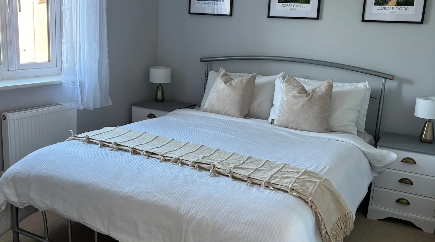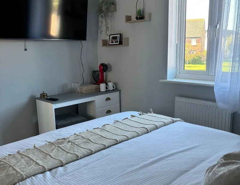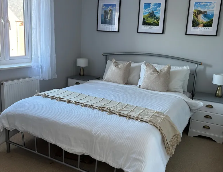 Enjoy your stay in a Dog friendly home just 15 minutes from Durdle Door and Lulworth Cove, 20 mins from Corfe Castle and 30 mins from Old Harry Rocks. This spacious and cozy bedroom comes with a Kingsize bed, Smart TV and everything you need to make Tea and coffee including a Nescafé Coffee machine, Coffee pods and various Teas Soak away your day exploring dorset in a full sized bath in your own bathroom. Our Bulldog Bruce is very friendly and sociable, but please be aware he lives indoors.