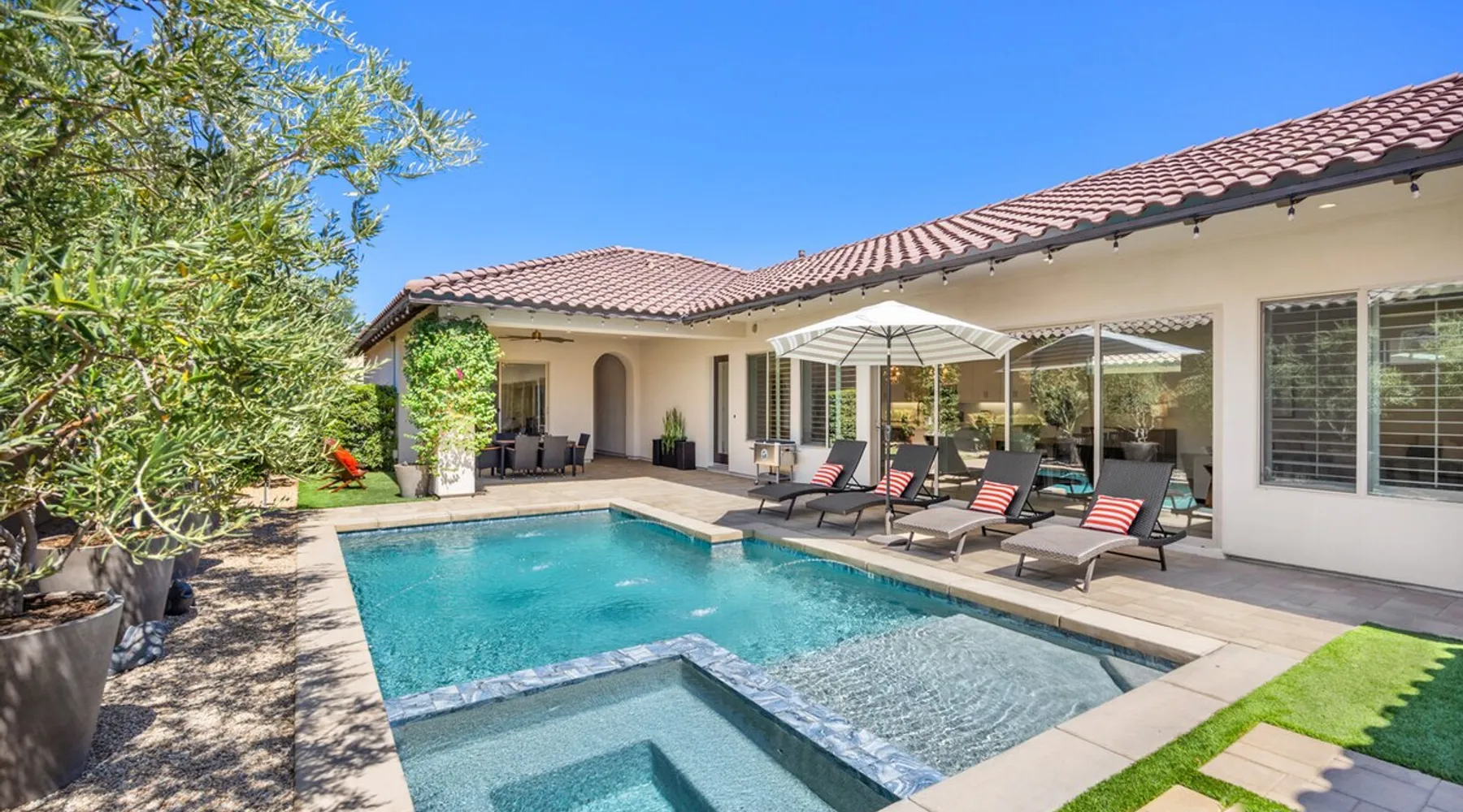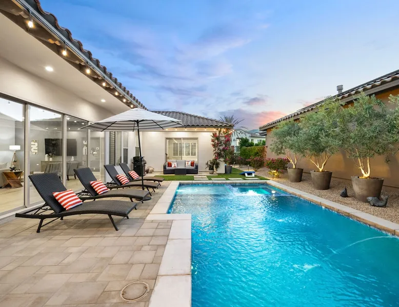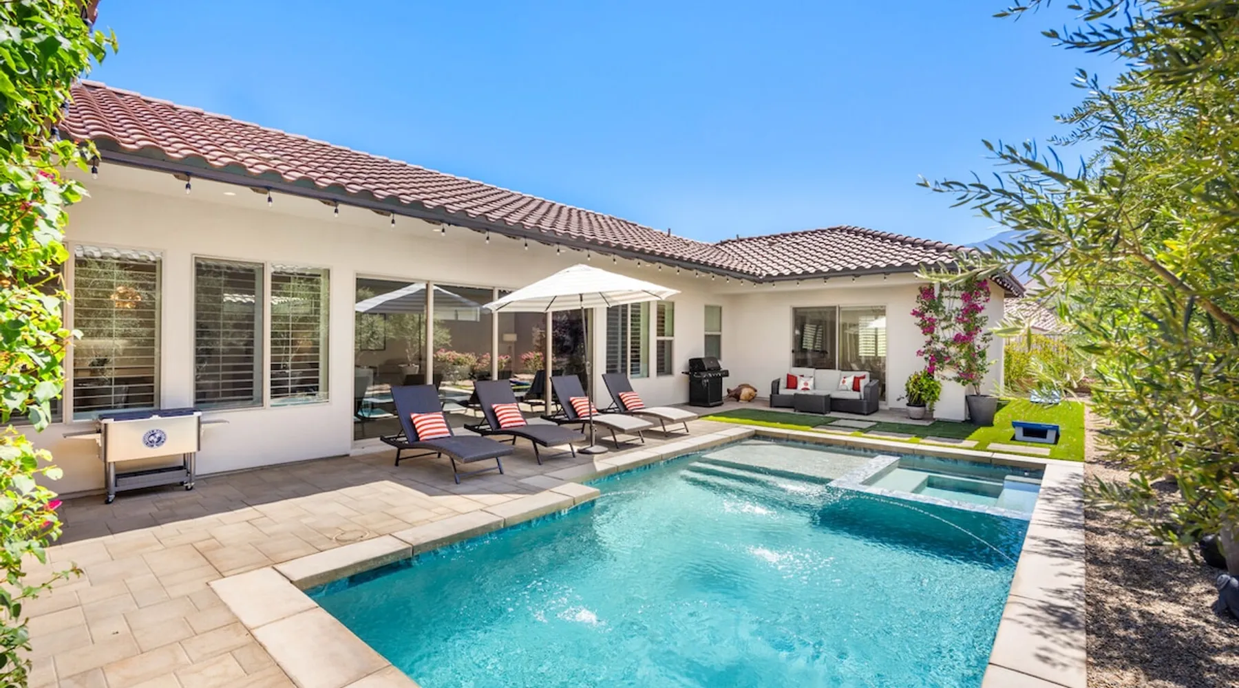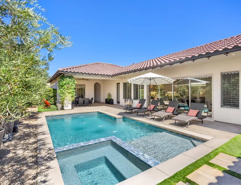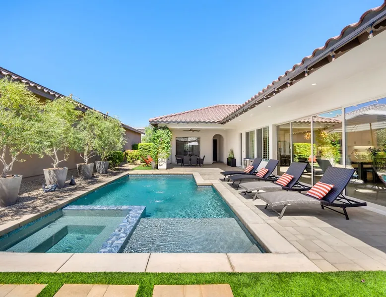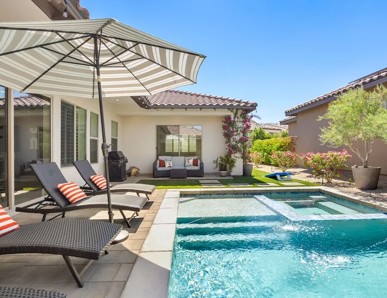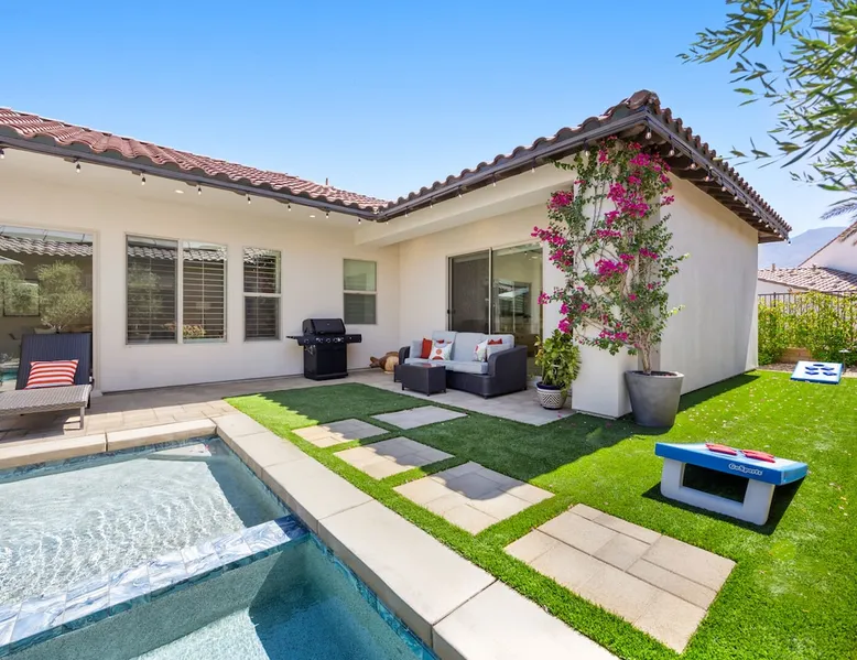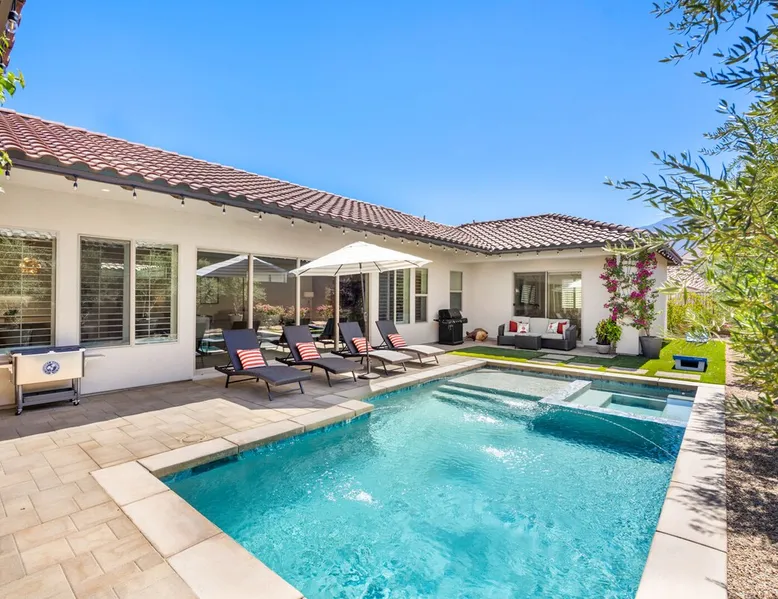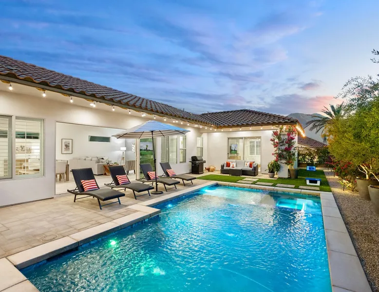 - Welcome to your luxurious 2,260 sq. ft. retreat located in the privately guarded Signature at PGA West community! - Each of the three spacious bedrooms (including casita) comes with its own full bath, offering privacy and comfort for every guest. - Enjoy a private oasis with a pool, spa, and loungers with cabana-style pillows. - Enjoy al fresco dining with BBQ and seating under party lights. - Book now and experience this luxury retreat with your family! The space Book your stay at this incredible Signature PGA West vacation home today and experience the ultimate in relaxation, luxury, and outdoor living…. VARE style. BEDROOMS/SLEEPING ARRANGEMENTS: ✔ Master Suite: King Bed, 65" 4K Smart TV, Ceiling Fan, Large Walk-In Closet, Ensuite Bathroom & Backyard Access ✔ Suite 2: Queen bed, 70" 4K Smart TV, Ceiling Fan, Ensuite Bathroom ✔ Casita Suite 3: King Bed, 65" 4K Smart TV, Ensuite Bathroom * Queen Air Mattress (available upon request) LIVING ROOM: ✔ 75" 4K Smart TV ✔ Comfortable Sofas ✔ Natural Light ✔ Spacious & Modern ✔ Glass Sliding Doors directly to pool KITCHEN & DINING: ✔ Keurig Coffee Maker ✔ High-End Stainless Steel Appliances ✔ Indoor Dining Table for 8 ✔ Bar-Height Seating for 4 POOL & BACKYARD: ✔ Private Pool & Hot Tub ✔ Tanning Shelf ✔ Natural Gas BBQ Grill ✔ Sun Loungers (4) + Large Umbrella ✔ Outdoor Party Lights ✔ Outdoor Dining Table for 6 ✔ Patio Seating area ✔ Cornhole Game ✔ 8-blade Ceiling Fan Under Cover Patio ✔ Tommy Bahama Rolling Party Cooler ** Hot tub is complimentary; optional pool heating is $65/day to 84°F (Oct–May), with summer temps naturally 85–95°F (no heating required)** OTHER AMENITIES: ✔ Free high-speed Wi-Fi ✔ Pack & Play (available upon request) ✔ Full-sized washer/dryer PARKING: ✔ 2 car garage with up to 4 cars total between the driveway/garage ✔ EV Charger Inside Garage COMMUNITY SPACE: ✔ Gym ✔ Heated Pool ✔ Jacuzzi ✔ Shuffleboard ✔ Bocce Ball ✔ Sun Loungers ✔ BBQ Grill ✔ Outdoor dining area ✔ Dog park INCLUDED WITH YOUR VACATION HOME: The property will be stocked with an initial supply of trash bags, paper towels, kitchen sponges, hand soap, dish soap, and toilet paper. The property is equipped with a specific quantity of bath and pool towels to accommodate the max occupancy of the home. The bathrooms are stocked with shampoo and conditioner. There are also fully equipped laundry rooms with a washer, dryer, and iron. THE FOLLOWING IS NOT INCLUDED: cooking oil, sprays, foil, plastic wrap or other cooking ingredients. Signature at PGA WEST is a guarded gated community, and your group will be provided access for your stay. Located a few minutes from the private residence is access to the community clubhouse, which includes a resort-style pool, hot tub, outdoor living/BBQ area, gym fitness center, and shuffleboard. The community pool & hot tub are heated from October to May. ✔ Shuffleboard ✔ Shared Gym ✔ Shared Pool We are minutes from PGA West with five public courses to choose from, as well as SilverRock Resort, an Arnold Palmer Classic Course, another terrific local option. In January, you can walk to the Stadium course to watch the pros play in The American Express Golf Tournament. Tennis fans - in March, you'll be minutes away from the 5th largest tennis tournament in the world, the BNP Paribas Open in Indian Wells, which draws the top-rated men and women tennis players in the world. Tennis and pickleball players - the Fritz Burns park is 10 minutes away with 6 tennis courts and 8 pickleball courts lit and open from Dawn until 10 pm. Coachella and Stagecoach Music Festivals are the main attractions in April, both taking place at the famous Empire Polo Grounds. Close by is the famous El Paseo and Old Town La Quinta areas with excellent dining and shopping options. Ralph’s is the closest supermarket, about 5 minutes away, and Trader Joe's is also nearby. Highway 111 is the home to Costco, Target, Coffee Bean, and Starbucks, among many local favorite restaurants and shopping. Less than 10 minutes from the I-10, you can quickly head to Palm Springs, nearby casinos, Joshua Tree National Park, and other Coachella Valley destinations. ESTIMATED DISTANCES FROM PGA WEST - Jack Nicholas & Stadium PGA West golf courses: 1 min - Ernie’s Bar & Grill (PGA West 19th hole): 1 min - Old Town La Quinta: 5-7 mins - PGA West Greg Norman Course: 10 mins - SilverRock Resort Golf Course: 10 mins - Empire Polo Fields (home to Coachella & Stagecoach music festivals): 10 mins - BNP Paribas Open / Indian Wells Tennis Garden: 10-15 mins - PGA West Dunes Course: 15 mins - PGA West Pete Dye Mountain Course: 15 mins - Palm Desert/El Paseo: 15-20 mins - Acrisure Arena: 25 mins - Downtown Palm Springs/Airport: 35 mins - Joshua Tree National Park: 45 mins - LA/OC/SD: Roughly 2 hours without traffic - FREQUENTLY ASKED QUESTIONS - WHAT TIME IS CHECK-IN AND CHECK-OUT? Check-in time is 4 p.m. and check-out is at 11 a.m. Early check-in and late check-out may be available for your reservation. WILL I NEED TO MEET THE PROPERTY MANAGER TO GET A KEY? Our homes are keyless entry, we issue a “code” rather than a physical key. The code changes for every reservation so it is an incredibly safe alternative. Issuing the code before arrival makes the check-in process much easier. WHAT ARE THE COMMUNITY CLUB & POOL HOURS? ARE THEY HEATED? Clubhouse hours: 5:30 am – 10 pm. The community pool & hot tub are heated from October to May. DO YOU ALLOW PETS? Certain non-shedding hypoallergenic dogs will be considered at an additional fee. Service animals are permitted, and the fee is waived for such situations (however the animal is never permitted to be in the unit alone if it is a service animal). Please note we do not allow any pets other than dogs. Signature PGA West Community Rules: 1) The City of La Quinta & Signature PGA West has a quiet hour ordinance (10 pm – 8 am). 2) No more than 2 vehicles per h