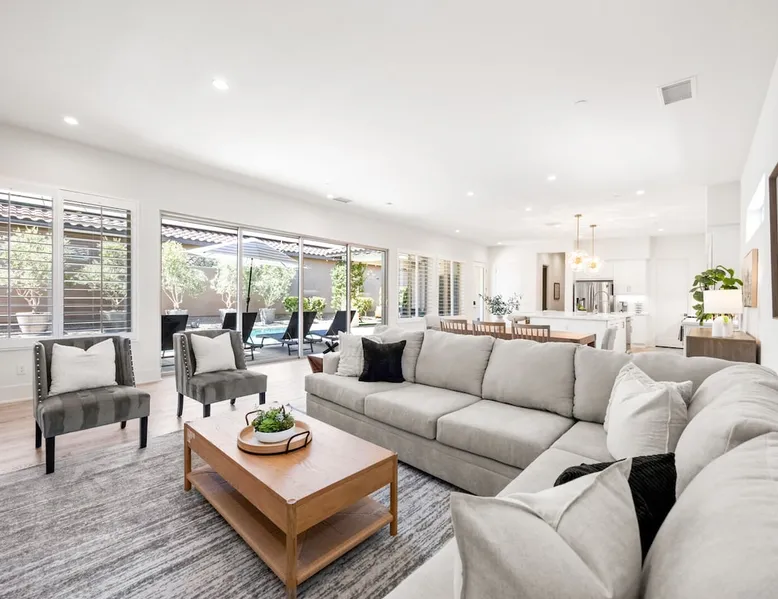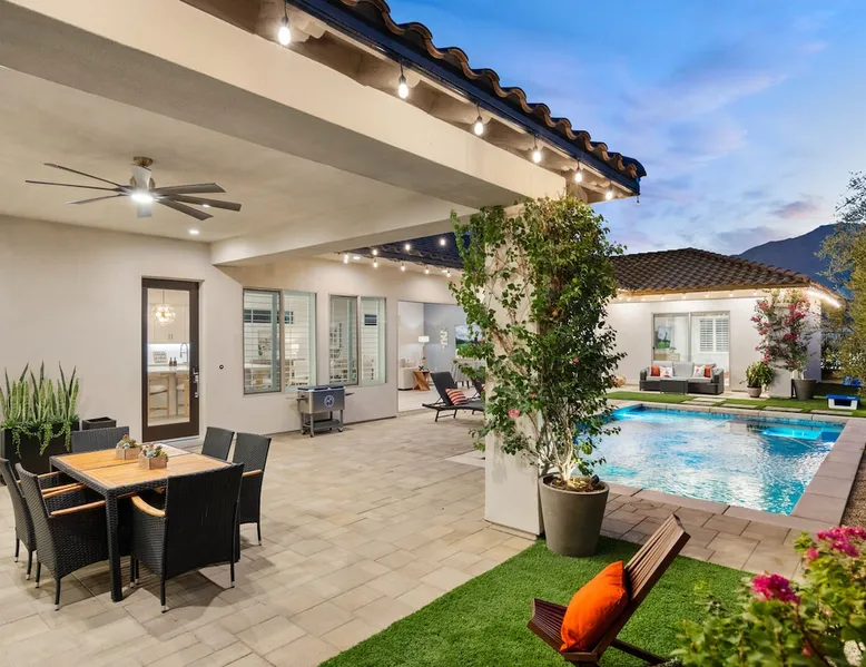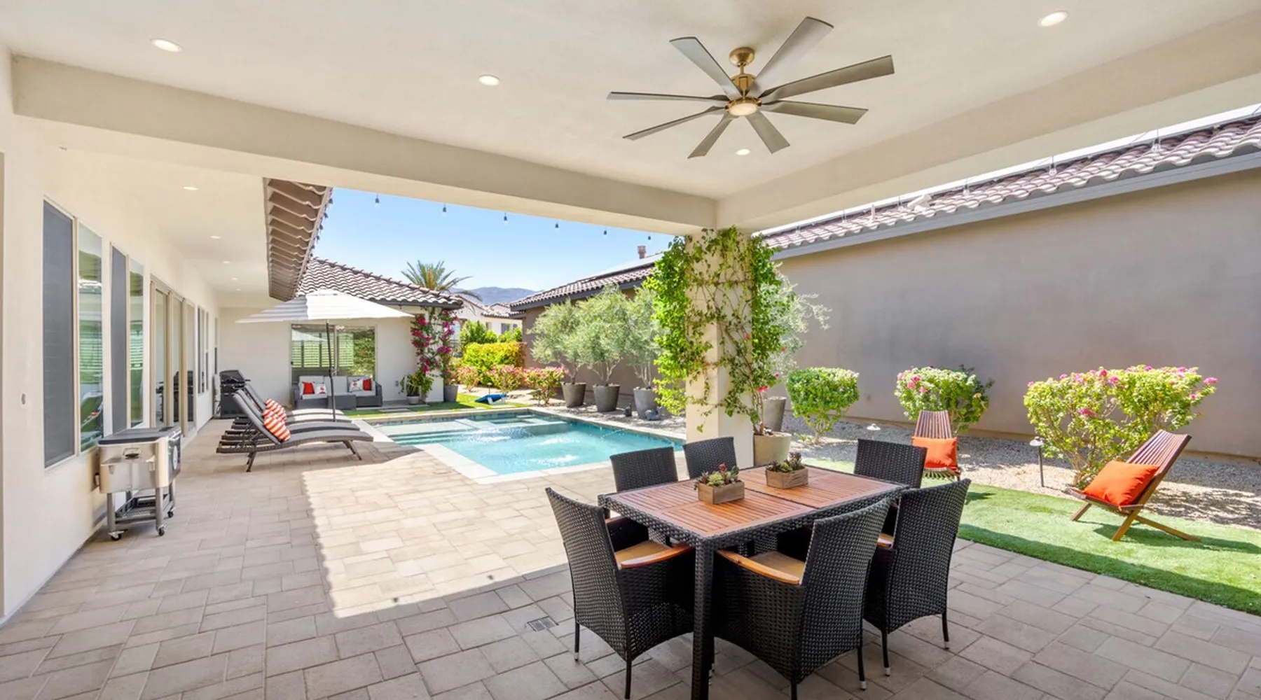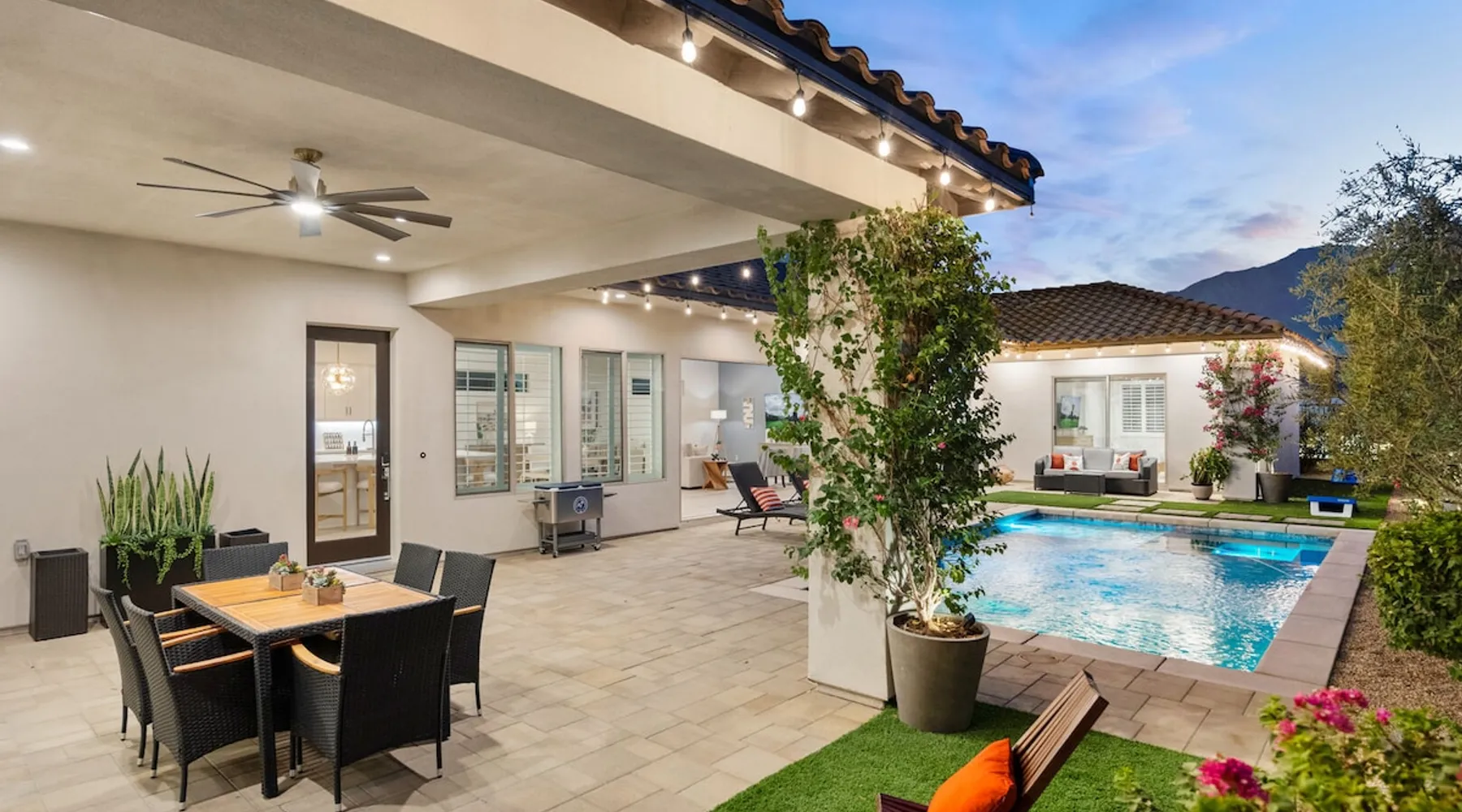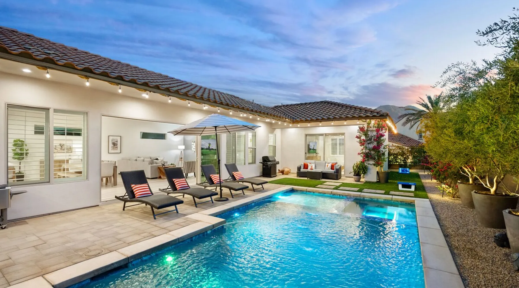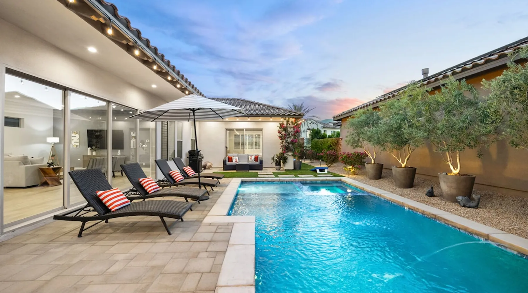 - Welcome to your luxurious 2,260 sq. ft. retreat located in the privately guarded Signature at PGA West community! - Each of the three spacious bedrooms (including casita) comes with its own full bath, offering privacy and comfort for every guest. - Enjoy a private oasis with a pool, spa, and loungers with cabana-style pillows. - Enjoy al fresco dining with BBQ and seating under party lights. - Book now and experience this luxury retreat with your family! The space Book your stay at this incredible Signature PGA West vacation home today and experience the ultimate in relaxation, luxury, and outdoor living…. VARE style. BEDROOMS/SLEEPING ARRANGEMENTS: ✔ Master Suite: King Bed, 65" 4K Smart TV, Ceiling Fan, Large Walk-In Closet, Ensuite Bathroom & Backyard Access ✔ Suite 2: Queen bed, 70" 4K Smart TV, Ceiling Fan, Ensuite Bathroom ✔ Casita Suite 3: King Bed, 65" 4K Smart TV, Ensuite Bathroom * Queen Air Mattress (available upon request) LIVING ROOM: ✔ 75" 4K Smart TV ✔ Comfortable Sofas ✔ Natural Light ✔ Spacious & Modern ✔ Glass Sliding Doors directly to pool KITCHEN & DINING: ✔ Keurig Coffee Maker ✔ High-End Stainless Steel Appliances ✔ Indoor Dining Table for 8 ✔ Bar-Height Seating for 4 POOL & BACKYARD: ✔ Private Pool & Hot Tub ✔ Tanning Shelf ✔ Natural Gas BBQ Grill ✔ Sun Loungers (4) + Large Umbrella ✔ Outdoor Party Lights ✔ Outdoor Dining Table for 6 ✔ Patio Seating area ✔ Cornhole Game ✔ 8-blade Ceiling Fan Under Cover Patio ✔ Tommy Bahama Rolling Party Cooler ** Hot tub is complimentary; optional pool heating is $65/day to 84°F (Oct–May), with summer temps naturally 85–95°F (no heating required)** OTHER AMENITIES: ✔ Free high-speed Wi-Fi ✔ Pack & Play (available upon request) ✔ Full-sized washer/dryer PARKING: ✔ 2 car garage with up to 4 cars total between the driveway/garage ✔ EV Charger Inside Garage COMMUNITY SPACE: ✔ Gym ✔ Heated Pool ✔ Jacuzzi ✔ Shuffleboard ✔ Bocce Ball ✔ Sun Loungers ✔ BBQ Grill ✔ Outdoor dining area ✔ Dog park INCLUDED WITH YOUR VACATION HOME: The property will be stocked with an initial supply of trash bags, paper towels, kitchen sponges, hand soap, dish soap, and toilet paper. The property is equipped with a specific quantity of bath and pool towels to accommodate the max occupancy of the home. The bathrooms are stocked with shampoo and conditioner. There are also fully equipped laundry rooms with a washer, dryer, and iron. THE FOLLOWING IS NOT INCLUDED: cooking oil, sprays, foil, plastic wrap or other cooking ingredients. Signature at PGA WEST is a guarded gated community, and your group will be provided access for your stay. Located a few minutes from the private residence is access to the community clubhouse, which includes a resort-style pool, hot tub, outdoor living/BBQ area, gym fitness center, and shuffleboard. The community pool & hot tub are heated from October to May. ✔ Shuffleboard ✔ Shared Gym ✔ Shared Pool We are minutes from PGA West with five public courses to choose from, as well as SilverRock Resort, an Arnold Palmer Classic Course, another terrific local option. In January, you can walk to the Stadium course to watch the pros play in The American Express Golf Tournament. Tennis fans - in March, you'll be minutes away from the 5th largest tennis tournament in the world, the BNP Paribas Open in Indian Wells, which draws the top-rated men and women tennis players in the world. Tennis and pickleball players - the Fritz Burns park is 10 minutes away with 6 tennis courts and 8 pickleball courts lit and open from Dawn until 10 pm. Coachella and Stagecoach Music Festivals are the main attractions in April, both taking place at the famous Empire Polo Grounds. Close by is the famous El Paseo and Old Town La Quinta areas with excellent dining and shopping options. Ralph’s is the closest supermarket, about 5 minutes away, and Trader Joe's is also nearby. Highway 111 is the home to Costco, Target, Coffee Bean, and Starbucks, among many local favorite restaurants and shopping. Less than 10 minutes from the I-10, you can quickly head to Palm Springs, nearby casinos, Joshua Tree National Park, and other Coachella Valley destinations. ESTIMATED DISTANCES FROM PGA WEST - Jack Nicholas & Stadium PGA West golf courses: 1 min - Ernie’s Bar & Grill (PGA West 19th hole): 1 min - Old Town La Quinta: 5-7 mins - PGA West Greg Norman Course: 10 mins - SilverRock Resort Golf Course: 10 mins - Empire Polo Fields (home to Coachella & Stagecoach music festivals): 10 mins - BNP Paribas Open / Indian Wells Tennis Garden: 10-15 mins - PGA West Dunes Course: 15 mins - PGA West Pete Dye Mountain Course: 15 mins - Palm Desert/El Paseo: 15-20 mins - Acrisure Arena: 25 mins - Downtown Palm Springs/Airport: 35 mins - Joshua Tree National Park: 45 mins - LA/OC/SD: Roughly 2 hours without traffic - FREQUENTLY ASKED QUESTIONS - WHAT TIME IS CHECK-IN AND CHECK-OUT? Check-in time is 4 p.m. and check-out is at 11 a.m. Early check-in and late check-out may be available for your reservation. WILL I NEED TO MEET THE PROPERTY MANAGER TO GET A KEY? Our homes are keyless entry, we issue a “code” rather than a physical key. The code changes for every reservation so it is an incredibly safe alternative. Issuing the code before arrival makes the check-in process much easier. WHAT ARE THE COMMUNITY CLUB & POOL HOURS? ARE THEY HEATED? Clubhouse hours: 5:30 am – 10 pm. The community pool & hot tub are heated from October to May. DO YOU ALLOW PETS? Certain non-shedding hypoallergenic dogs will be considered at an additional fee. Service animals are permitted, and the fee is waived for such situations (however the animal is never permitted to be in the unit alone if it is a service animal). Please note we do not allow any pets other than dogs. Signature PGA West Community Rules: 1) The City of La Quinta & Signature PGA West has a quiet hour ordinance (10 pm – 8 am). 2) No more than 2 vehicles per h