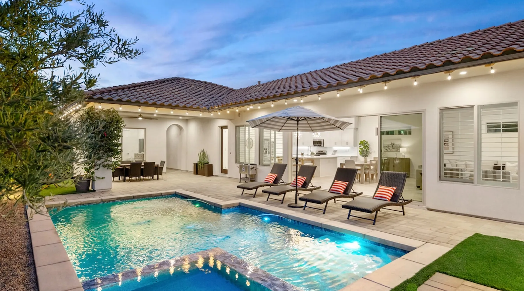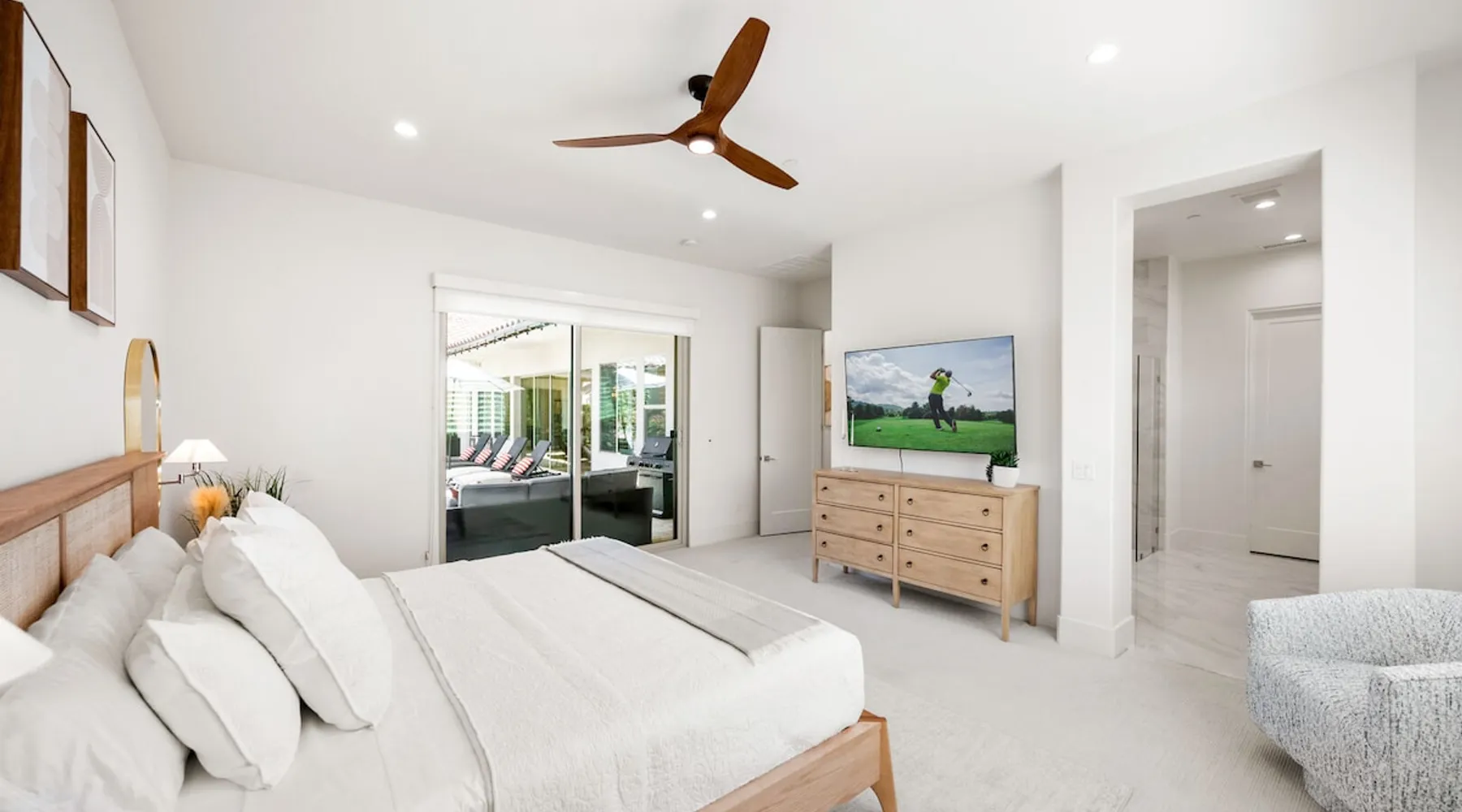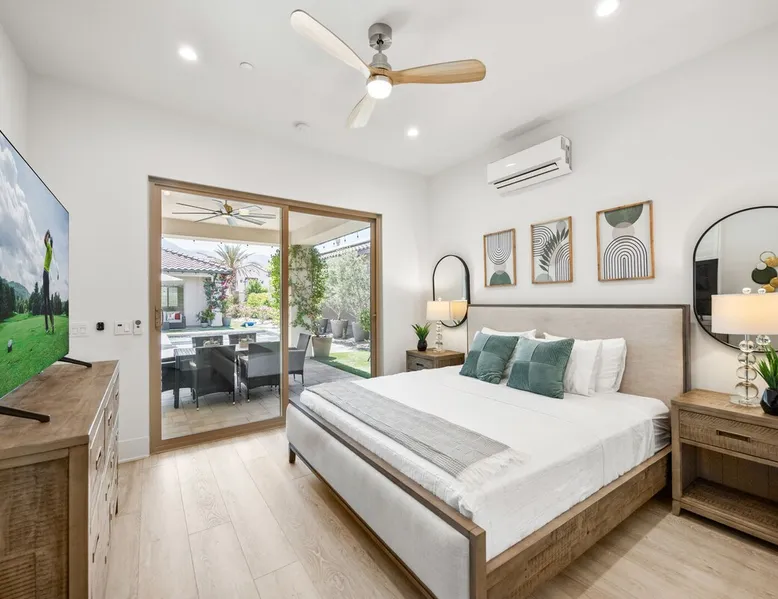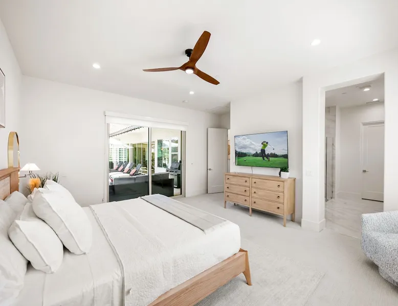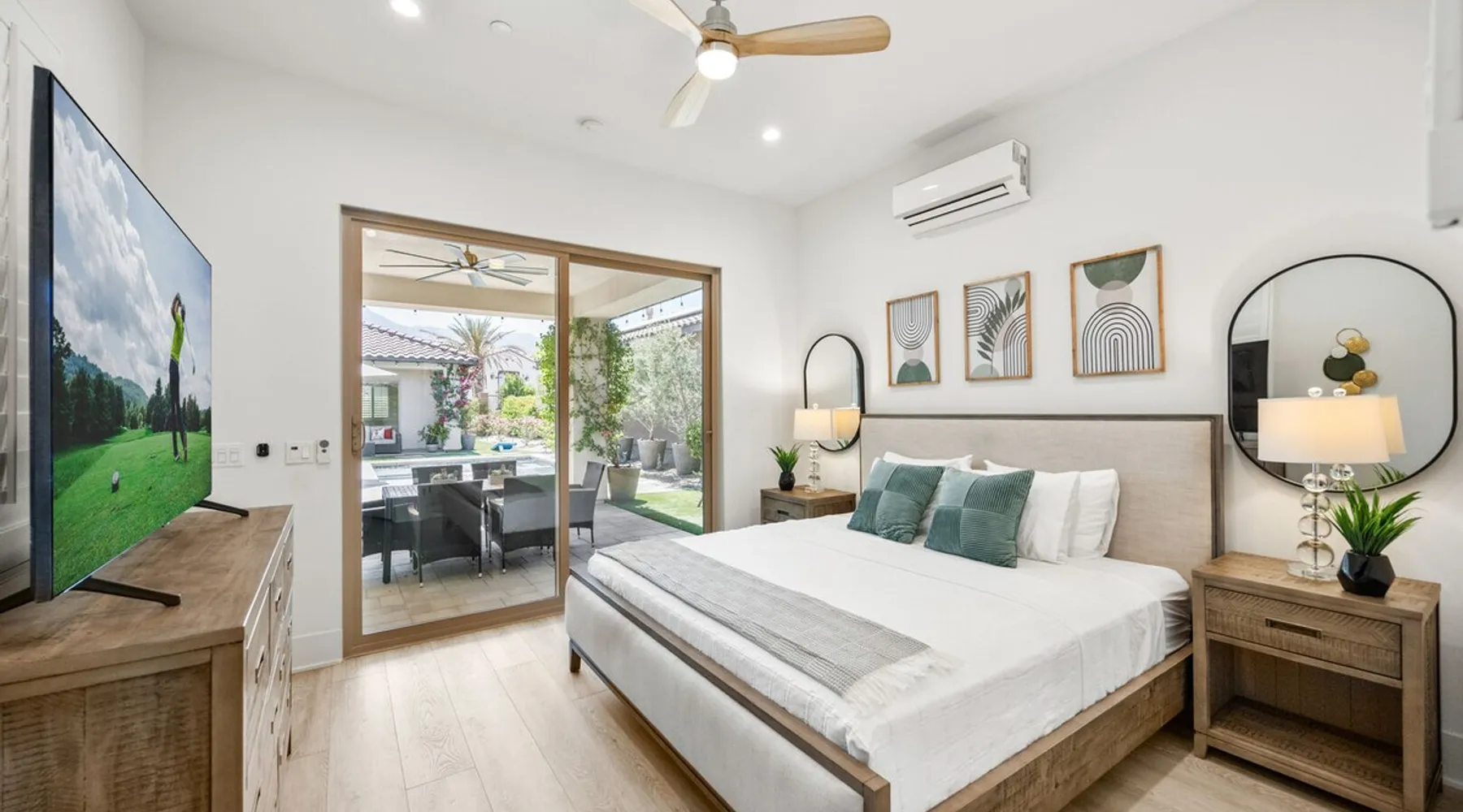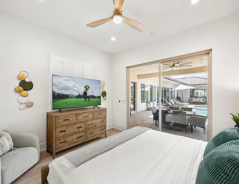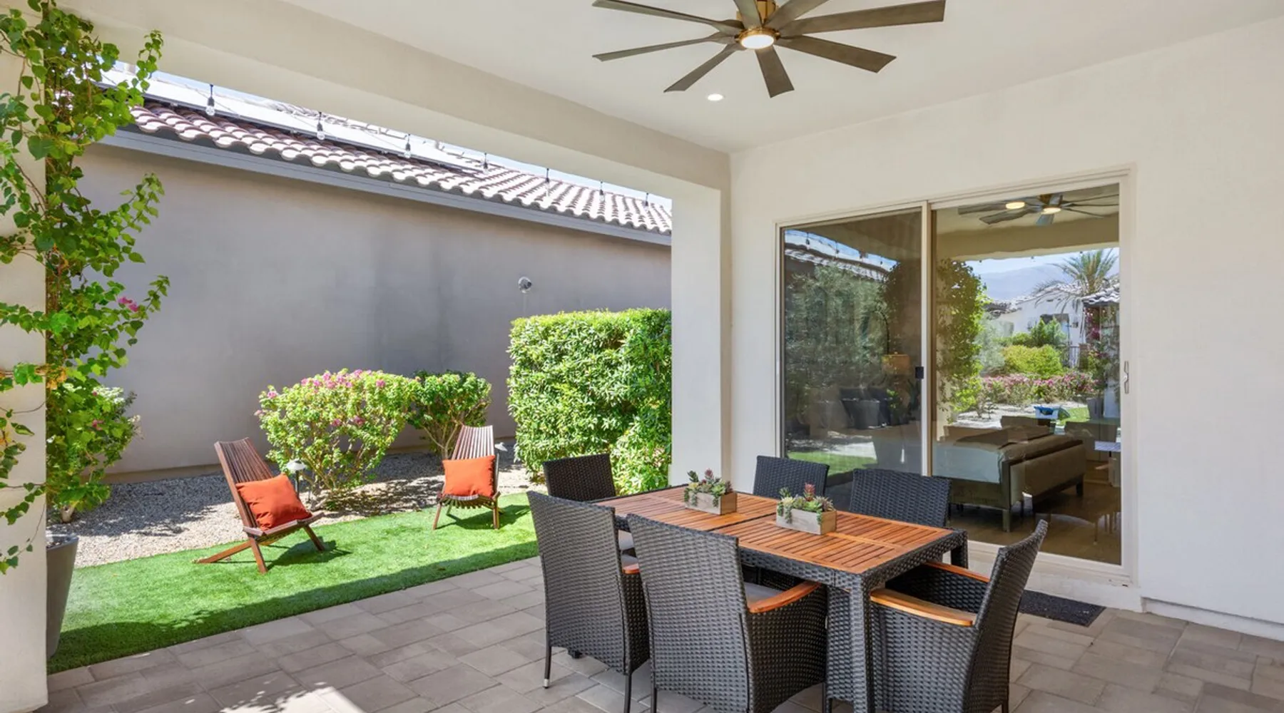 - Welcome to your luxurious 2,260 sq. ft. retreat located in the privately guarded Signature at PGA West community! - Each of the three spacious bedrooms (including casita) comes with its own full bath, offering privacy and comfort for every guest. - Enjoy a private oasis with a pool, spa, and loungers with cabana-style pillows. - Enjoy al fresco dining with BBQ and seating under party lights. - Book now and experience this luxury retreat with your family! The space Book your stay at this incredible Signature PGA West vacation home today and experience the ultimate in relaxation, luxury, and outdoor living…. VARE style. BEDROOMS/SLEEPING ARRANGEMENTS: ✔ Master Suite: King Bed, 65" 4K Smart TV, Ceiling Fan, Large Walk-In Closet, Ensuite Bathroom & Backyard Access ✔ Suite 2: Queen bed, 70" 4K Smart TV, Ceiling Fan, Ensuite Bathroom ✔ Casita Suite 3: King Bed, 65" 4K Smart TV, Ensuite Bathroom * Queen Air Mattress (available upon request) LIVING ROOM: ✔ 75" 4K Smart TV ✔ Comfortable Sofas ✔ Natural Light ✔ Spacious & Modern ✔ Glass Sliding Doors directly to pool KITCHEN & DINING: ✔ Keurig Coffee Maker ✔ High-End Stainless Steel Appliances ✔ Indoor Dining Table for 8 ✔ Bar-Height Seating for 4 POOL & BACKYARD: ✔ Private Pool & Hot Tub ✔ Tanning Shelf ✔ Natural Gas BBQ Grill ✔ Sun Loungers (4) + Large Umbrella ✔ Outdoor Party Lights ✔ Outdoor Dining Table for 6 ✔ Patio Seating area ✔ Cornhole Game ✔ 8-blade Ceiling Fan Under Cover Patio ✔ Tommy Bahama Rolling Party Cooler ** Hot tub is complimentary; optional pool heating is $65/day to 84°F (Oct–May), with summer temps naturally 85–95°F (no heating required)** OTHER AMENITIES: ✔ Free high-speed Wi-Fi ✔ Pack & Play (available upon request) ✔ Full-sized washer/dryer PARKING: ✔ 2 car garage with up to 4 cars total between the driveway/garage ✔ EV Charger Inside Garage COMMUNITY SPACE: ✔ Gym ✔ Heated Pool ✔ Jacuzzi ✔ Shuffleboard ✔ Bocce Ball ✔ Sun Loungers ✔ BBQ Grill ✔ Outdoor dining area ✔ Dog park INCLUDED WITH YOUR VACATION HOME: The property will be stocked with an initial supply of trash bags, paper towels, kitchen sponges, hand soap, dish soap, and toilet paper. The property is equipped with a specific quantity of bath and pool towels to accommodate the max occupancy of the home. The bathrooms are stocked with shampoo and conditioner. There are also fully equipped laundry rooms with a washer, dryer, and iron. THE FOLLOWING IS NOT INCLUDED: cooking oil, sprays, foil, plastic wrap or other cooking ingredients. Signature at PGA WEST is a guarded gated community, and your group will be provided access for your stay. Located a few minutes from the private residence is access to the community clubhouse, which includes a resort-style pool, hot tub, outdoor living/BBQ area, gym fitness center, and shuffleboard. The community pool & hot tub are heated from October to May. ✔ Shuffleboard ✔ Shared Gym ✔ Shared Pool We are minutes from PGA West with five public courses to choose from, as well as SilverRock Resort, an Arnold Palmer Classic Course, another terrific local option. In January, you can walk to the Stadium course to watch the pros play in The American Express Golf Tournament. Tennis fans - in March, you'll be minutes away from the 5th largest tennis tournament in the world, the BNP Paribas Open in Indian Wells, which draws the top-rated men and women tennis players in the world. Tennis and pickleball players - the Fritz Burns park is 10 minutes away with 6 tennis courts and 8 pickleball courts lit and open from Dawn until 10 pm. Coachella and Stagecoach Music Festivals are the main attractions in April, both taking place at the famous Empire Polo Grounds. Close by is the famous El Paseo and Old Town La Quinta areas with excellent dining and shopping options. Ralph’s is the closest supermarket, about 5 minutes away, and Trader Joe's is also nearby. Highway 111 is the home to Costco, Target, Coffee Bean, and Starbucks, among many local favorite restaurants and shopping. Less than 10 minutes from the I-10, you can quickly head to Palm Springs, nearby casinos, Joshua Tree National Park, and other Coachella Valley destinations. ESTIMATED DISTANCES FROM PGA WEST - Jack Nicholas & Stadium PGA West golf courses: 1 min - Ernie’s Bar & Grill (PGA West 19th hole): 1 min - Old Town La Quinta: 5-7 mins - PGA West Greg Norman Course: 10 mins - SilverRock Resort Golf Course: 10 mins - Empire Polo Fields (home to Coachella & Stagecoach music festivals): 10 mins - BNP Paribas Open / Indian Wells Tennis Garden: 10-15 mins - PGA West Dunes Course: 15 mins - PGA West Pete Dye Mountain Course: 15 mins - Palm Desert/El Paseo: 15-20 mins - Acrisure Arena: 25 mins - Downtown Palm Springs/Airport: 35 mins - Joshua Tree National Park: 45 mins - LA/OC/SD: Roughly 2 hours without traffic - FREQUENTLY ASKED QUESTIONS - WHAT TIME IS CHECK-IN AND CHECK-OUT? Check-in time is 4 p.m. and check-out is at 11 a.m. Early check-in and late check-out may be available for your reservation. WILL I NEED TO MEET THE PROPERTY MANAGER TO GET A KEY? Our homes are keyless entry, we issue a “code” rather than a physical key. The code changes for every reservation so it is an incredibly safe alternative. Issuing the code before arrival makes the check-in process much easier. WHAT ARE THE COMMUNITY CLUB & POOL HOURS? ARE THEY HEATED? Clubhouse hours: 5:30 am – 10 pm. The community pool & hot tub are heated from October to May. DO YOU ALLOW PETS? Certain non-shedding hypoallergenic dogs will be considered at an additional fee. Service animals are permitted, and the fee is waived for such situations (however the animal is never permitted to be in the unit alone if it is a service animal). Please note we do not allow any pets other than dogs. Signature PGA West Community Rules: 1) The City of La Quinta & Signature PGA West has a quiet hour ordinance (10 pm – 8 am). 2) No more than 2 vehicles per h