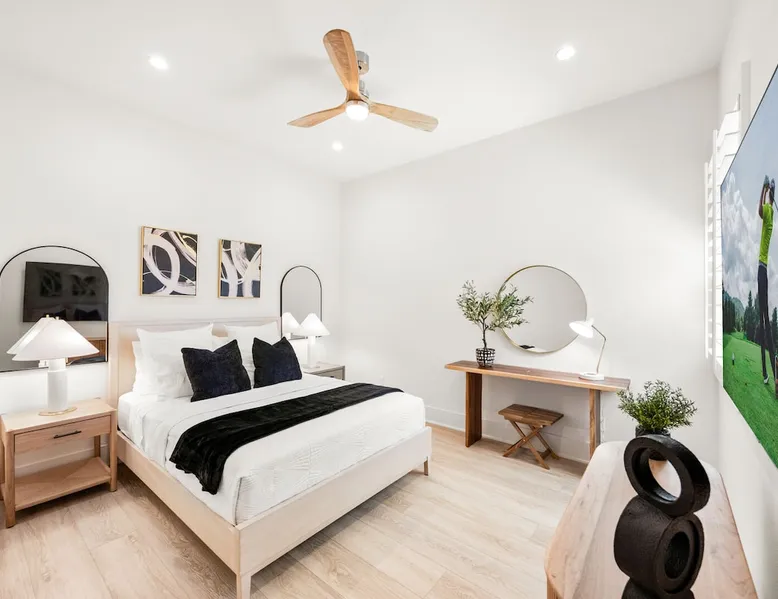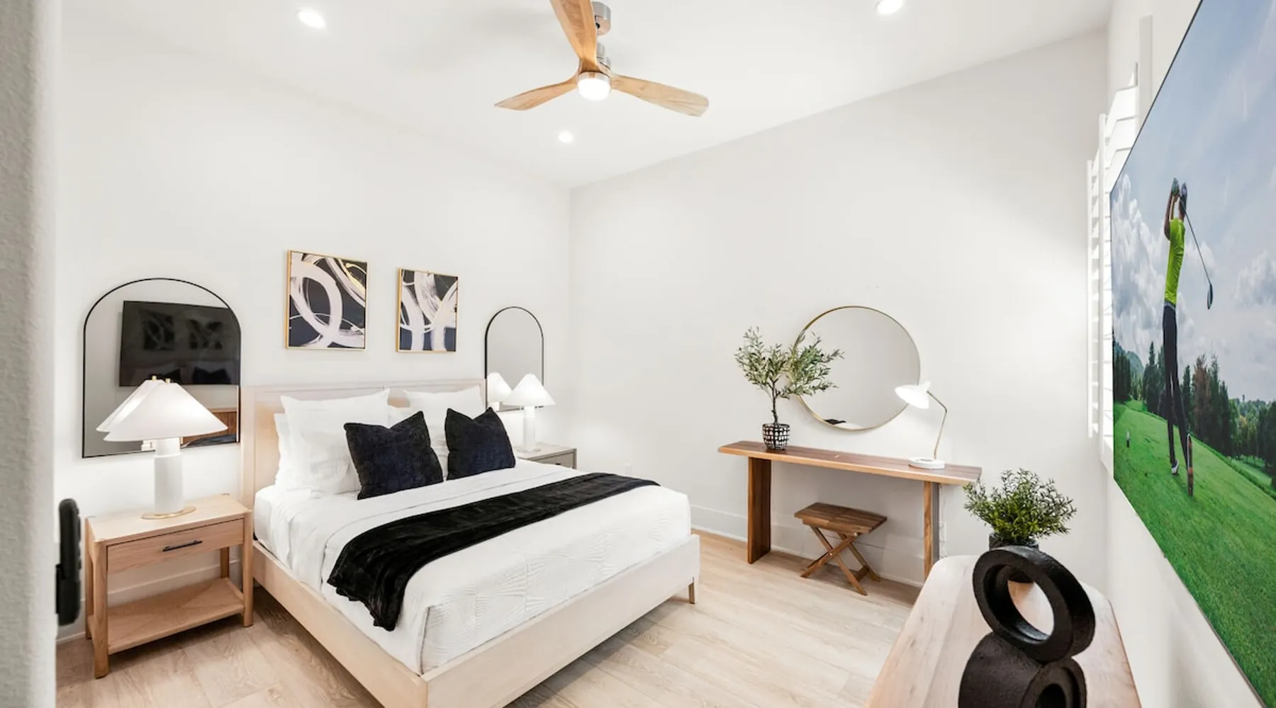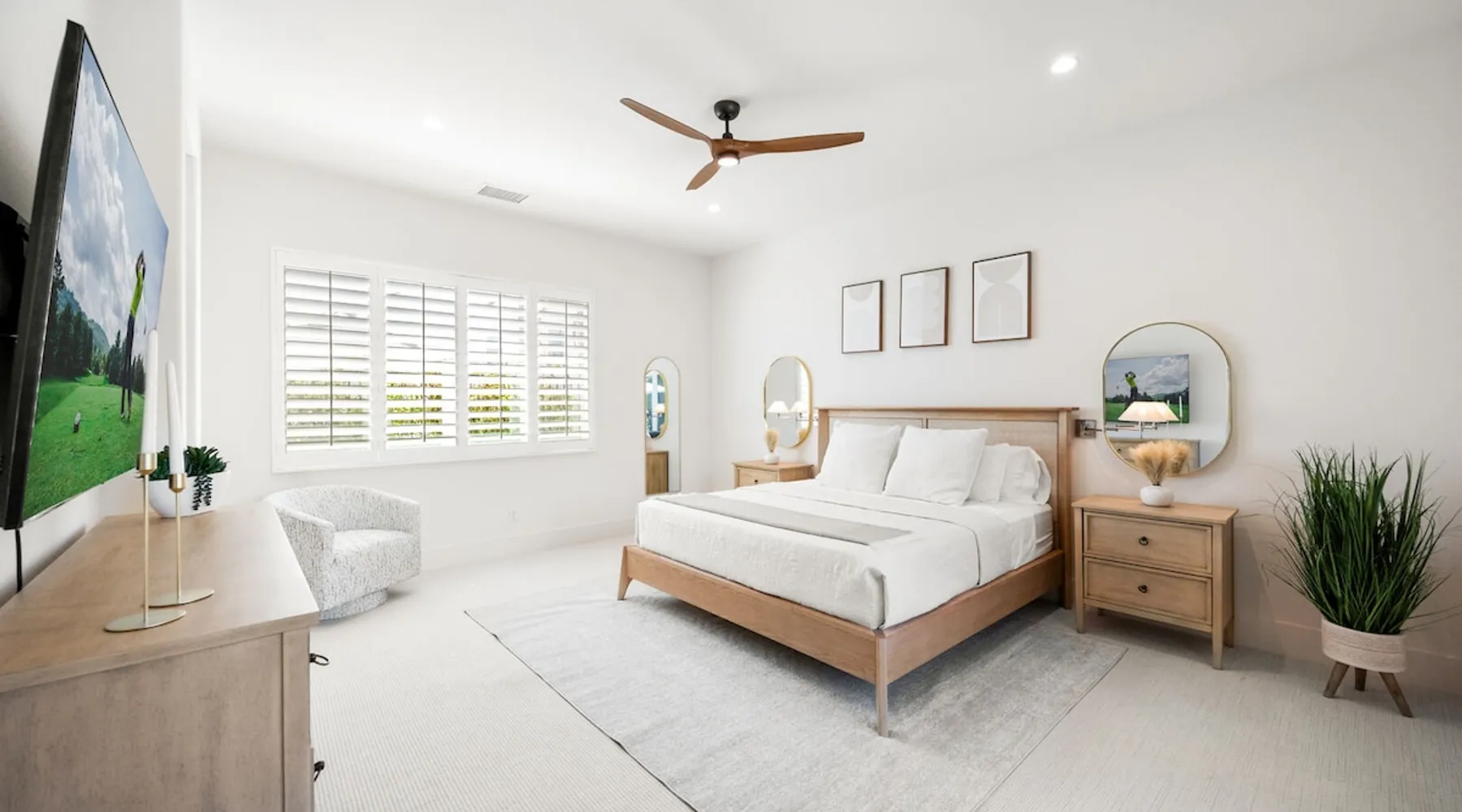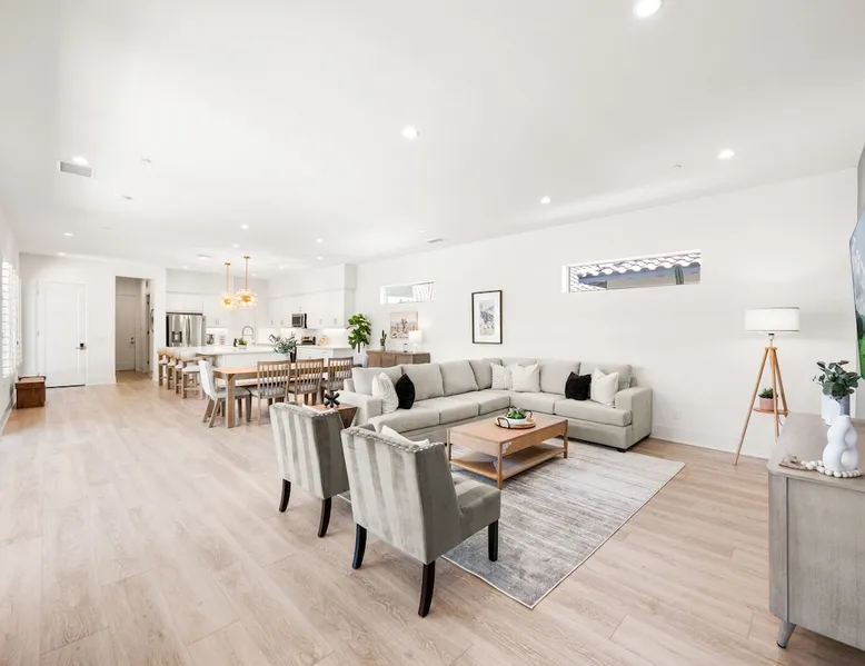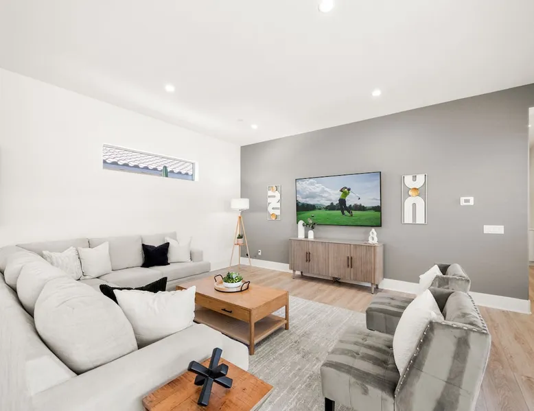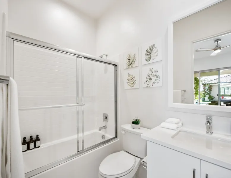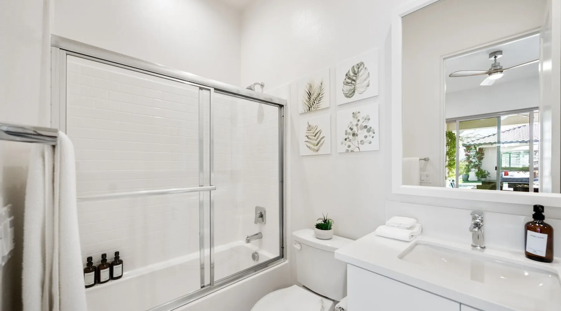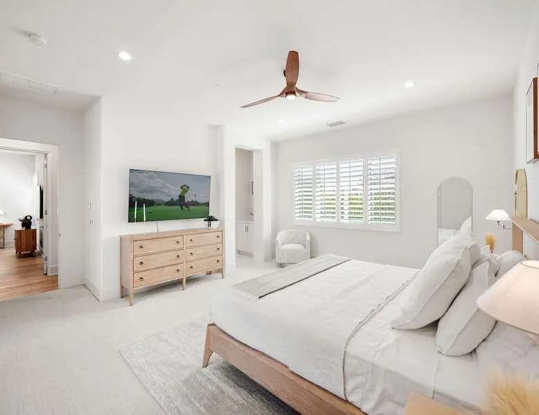- Welcome to your luxurious 2,260 sq. ft. retreat located in the privately guarded Signature at PGA West community! - Each of the three spacious bedrooms (including casita) comes with its own full bath, offering privacy and comfort for every guest. - Enjoy a private oasis with a pool, spa, and loungers with cabana-style pillows. - Enjoy al fresco dining with BBQ and seating under party lights. - Book now and experience this luxury retreat with your family! The space Book your stay at this incredible Signature PGA West vacation home today and experience the ultimate in relaxation, luxury, and outdoor living…. VARE style. BEDROOMS/SLEEPING ARRANGEMENTS: ✔ Master Suite: King Bed, 65" 4K Smart TV, Ceiling Fan, Large Walk-In Closet, Ensuite Bathroom & Backyard Access ✔ Suite 2: Queen bed, 70" 4K Smart TV, Ceiling Fan, Ensuite Bathroom ✔ Casita Suite 3: King Bed, 65" 4K Smart TV, Ensuite Bathroom * Queen Air Mattress (available upon request) LIVING ROOM: ✔ 75" 4K Smart TV ✔ Comfortable Sofas ✔ Natural Light ✔ Spacious & Modern ✔ Glass Sliding Doors directly to pool KITCHEN & DINING: ✔ Keurig Coffee Maker ✔ High-End Stainless Steel Appliances ✔ Indoor Dining Table for 8 ✔ Bar-Height Seating for 4 POOL & BACKYARD: ✔ Private Pool & Hot Tub ✔ Tanning Shelf ✔ Natural Gas BBQ Grill ✔ Sun Loungers (4) + Large Umbrella ✔ Outdoor Party Lights ✔ Outdoor Dining Table for 6 ✔ Patio Seating area ✔ Cornhole Game ✔ 8-blade Ceiling Fan Under Cover Patio ✔ Tommy Bahama Rolling Party Cooler ** Hot tub is complimentary; optional pool heating is $65/day to 84°F (Oct–May), with summer temps naturally 85–95°F (no heating required)** OTHER AMENITIES: ✔ Free high-speed Wi-Fi ✔ Pack & Play (available upon request) ✔ Full-sized washer/dryer PARKING: ✔ 2 car garage with up to 4 cars total between the driveway/garage ✔ EV Charger Inside Garage COMMUNITY SPACE: ✔ Gym ✔ Heated Pool ✔ Jacuzzi ✔ Shuffleboard ✔ Bocce Ball ✔ Sun Loungers ✔ BBQ Grill ✔ Outdoor dining area ✔ Dog park INCLUDED WITH YOUR VACATION HOME: The property will be stocked with an initial supply of trash bags, paper towels, kitchen sponges, hand soap, dish soap, and toilet paper. The property is equipped with a specific quantity of bath and pool towels to accommodate the max occupancy of the home. The bathrooms are stocked with shampoo and conditioner. There are also fully equipped laundry rooms with a washer, dryer, and iron. THE FOLLOWING IS NOT INCLUDED: cooking oil, sprays, foil, plastic wrap or other cooking ingredients. Signature at PGA WEST is a guarded gated community, and your group will be provided access for your stay. Located a few minutes from the private residence is access to the community clubhouse, which includes a resort-style pool, hot tub, outdoor living/BBQ area, gym fitness center, and shuffleboard. The community pool & hot tub are heated from October to May. ✔ Shuffleboard ✔ Shared Gym ✔ Shared Pool We are minutes from PGA West with five public courses to choose from, as well as SilverRock Resort, an Arnold Palmer Classic Course, another terrific local option. In January, you can walk to the Stadium course to watch the pros play in The American Express Golf Tournament. Tennis fans - in March, you'll be minutes away from the 5th largest tennis tournament in the world, the BNP Paribas Open in Indian Wells, which draws the top-rated men and women tennis players in the world. Tennis and pickleball players - the Fritz Burns park is 10 minutes away with 6 tennis courts and 8 pickleball courts lit and open from Dawn until 10 pm. Coachella and Stagecoach Music Festivals are the main attractions in April, both taking place at the famous Empire Polo Grounds. Close by is the famous El Paseo and Old Town La Quinta areas with excellent dining and shopping options. Ralph’s is the closest supermarket, about 5 minutes away, and Trader Joe's is also nearby. Highway 111 is the home to Costco, Target, Coffee Bean, and Starbucks, among many local favorite restaurants and shopping. Less than 10 minutes from the I-10, you can quickly head to Palm Springs, nearby casinos, Joshua Tree National Park, and other Coachella Valley destinations. ESTIMATED DISTANCES FROM PGA WEST - Jack Nicholas & Stadium PGA West golf courses: 1 min - Ernie’s Bar & Grill (PGA West 19th hole): 1 min - Old Town La Quinta: 5-7 mins - PGA West Greg Norman Course: 10 mins - SilverRock Resort Golf Course: 10 mins - Empire Polo Fields (home to Coachella & Stagecoach music festivals): 10 mins - BNP Paribas Open / Indian Wells Tennis Garden: 10-15 mins - PGA West Dunes Course: 15 mins - PGA West Pete Dye Mountain Course: 15 mins - Palm Desert/El Paseo: 15-20 mins - Acrisure Arena: 25 mins - Downtown Palm Springs/Airport: 35 mins - Joshua Tree National Park: 45 mins - LA/OC/SD: Roughly 2 hours without traffic - FREQUENTLY ASKED QUESTIONS - WHAT TIME IS CHECK-IN AND CHECK-OUT? Check-in time is 4 p.m. and check-out is at 11 a.m. Early check-in and late check-out may be available for your reservation. WILL I NEED TO MEET THE PROPERTY MANAGER TO GET A KEY? Our homes are keyless entry, we issue a “code” rather than a physical key. The code changes for every reservation so it is an incredibly safe alternative. Issuing the code before arrival makes the check-in process much easier. WHAT ARE THE COMMUNITY CLUB & POOL HOURS? ARE THEY HEATED? Clubhouse hours: 5:30 am – 10 pm. The community pool & hot tub are heated from October to May. DO YOU ALLOW PETS? Certain non-shedding hypoallergenic dogs will be considered at an additional fee. Service animals are permitted, and the fee is waived for such situations (however the animal is never permitted to be in the unit alone if it is a service animal). Please note we do not allow any pets other than dogs. Signature PGA West Community Rules: 1) The City of La Quinta & Signature PGA West has a quiet hour ordinance (10 pm – 8 am). 2) No more than 2 vehicles per h