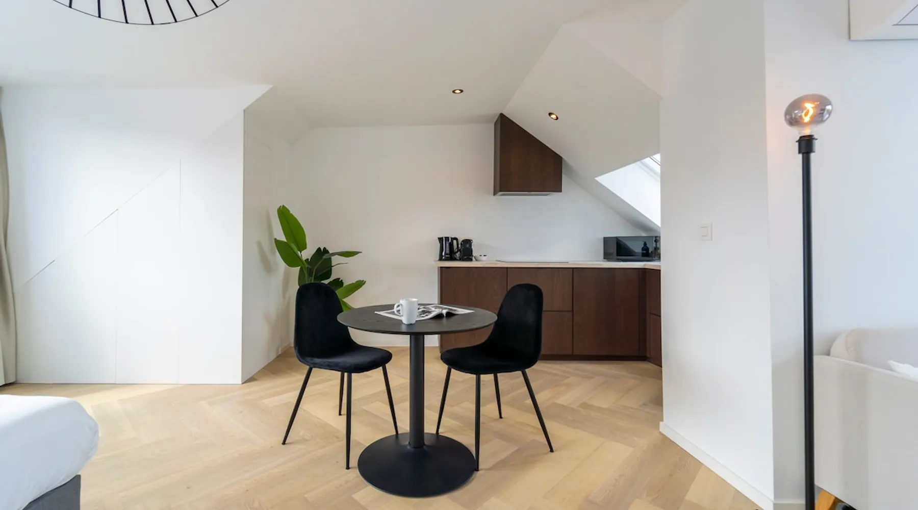 This luxurious studio is located in the heart of Hasselt, close to the Dusartplein. - The studio is equipped with all modern comforts and recently renovated (2024) - Equipped with a spacious sun terrace! - Cozy and soothingly decorated with an eye for detail - Located on the 3rd floor, no elevator available - Paid parking on the street, at 300 m you can park for free - There are charging stations at 500 m - You can check in yourself upon arrival Other things to note Upon arrival, the bed will be made. Towels are also provided (1 large and 1 small per person).