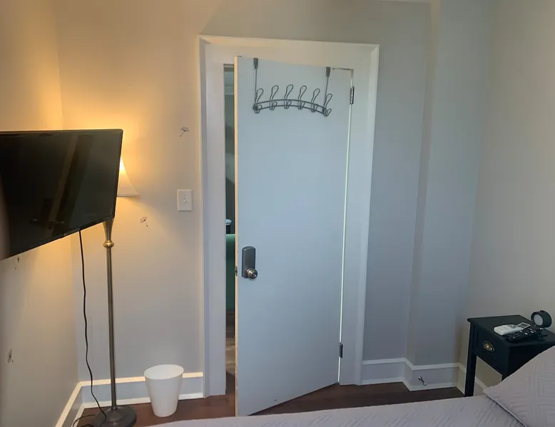 This private room in the historic Egyptian House, features a full size bed with comfortable memory foam mattress, modern furnishings, wifi/internet TV, ceiling fan, hardwood floors. Enjoy a coffee or tea, or cook a meal in the large kitchen, watch cable tv or a movie in the sunken living room or share a meal in the dining room. The house is equipped with high speed internet. Take it easy at this unique and tranquil getaway. The space The Egyptian House has hardwood floors throughout, updated kitchen with stainless steel appliances, 2 large bathrooms, sunken living room and dining room with a baby grand piano. Relax and enjoy the many the amenities offered here. The Egyptian House is a great place stay, Guest access Guests have access to off-street parking, two full shared bathrooms, sunken living area with television, dining area, full kitchen, laundry in bathroom (detergent provided), patio and yard. Please do not enter other bedrooms, or up the stairs from the foyer, or down the stairs to the basement - these areas are private or for other guests. John and his dog Aspen are onsite to make your stay comfortable. During your stay John and his dog Aspen are onsite to make your stay comfortable. Long term stays may have a bedding refresh on request. Other things to note This home also has 2 other room listings available for booking: King's Chamber and Castle Loft. We often have multiple guests staying with us in this shared home. Also on the property are 2 private, one-bedroom apartments: Blue Tranquility & Green Sanctuary. This home is appropriate for travelers, business trips, short term living needs, and work-from-home/online work from your room. This home is not appropriate for romantic getaways, group business meetings, parties, events, or photo-shoots. This property is also not appropriate for booking as an address simply to receive packages and other deliveries, nor to establish an official residency address and/or receive government documents for such purposes; it is a place for overnight rest/sleep. We allow legal recreational cannabis smoking in outside private spaces only - the back patio and patio between house and apartment building next door. We allow medical-use cannabis smoking only in outside private spaces. For current Delaware state guidance and laws see the website: omc[dot]delware[dot]gov Discreet use of alcoholic beverages is allowed, but drunkenness is not welcome.