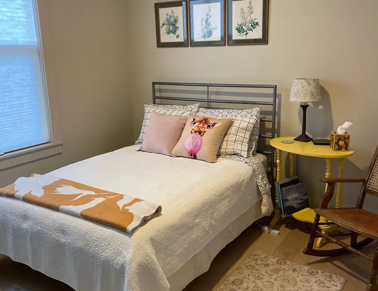 Kick back & relax between your rides & hikes in this stylish space that's <2 miles from Pisgah Forest. My home is perfect as the starting point for your mountain adventures. Located within a 1/4m to the Greenway w/in walking & riding distance to Oskar Blues, Ecusta Brewing, The Hub & Sycamore Cycles. Downtown Brevard, Restaurants & Shopping is 2.7 m. away by the Greenway or auto. Safe, locked, bike storage & outdoor bike wash. Fenced back yard with seating & fire pit. No smoking/vaping The space Our home is warm and inviting and a perfect place to start your Brevard adventures from. I work from home several days a week and am available for questions or referrals on things to do. Our home doesn't really have a separate space for guests to telework from during the day. There is no desk in the bedroom and the shared spaces are shared spaces with an open kitchen/living room format. There are several coffee bars in town that have free wifi and allow individuals to work from their spaces. We offer off-street parking in the driveway. There is easy access to the Bike Shed located in the back yard, for storing your ride. We have a fenced in back yard with seating and a fire pit to use. We do pay attention to burn bans in the region and can advise if a ban is in place during your stay. There is a water spigot located next to the driveway for use as a bike wash if needed. We have a bike rack system on this same side of the house for temporary storage or while you clean your bike from the days ride. The property sits near the Community Sports Complex and depending on the season, you may hear the strike of an aluminum bat or fans cheering after a soccer goal has been made. We don't allow eating in your room - and there is ample space in the kitchen area for you to enjoy a meal. Guest access You’ll have your own bathroom and bedroom; with shared kitchen, dining and living room space. Guests love my front porch and the relaxing rocking chairs there. During your stay Please reach out to me if you have questions. Other things to note Safe, Locked, bike storage. We have the policy that rentals will only be let for those persons 22 years old and older. The space available is a bedroom with a Full Size / Double mattress and there is no option for a Queen bed.