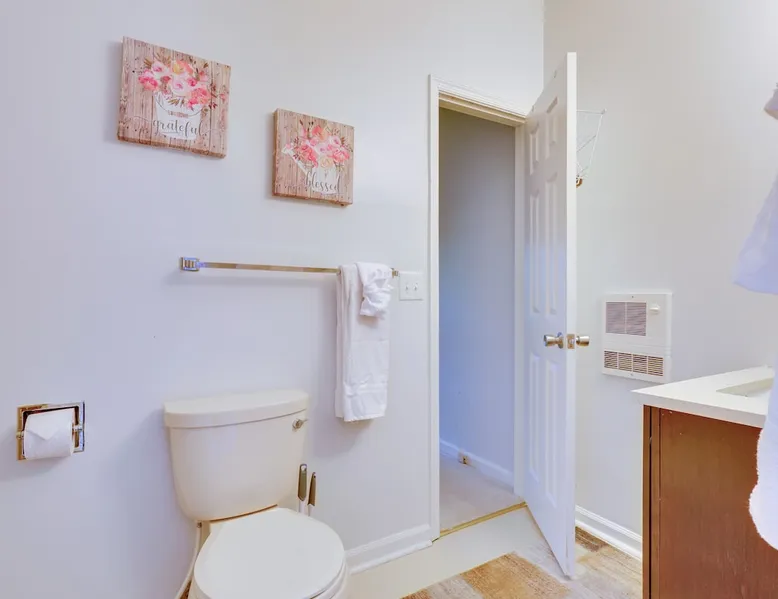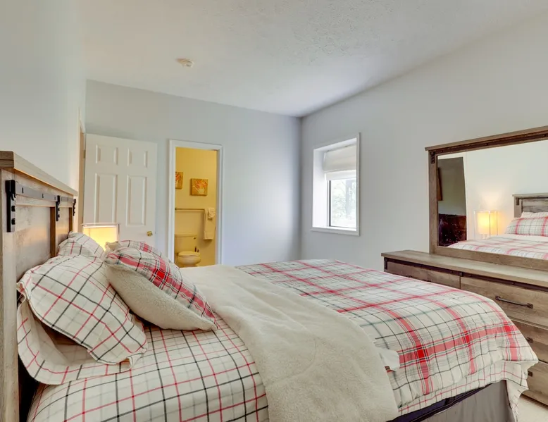 Your next memorable Shenandoah Valley retreat awaits at this cozy Basye vacation rental! Perfect for a fun-filled couple’s getaway or rejuvenating solo trip, this 1-bedroom, 1-bath townhome offers a serene wooded setting that’s just minutes from the ski slopes, bike trails, and more found at Bryce Resort. Be sure to check out Lake Laura Beach, tour some top-rated local wineries, or visit the Shenandoah Caverns! Then, head back for a dip in the community pool or movie night on the Smart TV. The space Private Patio w/ Forest Views | Tennis Court Access | 1 Mi to Lake Laura Beach Bedroom: Queen Bed COMMUNITY AMENITIES: Outdoor pool, tennis courts HOME FEATURES: Smart TV, dining table, en-suite bathroom KITCHEN: Refrigerator, Keurig coffee maker, stove/oven, microwave, toaster, dishware & flatware, cooking basics GENERAL: Self check-in, free WiFi, central heating, window A/C unit, iron/board, towels/linens, trash bags/paper towels, complimentary toiletries, hair dryer ACCESSIBILITY: Single-story townhome, basement-level unit, small hill & 1 step required to access PARKING: Driveway (2 vehicles) ADDT’L ACCOMMODATIONS: An additional property is available on-site with a separate nightly rate. If you would like to reserve both rentals, please inquire for more information prior to booking Guest access Guests will have access to the entire property via lockbox Other things to note - No smoking - No pets allowed - No events, parties, or large gatherings - Additional fees and taxes may apply - Photo ID may be required upon check-in - NOTE: This single-story townhome is located on the building’s basement level and requires walking down a small hill and using 1 step to access - NOTE: There is an additional bookable vacation rental on-site in the completely separate upstairs unit. The backyard is shared and other travelers may be present during your stay