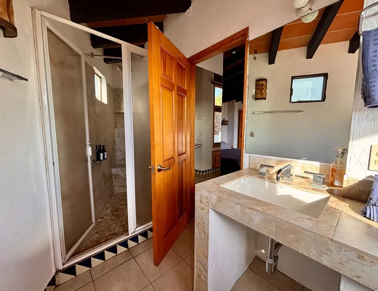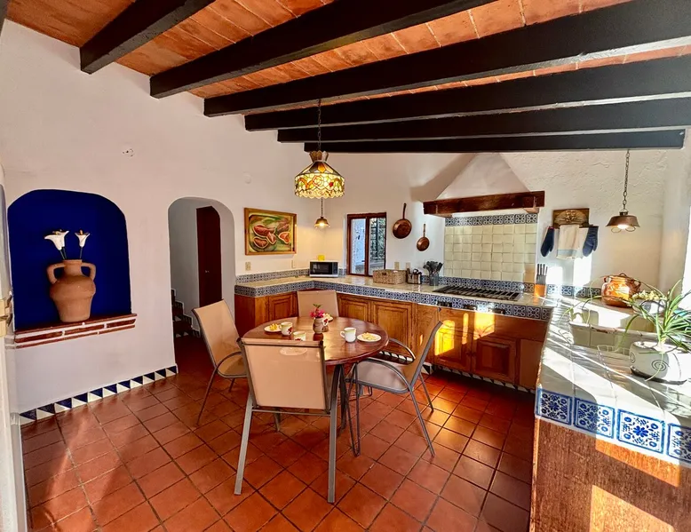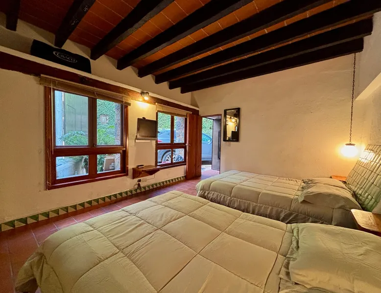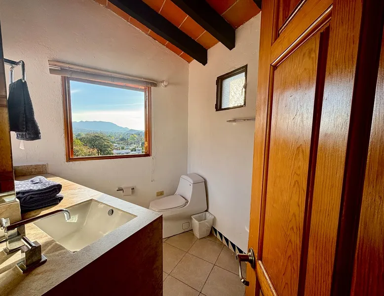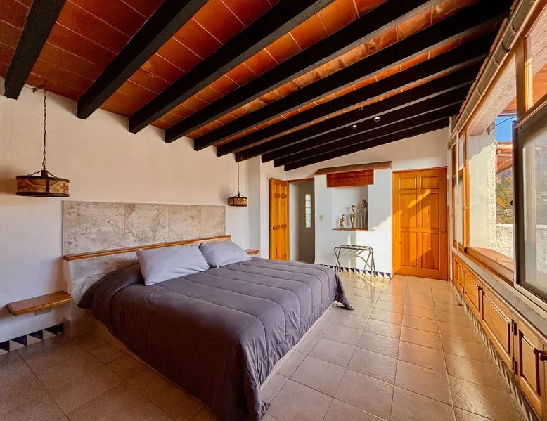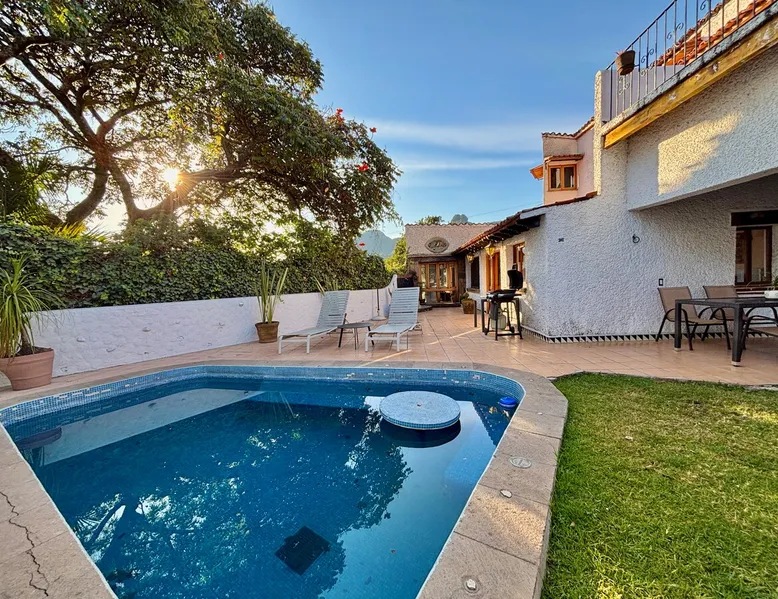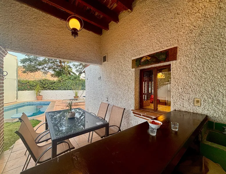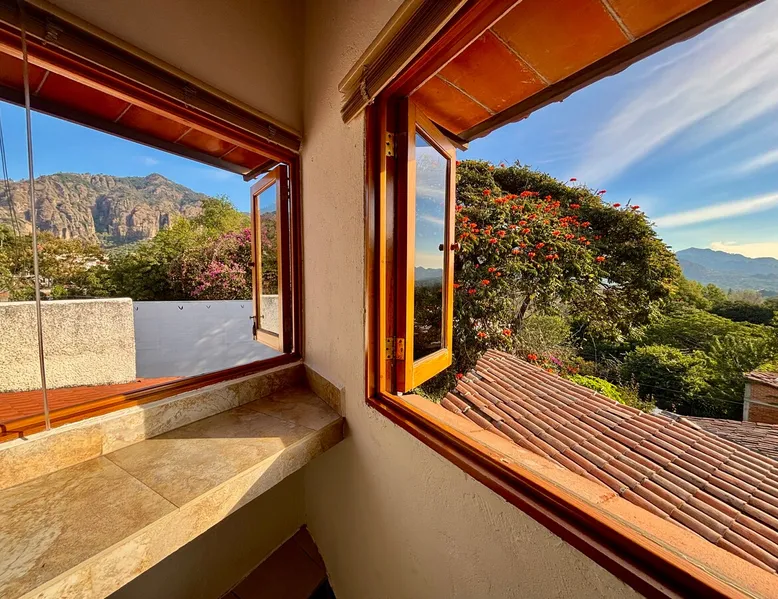 Casa Marianne, beautiful house in the center of the magical town of Tepoztlán and 5 min from the Zocalo. Enjoy incredible views of Mount Tepozteco and the cathedral from the pool, terrace or balcony Perfect for going with friends or family and enjoying a few days of all the energy offered by the village and its people. The space Casa Marianne offers all the comforts of a fully equipped property. It has a heated and hydromassage pool, 3 bedrooms, 3 full bathrooms, parking, a barbecue, a bar, a kitchen and a terrace with a small fireplace. Especially good to go with family or a small group of friends to enjoy a time of tranquility or exploration of the magical village of Tepoztlán. The pool is small, very good for children or for a relaxing day and the best part is that it is fully heated. A unique and equipped space to enjoy the most special days with your loved ones in the best location of the center of Tepoztlan, just nas away from the main avenue, the market and the cathedral. Guest access The whole house is accessible and EXCLUSIVE to our guests: kitchen, bar, terrace, pool, living room, patio, small garage and all three bedrooms. You will have the comfort and privacy of a space reserved for you. Very easy access by car or walking a few steps from the center and the main streets. Parking for one car. Other things to note Casa Marianne has been home to our family for three generations. Full of good times and fond memories for us, we now make it available to visitors to Tepoztlán that we love so much, welcoming them as part of our family always. Heated pool. Parking for 1 car