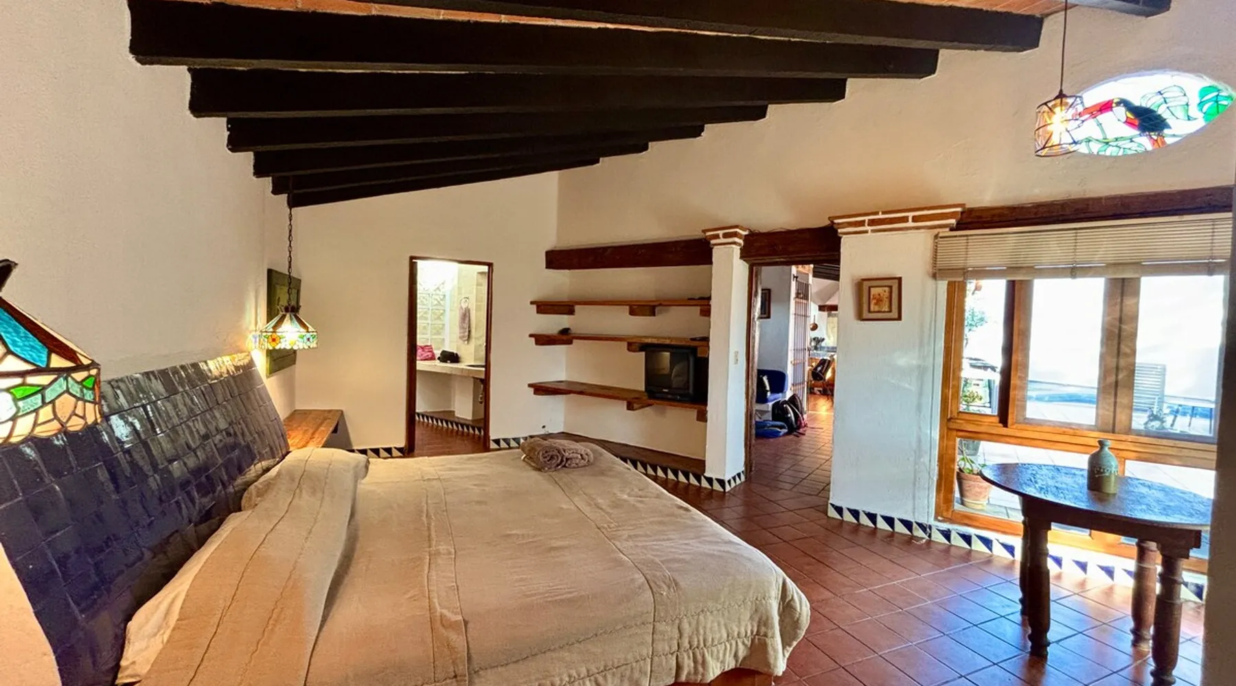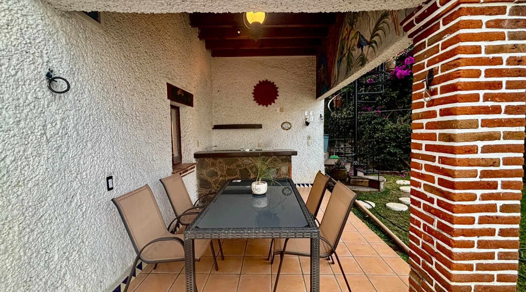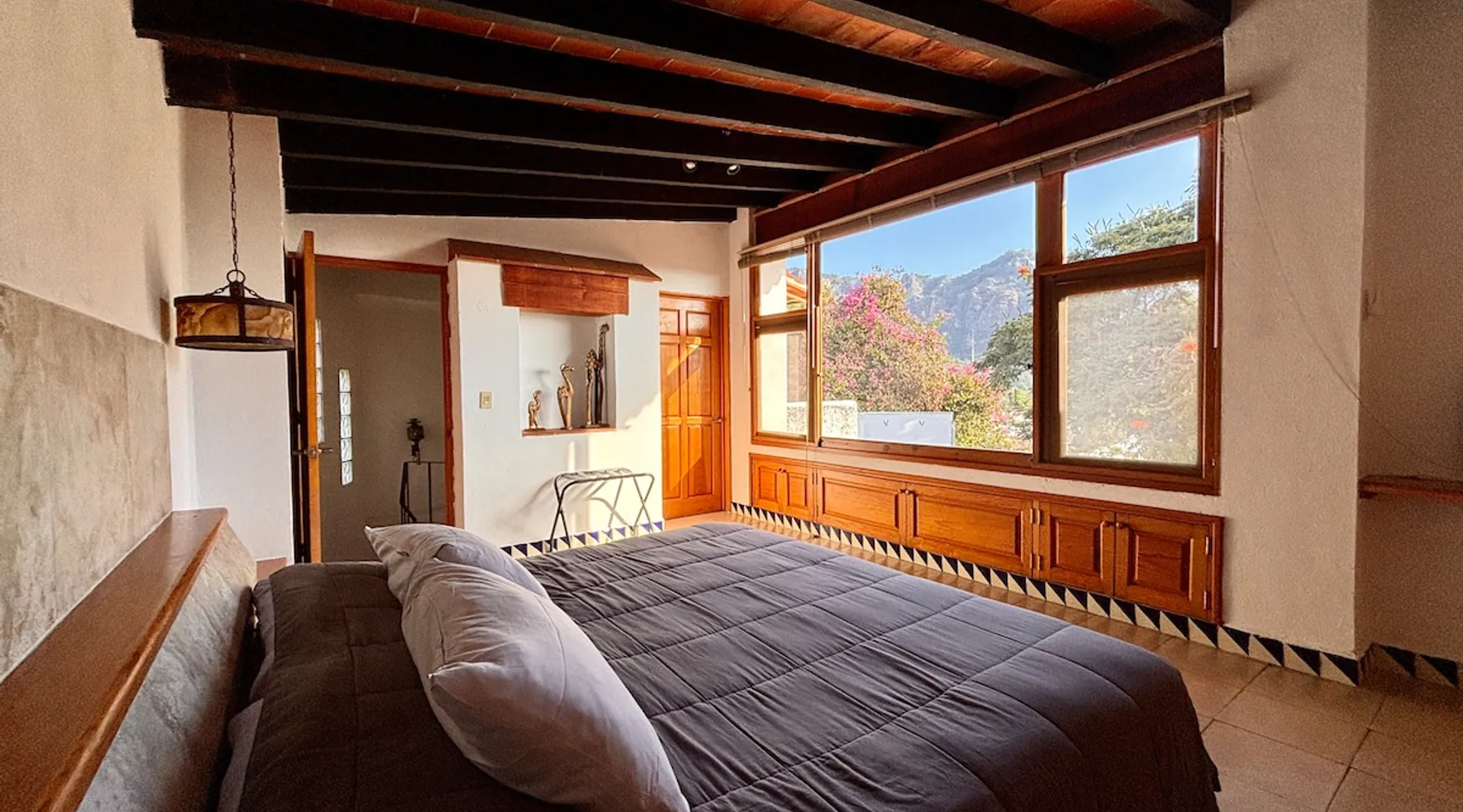 Casa Marianne, beautiful house in the center of the magical town of Tepoztlán and 5 min from the Zocalo. Enjoy incredible views of Mount Tepozteco and the cathedral from the pool, terrace or balcony Perfect for going with friends or family and enjoying a few days of all the energy offered by the village and its people. The space Casa Marianne offers all the comforts of a fully equipped property. It has a heated and hydromassage pool, 3 bedrooms, 3 full bathrooms, parking, a barbecue, a bar, a kitchen and a terrace with a small fireplace. Especially good to go with family or a small group of friends to enjoy a time of tranquility or exploration of the magical village of Tepoztlán. The pool is small, very good for children or for a relaxing day and the best part is that it is fully heated. A unique and equipped space to enjoy the most special days with your loved ones in the best location of the center of Tepoztlan, just nas away from the main avenue, the market and the cathedral. Guest access The whole house is accessible and EXCLUSIVE to our guests: kitchen, bar, terrace, pool, living room, patio, small garage and all three bedrooms. You will have the comfort and privacy of a space reserved for you. Very easy access by car or walking a few steps from the center and the main streets. Parking for one car. Other things to note Casa Marianne has been home to our family for three generations. Full of good times and fond memories for us, we now make it available to visitors to Tepoztlán that we love so much, welcoming them as part of our family always. Heated pool. Parking for 1 car