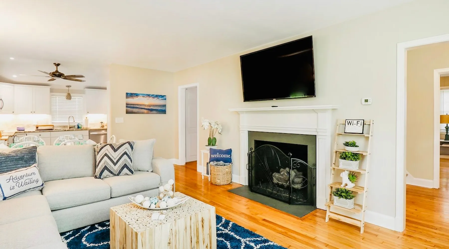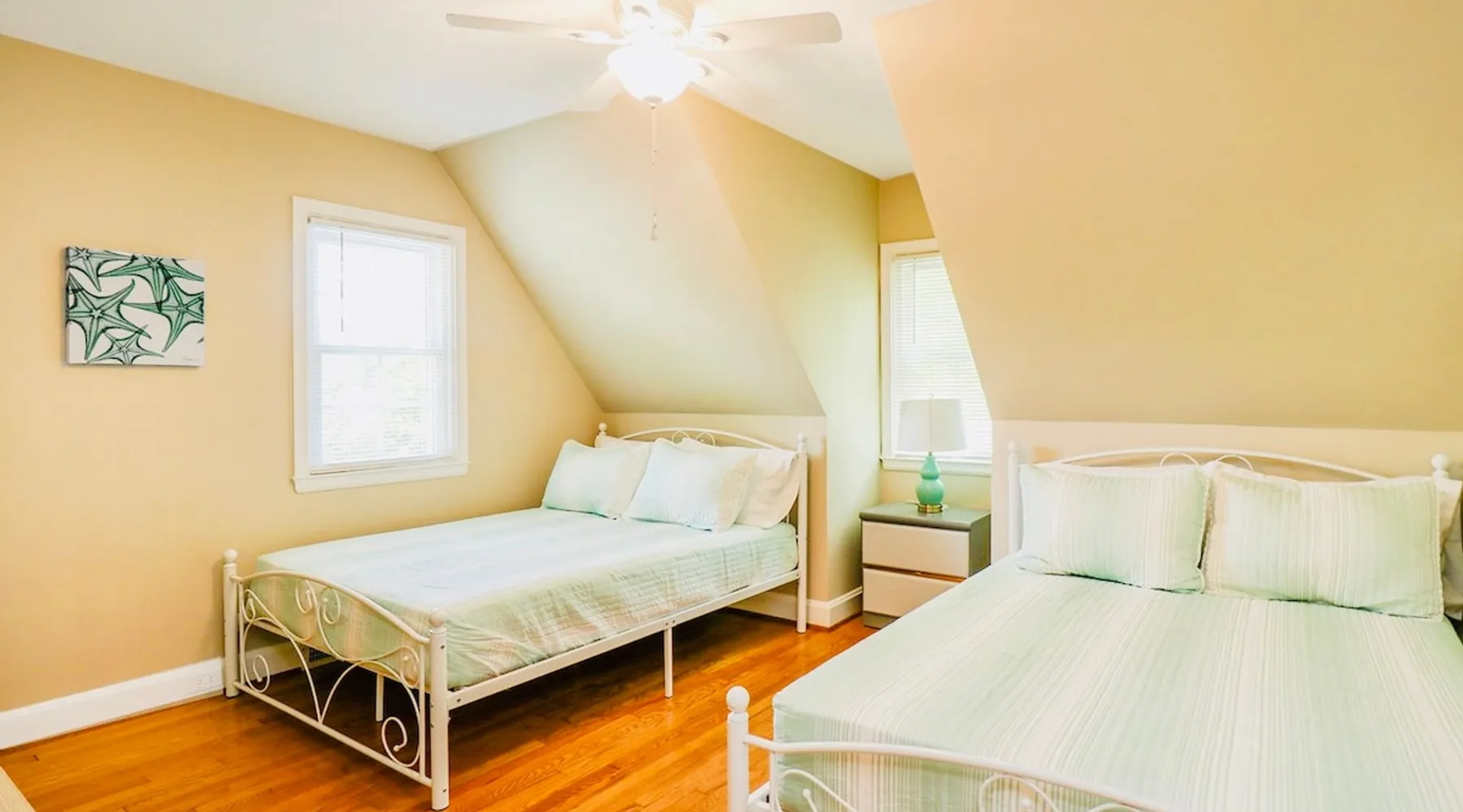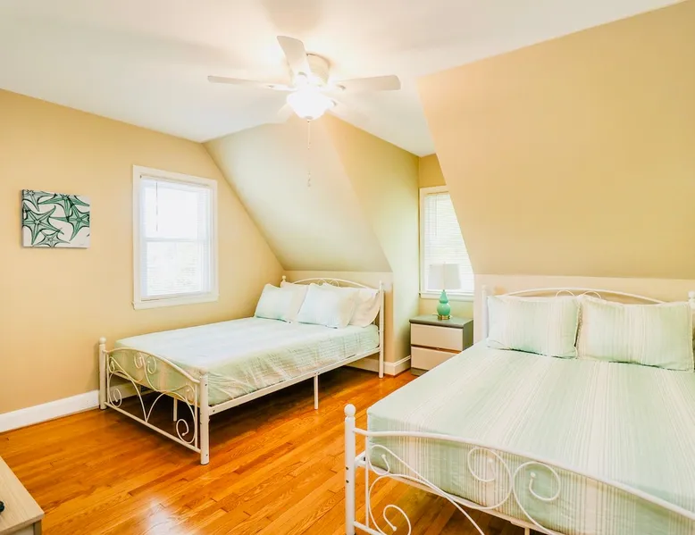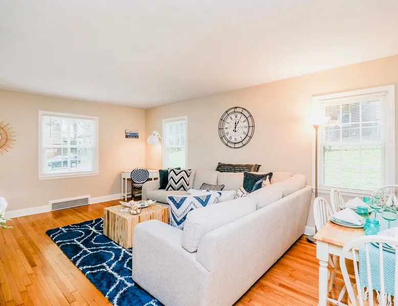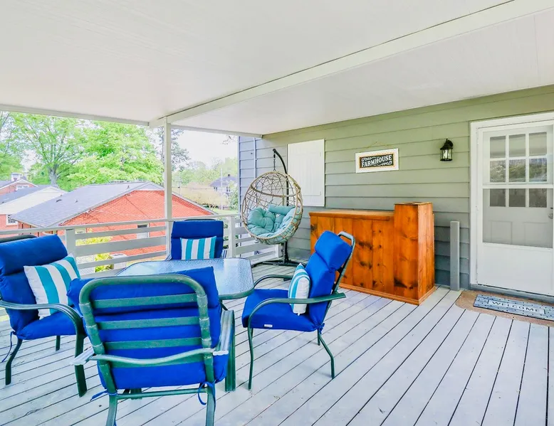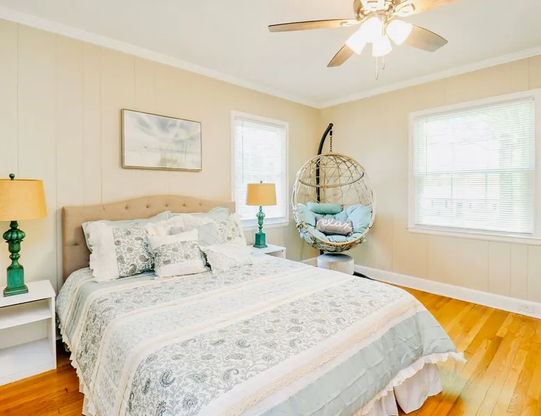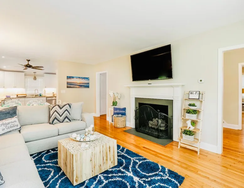 Welcome to the Home on Sunset, a relaxing coastal farmhouse themed home in the prestigious and safe Emerywood neighborhood. This home can comfortably sleep up to 10 guests and offers 4 bedrooms and 2.5 baths with flat screen TVs in each bedroom including a 65' flat screen TV in the living room with complimentary Netflix. Minutes to High Point University, HP Furniture Market, High Point Country Club and the new Rockers Baseball Stadium. The space About the Home Located in the prestigious Emerywood neighborhood, this thoughtfully updated home offers relaxed farmhouse style with modern comfort. With space for 10 guests, it’s a warm, welcoming retreat for families, professionals, and Market travelers. Bedrooms & Baths The home features 4 bedrooms and 2.5 baths: Downstairs Primary: Queen bed, ensuite bath, two large closets Upstairs Primary: King bed, dedicated workspace Bedroom 3: Queen bed Bedroom 4: Two double beds All bedrooms include memory foam mattresses, Smart TVs, and ceiling fans. Kitchen & Dining The kitchen offers granite countertops, stainless appliances, and essentials for cooking. Enjoy coffee from the Keurig, coffee pods, French press, or tea. The dining area seats 6, with extra chairs and a small table available. Living Spaces A bright living room features hardwood floors, a decorative fireplace, and a 65" Smart TV with complimentary Netflix. A back patio with swing chair adds a quiet outdoor spot to unwind. Laundry & Essentials Full laundry room with washer, dryer, detergent, and ironing essentials. WiFi & Parking Fast 400 Mbps internet supports streaming and remote work. A large driveway fits up to 5 cars. A stylish, comfortable stay in one of High Point’s most desirable neighborhoods, perfect for relaxing or exploring the city. Guest access A private entrance and keyless access code to allow easy access 24/7 as you come and go. This also allows for an easy check-in and checkout-out. As backup, we also have additional keys located in a lock box, should it be needed.