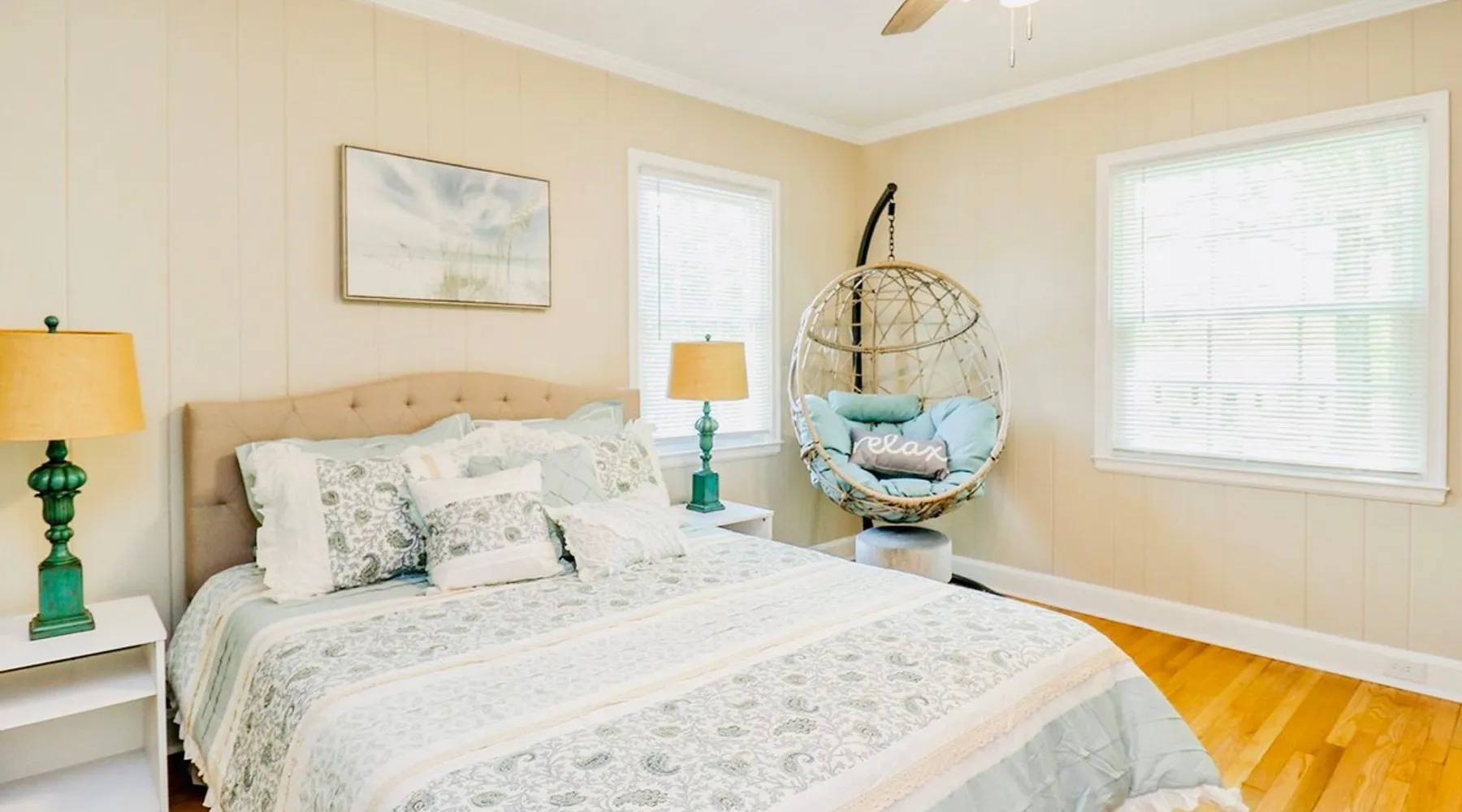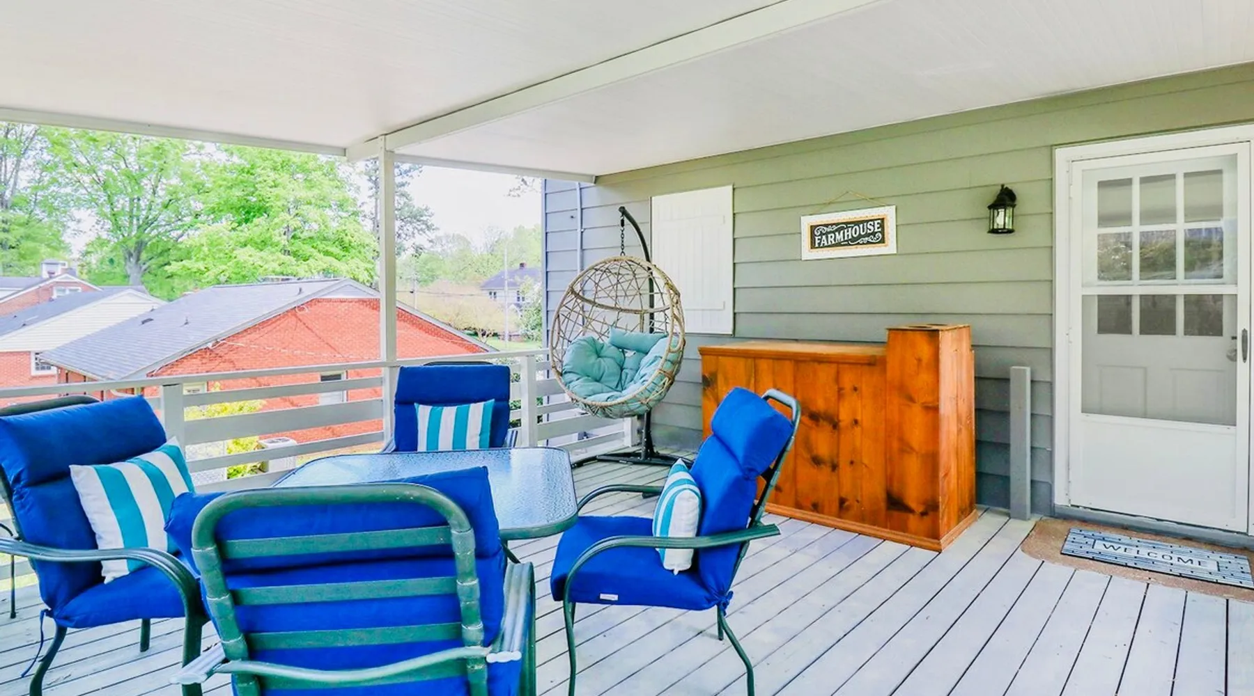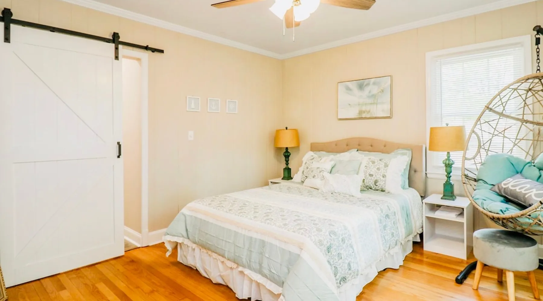 Welcome to the Home on Sunset, a relaxing coastal farmhouse themed home in the prestigious and safe Emerywood neighborhood. This home can comfortably sleep up to 10 guests and offers 4 bedrooms and 2.5 baths with flat screen TVs in each bedroom including a 65' flat screen TV in the living room with complimentary Netflix. Minutes to High Point University, HP Furniture Market, High Point Country Club and the new Rockers Baseball Stadium. The space About the Home Located in the prestigious Emerywood neighborhood, this thoughtfully updated home offers relaxed farmhouse style with modern comfort. With space for 10 guests, it’s a warm, welcoming retreat for families, professionals, and Market travelers. Bedrooms & Baths The home features 4 bedrooms and 2.5 baths: Downstairs Primary: Queen bed, ensuite bath, two large closets Upstairs Primary: King bed, dedicated workspace Bedroom 3: Queen bed Bedroom 4: Two double beds All bedrooms include memory foam mattresses, Smart TVs, and ceiling fans. Kitchen & Dining The kitchen offers granite countertops, stainless appliances, and essentials for cooking. Enjoy coffee from the Keurig, coffee pods, French press, or tea. The dining area seats 6, with extra chairs and a small table available. Living Spaces A bright living room features hardwood floors, a decorative fireplace, and a 65" Smart TV with complimentary Netflix. A back patio with swing chair adds a quiet outdoor spot to unwind. Laundry & Essentials Full laundry room with washer, dryer, detergent, and ironing essentials. WiFi & Parking Fast 400 Mbps internet supports streaming and remote work. A large driveway fits up to 5 cars. A stylish, comfortable stay in one of High Point’s most desirable neighborhoods, perfect for relaxing or exploring the city. Guest access A private entrance and keyless access code to allow easy access 24/7 as you come and go. This also allows for an easy check-in and checkout-out. As backup, we also have additional keys located in a lock box, should it be needed.