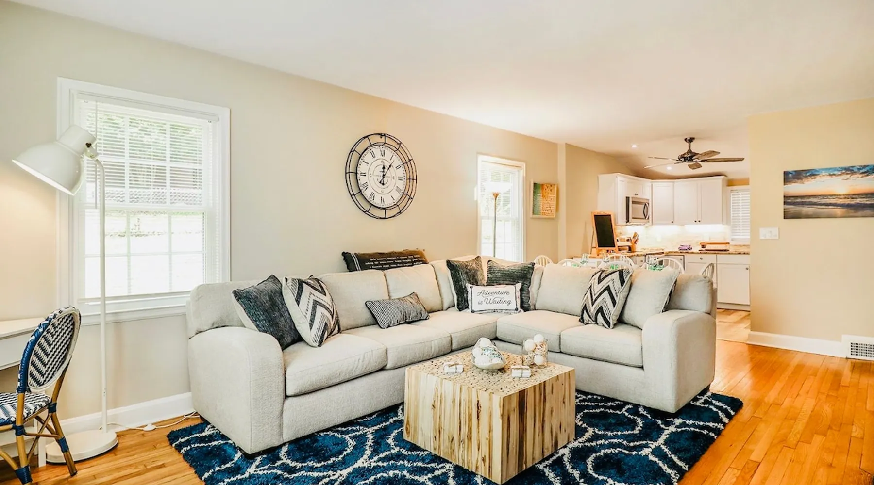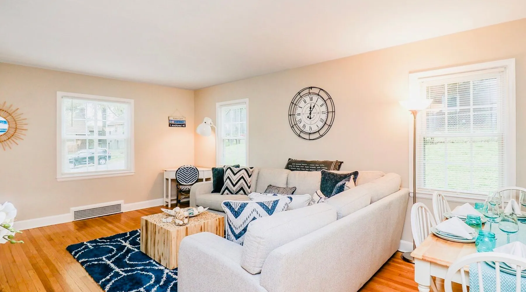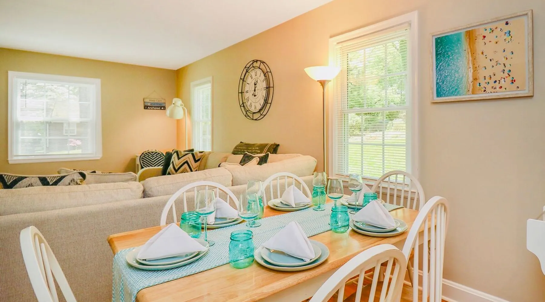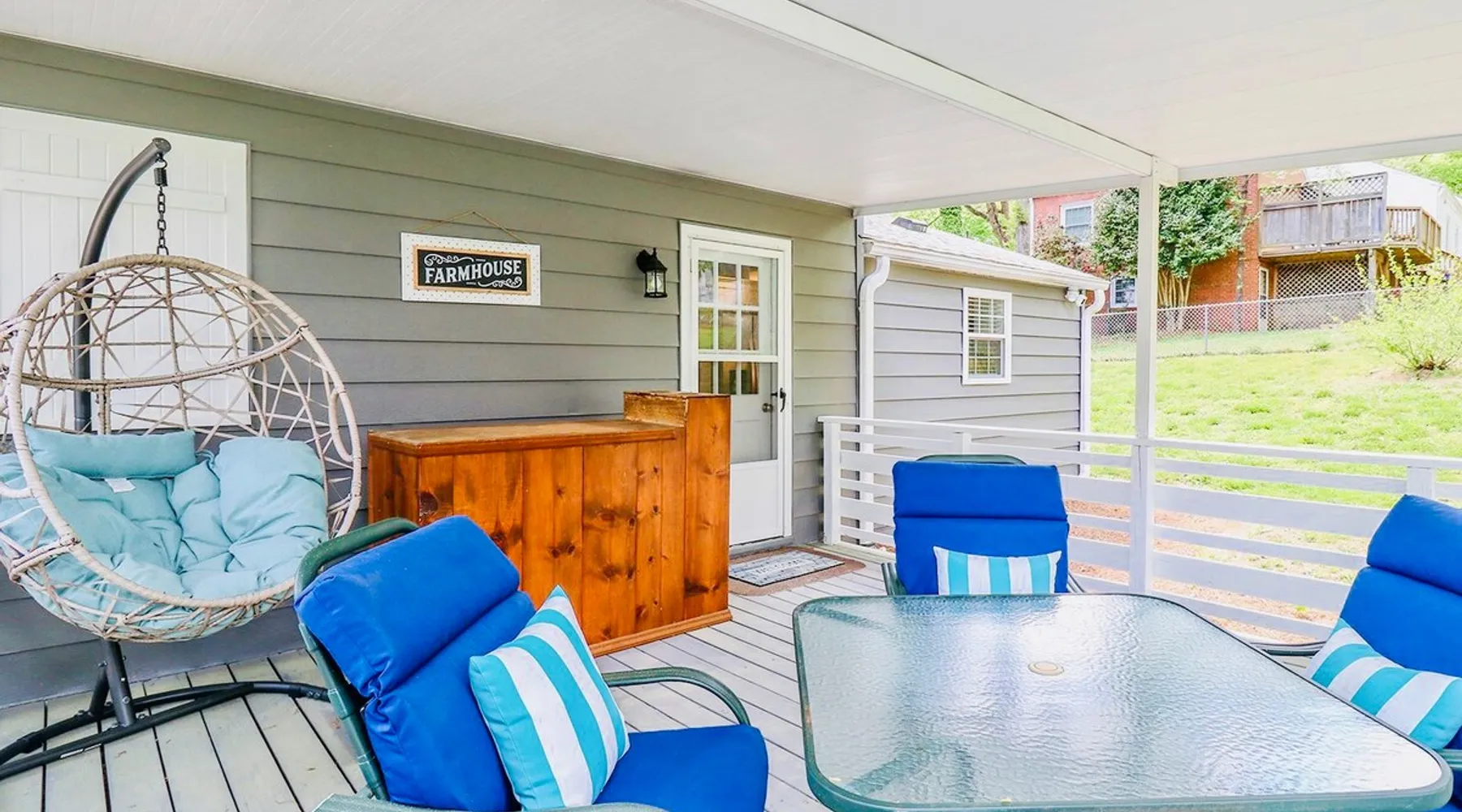 Welcome to the Home on Sunset, a relaxing coastal farmhouse themed home in the prestigious and safe Emerywood neighborhood. This home can comfortably sleep up to 10 guests and offers 4 bedrooms and 2.5 baths with flat screen TVs in each bedroom including a 65' flat screen TV in the living room with complimentary Netflix. Minutes to High Point University, HP Furniture Market, High Point Country Club and the new Rockers Baseball Stadium. The space About the Home Located in the prestigious Emerywood neighborhood, this thoughtfully updated home offers relaxed farmhouse style with modern comfort. With space for 10 guests, it’s a warm, welcoming retreat for families, professionals, and Market travelers. Bedrooms & Baths The home features 4 bedrooms and 2.5 baths: Downstairs Primary: Queen bed, ensuite bath, two large closets Upstairs Primary: King bed, dedicated workspace Bedroom 3: Queen bed Bedroom 4: Two double beds All bedrooms include memory foam mattresses, Smart TVs, and ceiling fans. Kitchen & Dining The kitchen offers granite countertops, stainless appliances, and essentials for cooking. Enjoy coffee from the Keurig, coffee pods, French press, or tea. The dining area seats 6, with extra chairs and a small table available. Living Spaces A bright living room features hardwood floors, a decorative fireplace, and a 65" Smart TV with complimentary Netflix. A back patio with swing chair adds a quiet outdoor spot to unwind. Laundry & Essentials Full laundry room with washer, dryer, detergent, and ironing essentials. WiFi & Parking Fast 400 Mbps internet supports streaming and remote work. A large driveway fits up to 5 cars. A stylish, comfortable stay in one of High Point’s most desirable neighborhoods, perfect for relaxing or exploring the city. Guest access A private entrance and keyless access code to allow easy access 24/7 as you come and go. This also allows for an easy check-in and checkout-out. As backup, we also have additional keys located in a lock box, should it be needed.
