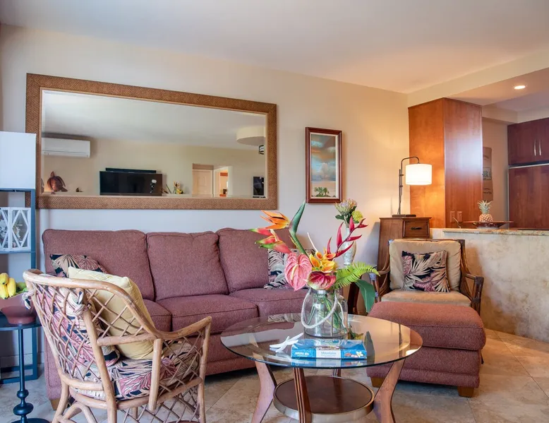 Nani Kai Hale 308 Remodeled BeachFront Condo with Stunning Ocean Views, Split AC, Pool, BeachFront BBQ and Lounges. Perfect Winter Getaway for Whale Watching The space Breathe in fresh ocean breezes from your private lanai and sip on a morning cup of coffee while taking a stroll down the beach. Experience all the comforts of home from the beautifully renovated Nani Kai Hale 308. The perfect location for your next Maui vacation! Condo Highlights: -1 Bedroom, 2 Bathroom, Sleeps 4 guests -Split zone AC throughout -Private lanai with seating for 4 and ocean views overlooking the pool (parking area can be seen to the front side of the building) -King size bed in bedroom -Sleeper-sofa in living room -Smart streaming TV’s in living room and bedroom -Fully equipped kitchen with granite countertops -Indoor dining table for 4 -Master bathroom with beach pebble floor walk-in shower -Full guest bathroom with walk-in tile shower and stone vanity sink **NOTE: There is potential for noise from the road near the complex. Nani Kai Hale is a delightful beachfront condo complex located on Maui's coastal central valley close to the Kihei/Wailea area and a short drive to Lahaina's West Side. Sitting directly on Sugar Beach in Maalaea Bay. Also just a 5 minute drive to Maalaea Harbor for boat excursions, restaurants, and shopping! Resort Highlights: • Convenient central Maui location • Swimming pool • Outdoor shower off the beach • 3 Gas BBQ grills • Oceanfront dining tables and chairs • Oceanfront lawn with chaise lounges • Elevator • On-site parking included • On-site coin operated washer/dryer on every floor Minimum age of primary renter: 25 All of our guests have complimentary access to our Maui specialist and support team during their stay. We provide the following in every unit: -High Speed Internet -Linens & Towels -Iron & Board -Hair Dryer -Beach Towels -Beach Chairs -Hard Sided Cooler -Starter Kit: Starter supply of Shampoo, Conditioner, Body Wash, Lotion, Hand Soap, Dish Soap, Laundry Detergent, Dishwasher Tabs, Toilet Paper, Paper Towels, Trash Bags Arrival PRE-CHECKS: To ensure that our homes meet our standards, just prior to each check-in, our Auditors do a final inspection and a comprehensive video recording to verify the property condition will meet our guest 5 star expectations. If by chance the cleaners missed a small detail, please contact our 24x7 support line so we have an opportunity to resolve. Our continued commitment to SAFETY includes: -Monthly and annual safety audits and reviews to ensure the upkeep of all our safety standards -Our Service Managers are "Certified Short-Term Rental Safety Inspectors" through Dwell Safe -We are the only company in Hawaii and one of a few in the USA that has certified its inspectors **Safety and cleanliness procedures implemented may be adjusted in consideration of local practices, government requirements and guidance, and the situation where the condo is located. BEACHES & CRITTERS: The beach size in Hawaii varies month to month due to heavy surf, strong currents and tides. Due to Maui’s rural atmosphere you may experience the occasional rooster, as well as harmless geckos. Geckos are friendly, eat insects, and are considered good luck in Hawaii. Please don’t kill them. IMPORTANT: Although the HOA schedules regular professional pest control services, pests such as ants, roaches and rodents simply cannot be completely controlled in the tropics. Hawaii is located in a tropical climate, and insects, rodents and lizards flourish in this environment. If our guest spot more than the normal expected pests, we always make our best efforts to contact and work with the HOA to minimize your interactions with these pests. Any contact with such pests within or outside the unit does not constitute a breach of this Agreement or give Guest any right to any refund or rental adjustment. **We make no guarantee that properties adjacent to the Unit will be free from disturbances, including but not limited to noise or inconvenience from construction, traffic or other guests or neighbors. Any such disturbance shall not constitute a breach of this Agreement or give Guest any right to any refund or rental adjustment. Registration Details 380130100018, TA-098-152-2944-01