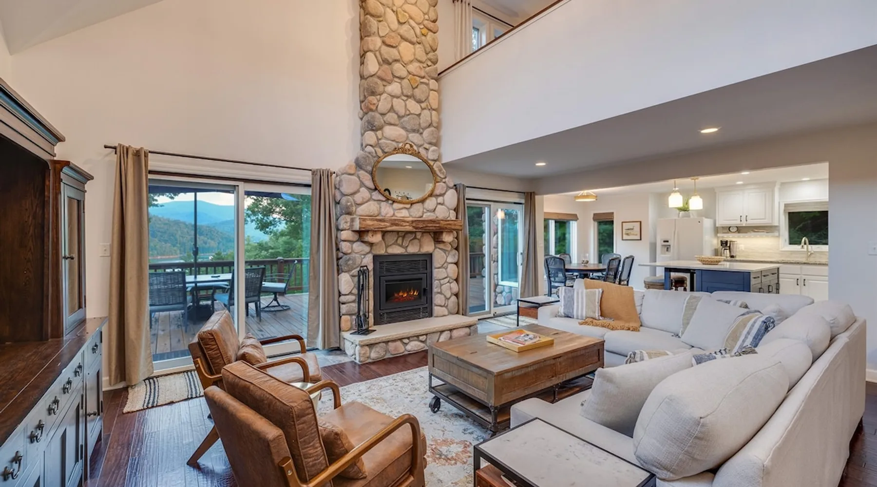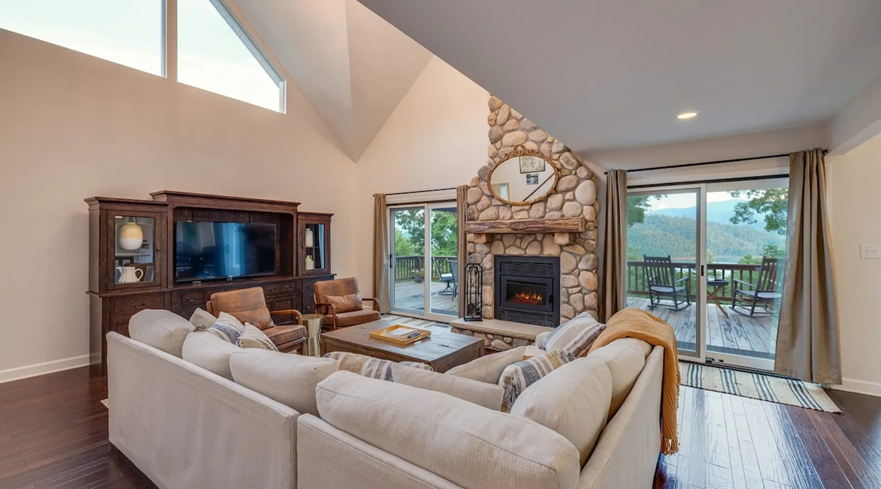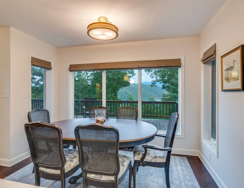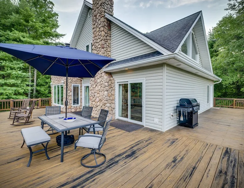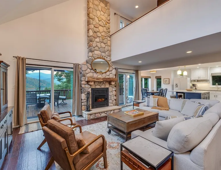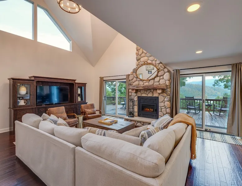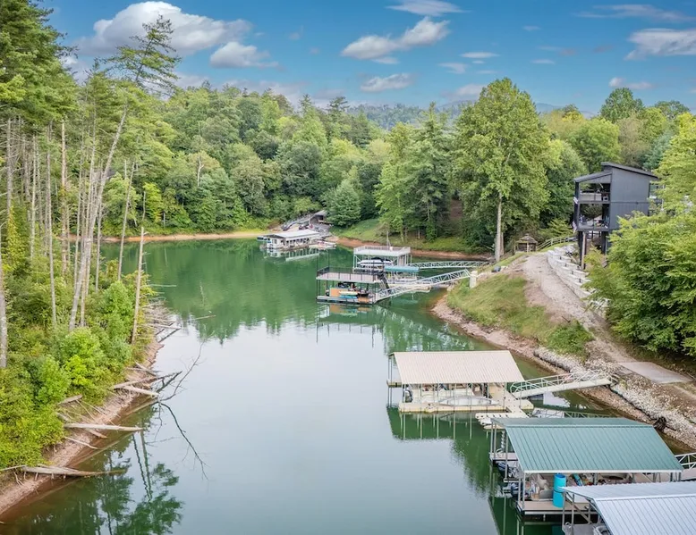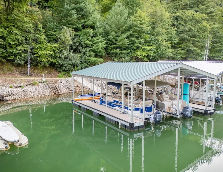 Hurricane Helaine Update: Our home is fully back up and running, and businesses in the area are open and ready to welcome you. Watauga Lake Vacations offers the perfect getaway for relaxation and adventure, and we’d love to have you come stay with us and experience the charm of our community once again! Watauga Lake views from this stunning home in a quiet neighborhood with kayak, paddle board, and shared dock access in a secluded cove. Enjoy the water view from the decks while you rock your wo The space JUST LISTED: Enjoy stunning Watauga Lake views from this beautiful home nestled in a quiet neighborhood. This retreat offers kayak, paddleboard, and shared dock access in a serene cove. Relax on the deck as you rock your worries away, or unwind on the porch swing by the fire pit. Take in the sunset, float around the peaceful cove, or bring a boat (or rent one from a nearby marina) and explore over 180 miles of shoreline. Hosted by Christie & Donaven at Watauga Lake Vacations, River Rock Retreat is the perfect place to relax, unwind, and make lasting memories. Inside the home: - First floor: Features a queen bed ensuite with a full bath, a kitchenette, and a separate entrance. - Main floor: Includes a spacious living room with a wood-burning river rock fireplace, an open dining area with a fabulous kitchen, and a massive bedroom with a king bed and seating. There's also a full bath with a shower and jacuzzi tub, as well as a half bath and a laundry room with a washer/dryer. - Third floor: Offers more spectacular lake views, another bedroom with a queen bed and ensuite full bath, and a second living room/den with ample seating and a play nook for kids. Multiple Roku TVs are available throughout the home for all your streaming needs. Outdoor living: - Main floor deck: A large area with a gas grill and a dining table with seating for six and an umbrella, perfect for dining, entertaining, or just relaxing. Nearby, enjoy rocking chairs with views of the lake. - Lower porch: An outdoor living room with a gas fire pit and porch swing. Cornhole boards are available for yard games, or you can play under the covered porch. - Dock: A kayak and paddleboard are provided, with life jackets available. Enjoy the quiet cove or venture out to the main channel. Fish, sunbathe, swim, or simply unwind. Water sports equipment rentals are available upon request, including water skis, a 3-person tube, kneeboard, tow ropes, and additional paddleboards. The Little Milligan boat ramp is just three minutes away, and there is space at the dock to moor a boat during your stay. Year-round enjoyment: - A gas fireplace on the porch and a wood-burning fireplace inside during the winter. - After sunset, outdoor lighting allows for continued fun with cornhole or relaxing with games and entertainment. Explore the area: - Boone, NC, is just 39 minutes away, and Johnson City, TN, is 38 minutes away, both offering a variety of activities. - Elizabethton is a short 23-minute drive for dining, shopping, and ice cream - The Appalachian Trail is just 14 minutes away, along with Roan Mountain State Park, Sugar Hollow Retreat, golf courses, a winery, and nearby snow skiing, tubing, and snowboarding options. - A comprehensive list of local recommendations for activities, food, and drink are provided. Guest access Guests access the home using a smart lock and will be given a code to use during their stay. The code only works during the scheduled time and days. Other things to note Outside, guests will find a gas grill for outdoor cooking, porch swing and lots of great outdoor seating around the fire pit. Inside, our kitchen has all the conveniences of home; a microwave, coffee maker, hand mixer, crock pot, blender, and toaster, dishware for 12 and during the winter months, enjoy the indoor wood fireplace.