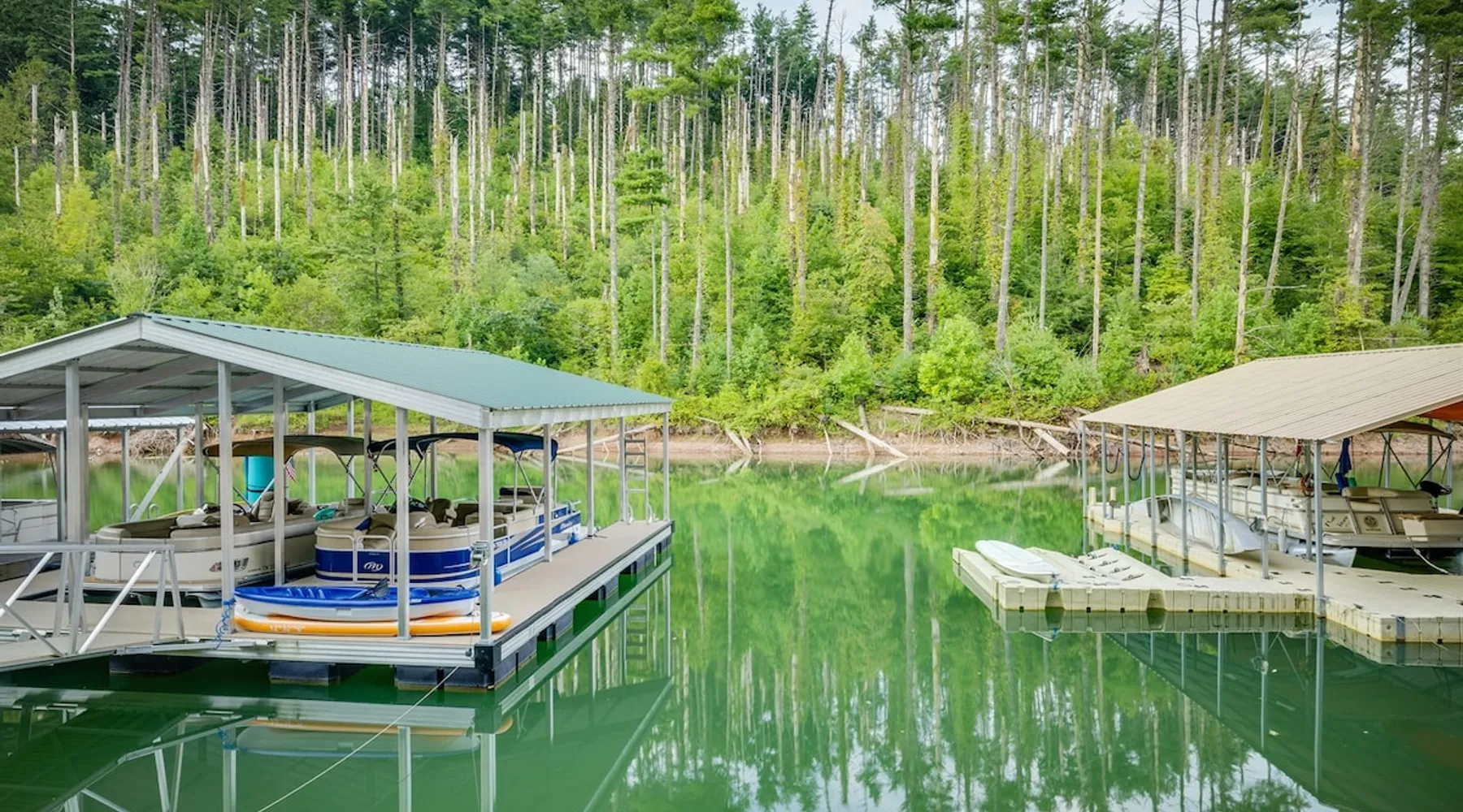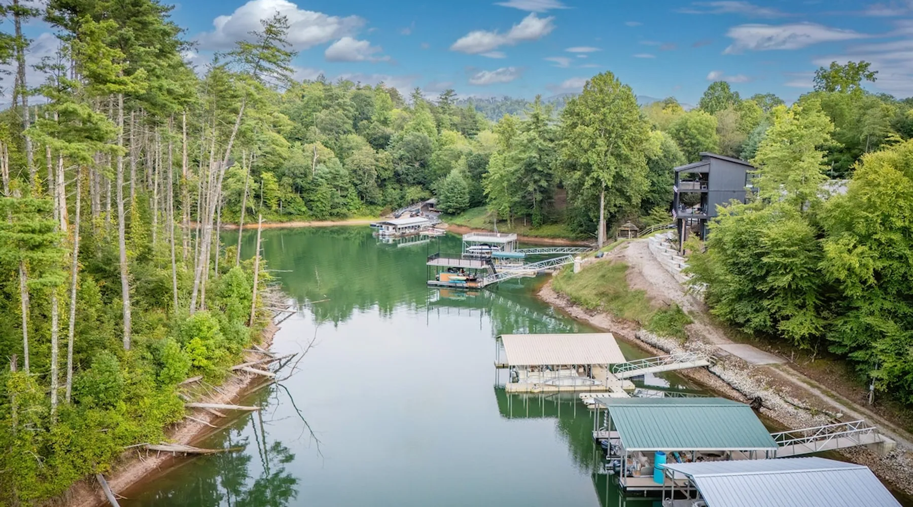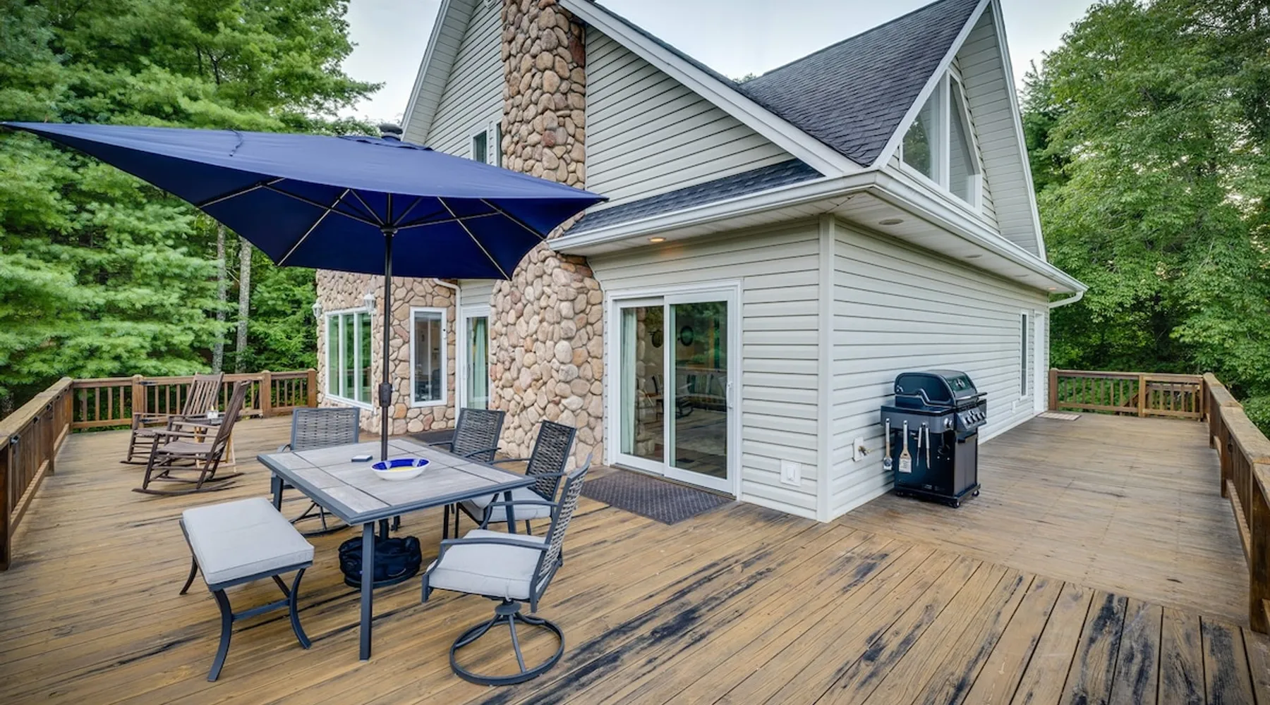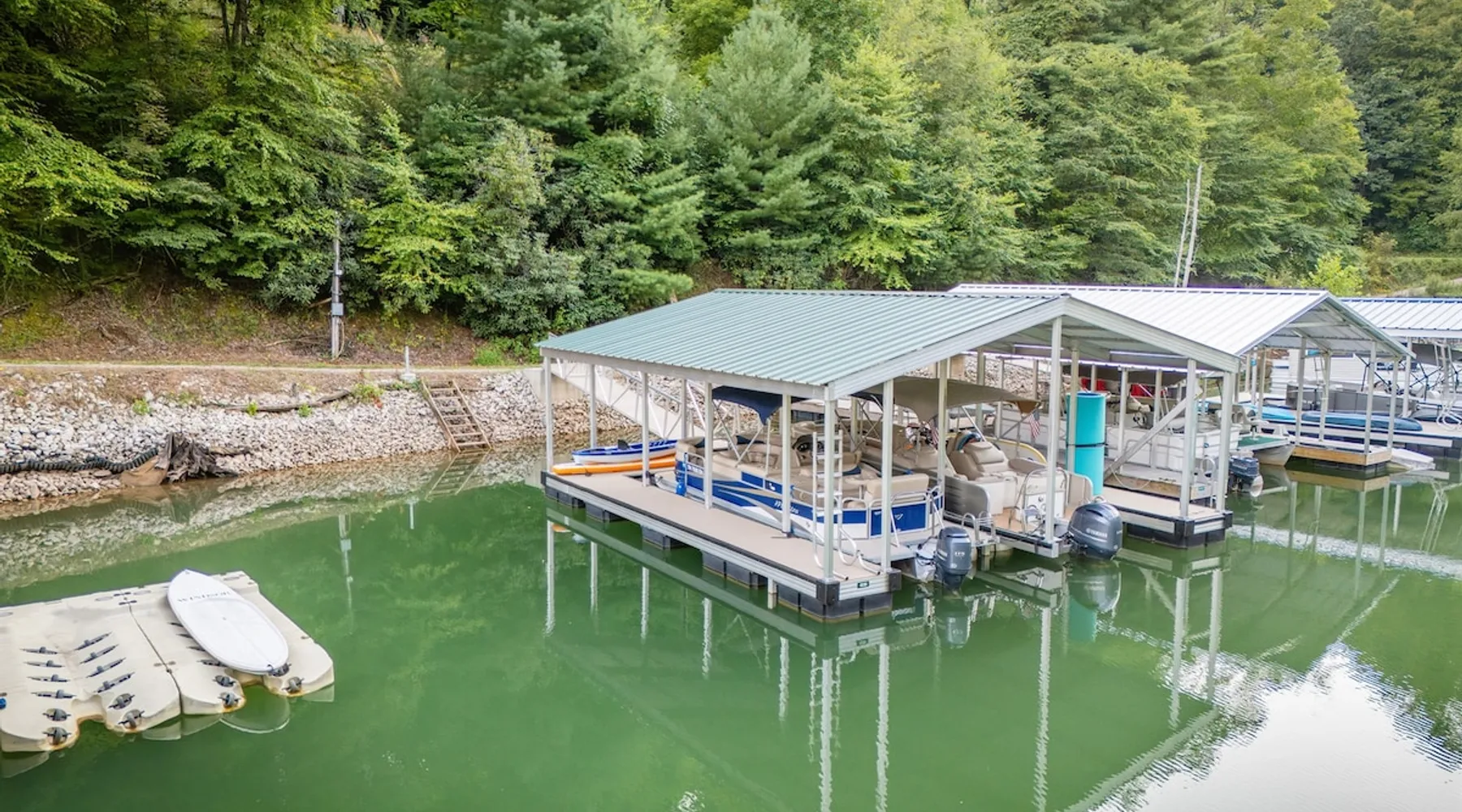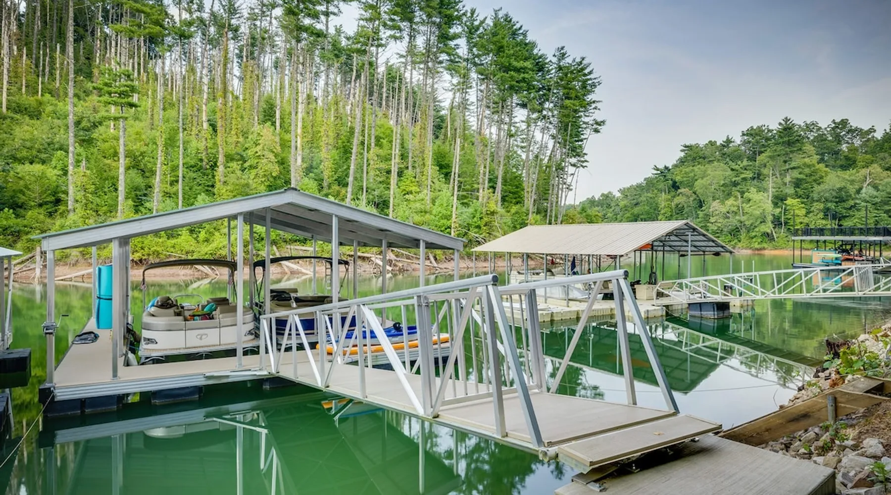 Hurricane Helaine Update: Our home is fully back up and running, and businesses in the area are open and ready to welcome you. Watauga Lake Vacations offers the perfect getaway for relaxation and adventure, and we’d love to have you come stay with us and experience the charm of our community once again! Watauga Lake views from this stunning home in a quiet neighborhood with kayak, paddle board, and shared dock access in a secluded cove. Enjoy the water view from the decks while you rock your wo The space JUST LISTED: Enjoy stunning Watauga Lake views from this beautiful home nestled in a quiet neighborhood. This retreat offers kayak, paddleboard, and shared dock access in a serene cove. Relax on the deck as you rock your worries away, or unwind on the porch swing by the fire pit. Take in the sunset, float around the peaceful cove, or bring a boat (or rent one from a nearby marina) and explore over 180 miles of shoreline. Hosted by Christie & Donaven at Watauga Lake Vacations, River Rock Retreat is the perfect place to relax, unwind, and make lasting memories. Inside the home: - First floor: Features a queen bed ensuite with a full bath, a kitchenette, and a separate entrance. - Main floor: Includes a spacious living room with a wood-burning river rock fireplace, an open dining area with a fabulous kitchen, and a massive bedroom with a king bed and seating. There's also a full bath with a shower and jacuzzi tub, as well as a half bath and a laundry room with a washer/dryer. - Third floor: Offers more spectacular lake views, another bedroom with a queen bed and ensuite full bath, and a second living room/den with ample seating and a play nook for kids. Multiple Roku TVs are available throughout the home for all your streaming needs. Outdoor living: - Main floor deck: A large area with a gas grill and a dining table with seating for six and an umbrella, perfect for dining, entertaining, or just relaxing. Nearby, enjoy rocking chairs with views of the lake. - Lower porch: An outdoor living room with a gas fire pit and porch swing. Cornhole boards are available for yard games, or you can play under the covered porch. - Dock: A kayak and paddleboard are provided, with life jackets available. Enjoy the quiet cove or venture out to the main channel. Fish, sunbathe, swim, or simply unwind. Water sports equipment rentals are available upon request, including water skis, a 3-person tube, kneeboard, tow ropes, and additional paddleboards. The Little Milligan boat ramp is just three minutes away, and there is space at the dock to moor a boat during your stay. Year-round enjoyment: - A gas fireplace on the porch and a wood-burning fireplace inside during the winter. - After sunset, outdoor lighting allows for continued fun with cornhole or relaxing with games and entertainment. Explore the area: - Boone, NC, is just 39 minutes away, and Johnson City, TN, is 38 minutes away, both offering a variety of activities. - Elizabethton is a short 23-minute drive for dining, shopping, and ice cream - The Appalachian Trail is just 14 minutes away, along with Roan Mountain State Park, Sugar Hollow Retreat, golf courses, a winery, and nearby snow skiing, tubing, and snowboarding options. - A comprehensive list of local recommendations for activities, food, and drink are provided. Guest access Guests access the home using a smart lock and will be given a code to use during their stay. The code only works during the scheduled time and days. Other things to note Outside, guests will find a gas grill for outdoor cooking, porch swing and lots of great outdoor seating around the fire pit. Inside, our kitchen has all the conveniences of home; a microwave, coffee maker, hand mixer, crock pot, blender, and toaster, dishware for 12 and during the winter months, enjoy the indoor wood fireplace.