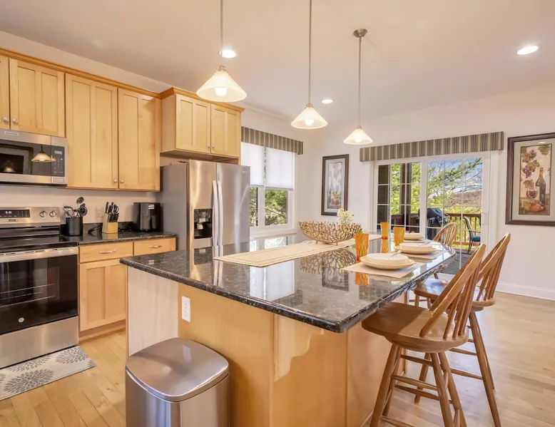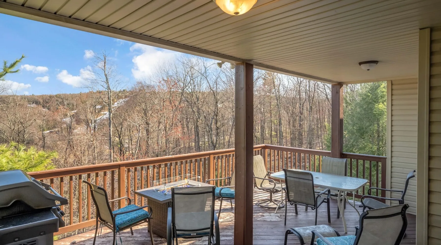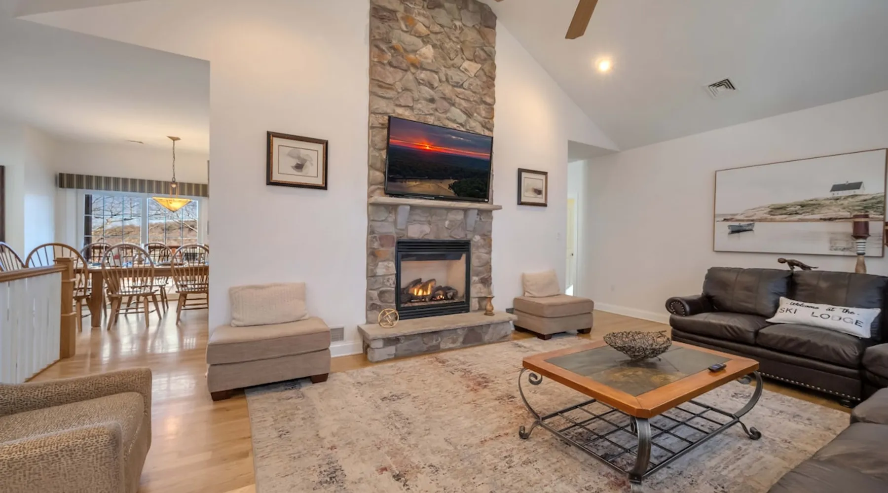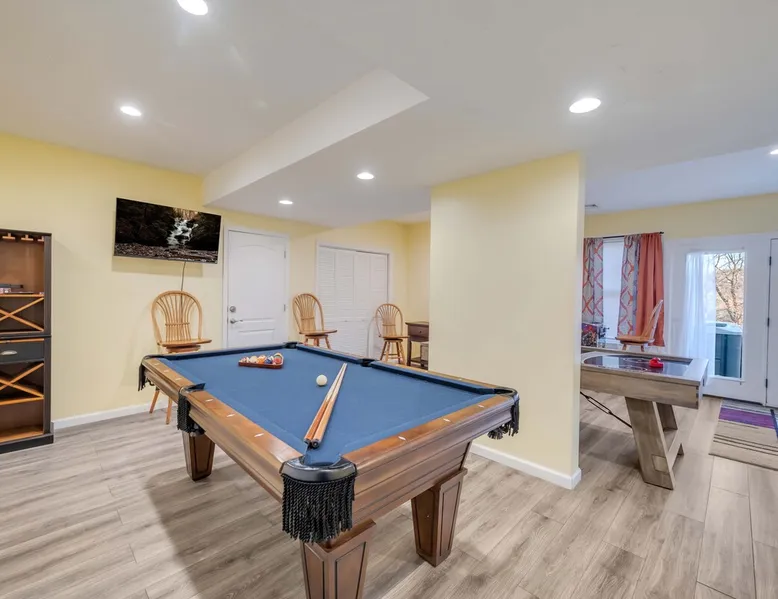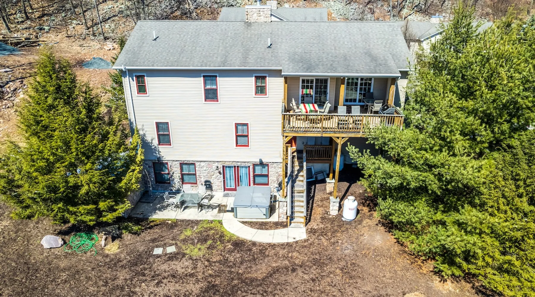 Welcome to the Lake & Slope View Luxury Lodge PLEASE READ THE FULL OVERVIEW BEFORE REQUESTING TO BOOK. Amazing Lake View Hot Tub Pool Table, Air hockey, Pinball Big Boulder Lake Club access in Summer which includes: Beach on Lake, Heated Pool, Boat rentals, Tennis, Volleyball, and more SEE BOTTOM Re. LINENS The space INFORMATION ON LINENS AND TOWELS ALSO INCLUDED BELOW WHY RENT HERE - THERE IS A TON OF THINGS TO DO IN THE AREA - HIKING, BIKE RIDING, FISHING, GOLF, SHOOTING RANGE, BOATING, FRISBEE GOLF, HORSEBACK RIDING, MINI-GOLF, MOUNTAIN CLIMBING, ATV RIDES. PLEASE CHECK WITH OWNER FOR RATES AS RATE STRUCTURE CAN BE CONFUSING AND RATES MAY BE DIFFERENT. SEE ALSO ADDITIONAL INFORMATION BELOW. ASK OWNER FOR PRICING AND POSSIBLE DISCOUNTS. This is a 7 bedroom, 4.5 bathroom house located in Big Boulder Resort that can sleep over 17 people. House includes hot tub, pool table, Air Hockey, Marvel Pinball, Pac man and Galaga 8 game Arcade, cable, wifi, large flat screen smart tvs with Roku, gas fireplace and gas fire pit, and all the comforts you could want. Enormous custom kitchen with granite center island. Dining in style with a spectacular view of Big Boulder and Boulder Lake. 2 living rooms, one with vaulted ceilings and floor to ceiling fireplace. Separate game room with pool table, Air Hockey, Pac man and Galaga 8 game Arcade. Master suite will impress with large jetted tub, separate 7ft stone shower with rain showerhead. Step outside and take advantage of 4 outdoor spaces overlooking the lake and the ski slopes. In the Winter you are a short walk to the slopes. In the Summer, house includes access to the Boulder Lake Club which offers a variety of recreational activities for renters including beach, outdoor heated pool, boat rentals available on lake, tennis, volleyball,, cornhole, football, soccer, basketball, bocce ball, horseshoes. Please check out Big Boulder Club for more information. It is open all week in the summer and usually weekends from Memorial Day to beginning of summer and end of summer to mid September. Other things to note Minimum rental is usually 2 nights and if you want to rent a Friday or Sat night, the full weekend rate applies to the second night whether it is a Thursday or a Sunday. Non weekend rate is generally an add on to a weekend rental. If you want to rent just mid week (Sun to Thursday), the night rate depends on when you want to stay and how long. Summer weekly rentals are usually Friday to Friday. Less than a week is possible depending on when you want to start and end the stay (usually has to be a Friday on one end). PERSON RENTING NEEDS TO BE 25 OR OLDER. FAMILIES WITH CHILDREN ARE WELCOME NO PROM OR HIGH SCHOOL GROUPS. TOWELS ARE NOT INCLUDED, BUT CAN BE SUPPLIED BY THE SERVICE FOR A REASONABLE FEE OF $5.50 PER TOWEL SET (INCLUDES WASHCLOTH, HAND TOWEL, AND BATH TOWEL). IF YOU PREFER TO BRING YOUR OWN LINENS, PRICE OF THE RENTAL WILL BE $120 LESS. CONTACT OWNER FOR MORE INFORMATION ON THIS.