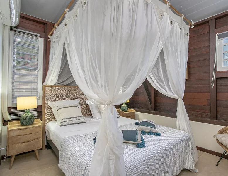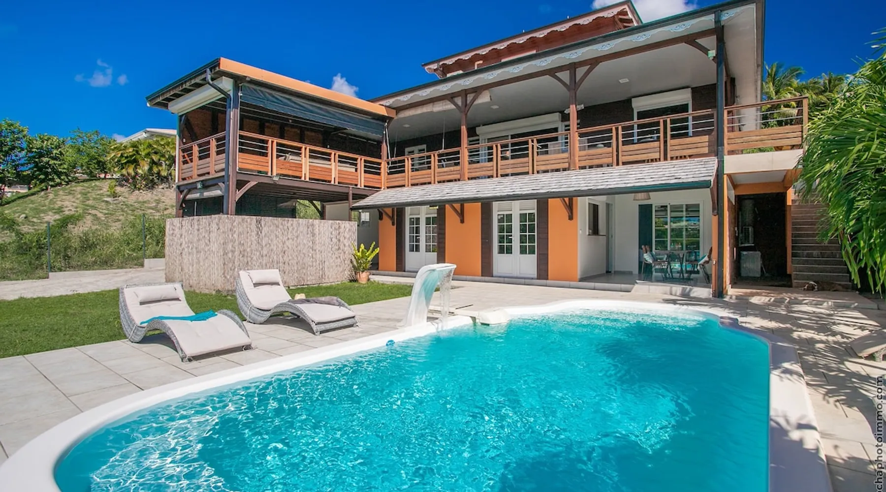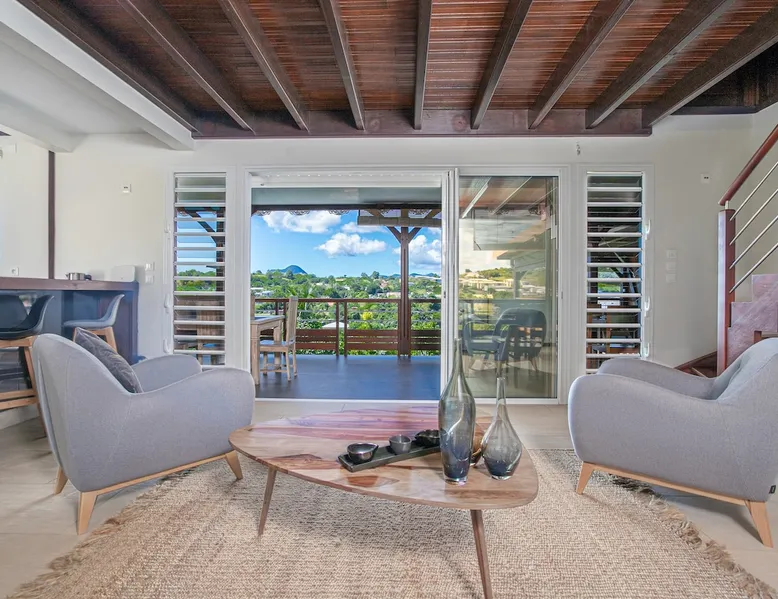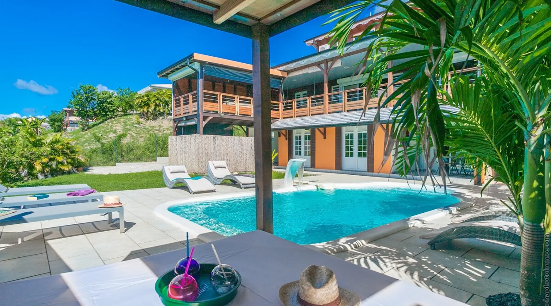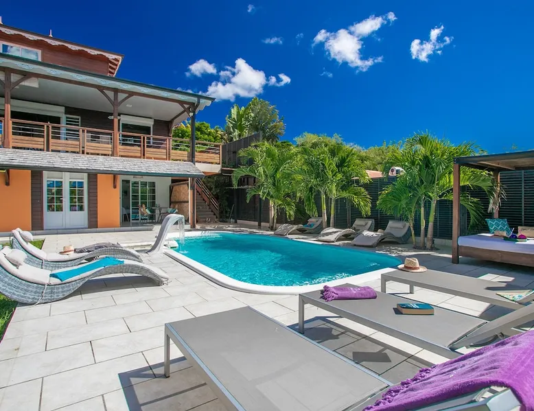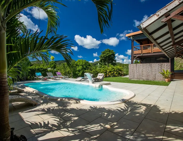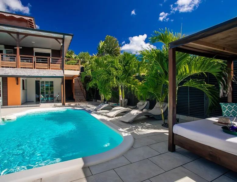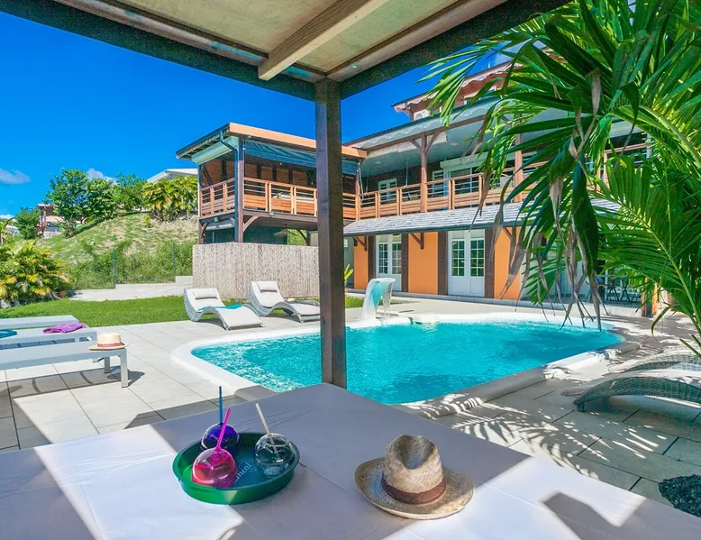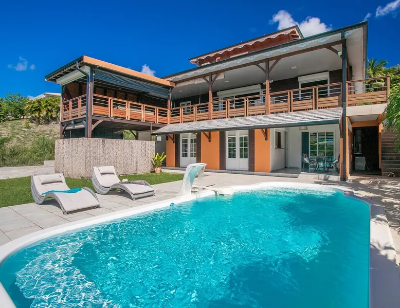 A wise blend of Creole and contemporary design styles, Villa Fleur de Canne was born from the encounter between its owner, passionate about wood, and an interior architect. Their goal: to create a vacation setting that is both convivial, modern, and charming. The gamble paid off: wood is omnipresent, especially Guyana's Angelique, a noble wood known for its decorative and warm aesthetics. The space A wise blend of Creole and contemporary design styles, Villa Fleur de Canne was born from the encounter between its owner, passionate about wood, and an interior architect. Their goal: to create a vacation setting that is both convivial, modern, and charming. The gamble paid off: wood is omnipresent, especially Guyana's Angelique, a noble wood known for its decorative and warm aesthetics.Advantages of my seasonal rentalEmbraced by a magnificent tropical garden of 720m² where sugar canes, banana trees, lemon trees, palm trees, mandarin trees, mango trees... mingle, Villa Fleur de Canne exudes a strong Creole personality. My confortable 4 room villa with gardenThe living room and kitchen blend together to create a pleasant living space. Open to the outside, this area offers a soothing view of the garden and the rock formation called the "lying woman". The living room is equipped with a plush fabric sofa, two armchairs, a coconut rug, a wooden coffee table, and a television. The kitchen is equipped with modern appliances, all the necessary kitchen appliances for preparing your favorite dishes, a bar, and stools.With an area of 180m², Villa Fleur de Canne can comfortably accommodate eight people in its four air-conditioned bedrooms. Each bedroom has its own shower room with Wc. Spread over two levels, the bedrooms are elegant and comfortable. Three bedrooms are located on the terrace level: two doubles and one with twin beds. The master suite, located on the first floor, is spacious and offers a refined decor.My vacation rental with pool in Le DiamantAlternating between a lounge and a dining room, the 60m² terrace is a true living space that invites you to enjoy the mild climate. Facing you, the superb shades of green of the tropical vegetation invite daydreaming. Below, the pool, a true oasis of well-being, awaits you for relaxation. The villa is rated 4*.Villa Fleur de Canne is a prestigious address, guaranteeing successful vacations with family or friends. Other things to note Included services - Swimming pool - Baby high chair - Towels - Bed linen Optional services - Parking: Price: Included in the booking. Available items: 2. - Pool towels : Price: EUR 5.00 per person. - Cot/Crib: Price: EUR 20.00 per booking. - XplorAssur : Serenity+: Price: % 3.5 of the booking price. - Air conditioning: Price: Included in the booking. - Internet Access: Price: Included in the booking.