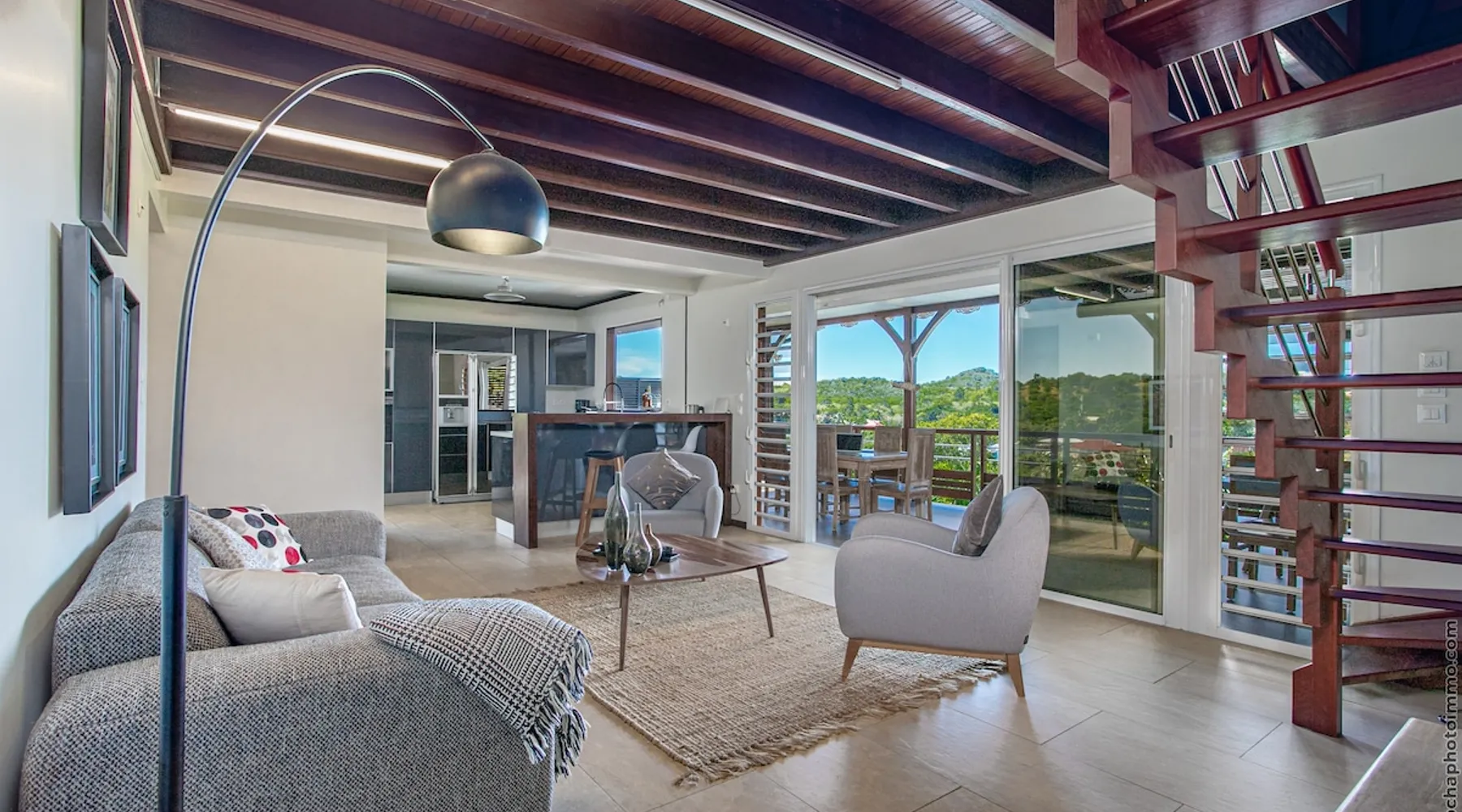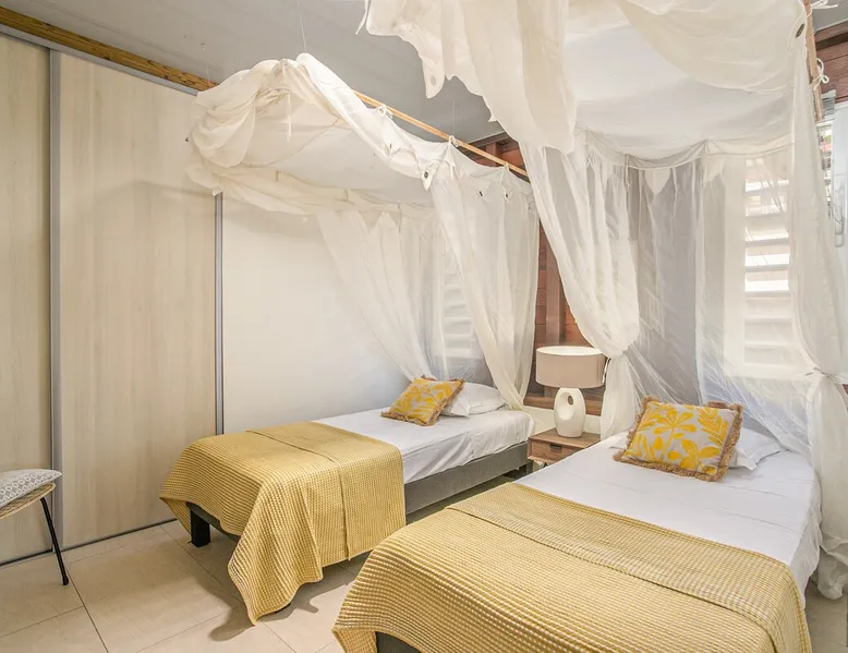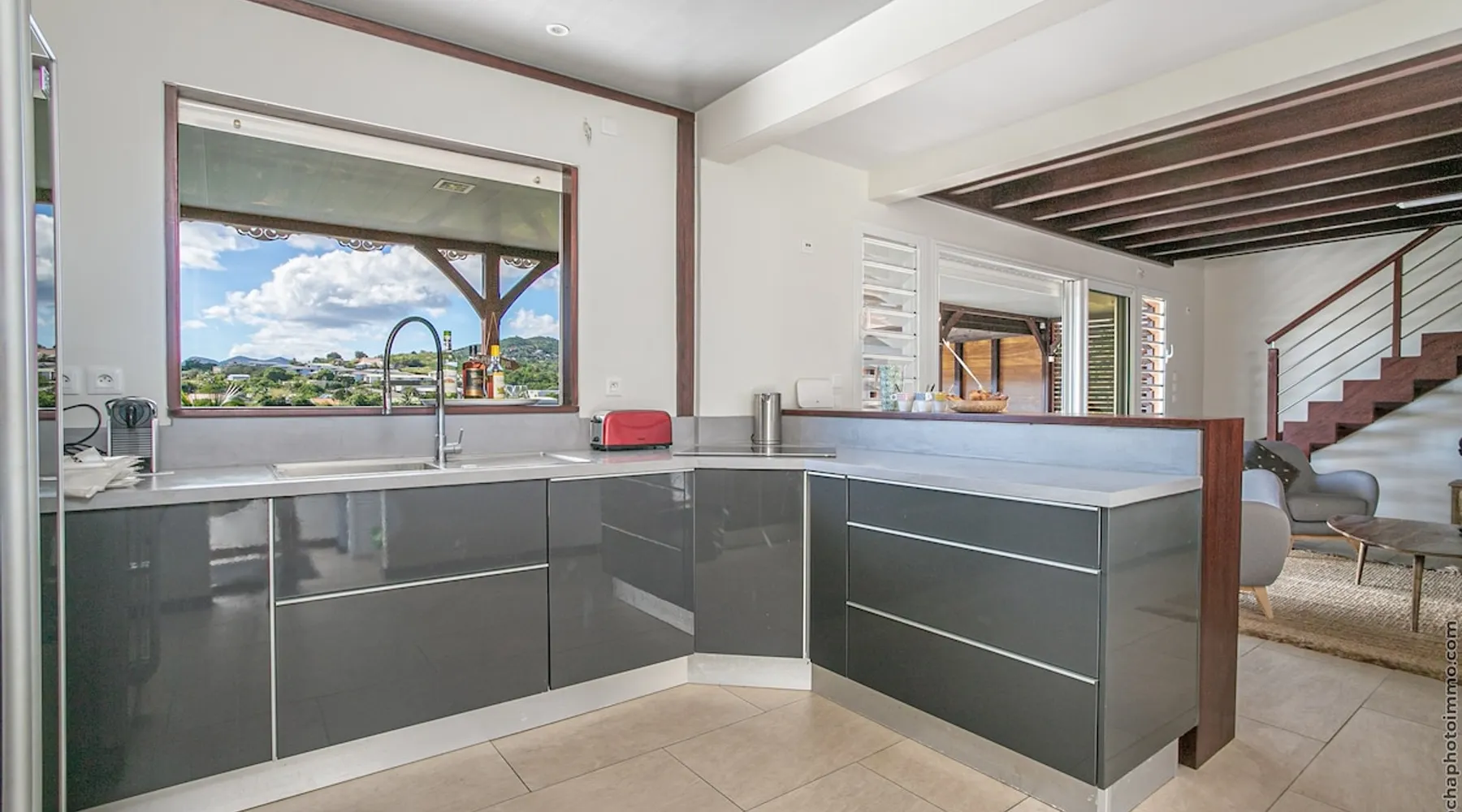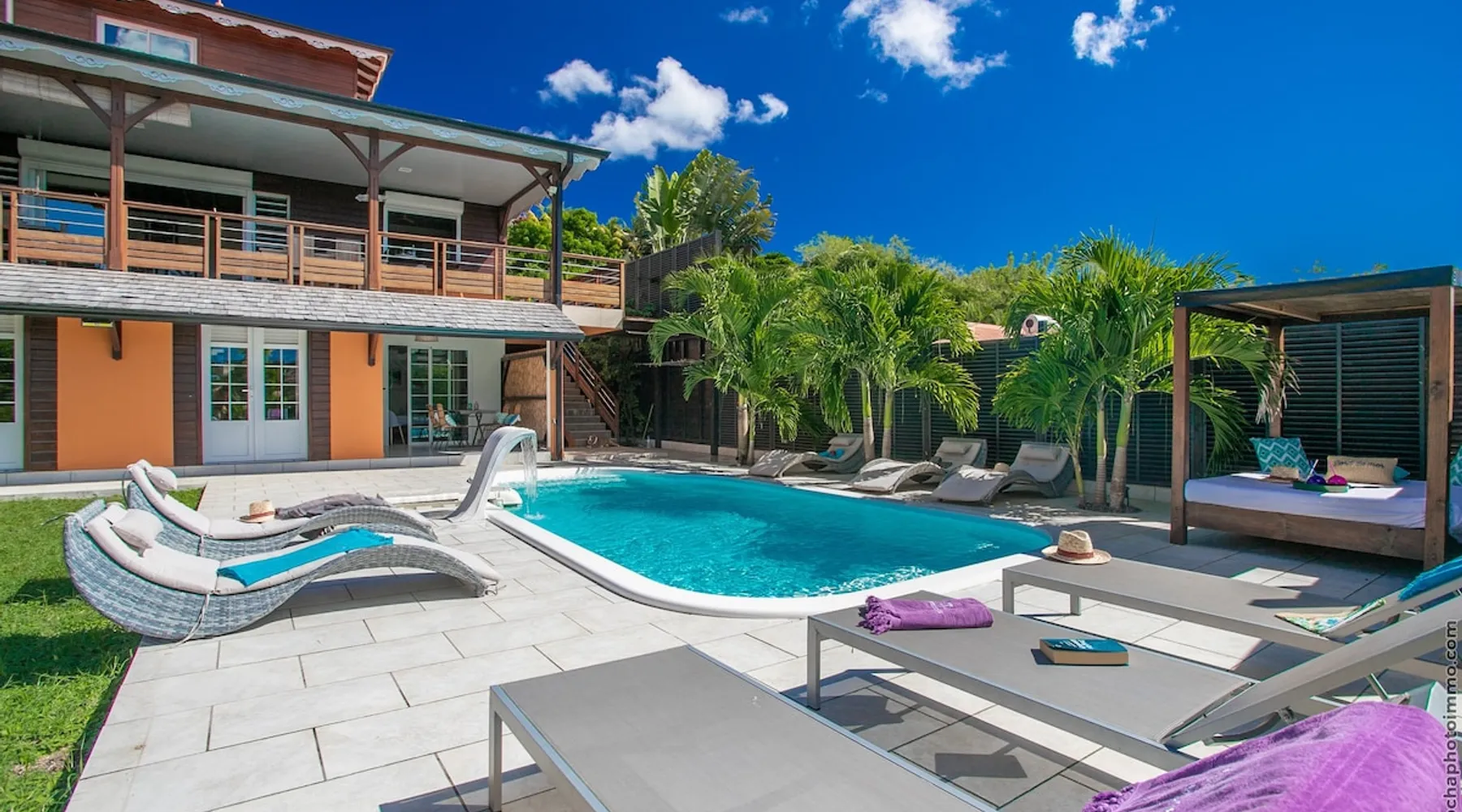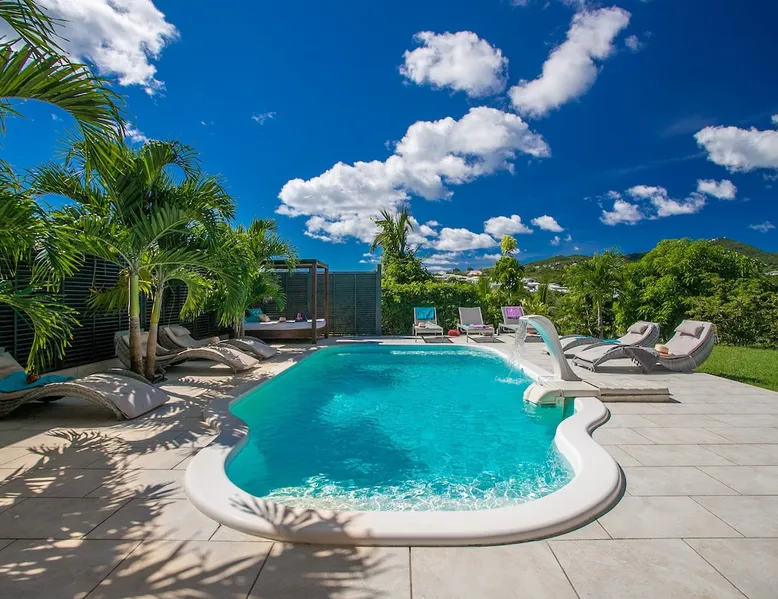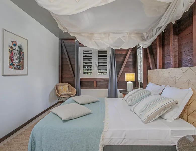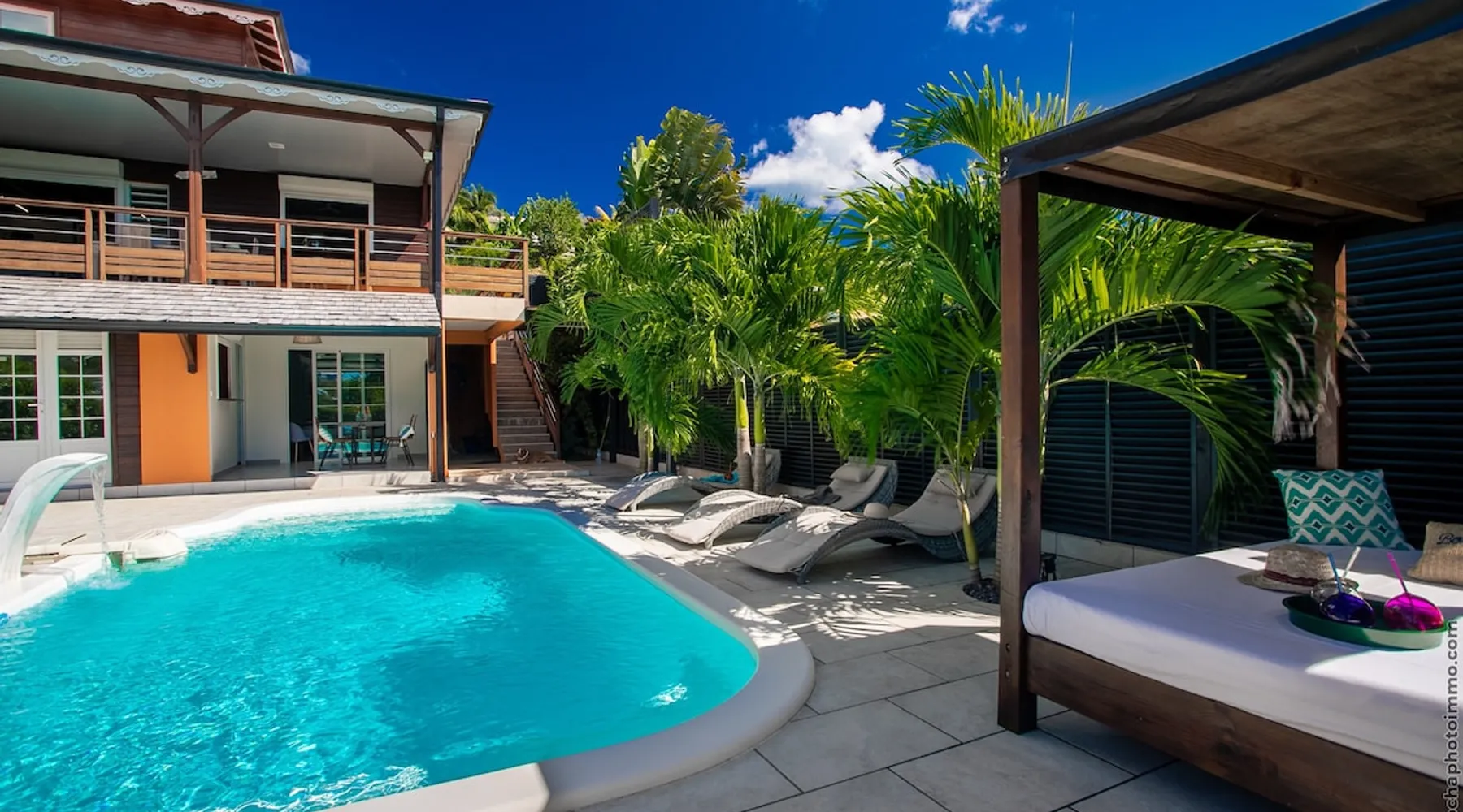 A wise blend of Creole and contemporary design styles, Villa Fleur de Canne was born from the encounter between its owner, passionate about wood, and an interior architect. Their goal: to create a vacation setting that is both convivial, modern, and charming. The gamble paid off: wood is omnipresent, especially Guyana's Angelique, a noble wood known for its decorative and warm aesthetics. The space A wise blend of Creole and contemporary design styles, Villa Fleur de Canne was born from the encounter between its owner, passionate about wood, and an interior architect. Their goal: to create a vacation setting that is both convivial, modern, and charming. The gamble paid off: wood is omnipresent, especially Guyana's Angelique, a noble wood known for its decorative and warm aesthetics.Advantages of my seasonal rentalEmbraced by a magnificent tropical garden of 720m² where sugar canes, banana trees, lemon trees, palm trees, mandarin trees, mango trees... mingle, Villa Fleur de Canne exudes a strong Creole personality. My confortable 4 room villa with gardenThe living room and kitchen blend together to create a pleasant living space. Open to the outside, this area offers a soothing view of the garden and the rock formation called the "lying woman". The living room is equipped with a plush fabric sofa, two armchairs, a coconut rug, a wooden coffee table, and a television. The kitchen is equipped with modern appliances, all the necessary kitchen appliances for preparing your favorite dishes, a bar, and stools.With an area of 180m², Villa Fleur de Canne can comfortably accommodate eight people in its four air-conditioned bedrooms. Each bedroom has its own shower room with Wc. Spread over two levels, the bedrooms are elegant and comfortable. Three bedrooms are located on the terrace level: two doubles and one with twin beds. The master suite, located on the first floor, is spacious and offers a refined decor.My vacation rental with pool in Le DiamantAlternating between a lounge and a dining room, the 60m² terrace is a true living space that invites you to enjoy the mild climate. Facing you, the superb shades of green of the tropical vegetation invite daydreaming. Below, the pool, a true oasis of well-being, awaits you for relaxation. The villa is rated 4*.Villa Fleur de Canne is a prestigious address, guaranteeing successful vacations with family or friends. Other things to note Included services - Swimming pool - Baby high chair - Towels - Bed linen Optional services - Parking: Price: Included in the booking. Available items: 2. - Pool towels : Price: EUR 5.00 per person. - Cot/Crib: Price: EUR 20.00 per booking. - XplorAssur : Serenity+: Price: % 3.5 of the booking price. - Air conditioning: Price: Included in the booking. - Internet Access: Price: Included in the booking.