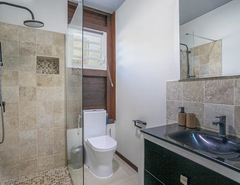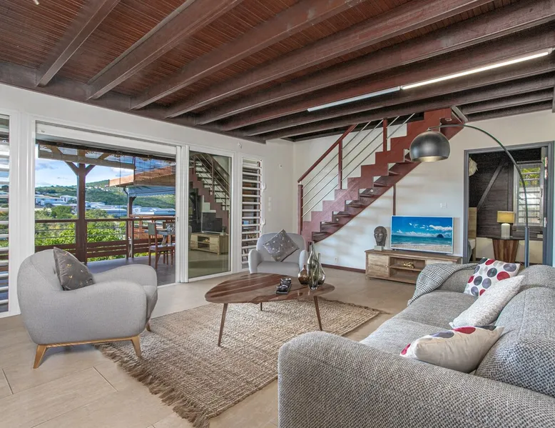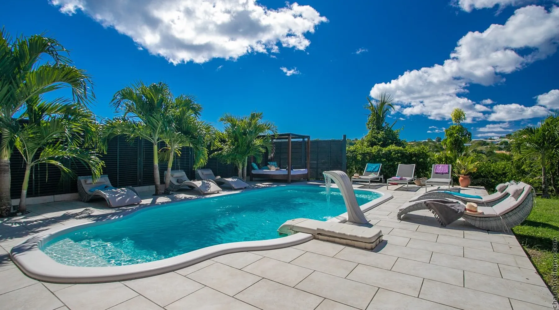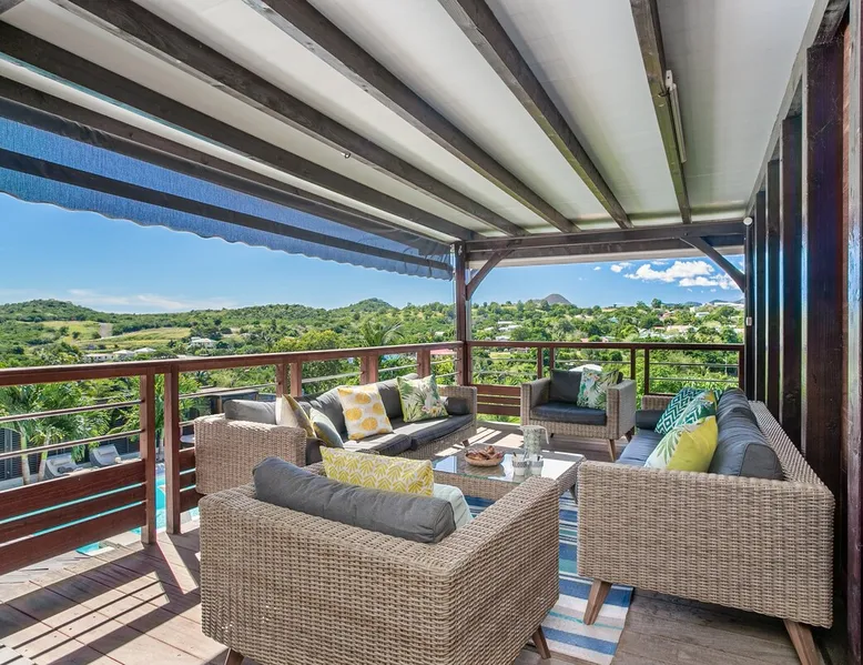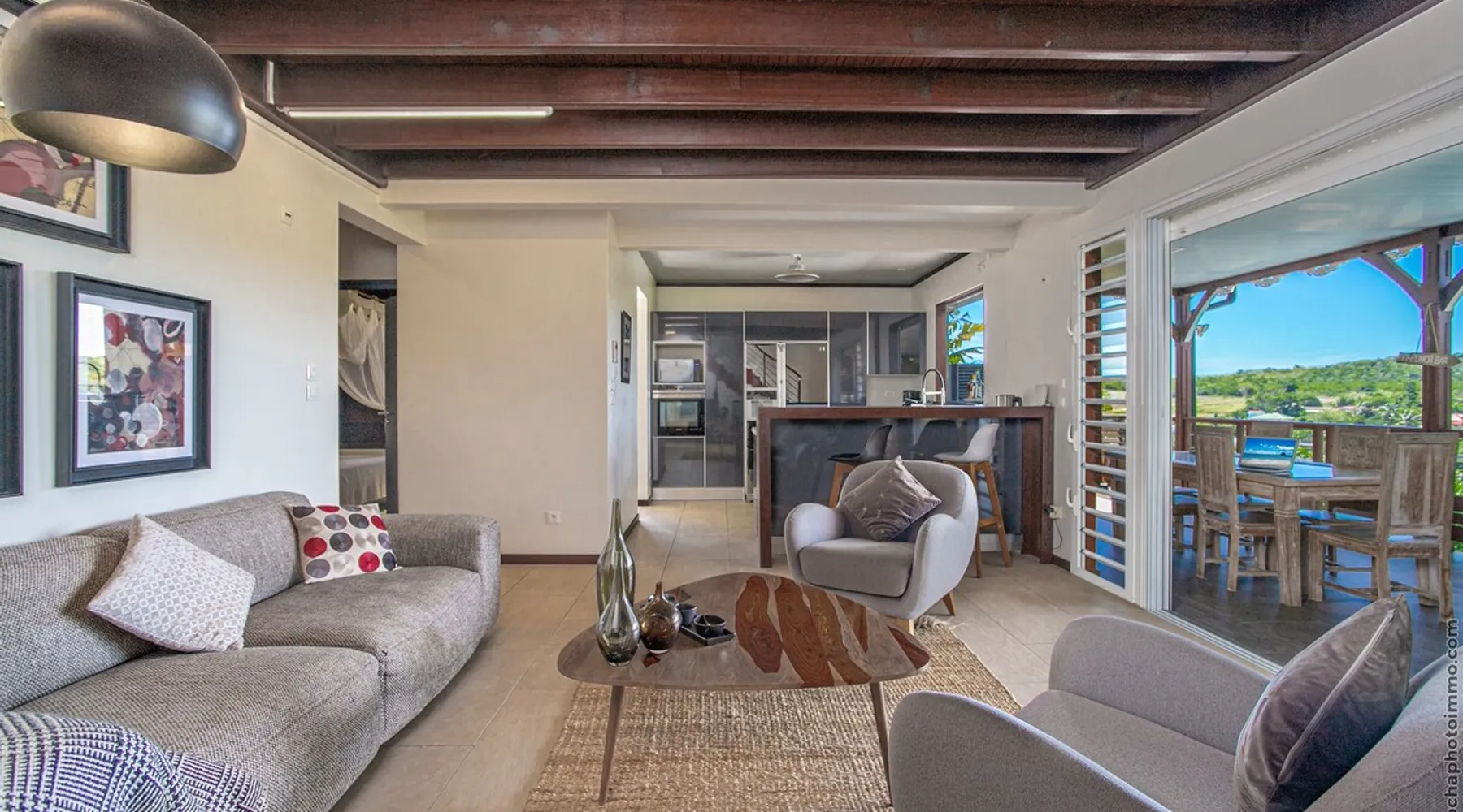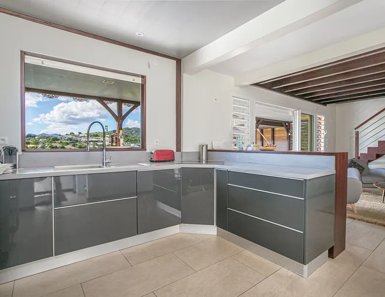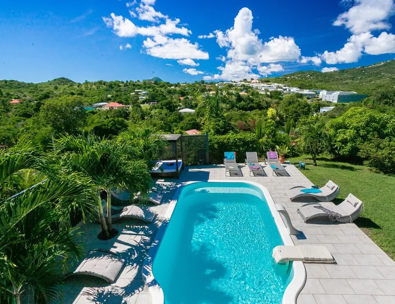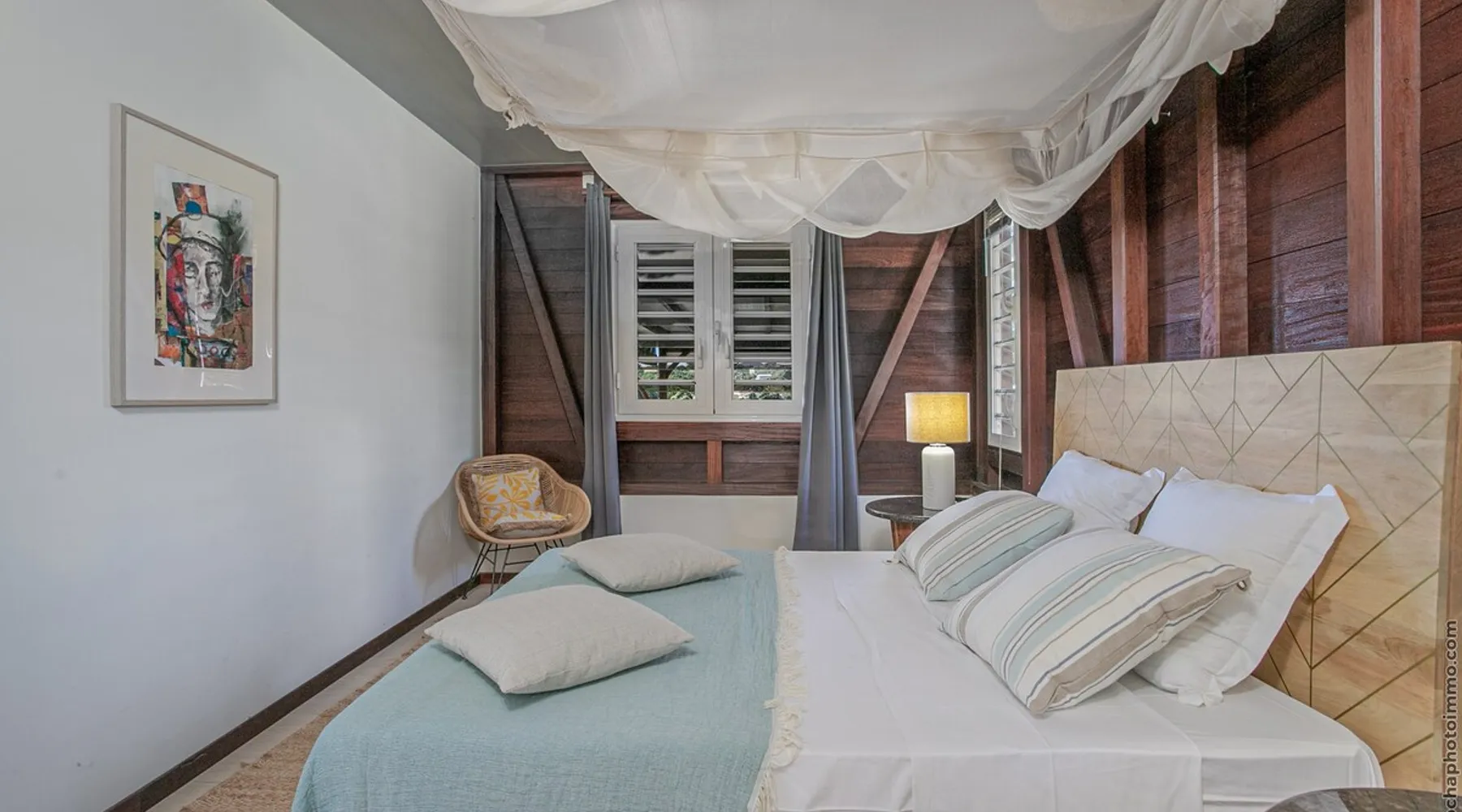 A wise blend of Creole and contemporary design styles, Villa Fleur de Canne was born from the encounter between its owner, passionate about wood, and an interior architect. Their goal: to create a vacation setting that is both convivial, modern, and charming. The gamble paid off: wood is omnipresent, especially Guyana's Angelique, a noble wood known for its decorative and warm aesthetics. The space A wise blend of Creole and contemporary design styles, Villa Fleur de Canne was born from the encounter between its owner, passionate about wood, and an interior architect. Their goal: to create a vacation setting that is both convivial, modern, and charming. The gamble paid off: wood is omnipresent, especially Guyana's Angelique, a noble wood known for its decorative and warm aesthetics.Advantages of my seasonal rentalEmbraced by a magnificent tropical garden of 720m² where sugar canes, banana trees, lemon trees, palm trees, mandarin trees, mango trees... mingle, Villa Fleur de Canne exudes a strong Creole personality. My confortable 4 room villa with gardenThe living room and kitchen blend together to create a pleasant living space. Open to the outside, this area offers a soothing view of the garden and the rock formation called the "lying woman". The living room is equipped with a plush fabric sofa, two armchairs, a coconut rug, a wooden coffee table, and a television. The kitchen is equipped with modern appliances, all the necessary kitchen appliances for preparing your favorite dishes, a bar, and stools.With an area of 180m², Villa Fleur de Canne can comfortably accommodate eight people in its four air-conditioned bedrooms. Each bedroom has its own shower room with Wc. Spread over two levels, the bedrooms are elegant and comfortable. Three bedrooms are located on the terrace level: two doubles and one with twin beds. The master suite, located on the first floor, is spacious and offers a refined decor.My vacation rental with pool in Le DiamantAlternating between a lounge and a dining room, the 60m² terrace is a true living space that invites you to enjoy the mild climate. Facing you, the superb shades of green of the tropical vegetation invite daydreaming. Below, the pool, a true oasis of well-being, awaits you for relaxation. The villa is rated 4*.Villa Fleur de Canne is a prestigious address, guaranteeing successful vacations with family or friends. Other things to note Included services - Swimming pool - Baby high chair - Towels - Bed linen Optional services - Parking: Price: Included in the booking. Available items: 2. - Pool towels : Price: EUR 5.00 per person. - Cot/Crib: Price: EUR 20.00 per booking. - XplorAssur : Serenity+: Price: % 3.5 of the booking price. - Air conditioning: Price: Included in the booking. - Internet Access: Price: Included in the booking.