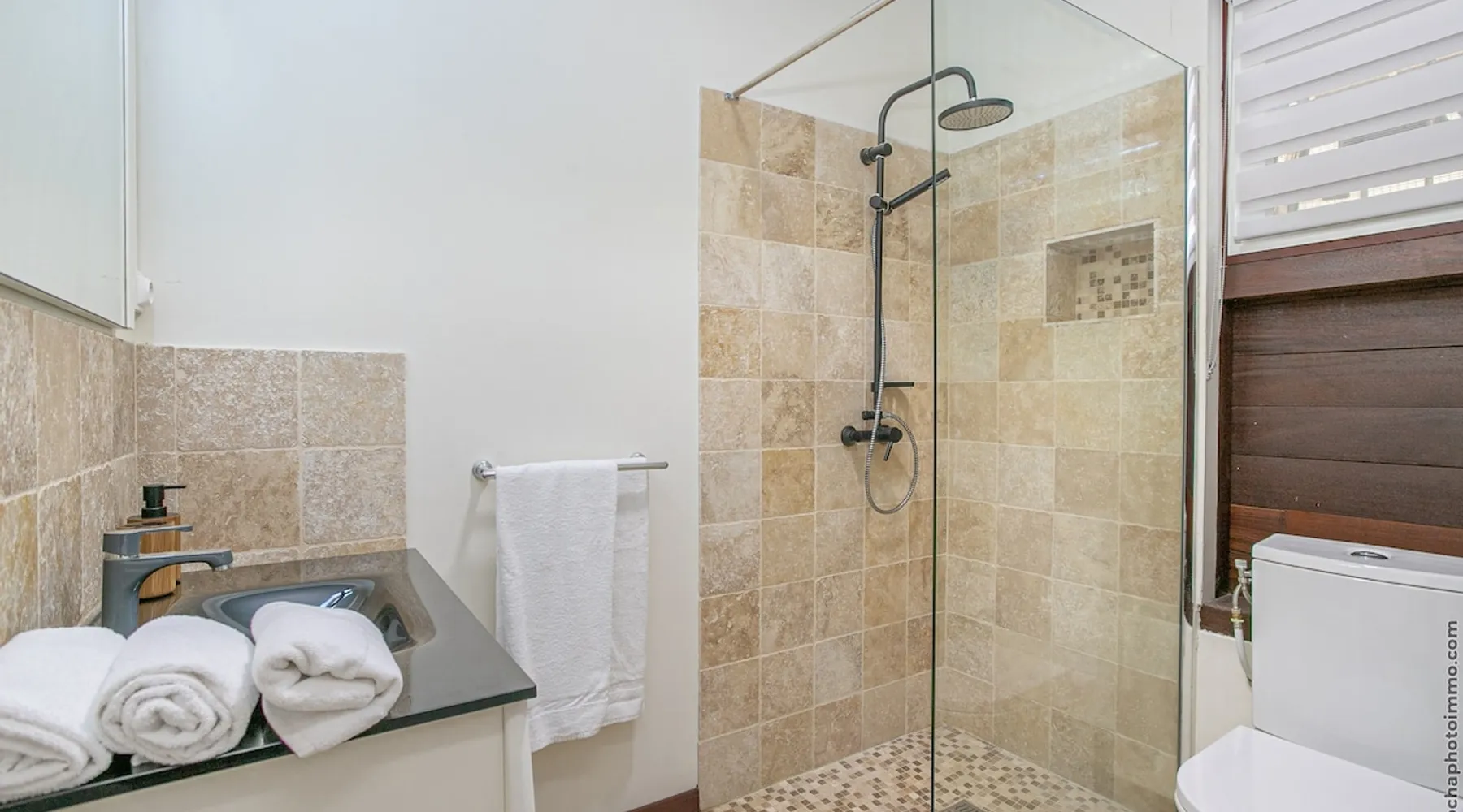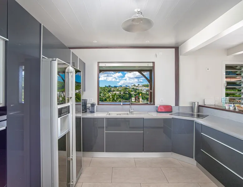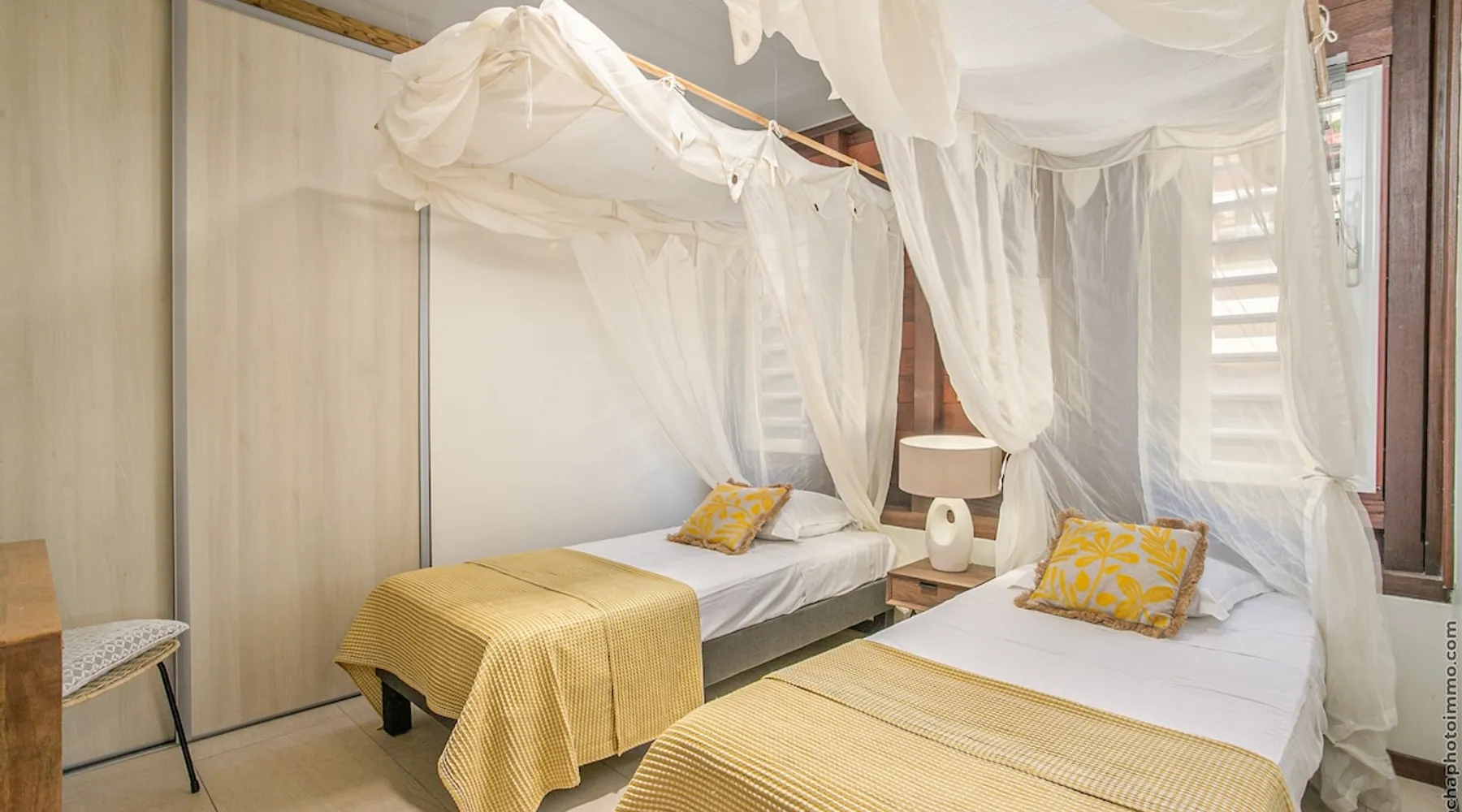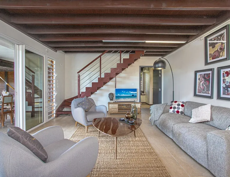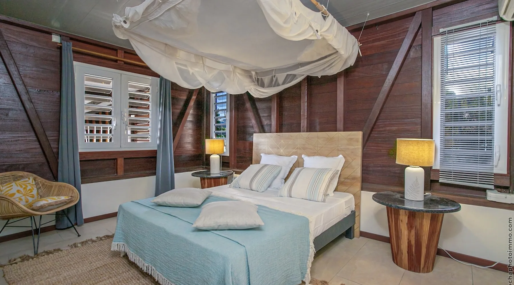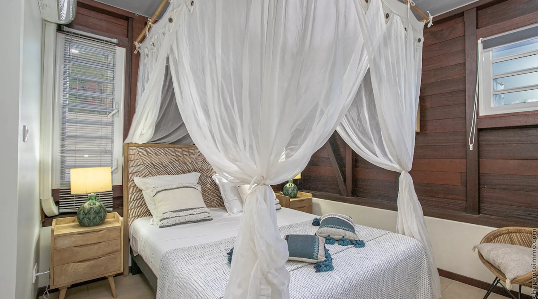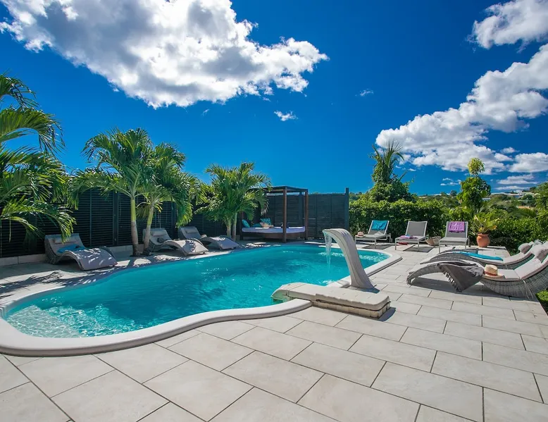 A wise blend of Creole and contemporary design styles, Villa Fleur de Canne was born from the encounter between its owner, passionate about wood, and an interior architect. Their goal: to create a vacation setting that is both convivial, modern, and charming. The gamble paid off: wood is omnipresent, especially Guyana's Angelique, a noble wood known for its decorative and warm aesthetics. The space A wise blend of Creole and contemporary design styles, Villa Fleur de Canne was born from the encounter between its owner, passionate about wood, and an interior architect. Their goal: to create a vacation setting that is both convivial, modern, and charming. The gamble paid off: wood is omnipresent, especially Guyana's Angelique, a noble wood known for its decorative and warm aesthetics.Advantages of my seasonal rentalEmbraced by a magnificent tropical garden of 720m² where sugar canes, banana trees, lemon trees, palm trees, mandarin trees, mango trees... mingle, Villa Fleur de Canne exudes a strong Creole personality. My confortable 4 room villa with gardenThe living room and kitchen blend together to create a pleasant living space. Open to the outside, this area offers a soothing view of the garden and the rock formation called the "lying woman". The living room is equipped with a plush fabric sofa, two armchairs, a coconut rug, a wooden coffee table, and a television. The kitchen is equipped with modern appliances, all the necessary kitchen appliances for preparing your favorite dishes, a bar, and stools.With an area of 180m², Villa Fleur de Canne can comfortably accommodate eight people in its four air-conditioned bedrooms. Each bedroom has its own shower room with Wc. Spread over two levels, the bedrooms are elegant and comfortable. Three bedrooms are located on the terrace level: two doubles and one with twin beds. The master suite, located on the first floor, is spacious and offers a refined decor.My vacation rental with pool in Le DiamantAlternating between a lounge and a dining room, the 60m² terrace is a true living space that invites you to enjoy the mild climate. Facing you, the superb shades of green of the tropical vegetation invite daydreaming. Below, the pool, a true oasis of well-being, awaits you for relaxation. The villa is rated 4*.Villa Fleur de Canne is a prestigious address, guaranteeing successful vacations with family or friends. Other things to note Included services - Swimming pool - Baby high chair - Towels - Bed linen Optional services - Parking: Price: Included in the booking. Available items: 2. - Pool towels : Price: EUR 5.00 per person. - Cot/Crib: Price: EUR 20.00 per booking. - XplorAssur : Serenity+: Price: % 3.5 of the booking price. - Air conditioning: Price: Included in the booking. - Internet Access: Price: Included in the booking.