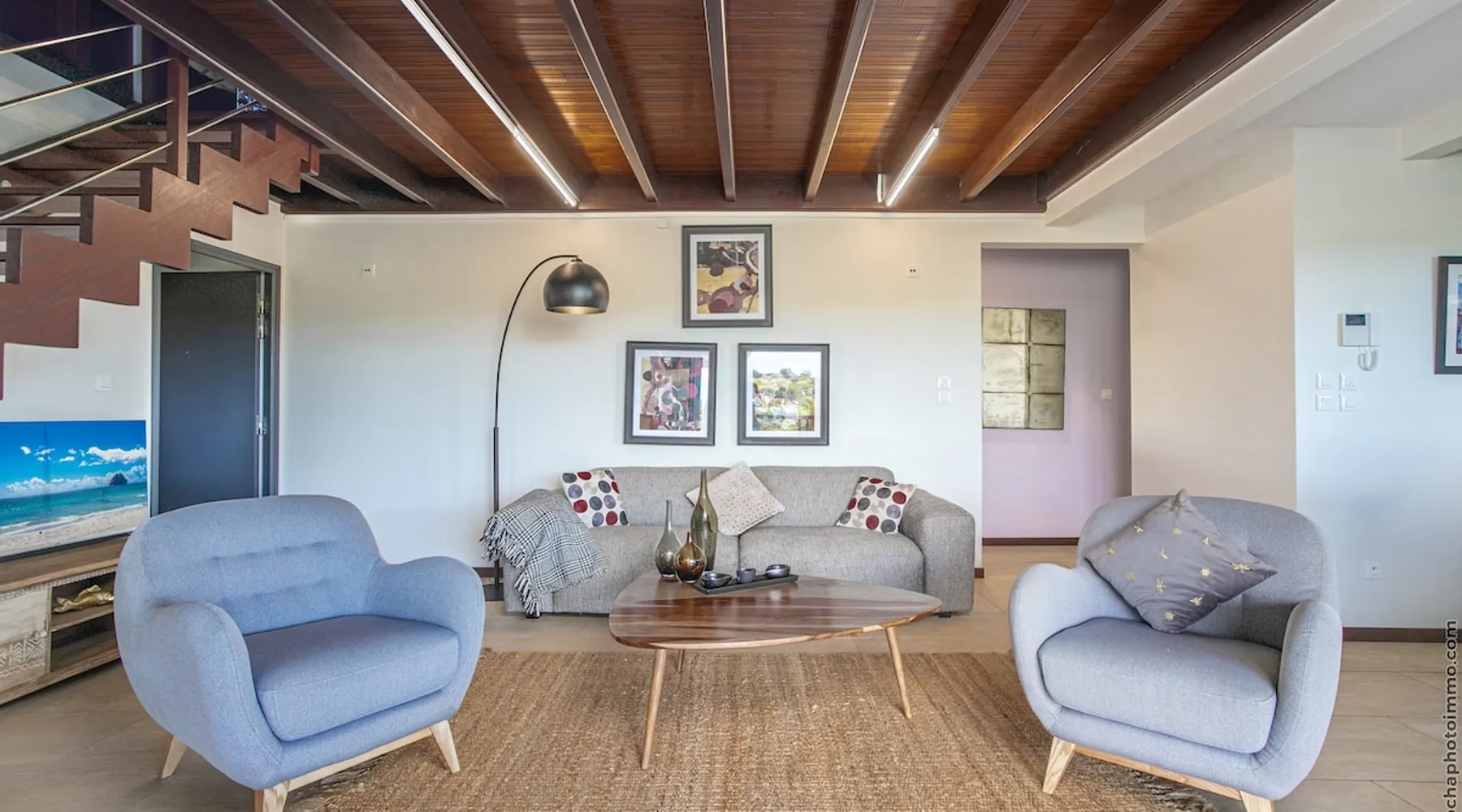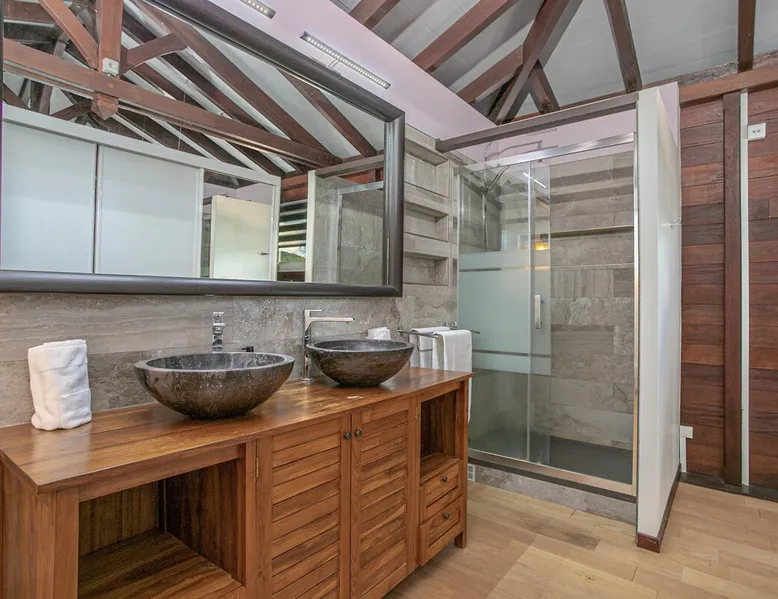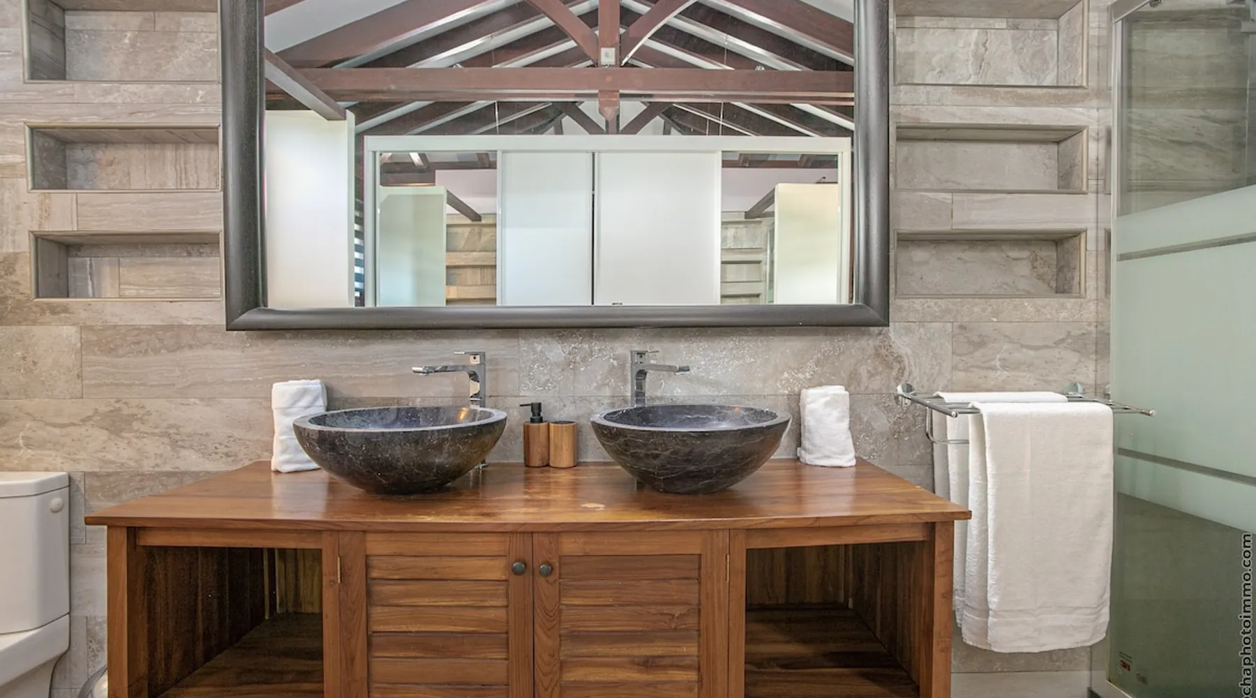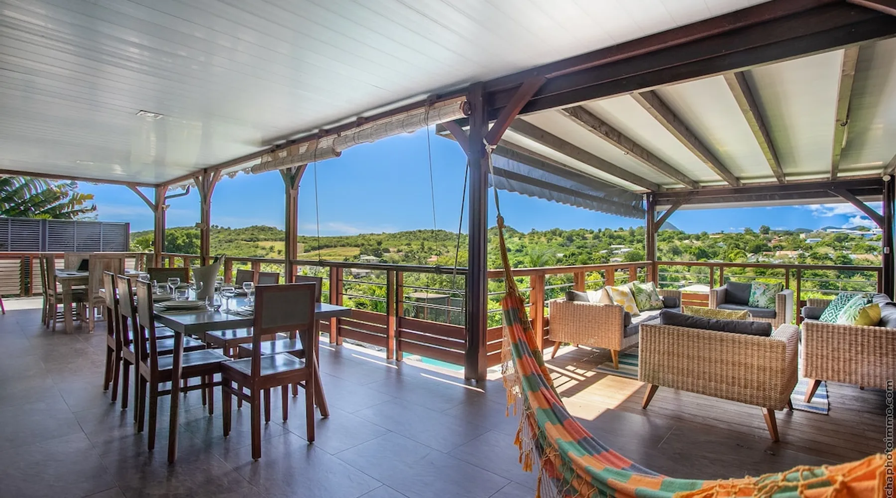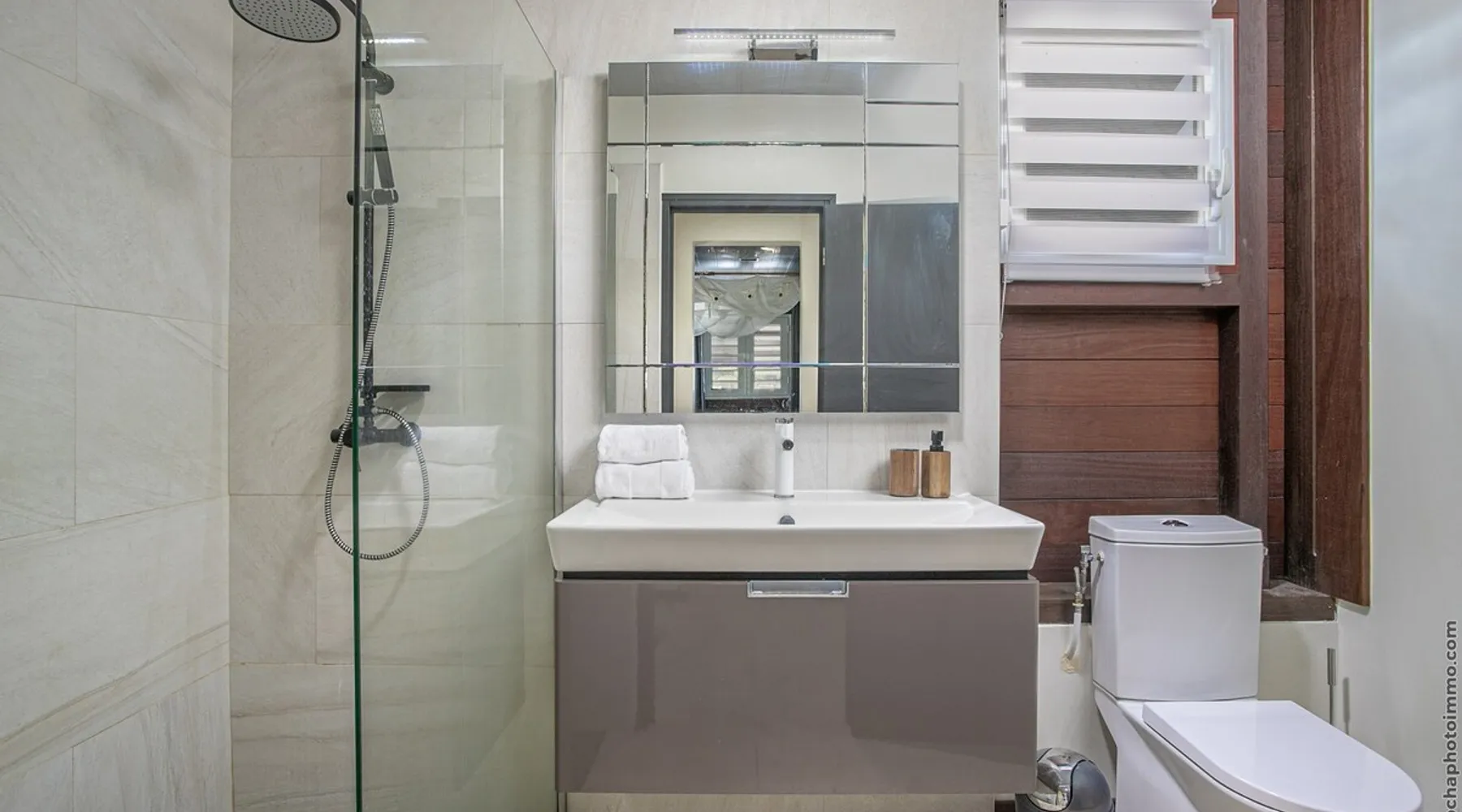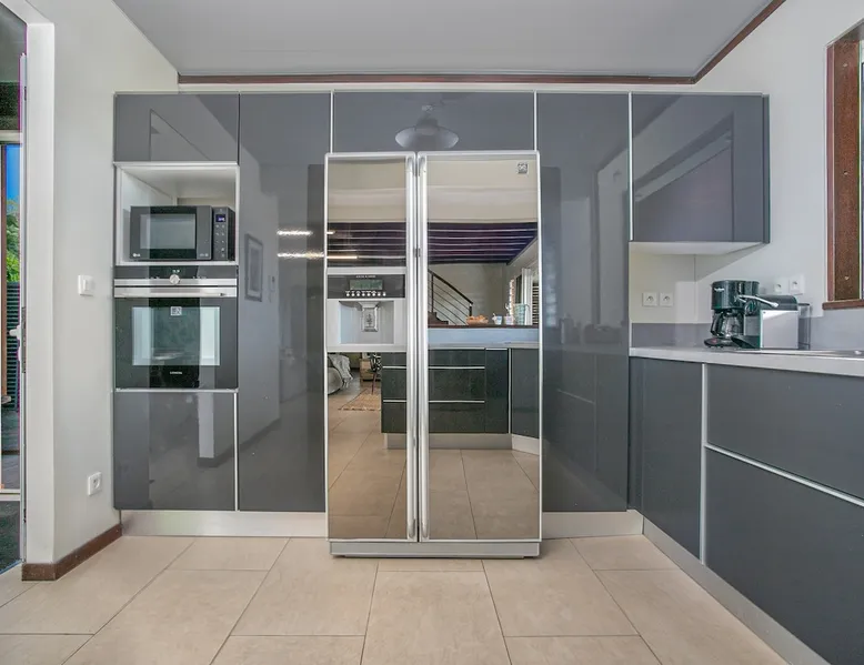A wise blend of Creole and contemporary design styles, Villa Fleur de Canne was born from the encounter between its owner, passionate about wood, and an interior architect. Their goal: to create a vacation setting that is both convivial, modern, and charming. The gamble paid off: wood is omnipresent, especially Guyana's Angelique, a noble wood known for its decorative and warm aesthetics. The space A wise blend of Creole and contemporary design styles, Villa Fleur de Canne was born from the encounter between its owner, passionate about wood, and an interior architect. Their goal: to create a vacation setting that is both convivial, modern, and charming. The gamble paid off: wood is omnipresent, especially Guyana's Angelique, a noble wood known for its decorative and warm aesthetics.Advantages of my seasonal rentalEmbraced by a magnificent tropical garden of 720m² where sugar canes, banana trees, lemon trees, palm trees, mandarin trees, mango trees... mingle, Villa Fleur de Canne exudes a strong Creole personality. My confortable 4 room villa with gardenThe living room and kitchen blend together to create a pleasant living space. Open to the outside, this area offers a soothing view of the garden and the rock formation called the "lying woman". The living room is equipped with a plush fabric sofa, two armchairs, a coconut rug, a wooden coffee table, and a television. The kitchen is equipped with modern appliances, all the necessary kitchen appliances for preparing your favorite dishes, a bar, and stools.With an area of 180m², Villa Fleur de Canne can comfortably accommodate eight people in its four air-conditioned bedrooms. Each bedroom has its own shower room with Wc. Spread over two levels, the bedrooms are elegant and comfortable. Three bedrooms are located on the terrace level: two doubles and one with twin beds. The master suite, located on the first floor, is spacious and offers a refined decor.My vacation rental with pool in Le DiamantAlternating between a lounge and a dining room, the 60m² terrace is a true living space that invites you to enjoy the mild climate. Facing you, the superb shades of green of the tropical vegetation invite daydreaming. Below, the pool, a true oasis of well-being, awaits you for relaxation. The villa is rated 4*.Villa Fleur de Canne is a prestigious address, guaranteeing successful vacations with family or friends. Other things to note Included services - Swimming pool - Baby high chair - Towels - Bed linen Optional services - Parking: Price: Included in the booking. Available items: 2. - Pool towels : Price: EUR 5.00 per person. - Cot/Crib: Price: EUR 20.00 per booking. - XplorAssur : Serenity+: Price: % 3.5 of the booking price. - Air conditioning: Price: Included in the booking. - Internet Access: Price: Included in the booking.
