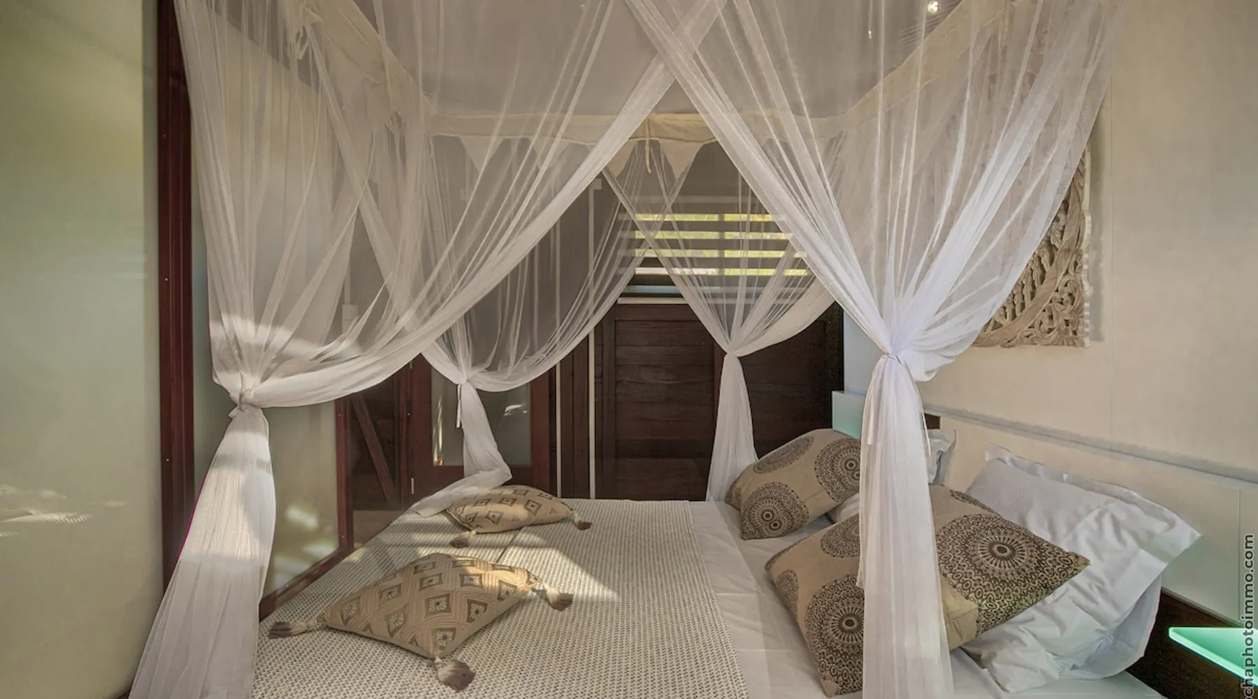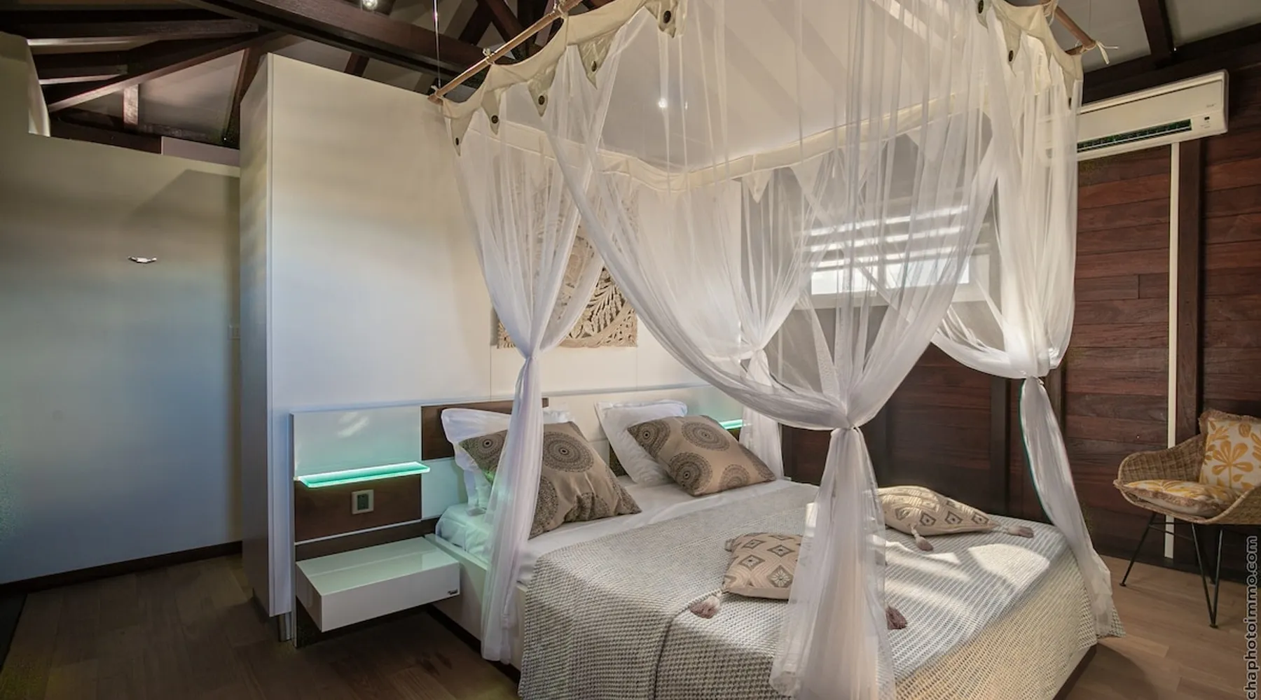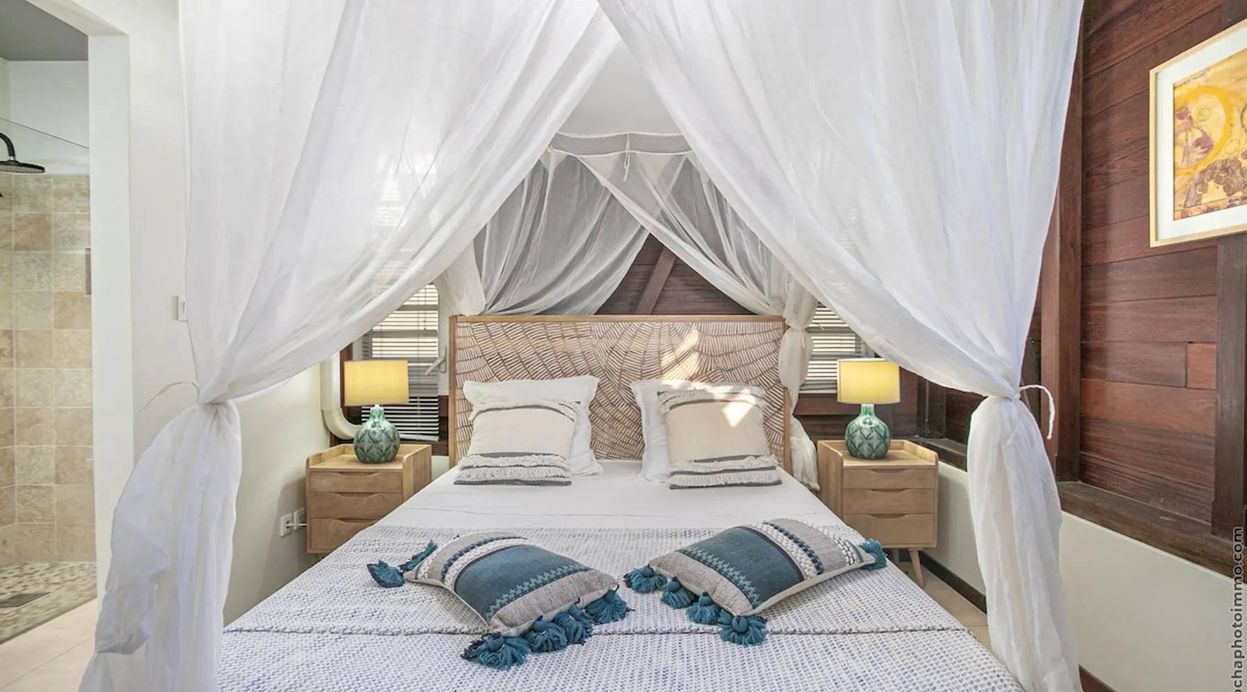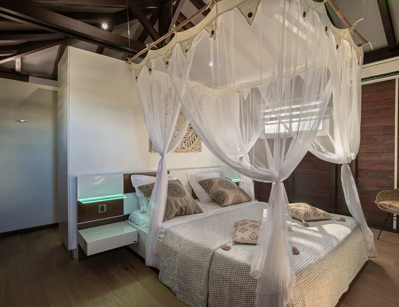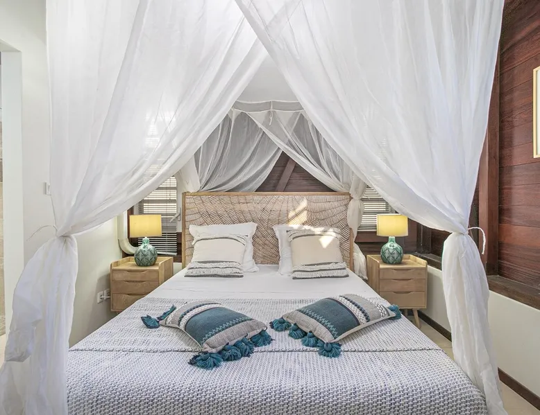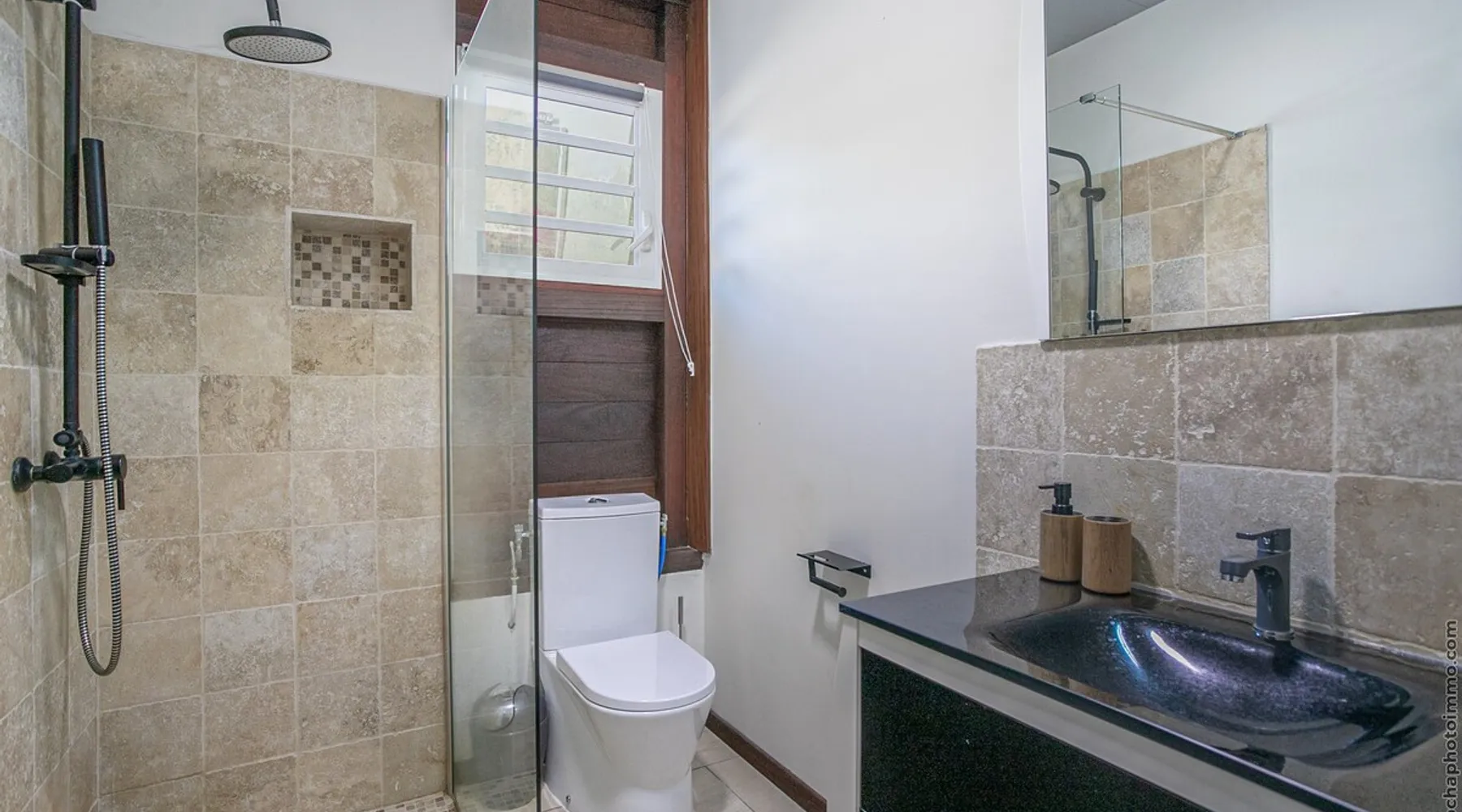 A wise blend of Creole and contemporary design styles, Villa Fleur de Canne was born from the encounter between its owner, passionate about wood, and an interior architect. Their goal: to create a vacation setting that is both convivial, modern, and charming. The gamble paid off: wood is omnipresent, especially Guyana's Angelique, a noble wood known for its decorative and warm aesthetics. The space A wise blend of Creole and contemporary design styles, Villa Fleur de Canne was born from the encounter between its owner, passionate about wood, and an interior architect. Their goal: to create a vacation setting that is both convivial, modern, and charming. The gamble paid off: wood is omnipresent, especially Guyana's Angelique, a noble wood known for its decorative and warm aesthetics.Advantages of my seasonal rentalEmbraced by a magnificent tropical garden of 720m² where sugar canes, banana trees, lemon trees, palm trees, mandarin trees, mango trees... mingle, Villa Fleur de Canne exudes a strong Creole personality. My confortable 4 room villa with gardenThe living room and kitchen blend together to create a pleasant living space. Open to the outside, this area offers a soothing view of the garden and the rock formation called the "lying woman". The living room is equipped with a plush fabric sofa, two armchairs, a coconut rug, a wooden coffee table, and a television. The kitchen is equipped with modern appliances, all the necessary kitchen appliances for preparing your favorite dishes, a bar, and stools.With an area of 180m², Villa Fleur de Canne can comfortably accommodate eight people in its four air-conditioned bedrooms. Each bedroom has its own shower room with Wc. Spread over two levels, the bedrooms are elegant and comfortable. Three bedrooms are located on the terrace level: two doubles and one with twin beds. The master suite, located on the first floor, is spacious and offers a refined decor.My vacation rental with pool in Le DiamantAlternating between a lounge and a dining room, the 60m² terrace is a true living space that invites you to enjoy the mild climate. Facing you, the superb shades of green of the tropical vegetation invite daydreaming. Below, the pool, a true oasis of well-being, awaits you for relaxation. The villa is rated 4*.Villa Fleur de Canne is a prestigious address, guaranteeing successful vacations with family or friends. Other things to note Included services - Swimming pool - Baby high chair - Towels - Bed linen Optional services - Parking: Price: Included in the booking. Available items: 2. - Pool towels : Price: EUR 5.00 per person. - Cot/Crib: Price: EUR 20.00 per booking. - XplorAssur : Serenity+: Price: % 3.5 of the booking price. - Air conditioning: Price: Included in the booking. - Internet Access: Price: Included in the booking.