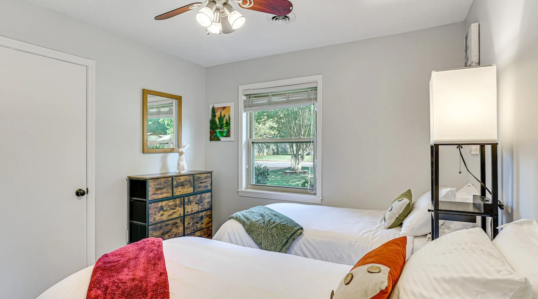 Quiet & Private Location | Grill | Covered Patio | Cornhole | Laptop-Friendly Workspace In the quaint town of Henderson, TN, where rolling hills frame the storied past of the Civil War, this 3-bed, 1-bath vacation rental provides a cozy setting for family fun. Not only is this home a short walk to downtown shops, eateries, museums, and events, but it also boasts a grill for savory barbecues and a fire pit in the fenced yard — perfect for enjoying s’mores under the starlit sky! The space SLEEPING ARRANGEMENTS - Bedroom 1: 1 queen bed - Bedroom 2: 2 twin beds - Bedroom 3: 1 bunk bed (lofted twin/full futon) OUTDOOR LIVING - Covered patio, outdoor seating - Electric grill (spatula provided), fire pit (lighter & starter pack of wood/kindling provided) - Fenced-in yard, cornhole INDOOR LIVING - Smart TVs, board games, books - Dining table, desk - Coffee bar w/ dual coffee maker (drip & pod, coffee provided) - Walk-in closets, shower/tub combo KITCHEN - Stove/oven, refrigerator - Cooking basics, dishware/flatware - Crockpot, microwave, toaster, spices GENERAL - Free WiFi - Central heating & A/C, ceiling fans - Complimentary toiletries, hair dryer - Washer/dryer, laundry detergent - Hangers, iron/board - Linens/towels, trash bags/paper towels ACCESSIBILITY - Single-story home, 1 step to enter PARKING - Driveway (3 vehicles) - Street parking (first-come, first-served basis) Guest access Guests will have access to the entire property via keyless entry Other things to note - No smoking - No pets allowed - No events, parties, or large gatherings - Additional fees and taxes may apply - Photo ID may be required upon check-in ADDITIONAL INFORMATION - This single-story home requires 1 step to enter