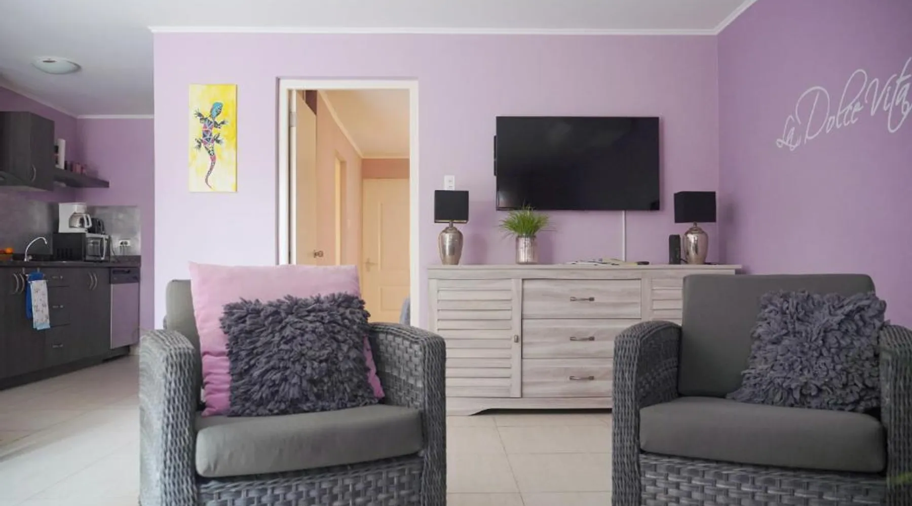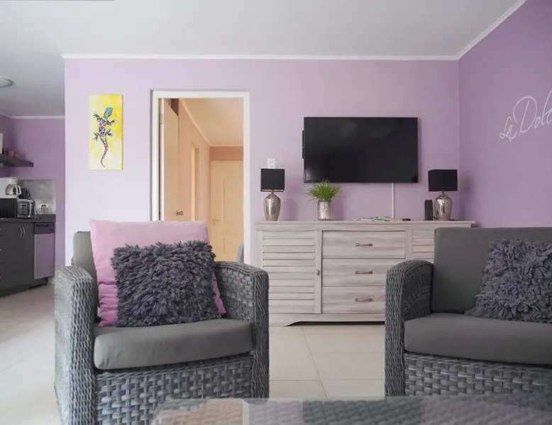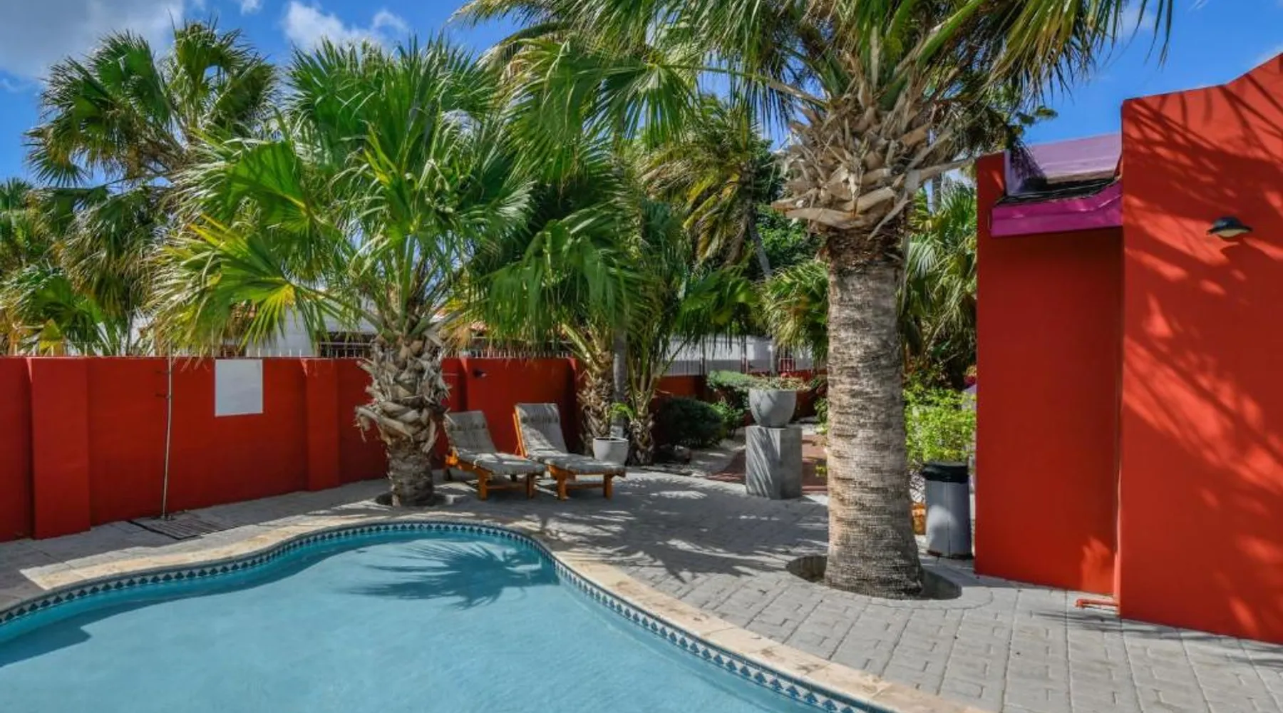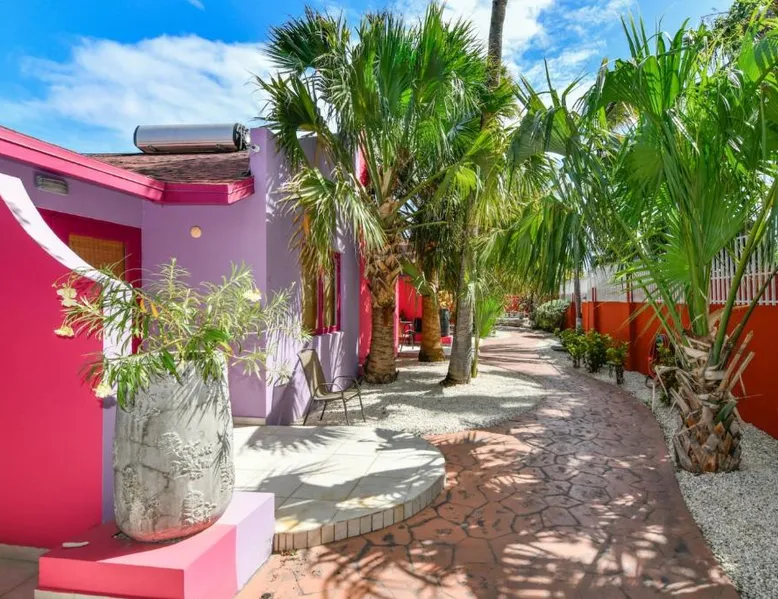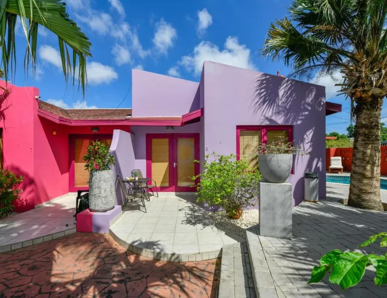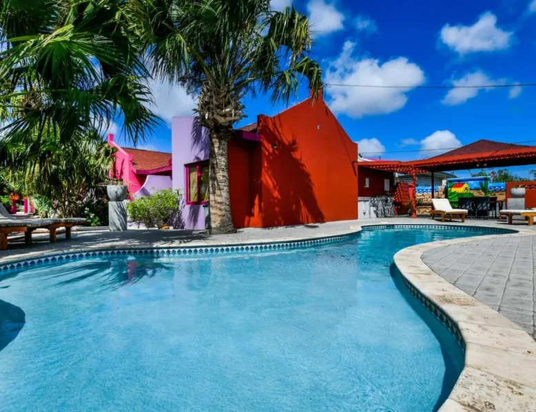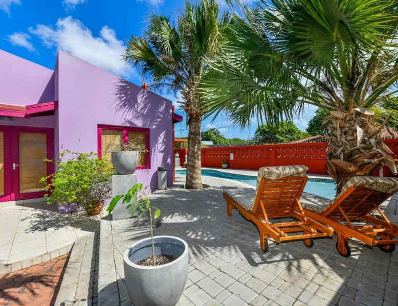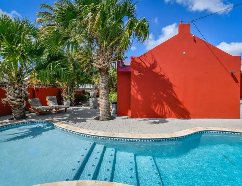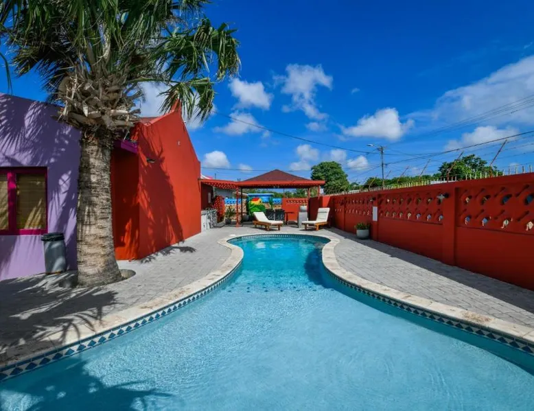 Elegant Accommodations: Cadushi Apartments in Oranjestad offers adults-only apartments with garden and pool views. Each unit features a private bathroom, air-conditioning, and a fully equipped kitchen. Outdoor Amenities: Guests can relax on the sun terrace or enjoy the year-round outdoor swimming pool. The property includes a garden, open-air bath, and free WiFi throughout. Convenient Location: Located 3281 feet from Queen Beatrix International Airport, the apartment is an 8-minute walk from Surfside Beach. Nearby attractions include Hooiberg Mountain (2.5 mi) and Arikok National Park (7.5 mi). Guest Favorites: Visitors appreciate the beach access, convenient location, and comfortable rooms. This room features 2 double beds, a stove top, dining area and a microwave.