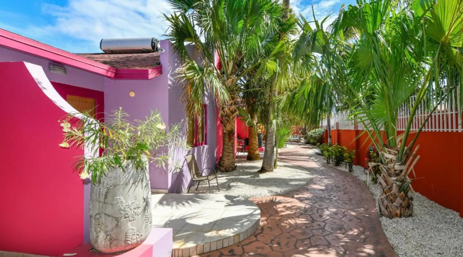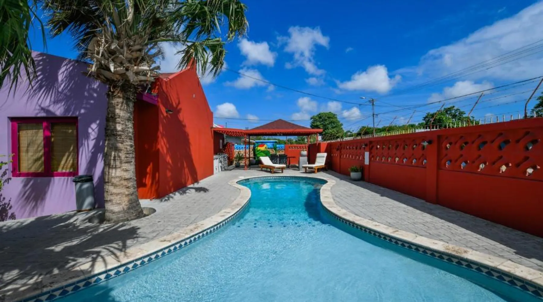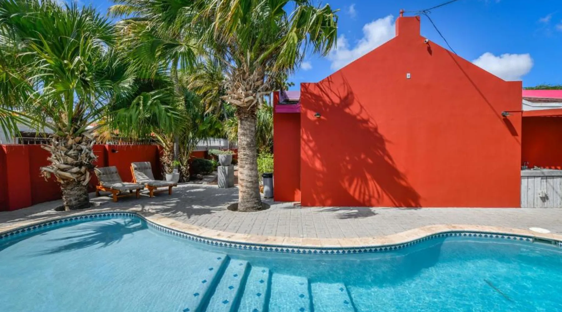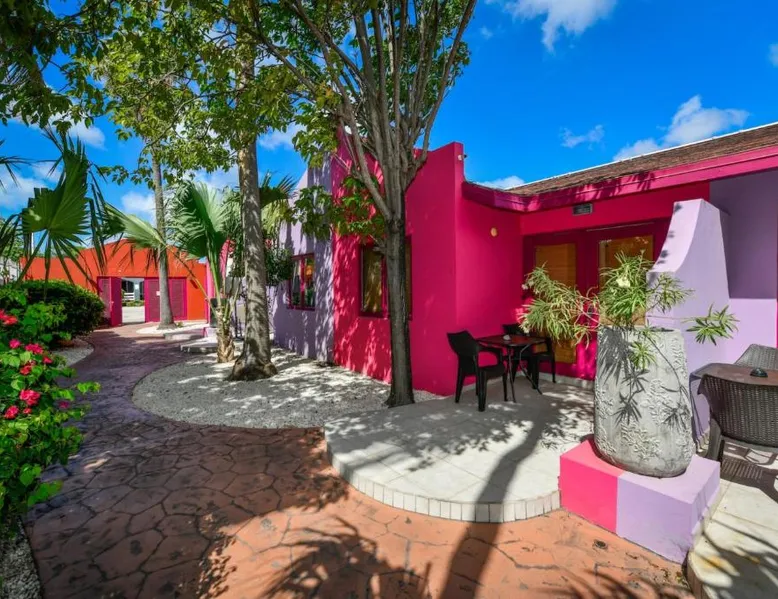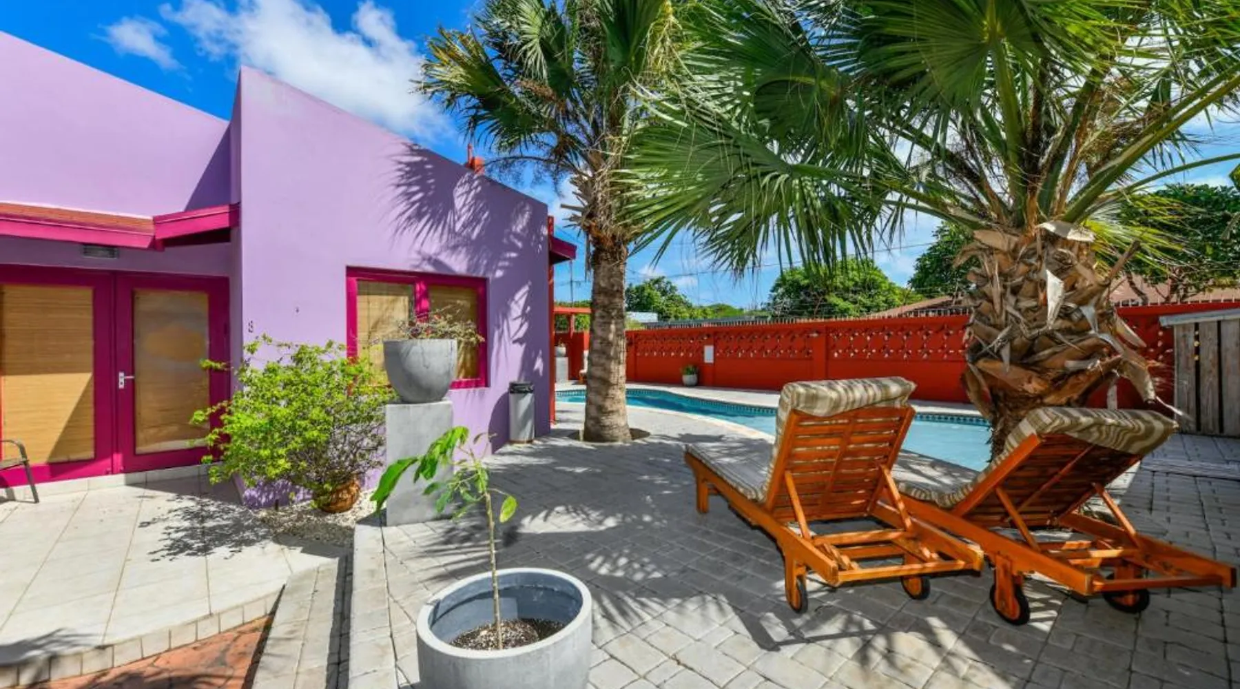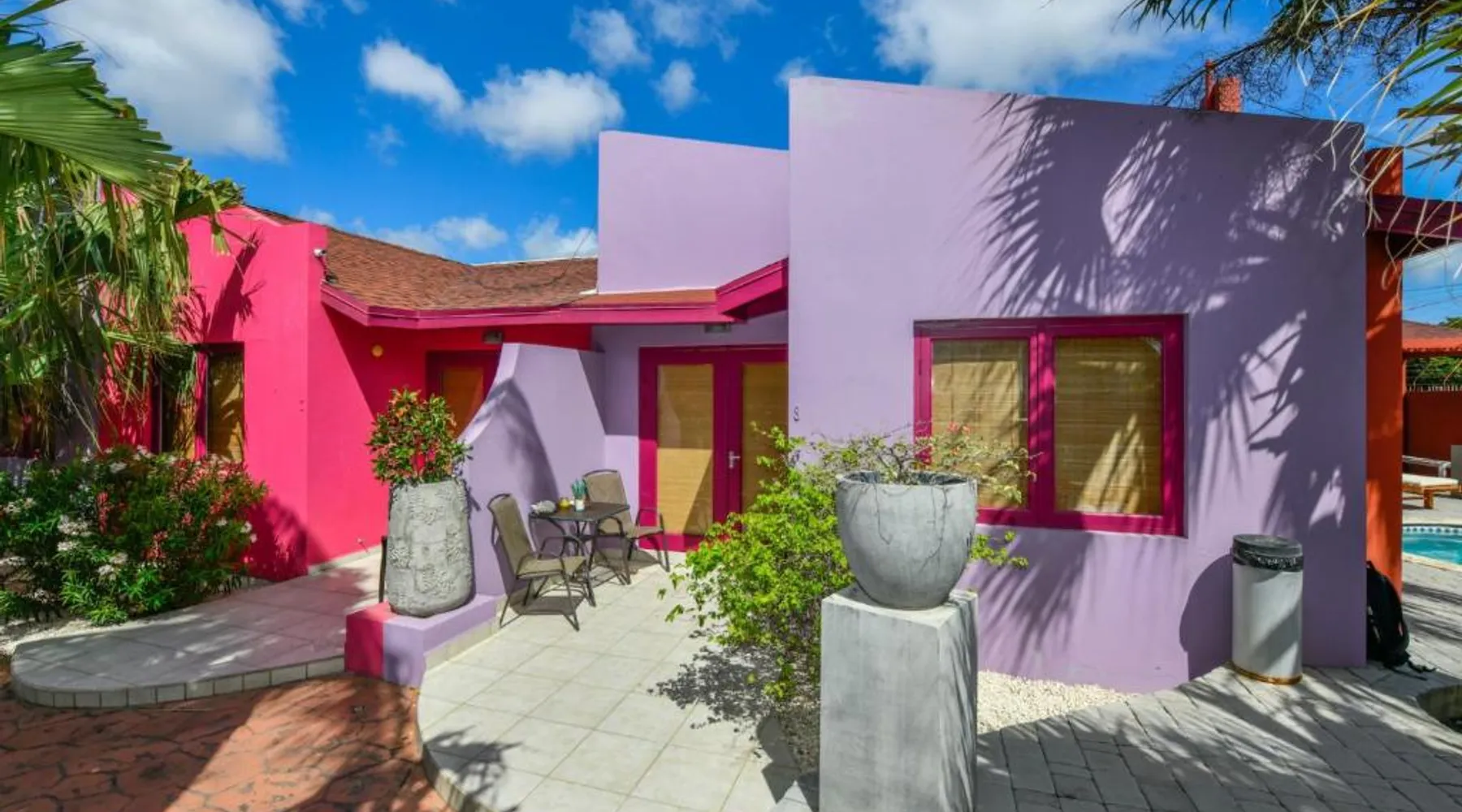 Elegant Accommodations: Cadushi Apartments in Oranjestad offers adults-only apartments with garden and pool views. Each unit features a private bathroom, air-conditioning, and a fully equipped kitchen. Outdoor Amenities: Guests can relax on the sun terrace or enjoy the year-round outdoor swimming pool. The property includes a garden, open-air bath, and free WiFi throughout. Convenient Location: Located 3281 feet from Queen Beatrix International Airport, the apartment is an 8-minute walk from Surfside Beach. Nearby attractions include Hooiberg Mountain (2.5 mi) and Arikok National Park (7.5 mi). Guest Favorites: Visitors appreciate the beach access, convenient location, and comfortable rooms. This room features 2 double beds, a stove top, dining area and a microwave.