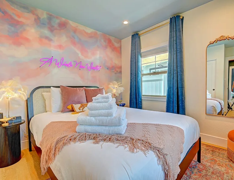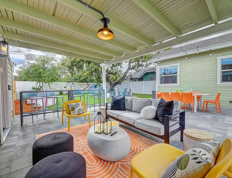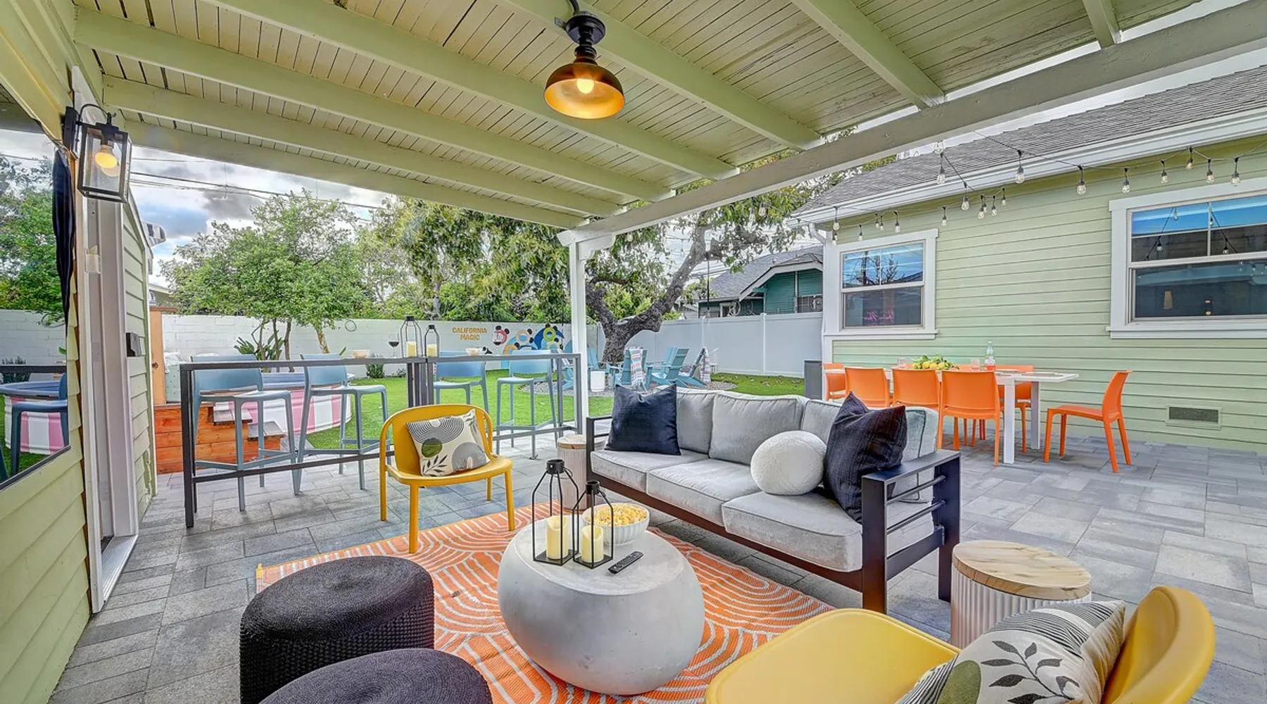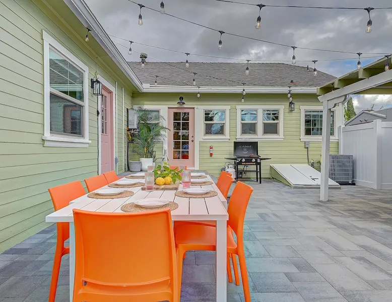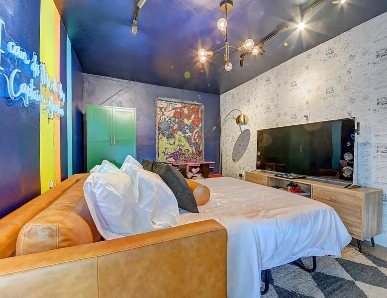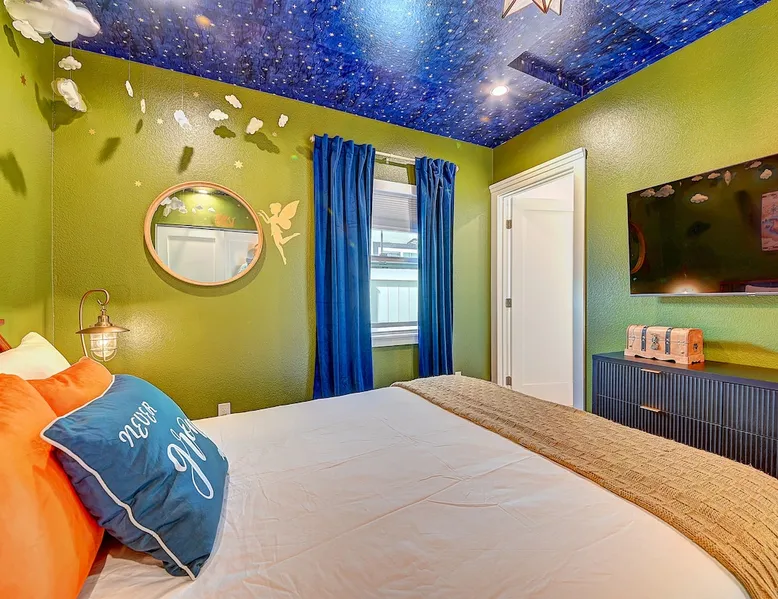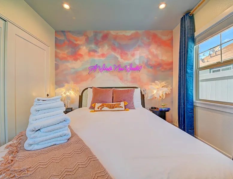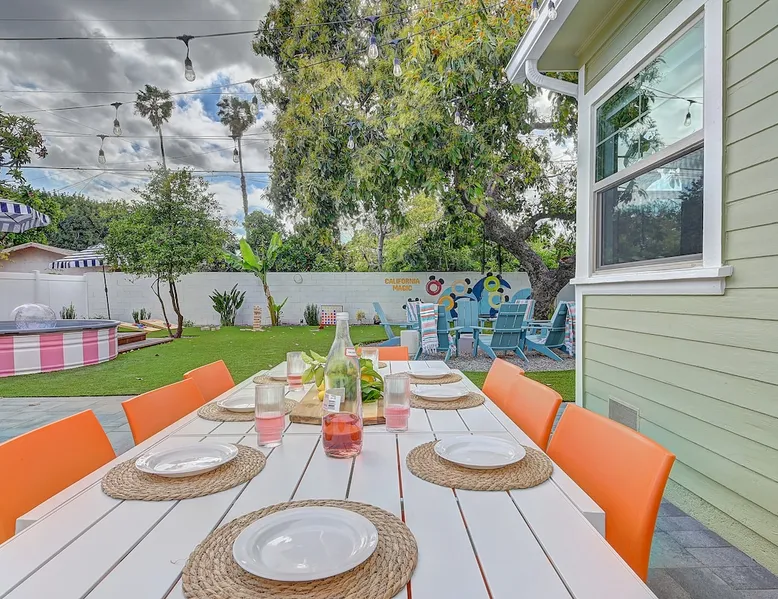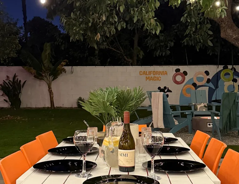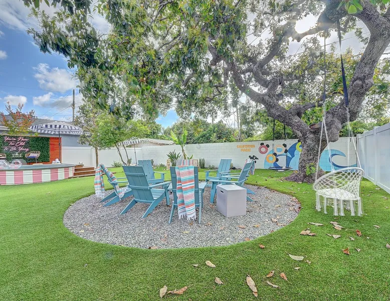 ✨ Welcome to AvoCottage, a bespoke home by Bamboo Dwellings ✨ Just 12 miles to Disneyland and 6 to Newport Beach. Enjoy a fenced backyard with a soaking pool, fire pit, yard games, outdoor TV, and Blackstone griddle. Features 5 magical Disney themed bedrooms, 3 luxury bathrooms, a game room with arcade, EV charger, private parking, and premium amenities. We have all the magic of SoCal with the comforts of home. The space 🥑 What You’ll Love About AvoCottage Our whimsical, newly renovated 1920s Californian Cottage is single storied and has 1400 sq ft of indoor space plus a 200 sq ft detached game room and an expansive Avocado tree shaded backyard. With our home, the magic from Disneyland doesn’t end at the park! Designed to give you the same sense of wonder and excitement you get at Disneyland—without feeling like you’re walking through a gift shop. It’s immersive with a touch of Disney magic in every room and perfect for families and friend groups. Inside, you'll find an open-concept layout with: ✶ Fully equipped kitchen with a blender, rice cooker, and all the tools a chef like Remy or Tianna could need ✶ Coffee bar with a kettle and both Keurig and drip coffee options ✶ Kids dishes, utensils, and cups (including spill resistant ones!) ✶ Dining table comfortably seats 8 guests ✶ High chair provided for your littlest mouseketeer ✶ 60" Smart TV with complimentary Netflix & Disney+ ✶ Comfy seating on luxury branded furniture for cuddle sessions while watching your favorite Disney films ✶ Board games for unplugged fun ✶ 3 beautifully designed bathrooms stocked with organic Public Goods toiletries, plush hotel towels, and a hairdryer. One includes a relaxing soaking tub. ✶ Washer and dryer for your convenience during longer stays You'll rest easy in 5 magical bedrooms, each with premium Helix mattresses, hotel bedding, and its own Disney-inspired theme: 🐇 Alice in Wonderland Studio: Private entrance from the backyard, king bed, crib, ensuite bathroom, Smart TV, coffee bar, and bistro dining set for your own Mad Hatter tea party. (Corner table can also be used as a desk) 🧚🏻 Neverland Suite: Queen bed, ensuite bathroom with tub, Smart TV 🕌 Aladdin Room: Queen bed, trendy neon sign decor 🌍 It’s a Small World Room: Twin over full bunk with trundle, dress-up closets, toys, and books 🛡 Avengers Game Room: Detached suite with queen sleeper sofa, Smart TV, climate control, and vintage arcade games Note: Game Room bathroom is inside the main house via the private backyard—please consider this during rainy months. 🌴Step outside to your private, fully fenced backyard oasis with: ✶ Heated cowboy-style tank pool ✶ Blackstone griddle and outdoor dining table ✶ Fire pit with string lights for cozy evenings ✶ Outdoor living room and TV for movies under the stars! ✶ Turf lawn with umbrellas, yard games, and room to run the zoomies out ✶ Hidden Mickeys to discover! ✶100+ year old Avocado tree adorned with string lights and 2 tree swings 🌿Heads Up, Nature Lovers: Our fruit trees attract Raccoons and Opossums. They’re harmless but can leave their droppings, we do our best to stay on top of removal between stays. 🦝 Guest favorite Avengers-themed game room ✶ Detached carriage house with Queen sleeper sofa ✶ combo Foosball/air hockey/ping pong table ✶ Vintage arcade games ✶ 65” Smart TV + surround sound for epic movie nights or game-day energy ✶ Prefer to have an epic office space? We can replace the foosball table with a spacious desk! Included thoughtful Amenities ✶ Starbucks Coffee, Tea, Hot Chocolate ✶ Helix mattresses & hotel linens for dreamy sleep ✶ Everything for the beach: Pool/beach towels, Bogg Bag, umbrella, 4 beach chairs, sand toys, and a wagon to carry it all ✶ Outdoor blankets for cozy evenings ✶ Public Goods sulfate-free and organic bath products ✶ EV charger available (for a small additional fee of $25 per charge) Whether you're soaking in the pool, grilling under the sun, or watching Disney classics with your favorite people, AvoCottage wraps you in comfort and a sprinkle of SoCal magic. It isn't just a place to sleep—it’s a place where core memories are made. 🌴 Book your Orange County escape today and experience the magic for yourself. 🌞 Guest access ✶ Easy self check-in with a keyless entry system ✶ Secure keyless keypad entry ✶ Your personalized access code, along with detailed check-in instructions, will be sent to you one day before your arrival. Other things to note 5th Bedroom: The Game Room Our Game Room doubles as a cozy private sleeping space, complete with a comfortable queen-size sofa bed and an armoire for clothing storage. Fresh linens and pillows are provided inside the armoire so you can make the bed at your convenience. This space is located in a detached carriage house just across the patio. It is well-insulated, climate-controlled, and filled with natural light through its windows, offering a pleasant and quiet retreat. Please note: While the Game Room is fully equipped for comfort, the bathroom is located in the main house or studio, requiring a short outdoor walk. California’s weather is generally sunny and mild year-round, with the exception of the occasional rain in spring. We recommend keeping this in mind if you're planning to use this as a fifth bedroom during your stay. About the Pool Our cowboy-style tank pool is 10 feet in diameter and 22 inches deep—perfect for cooling off with 6 to 7 adults. EV Charging An electric vehicle charging station is available on-site for guest use. $25 per charge applies. Pet Policy Well-behaved dogs are welcome with prior approval. $150 per pet, per day. Dogs only (no cats or other animals). Pets are not allowed on furniture or linens—extra $50 fee applies for excess hair. Please bring your own bedding if needed. Use provided bags for waste; turf clean-up incurs a $50 fee. Unauthorized pets will result in addit