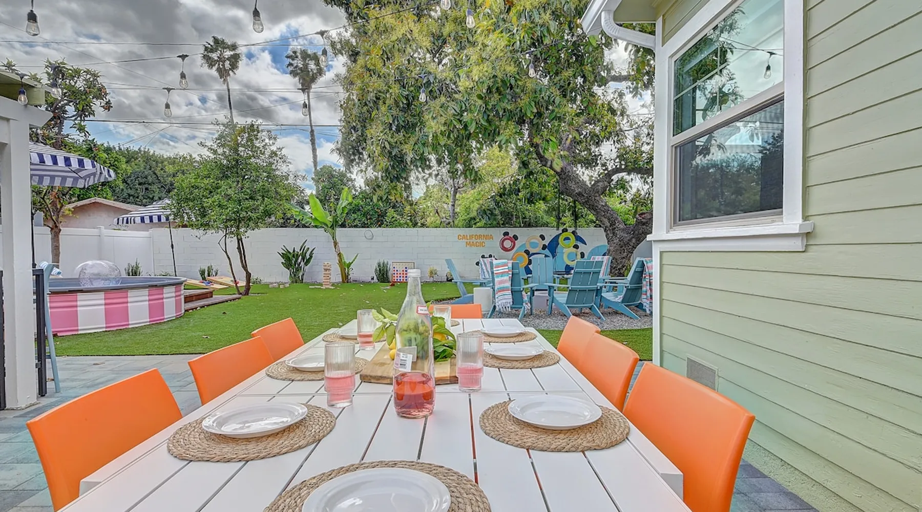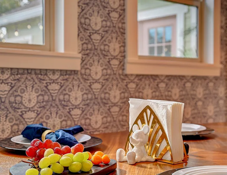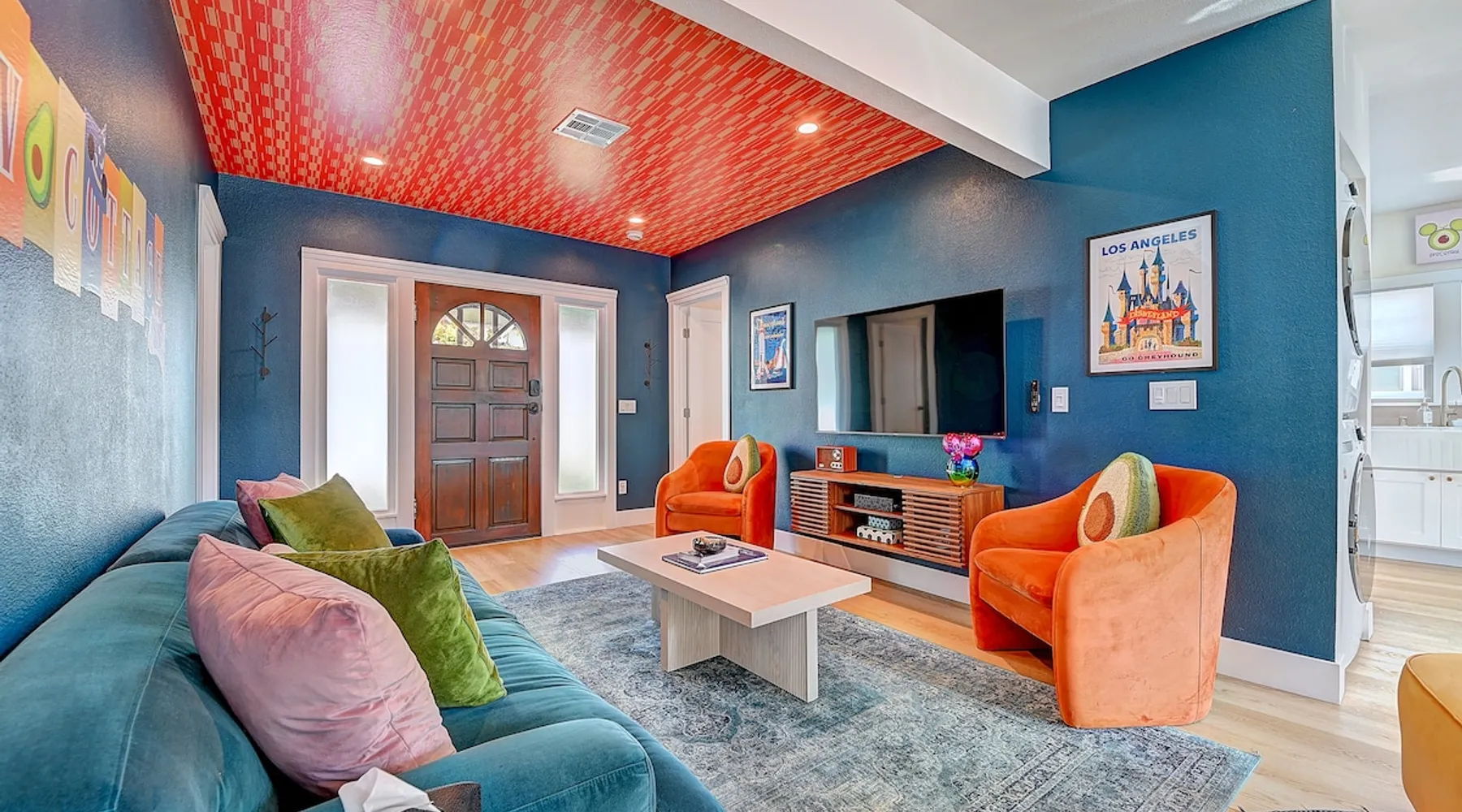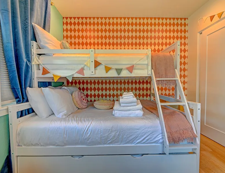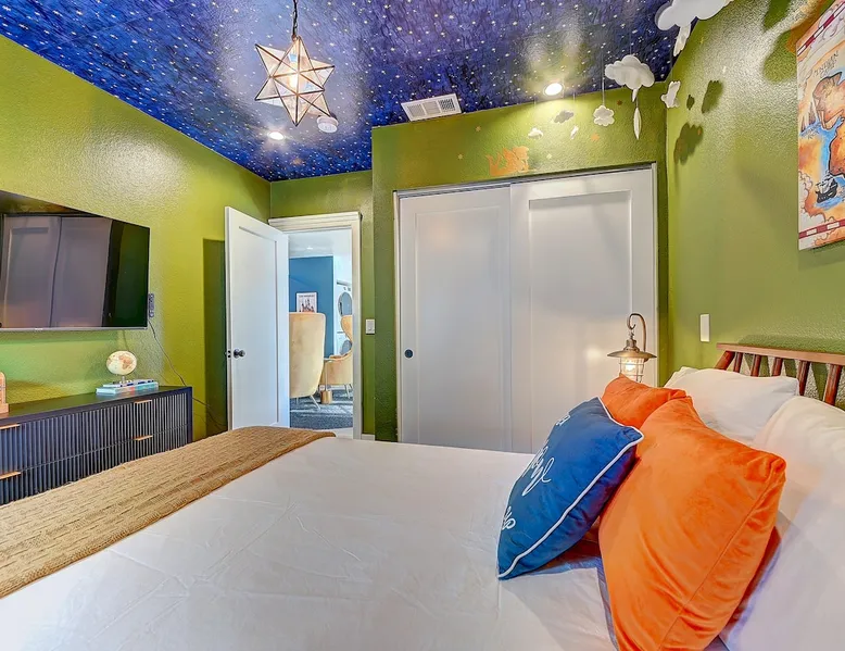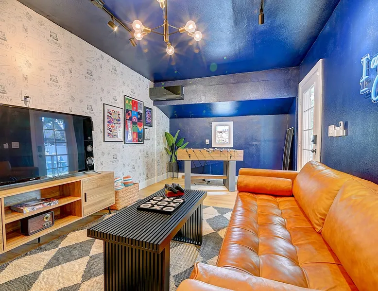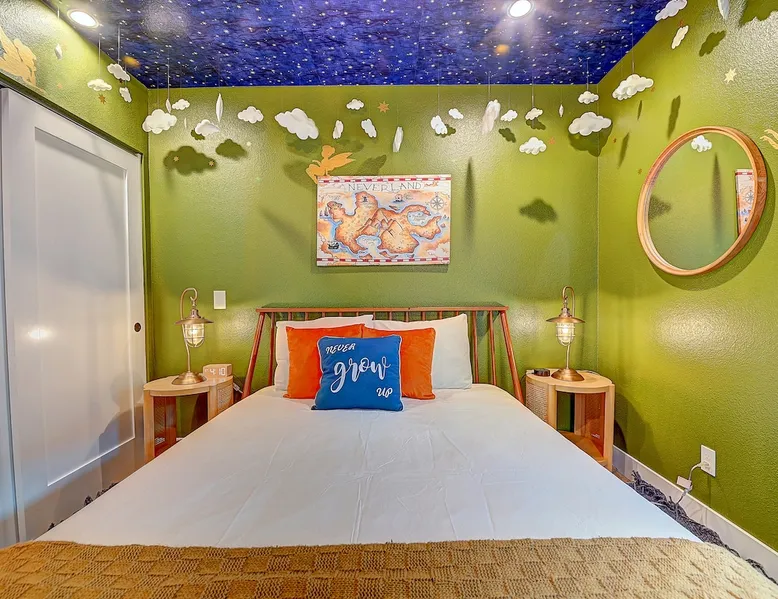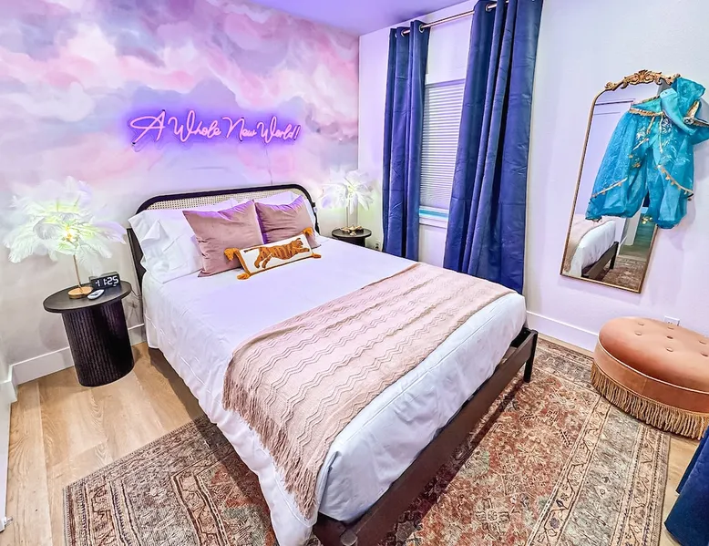 ✨ Welcome to AvoCottage, a bespoke home by Bamboo Dwellings ✨ Just 12 miles to Disneyland and 6 to Newport Beach. Enjoy a fenced backyard with a soaking pool, fire pit, yard games, outdoor TV, and Blackstone griddle. Features 5 magical Disney themed bedrooms, 3 luxury bathrooms, a game room with arcade, EV charger, private parking, and premium amenities. We have all the magic of SoCal with the comforts of home. The space 🥑 What You’ll Love About AvoCottage Our whimsical, newly renovated 1920s Californian Cottage is single storied and has 1400 sq ft of indoor space plus a 200 sq ft detached game room and an expansive Avocado tree shaded backyard. With our home, the magic from Disneyland doesn’t end at the park! Designed to give you the same sense of wonder and excitement you get at Disneyland—without feeling like you’re walking through a gift shop. It’s immersive with a touch of Disney magic in every room and perfect for families and friend groups. Inside, you'll find an open-concept layout with: ✶ Fully equipped kitchen with a blender, rice cooker, and all the tools a chef like Remy or Tianna could need ✶ Coffee bar with a kettle and both Keurig and drip coffee options ✶ Kids dishes, utensils, and cups (including spill resistant ones!) ✶ Dining table comfortably seats 8 guests ✶ High chair provided for your littlest mouseketeer ✶ 60" Smart TV with complimentary Netflix & Disney+ ✶ Comfy seating on luxury branded furniture for cuddle sessions while watching your favorite Disney films ✶ Board games for unplugged fun ✶ 3 beautifully designed bathrooms stocked with organic Public Goods toiletries, plush hotel towels, and a hairdryer. One includes a relaxing soaking tub. ✶ Washer and dryer for your convenience during longer stays You'll rest easy in 5 magical bedrooms, each with premium Helix mattresses, hotel bedding, and its own Disney-inspired theme: 🐇 Alice in Wonderland Studio: Private entrance from the backyard, king bed, crib, ensuite bathroom, Smart TV, coffee bar, and bistro dining set for your own Mad Hatter tea party. (Corner table can also be used as a desk) 🧚🏻 Neverland Suite: Queen bed, ensuite bathroom with tub, Smart TV 🕌 Aladdin Room: Queen bed, trendy neon sign decor 🌍 It’s a Small World Room: Twin over full bunk with trundle, dress-up closets, toys, and books 🛡 Avengers Game Room: Detached suite with queen sleeper sofa, Smart TV, climate control, and vintage arcade games Note: Game Room bathroom is inside the main house via the private backyard—please consider this during rainy months. 🌴Step outside to your private, fully fenced backyard oasis with: ✶ Heated cowboy-style tank pool ✶ Blackstone griddle and outdoor dining table ✶ Fire pit with string lights for cozy evenings ✶ Outdoor living room and TV for movies under the stars! ✶ Turf lawn with umbrellas, yard games, and room to run the zoomies out ✶ Hidden Mickeys to discover! ✶100+ year old Avocado tree adorned with string lights and 2 tree swings 🌿Heads Up, Nature Lovers: Our fruit trees attract Raccoons and Opossums. They’re harmless but can leave their droppings, we do our best to stay on top of removal between stays. 🦝 Guest favorite Avengers-themed game room ✶ Detached carriage house with Queen sleeper sofa ✶ combo Foosball/air hockey/ping pong table ✶ Vintage arcade games ✶ 65” Smart TV + surround sound for epic movie nights or game-day energy ✶ Prefer to have an epic office space? We can replace the foosball table with a spacious desk! Included thoughtful Amenities ✶ Starbucks Coffee, Tea, Hot Chocolate ✶ Helix mattresses & hotel linens for dreamy sleep ✶ Everything for the beach: Pool/beach towels, Bogg Bag, umbrella, 4 beach chairs, sand toys, and a wagon to carry it all ✶ Outdoor blankets for cozy evenings ✶ Public Goods sulfate-free and organic bath products ✶ EV charger available (for a small additional fee of $25 per charge) Whether you're soaking in the pool, grilling under the sun, or watching Disney classics with your favorite people, AvoCottage wraps you in comfort and a sprinkle of SoCal magic. It isn't just a place to sleep—it’s a place where core memories are made. 🌴 Book your Orange County escape today and experience the magic for yourself. 🌞 Guest access ✶ Easy self check-in with a keyless entry system ✶ Secure keyless keypad entry ✶ Your personalized access code, along with detailed check-in instructions, will be sent to you one day before your arrival. Other things to note 5th Bedroom: The Game Room Our Game Room doubles as a cozy private sleeping space, complete with a comfortable queen-size sofa bed and an armoire for clothing storage. Fresh linens and pillows are provided inside the armoire so you can make the bed at your convenience. This space is located in a detached carriage house just across the patio. It is well-insulated, climate-controlled, and filled with natural light through its windows, offering a pleasant and quiet retreat. Please note: While the Game Room is fully equipped for comfort, the bathroom is located in the main house or studio, requiring a short outdoor walk. California’s weather is generally sunny and mild year-round, with the exception of the occasional rain in spring. We recommend keeping this in mind if you're planning to use this as a fifth bedroom during your stay. About the Pool Our cowboy-style tank pool is 10 feet in diameter and 22 inches deep—perfect for cooling off with 6 to 7 adults. EV Charging An electric vehicle charging station is available on-site for guest use. $25 per charge applies. Pet Policy Well-behaved dogs are welcome with prior approval. $150 per pet, per day. Dogs only (no cats or other animals). Pets are not allowed on furniture or linens—extra $50 fee applies for excess hair. Please bring your own bedding if needed. Use provided bags for waste; turf clean-up incurs a $50 fee. Unauthorized pets will result in addit