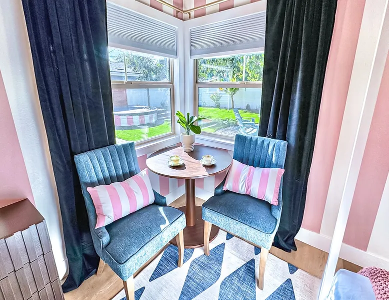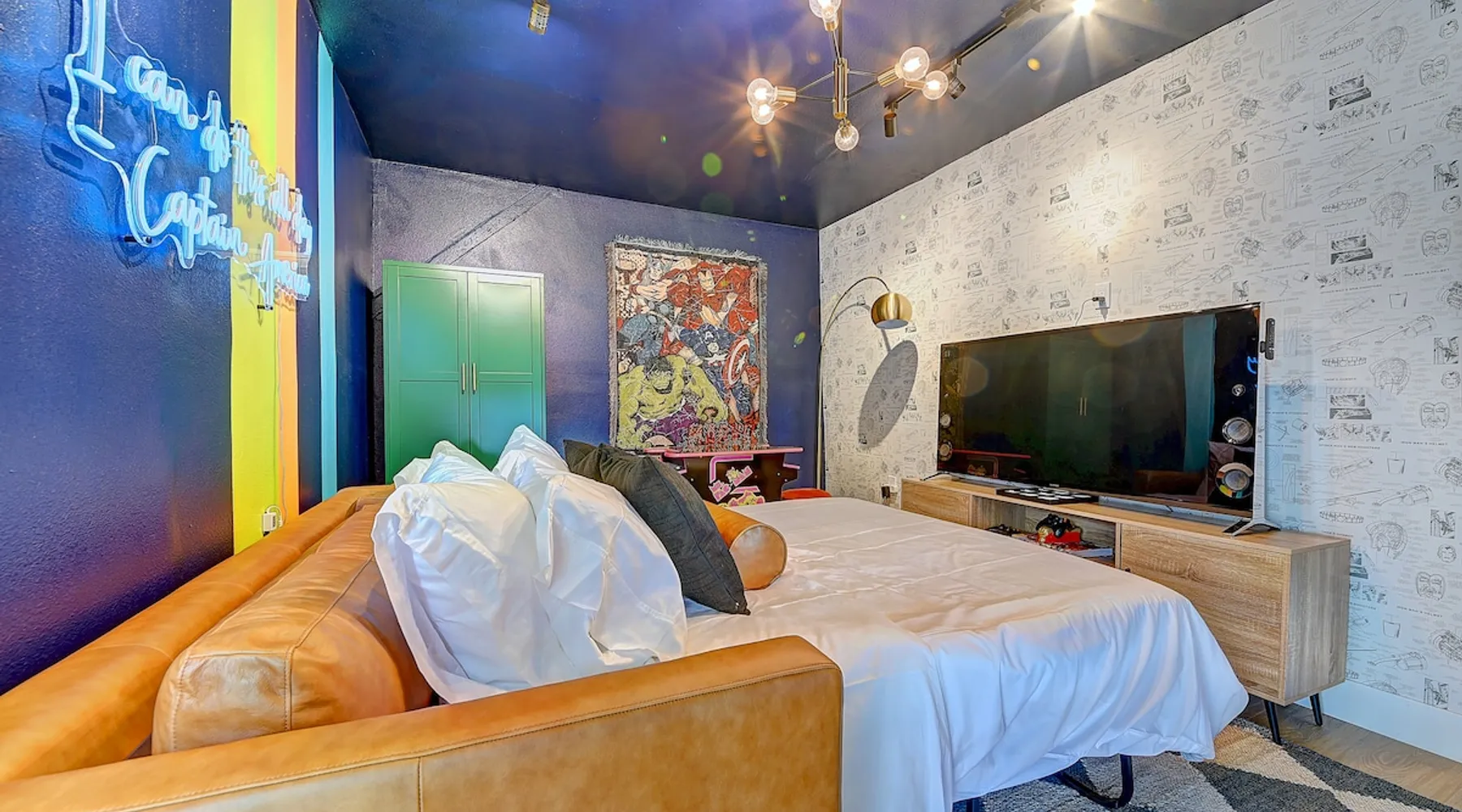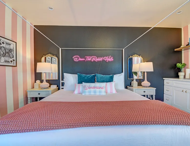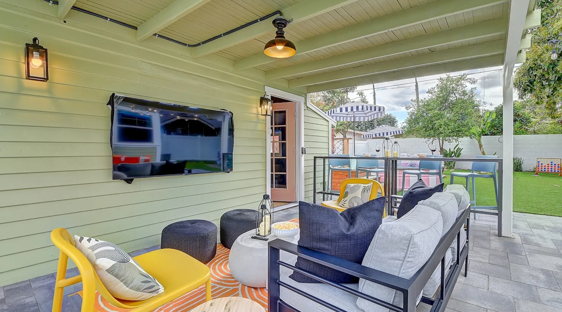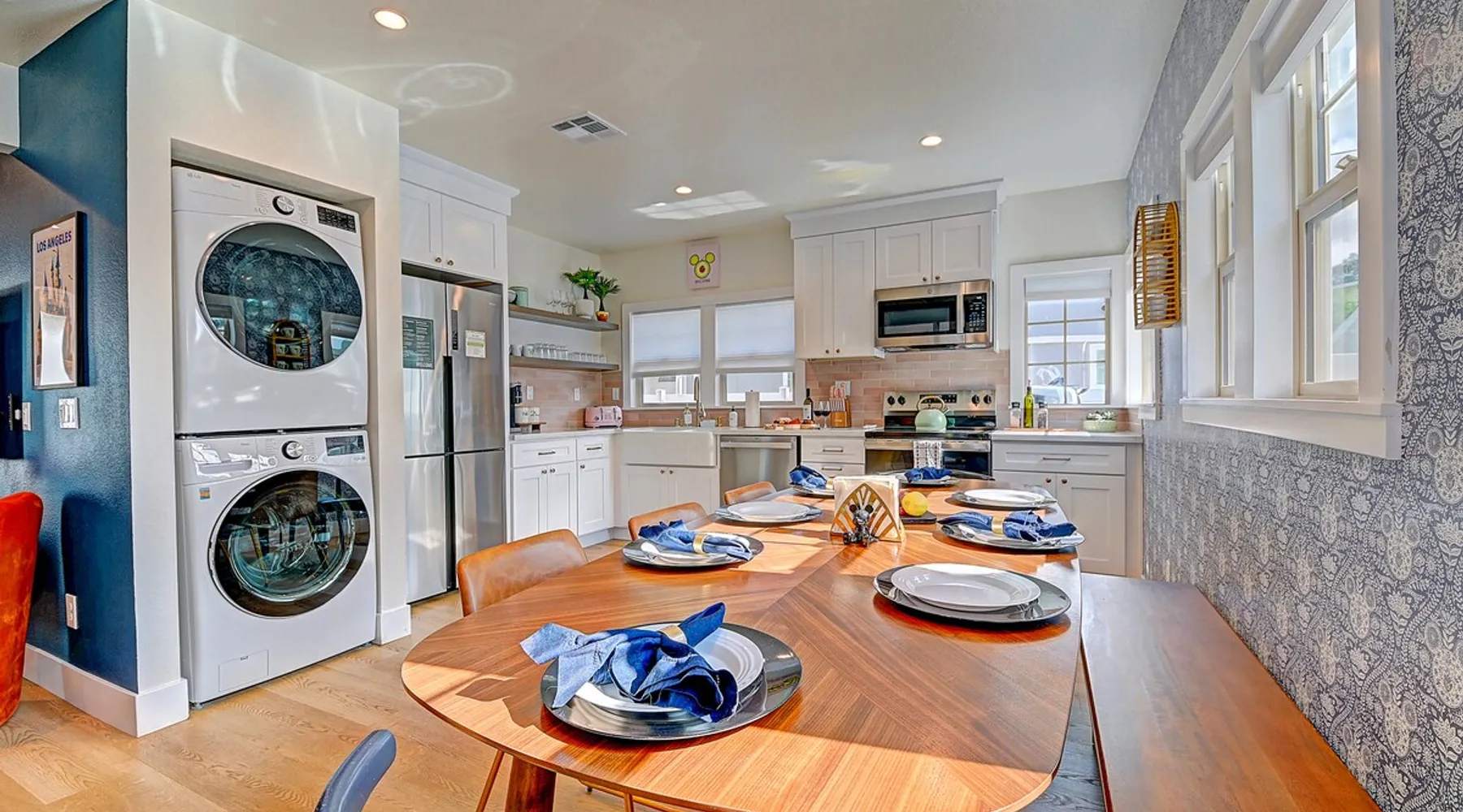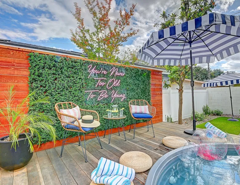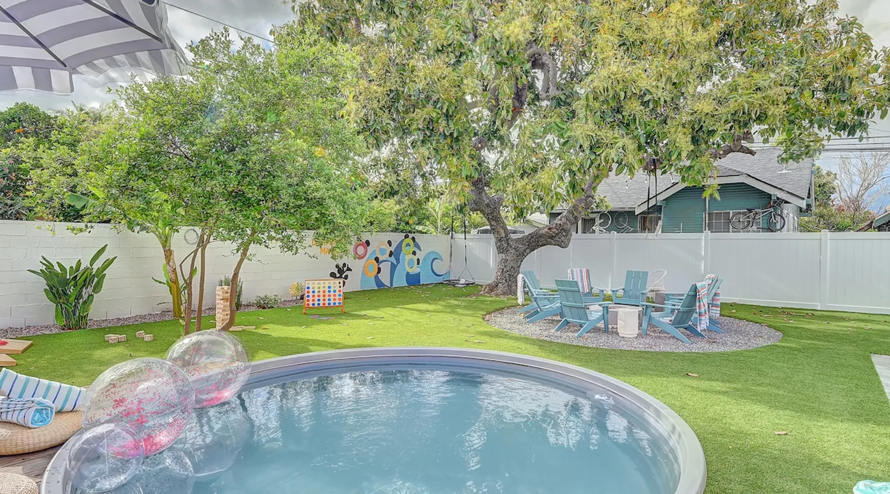 ✨ Welcome to AvoCottage, a bespoke home by Bamboo Dwellings ✨ Just 12 miles to Disneyland and 6 to Newport Beach. Enjoy a fenced backyard with a soaking pool, fire pit, yard games, outdoor TV, and Blackstone griddle. Features 5 magical Disney themed bedrooms, 3 luxury bathrooms, a game room with arcade, EV charger, private parking, and premium amenities. We have all the magic of SoCal with the comforts of home. The space 🥑 What You’ll Love About AvoCottage Our whimsical, newly renovated 1920s Californian Cottage is single storied and has 1400 sq ft of indoor space plus a 200 sq ft detached game room and an expansive Avocado tree shaded backyard. With our home, the magic from Disneyland doesn’t end at the park! Designed to give you the same sense of wonder and excitement you get at Disneyland—without feeling like you’re walking through a gift shop. It’s immersive with a touch of Disney magic in every room and perfect for families and friend groups. Inside, you'll find an open-concept layout with: ✶ Fully equipped kitchen with a blender, rice cooker, and all the tools a chef like Remy or Tianna could need ✶ Coffee bar with a kettle and both Keurig and drip coffee options ✶ Kids dishes, utensils, and cups (including spill resistant ones!) ✶ Dining table comfortably seats 8 guests ✶ High chair provided for your littlest mouseketeer ✶ 60" Smart TV with complimentary Netflix & Disney+ ✶ Comfy seating on luxury branded furniture for cuddle sessions while watching your favorite Disney films ✶ Board games for unplugged fun ✶ 3 beautifully designed bathrooms stocked with organic Public Goods toiletries, plush hotel towels, and a hairdryer. One includes a relaxing soaking tub. ✶ Washer and dryer for your convenience during longer stays You'll rest easy in 5 magical bedrooms, each with premium Helix mattresses, hotel bedding, and its own Disney-inspired theme: 🐇 Alice in Wonderland Studio: Private entrance from the backyard, king bed, crib, ensuite bathroom, Smart TV, coffee bar, and bistro dining set for your own Mad Hatter tea party. (Corner table can also be used as a desk) 🧚🏻 Neverland Suite: Queen bed, ensuite bathroom with tub, Smart TV 🕌 Aladdin Room: Queen bed, trendy neon sign decor 🌍 It’s a Small World Room: Twin over full bunk with trundle, dress-up closets, toys, and books 🛡 Avengers Game Room: Detached suite with queen sleeper sofa, Smart TV, climate control, and vintage arcade games Note: Game Room bathroom is inside the main house via the private backyard—please consider this during rainy months. 🌴Step outside to your private, fully fenced backyard oasis with: ✶ Heated cowboy-style tank pool ✶ Blackstone griddle and outdoor dining table ✶ Fire pit with string lights for cozy evenings ✶ Outdoor living room and TV for movies under the stars! ✶ Turf lawn with umbrellas, yard games, and room to run the zoomies out ✶ Hidden Mickeys to discover! ✶100+ year old Avocado tree adorned with string lights and 2 tree swings 🌿Heads Up, Nature Lovers: Our fruit trees attract Raccoons and Opossums. They’re harmless but can leave their droppings, we do our best to stay on top of removal between stays. 🦝 Guest favorite Avengers-themed game room ✶ Detached carriage house with Queen sleeper sofa ✶ combo Foosball/air hockey/ping pong table ✶ Vintage arcade games ✶ 65” Smart TV + surround sound for epic movie nights or game-day energy ✶ Prefer to have an epic office space? We can replace the foosball table with a spacious desk! Included thoughtful Amenities ✶ Starbucks Coffee, Tea, Hot Chocolate ✶ Helix mattresses & hotel linens for dreamy sleep ✶ Everything for the beach: Pool/beach towels, Bogg Bag, umbrella, 4 beach chairs, sand toys, and a wagon to carry it all ✶ Outdoor blankets for cozy evenings ✶ Public Goods sulfate-free and organic bath products ✶ EV charger available (for a small additional fee of $25 per charge) Whether you're soaking in the pool, grilling under the sun, or watching Disney classics with your favorite people, AvoCottage wraps you in comfort and a sprinkle of SoCal magic. It isn't just a place to sleep—it’s a place where core memories are made. 🌴 Book your Orange County escape today and experience the magic for yourself. 🌞 Guest access ✶ Easy self check-in with a keyless entry system ✶ Secure keyless keypad entry ✶ Your personalized access code, along with detailed check-in instructions, will be sent to you one day before your arrival. Other things to note 5th Bedroom: The Game Room Our Game Room doubles as a cozy private sleeping space, complete with a comfortable queen-size sofa bed and an armoire for clothing storage. Fresh linens and pillows are provided inside the armoire so you can make the bed at your convenience. This space is located in a detached carriage house just across the patio. It is well-insulated, climate-controlled, and filled with natural light through its windows, offering a pleasant and quiet retreat. Please note: While the Game Room is fully equipped for comfort, the bathroom is located in the main house or studio, requiring a short outdoor walk. California’s weather is generally sunny and mild year-round, with the exception of the occasional rain in spring. We recommend keeping this in mind if you're planning to use this as a fifth bedroom during your stay. About the Pool Our cowboy-style tank pool is 10 feet in diameter and 22 inches deep—perfect for cooling off with 6 to 7 adults. EV Charging An electric vehicle charging station is available on-site for guest use. $25 per charge applies. Pet Policy Well-behaved dogs are welcome with prior approval. $150 per pet, per day. Dogs only (no cats or other animals). Pets are not allowed on furniture or linens—extra $50 fee applies for excess hair. Please bring your own bedding if needed. Use provided bags for waste; turf clean-up incurs a $50 fee. Unauthorized pets will result in addit