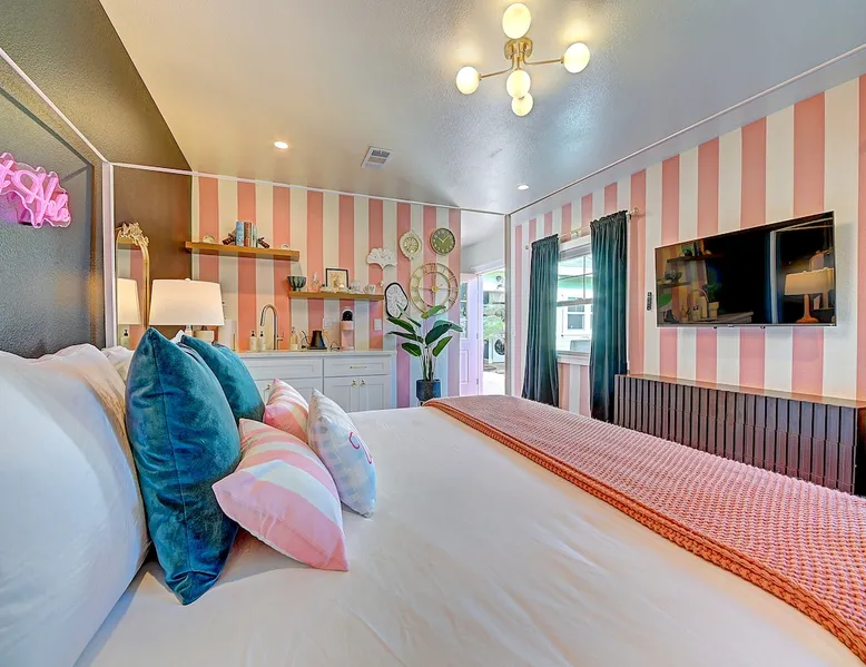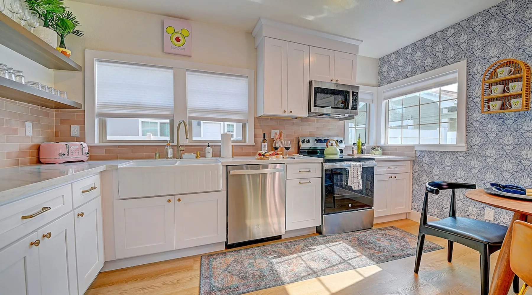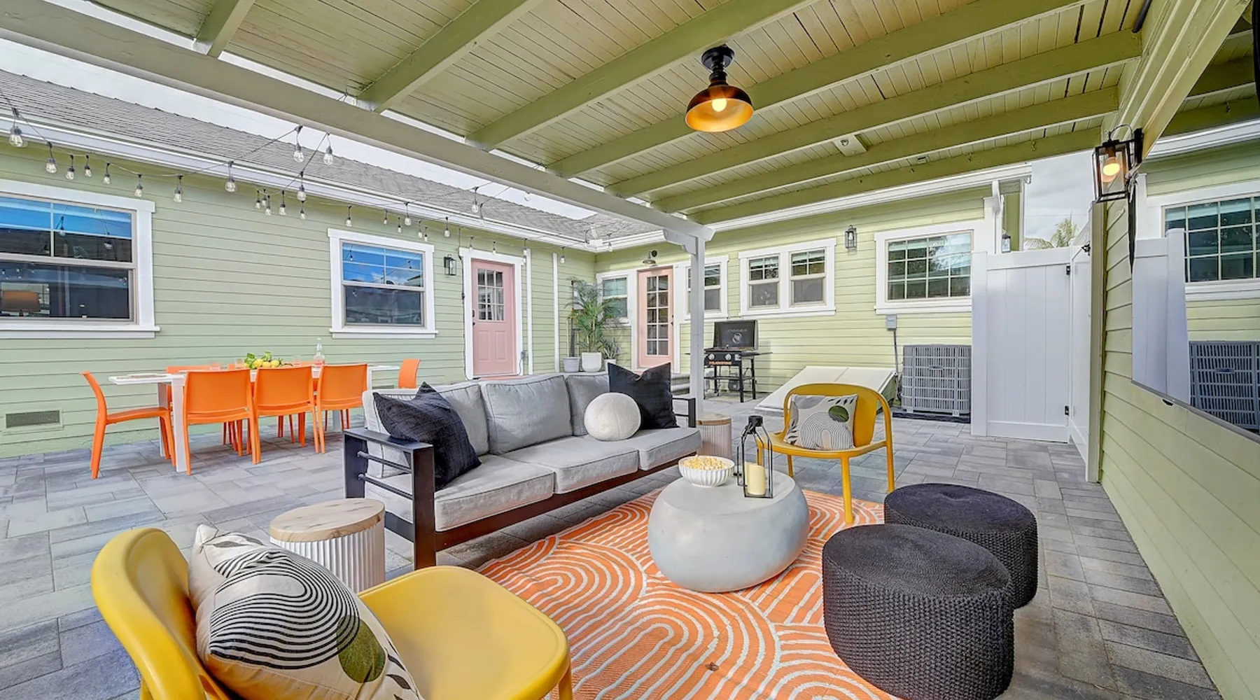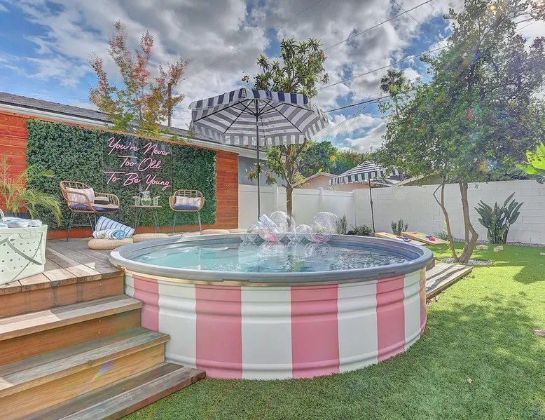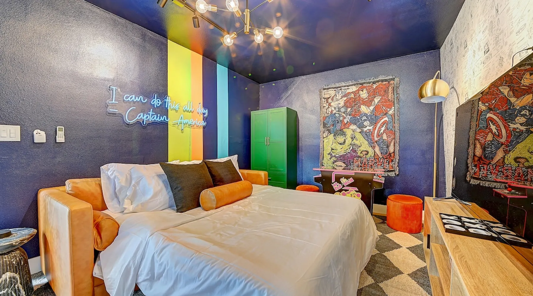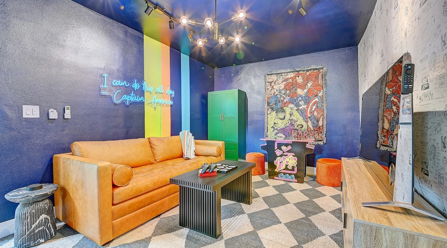 ✨ Welcome to AvoCottage, a bespoke home by Bamboo Dwellings ✨ Just 12 miles to Disneyland and 6 to Newport Beach. Enjoy a fenced backyard with a soaking pool, fire pit, yard games, outdoor TV, and Blackstone griddle. Features 5 magical Disney themed bedrooms, 3 luxury bathrooms, a game room with arcade, EV charger, private parking, and premium amenities. We have all the magic of SoCal with the comforts of home. The space 🥑 What You’ll Love About AvoCottage Our whimsical, newly renovated 1920s Californian Cottage is single storied and has 1400 sq ft of indoor space plus a 200 sq ft detached game room and an expansive Avocado tree shaded backyard. With our home, the magic from Disneyland doesn’t end at the park! Designed to give you the same sense of wonder and excitement you get at Disneyland—without feeling like you’re walking through a gift shop. It’s immersive with a touch of Disney magic in every room and perfect for families and friend groups. Inside, you'll find an open-concept layout with: ✶ Fully equipped kitchen with a blender, rice cooker, and all the tools a chef like Remy or Tianna could need ✶ Coffee bar with a kettle and both Keurig and drip coffee options ✶ Kids dishes, utensils, and cups (including spill resistant ones!) ✶ Dining table comfortably seats 8 guests ✶ High chair provided for your littlest mouseketeer ✶ 60" Smart TV with complimentary Netflix & Disney+ ✶ Comfy seating on luxury branded furniture for cuddle sessions while watching your favorite Disney films ✶ Board games for unplugged fun ✶ 3 beautifully designed bathrooms stocked with organic Public Goods toiletries, plush hotel towels, and a hairdryer. One includes a relaxing soaking tub. ✶ Washer and dryer for your convenience during longer stays You'll rest easy in 5 magical bedrooms, each with premium Helix mattresses, hotel bedding, and its own Disney-inspired theme: 🐇 Alice in Wonderland Studio: Private entrance from the backyard, king bed, crib, ensuite bathroom, Smart TV, coffee bar, and bistro dining set for your own Mad Hatter tea party. (Corner table can also be used as a desk) 🧚🏻 Neverland Suite: Queen bed, ensuite bathroom with tub, Smart TV 🕌 Aladdin Room: Queen bed, trendy neon sign decor 🌍 It’s a Small World Room: Twin over full bunk with trundle, dress-up closets, toys, and books 🛡 Avengers Game Room: Detached suite with queen sleeper sofa, Smart TV, climate control, and vintage arcade games Note: Game Room bathroom is inside the main house via the private backyard—please consider this during rainy months. 🌴Step outside to your private, fully fenced backyard oasis with: ✶ Heated cowboy-style tank pool ✶ Blackstone griddle and outdoor dining table ✶ Fire pit with string lights for cozy evenings ✶ Outdoor living room and TV for movies under the stars! ✶ Turf lawn with umbrellas, yard games, and room to run the zoomies out ✶ Hidden Mickeys to discover! ✶100+ year old Avocado tree adorned with string lights and 2 tree swings 🌿Heads Up, Nature Lovers: Our fruit trees attract Raccoons and Opossums. They’re harmless but can leave their droppings, we do our best to stay on top of removal between stays. 🦝 Guest favorite Avengers-themed game room ✶ Detached carriage house with Queen sleeper sofa ✶ combo Foosball/air hockey/ping pong table ✶ Vintage arcade games ✶ 65” Smart TV + surround sound for epic movie nights or game-day energy ✶ Prefer to have an epic office space? We can replace the foosball table with a spacious desk! Included thoughtful Amenities ✶ Starbucks Coffee, Tea, Hot Chocolate ✶ Helix mattresses & hotel linens for dreamy sleep ✶ Everything for the beach: Pool/beach towels, Bogg Bag, umbrella, 4 beach chairs, sand toys, and a wagon to carry it all ✶ Outdoor blankets for cozy evenings ✶ Public Goods sulfate-free and organic bath products ✶ EV charger available (for a small additional fee of $25 per charge) Whether you're soaking in the pool, grilling under the sun, or watching Disney classics with your favorite people, AvoCottage wraps you in comfort and a sprinkle of SoCal magic. It isn't just a place to sleep—it’s a place where core memories are made. 🌴 Book your Orange County escape today and experience the magic for yourself. 🌞 Guest access ✶ Easy self check-in with a keyless entry system ✶ Secure keyless keypad entry ✶ Your personalized access code, along with detailed check-in instructions, will be sent to you one day before your arrival. Other things to note 5th Bedroom: The Game Room Our Game Room doubles as a cozy private sleeping space, complete with a comfortable queen-size sofa bed and an armoire for clothing storage. Fresh linens and pillows are provided inside the armoire so you can make the bed at your convenience. This space is located in a detached carriage house just across the patio. It is well-insulated, climate-controlled, and filled with natural light through its windows, offering a pleasant and quiet retreat. Please note: While the Game Room is fully equipped for comfort, the bathroom is located in the main house or studio, requiring a short outdoor walk. California’s weather is generally sunny and mild year-round, with the exception of the occasional rain in spring. We recommend keeping this in mind if you're planning to use this as a fifth bedroom during your stay. About the Pool Our cowboy-style tank pool is 10 feet in diameter and 22 inches deep—perfect for cooling off with 6 to 7 adults. EV Charging An electric vehicle charging station is available on-site for guest use. $25 per charge applies. Pet Policy Well-behaved dogs are welcome with prior approval. $150 per pet, per day. Dogs only (no cats or other animals). Pets are not allowed on furniture or linens—extra $50 fee applies for excess hair. Please bring your own bedding if needed. Use provided bags for waste; turf clean-up incurs a $50 fee. Unauthorized pets will result in addit